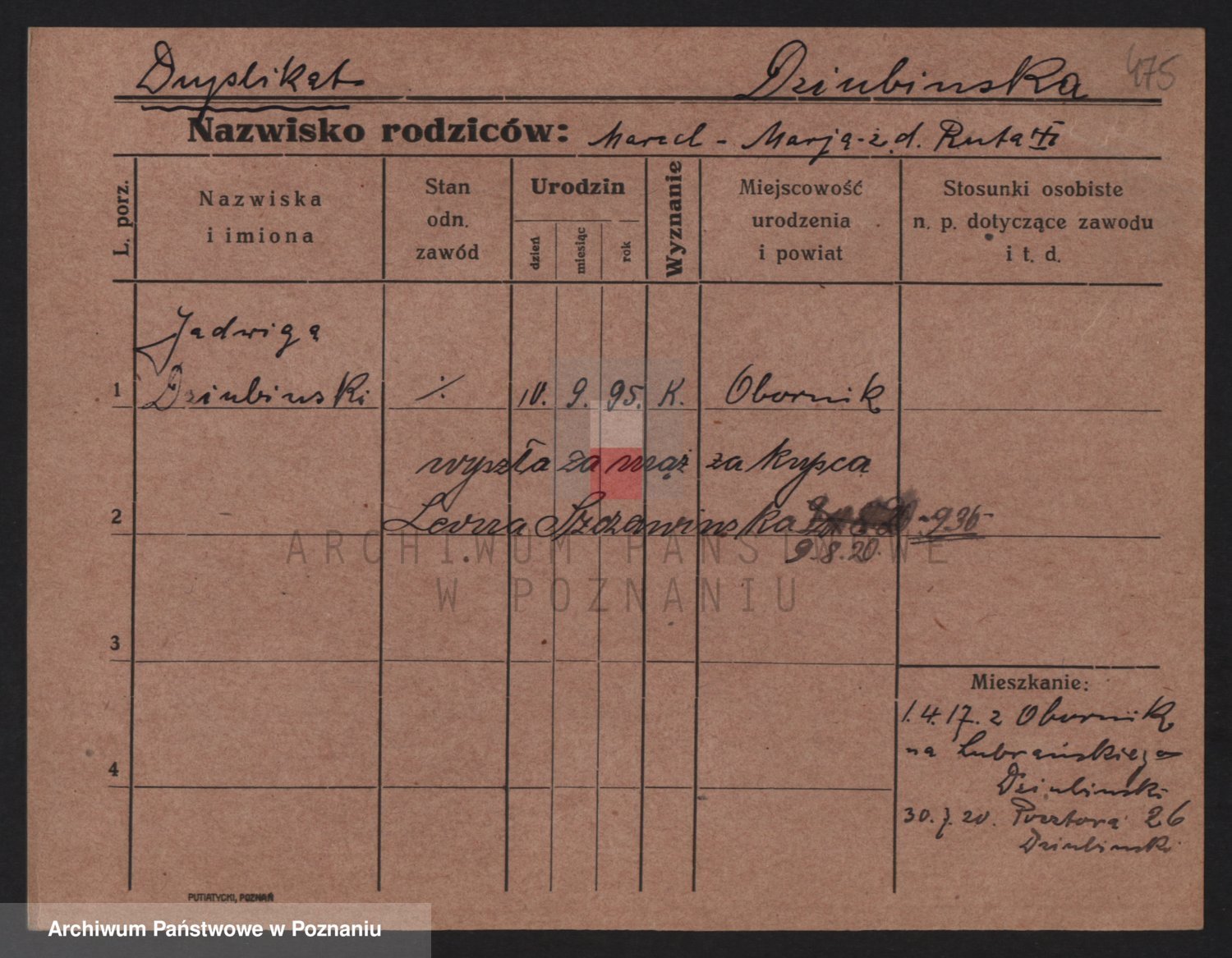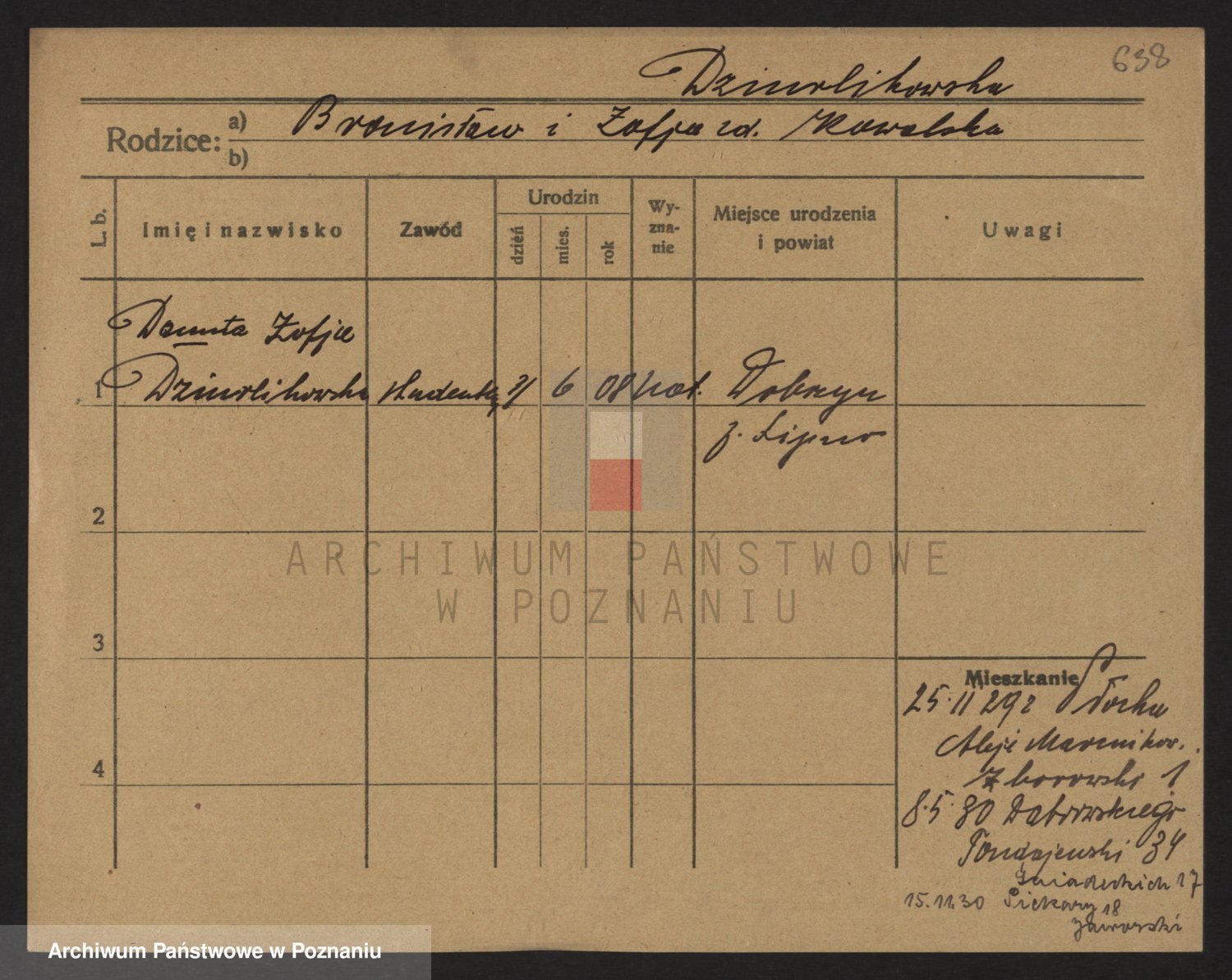 Dzikowski z d. Perlińska, Maria Jadwiga