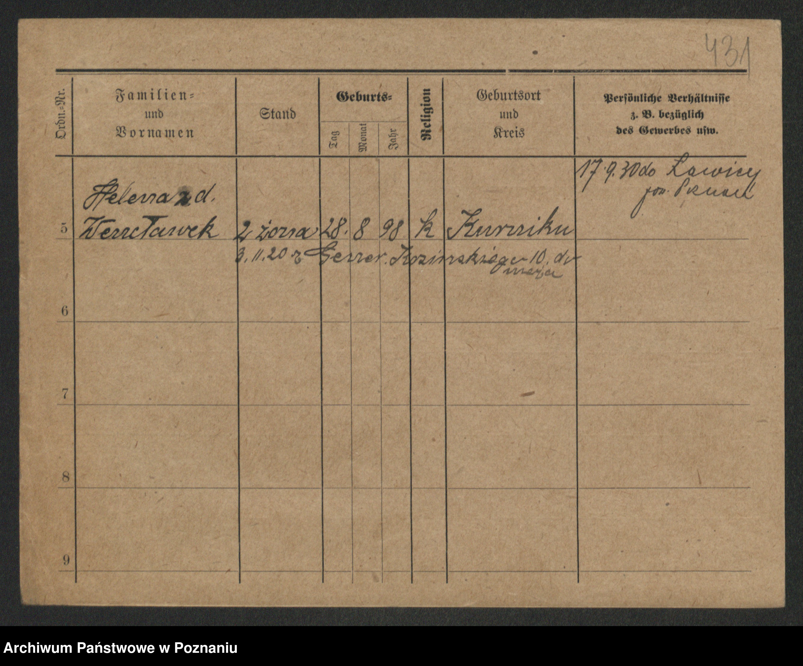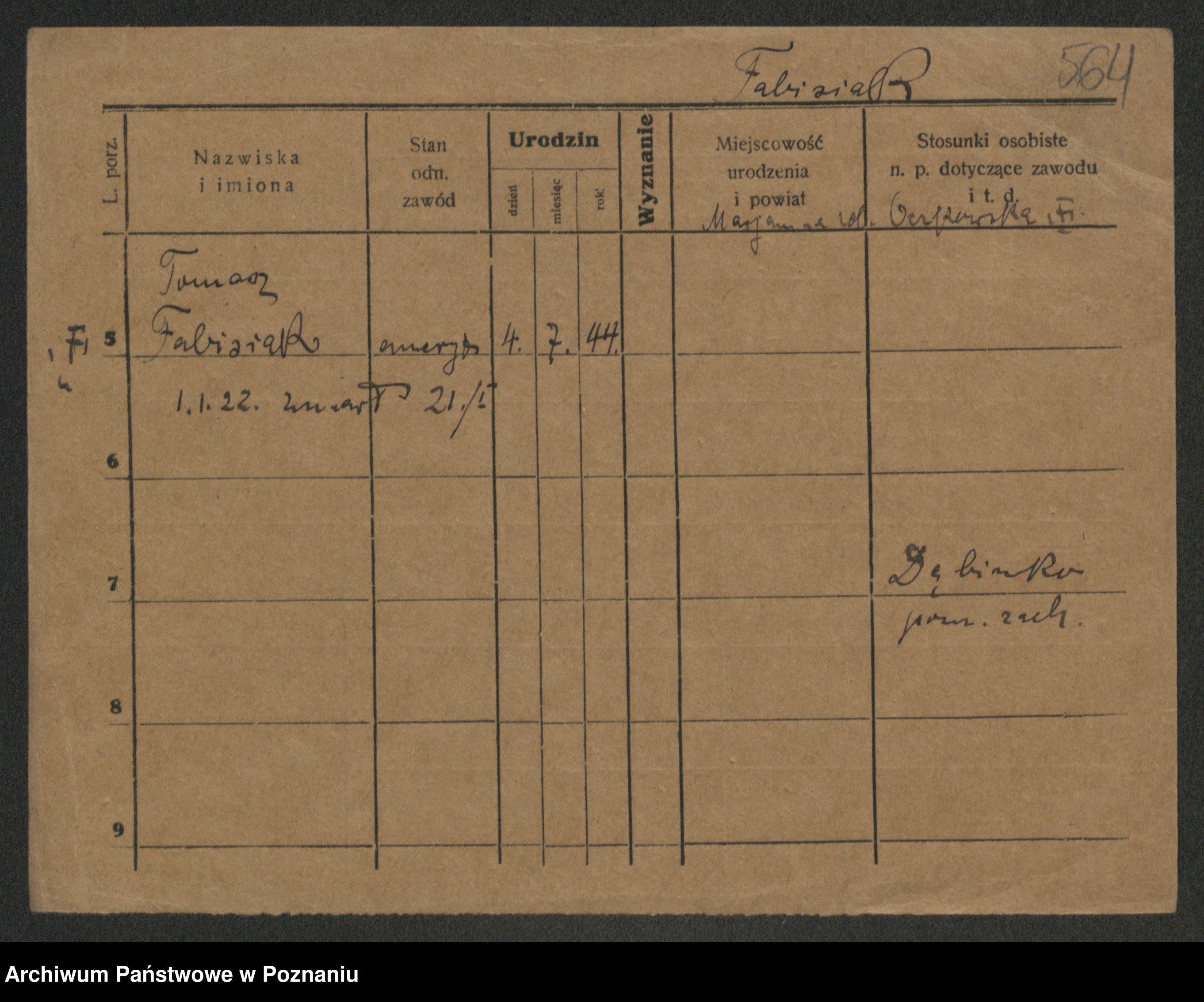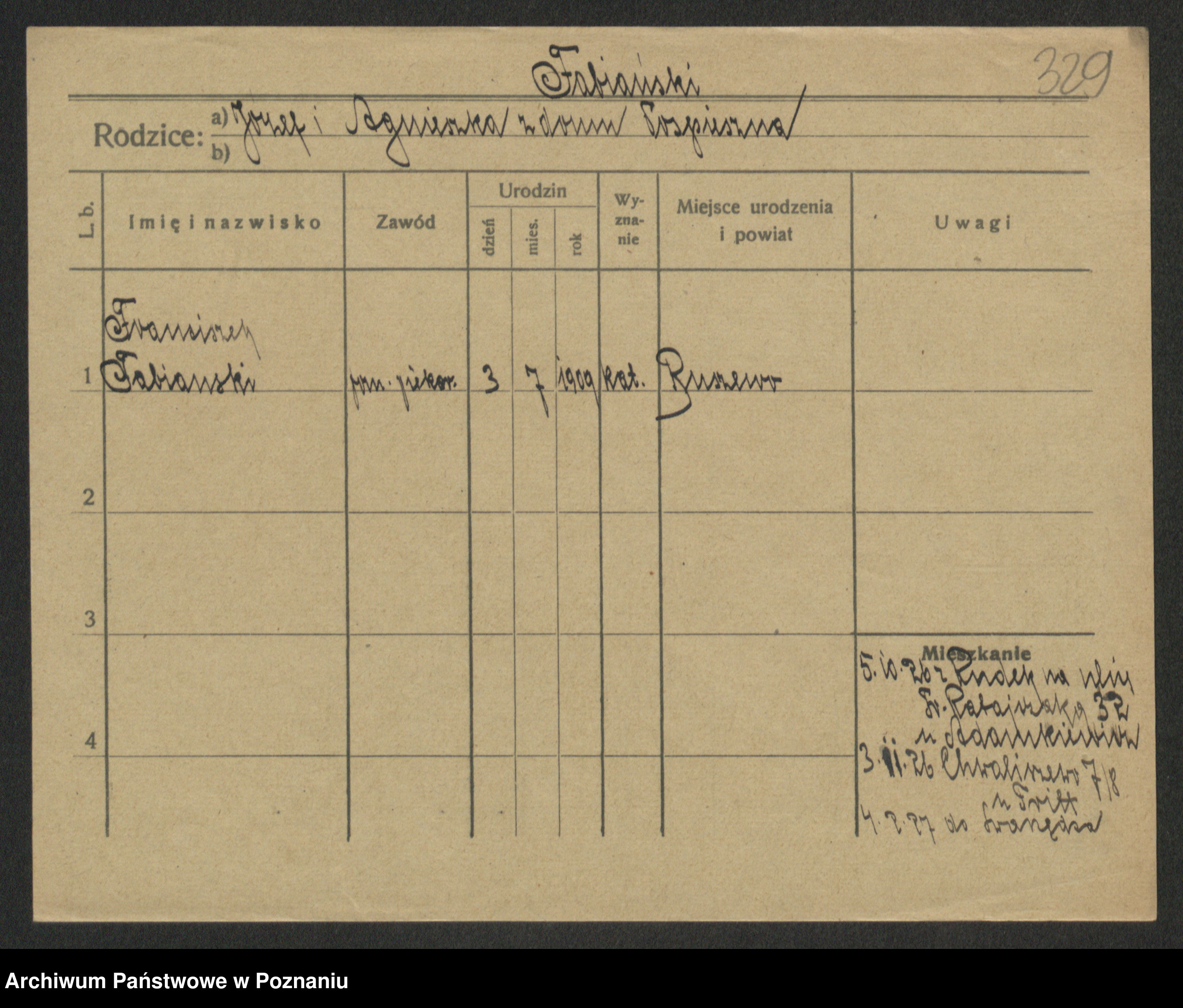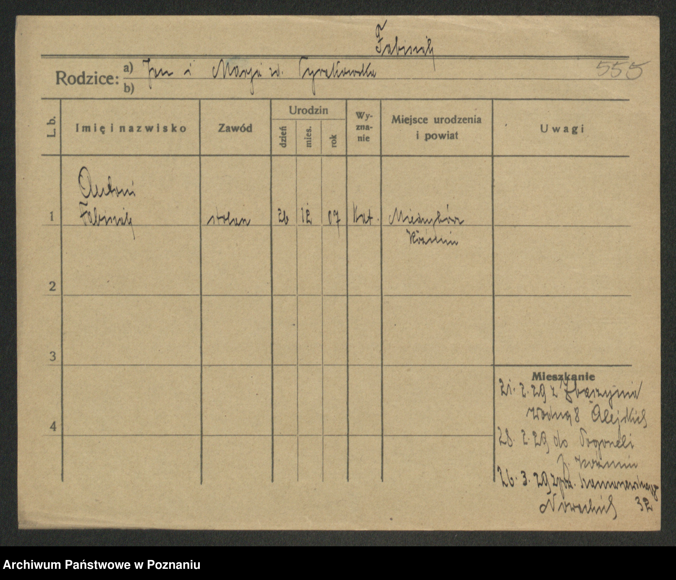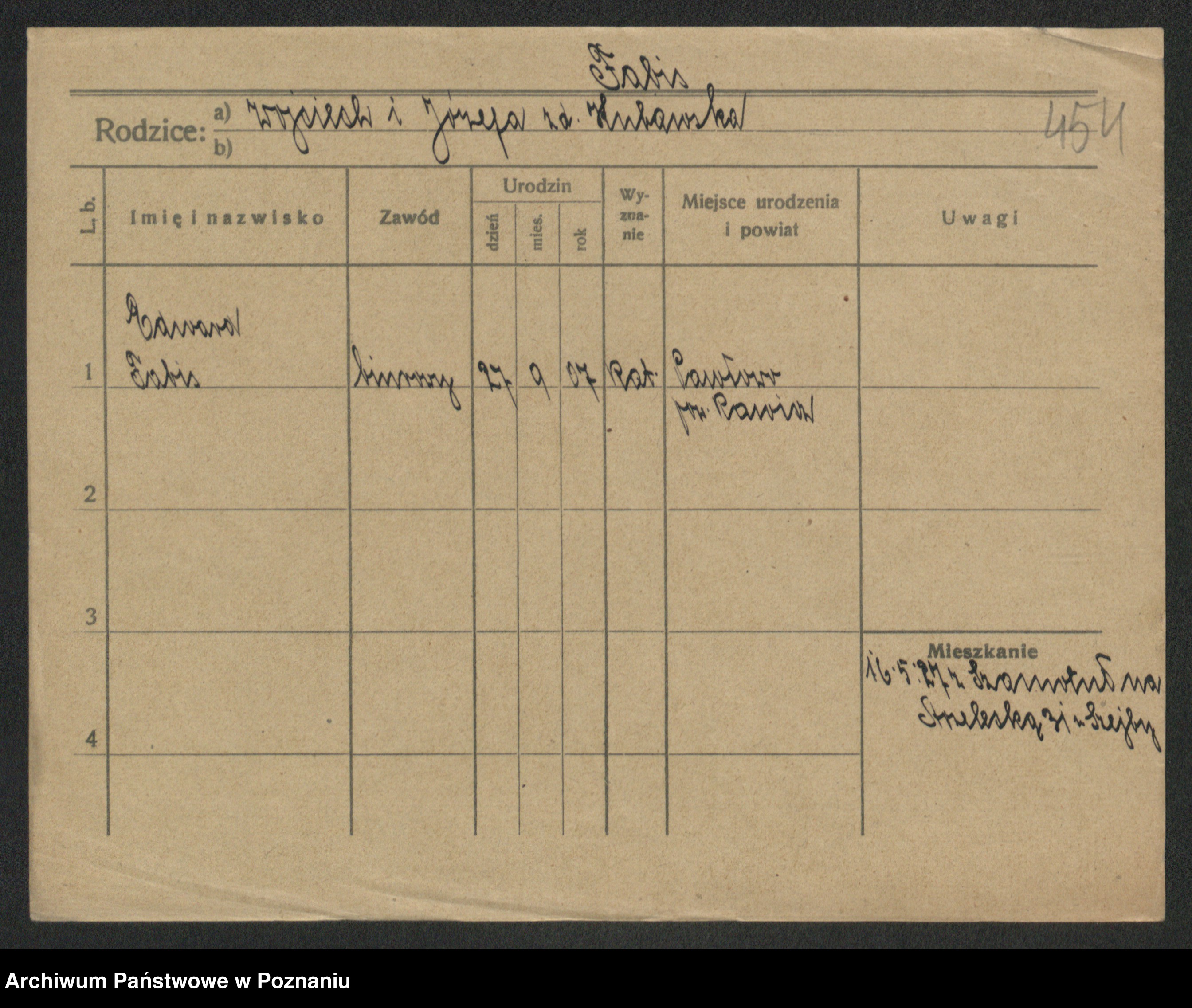 Podgląd karty osobowej dostępny jest po kliknięciu na nazwisko lub ikonkę karty. Można dokonywać powiększenia (ikony na górze) lub przechodzić między kolejnymi skanami (strzałki po bokach).