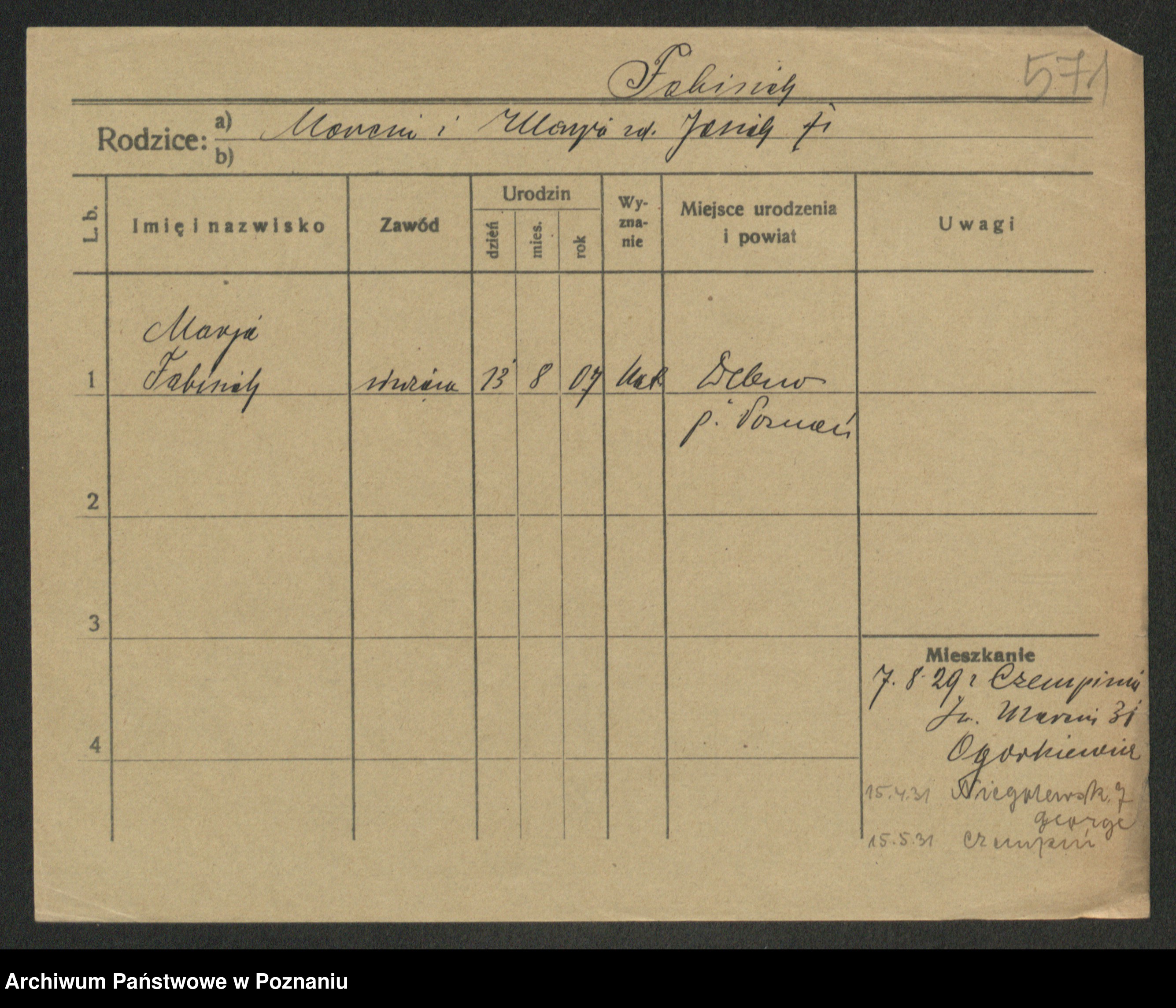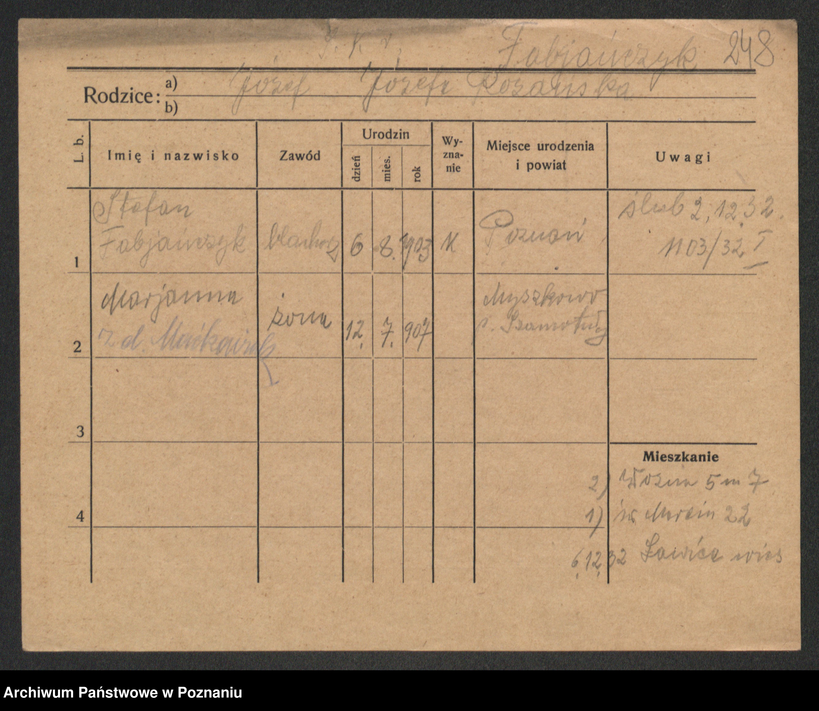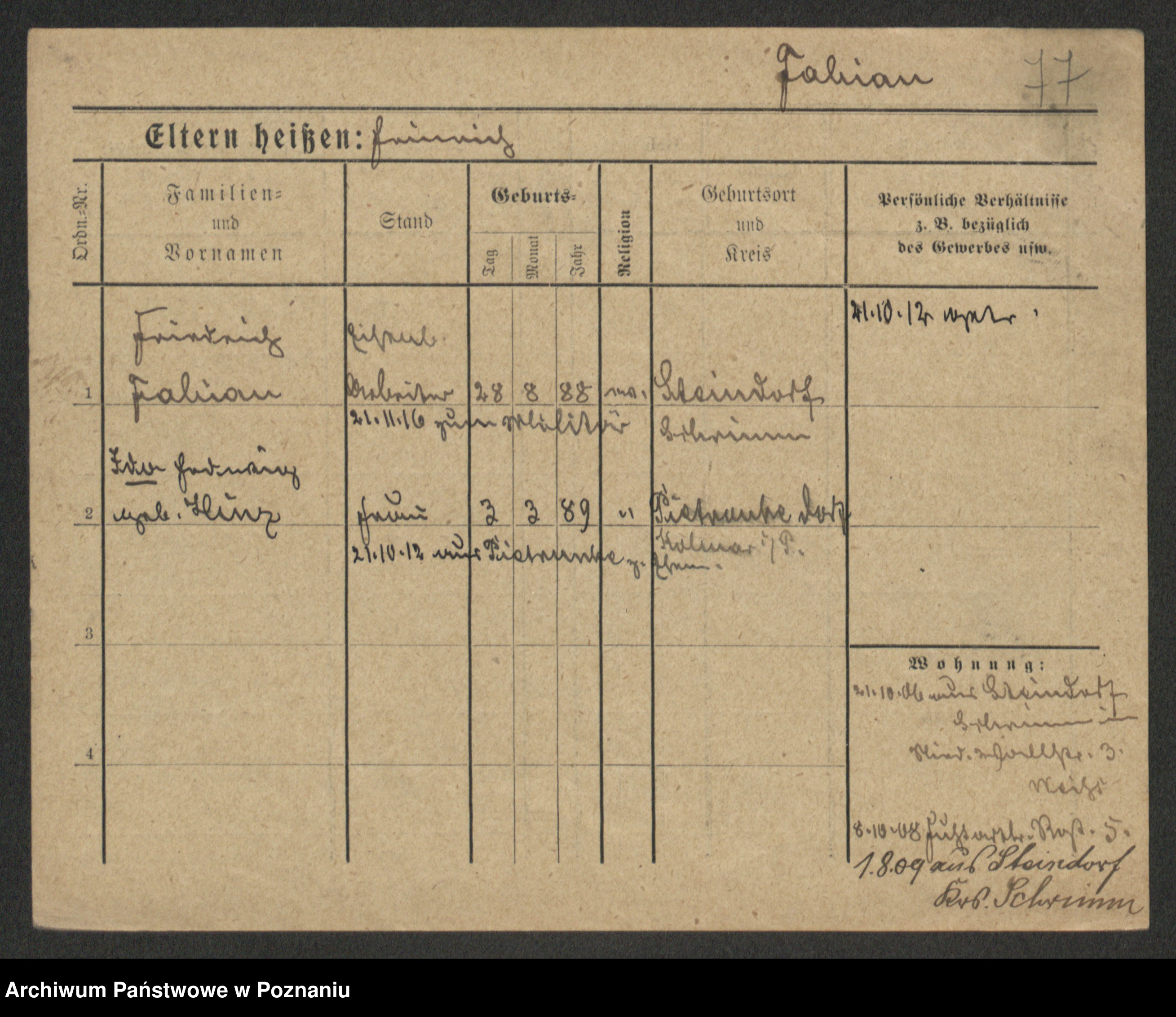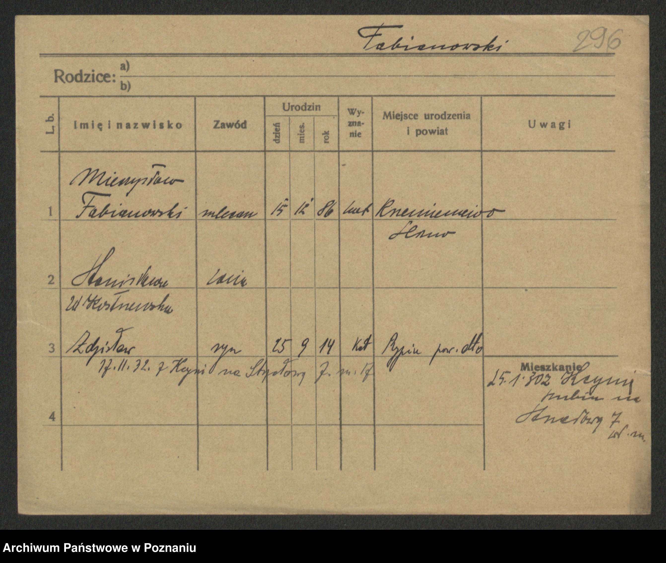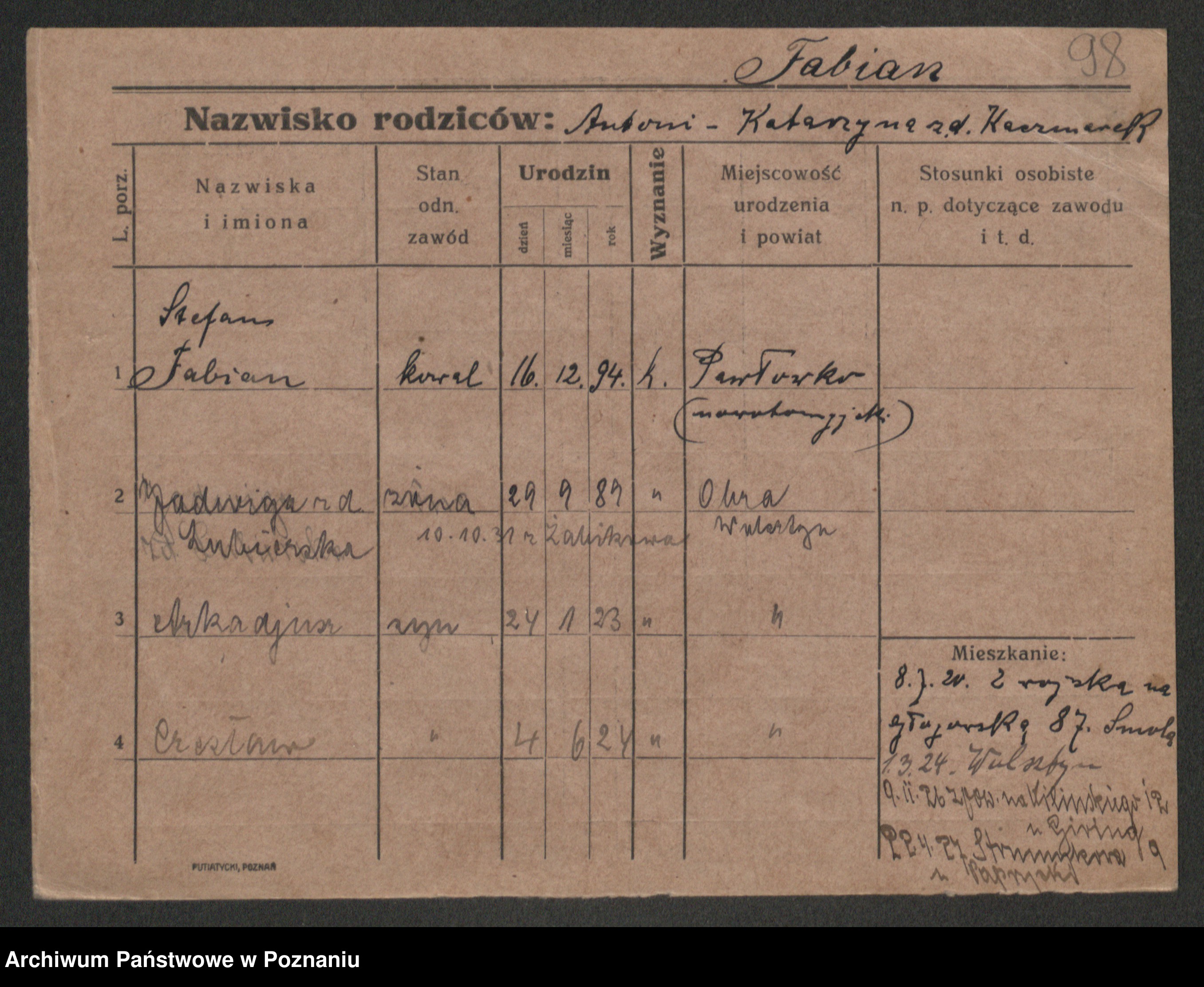 Podgląd karty osobowej dostępny jest po kliknięciu na nazwisko lub ikonkę karty. Można dokonywać powiększenia (ikony na górze) lub przechodzić między kolejnymi skanami (strzałki po bokach).