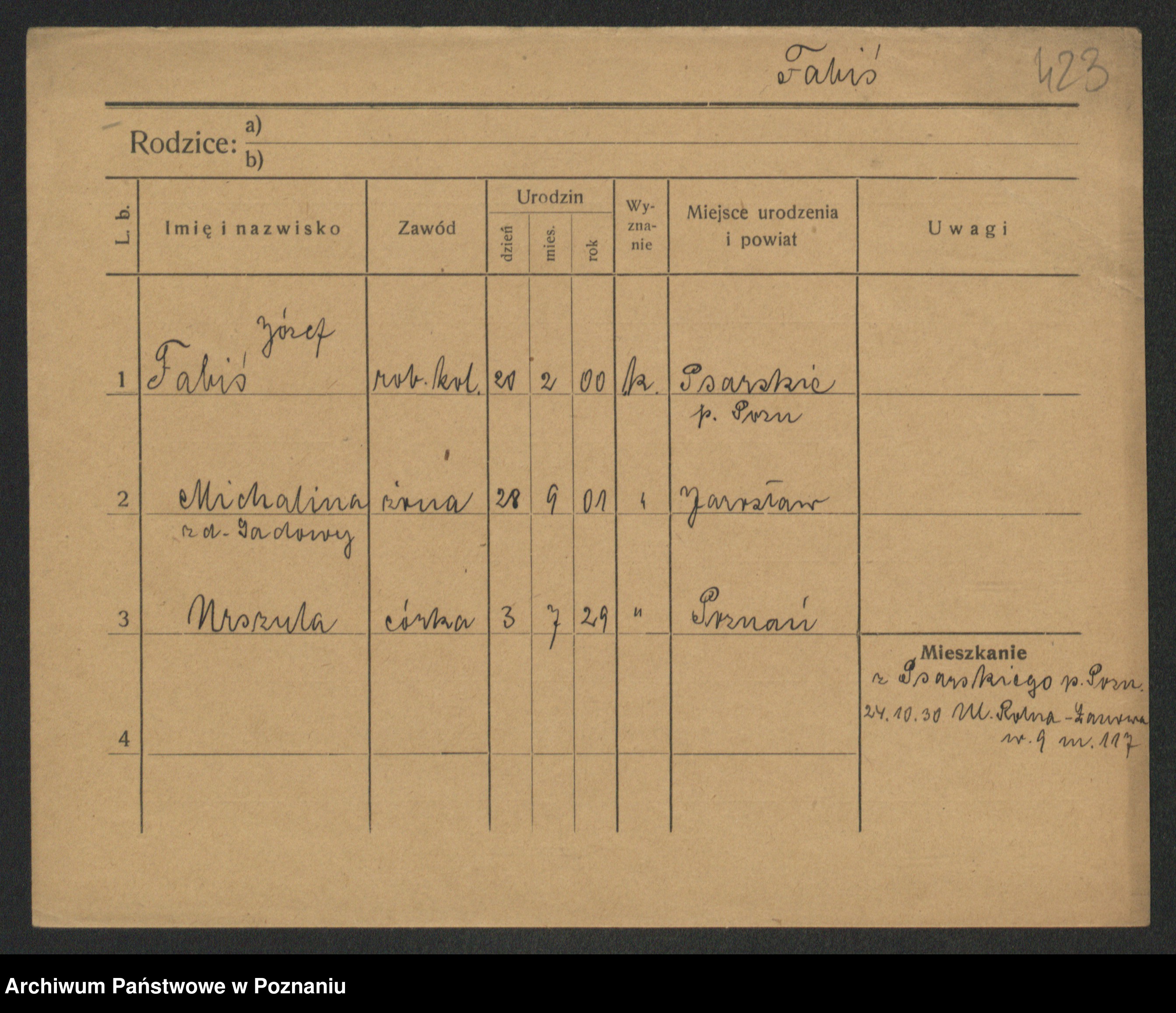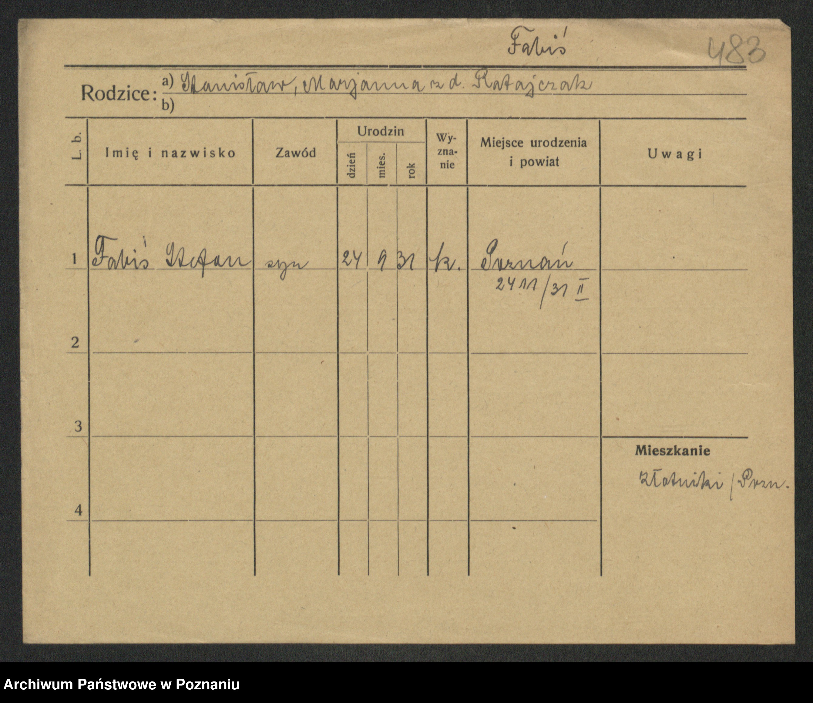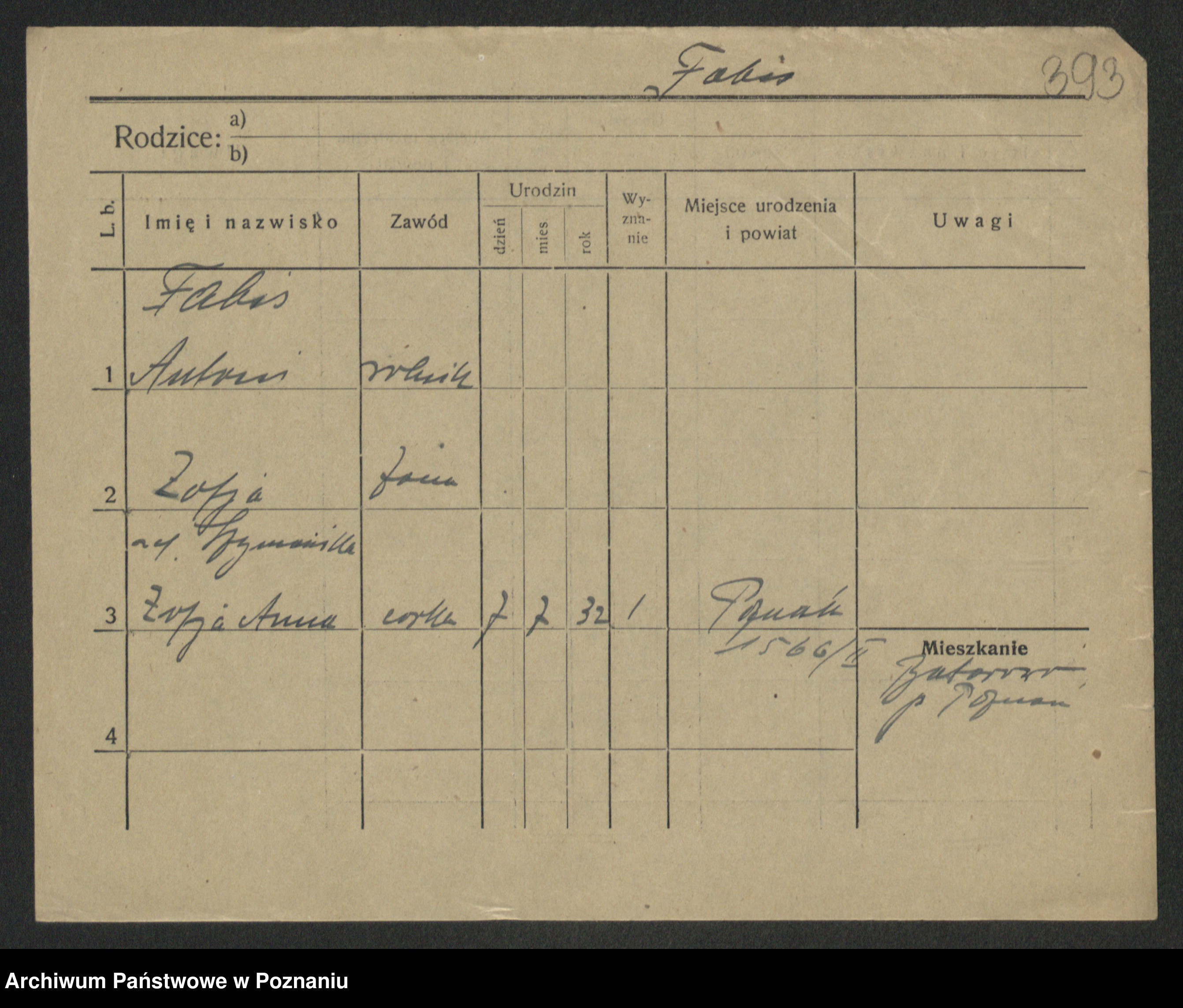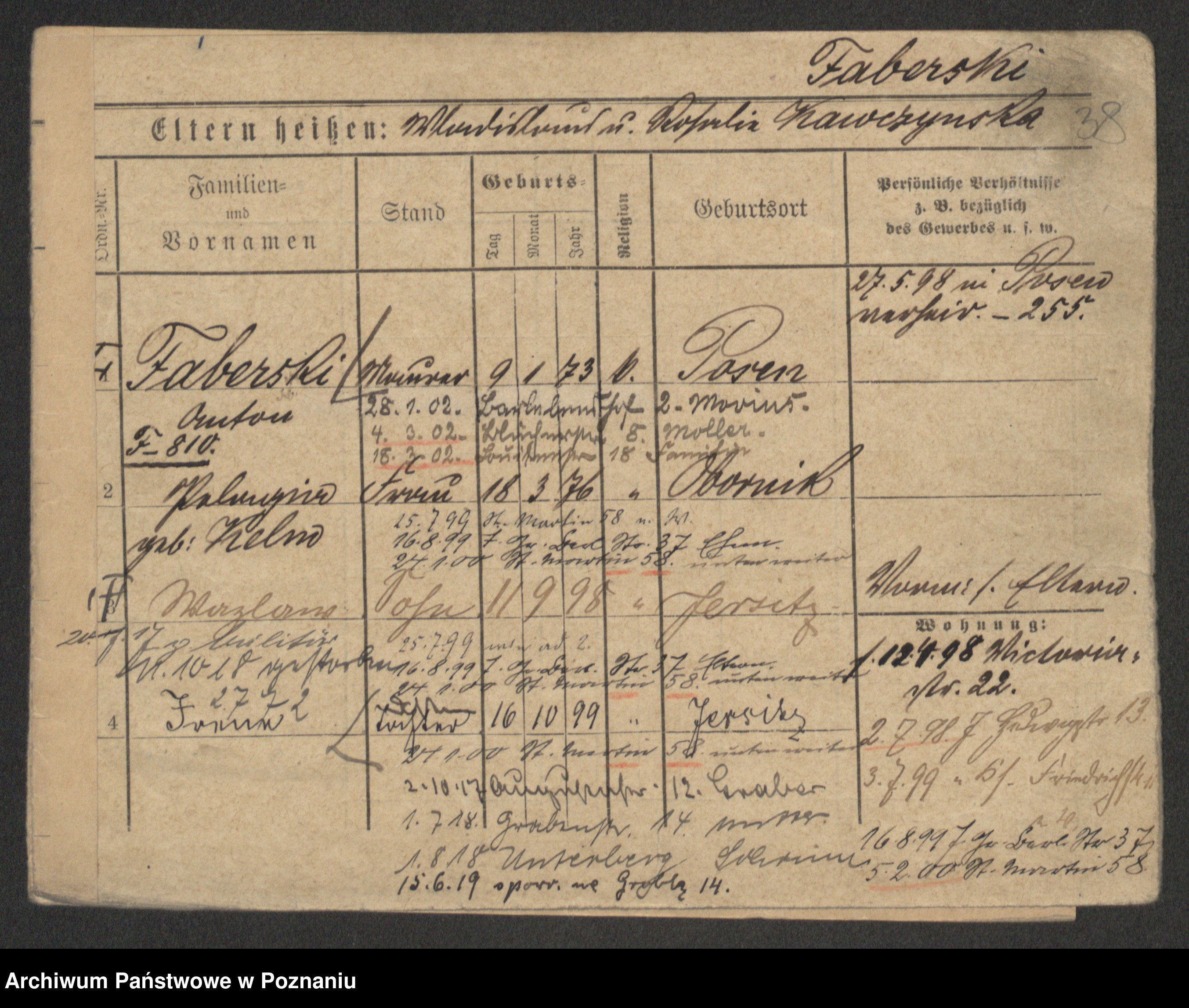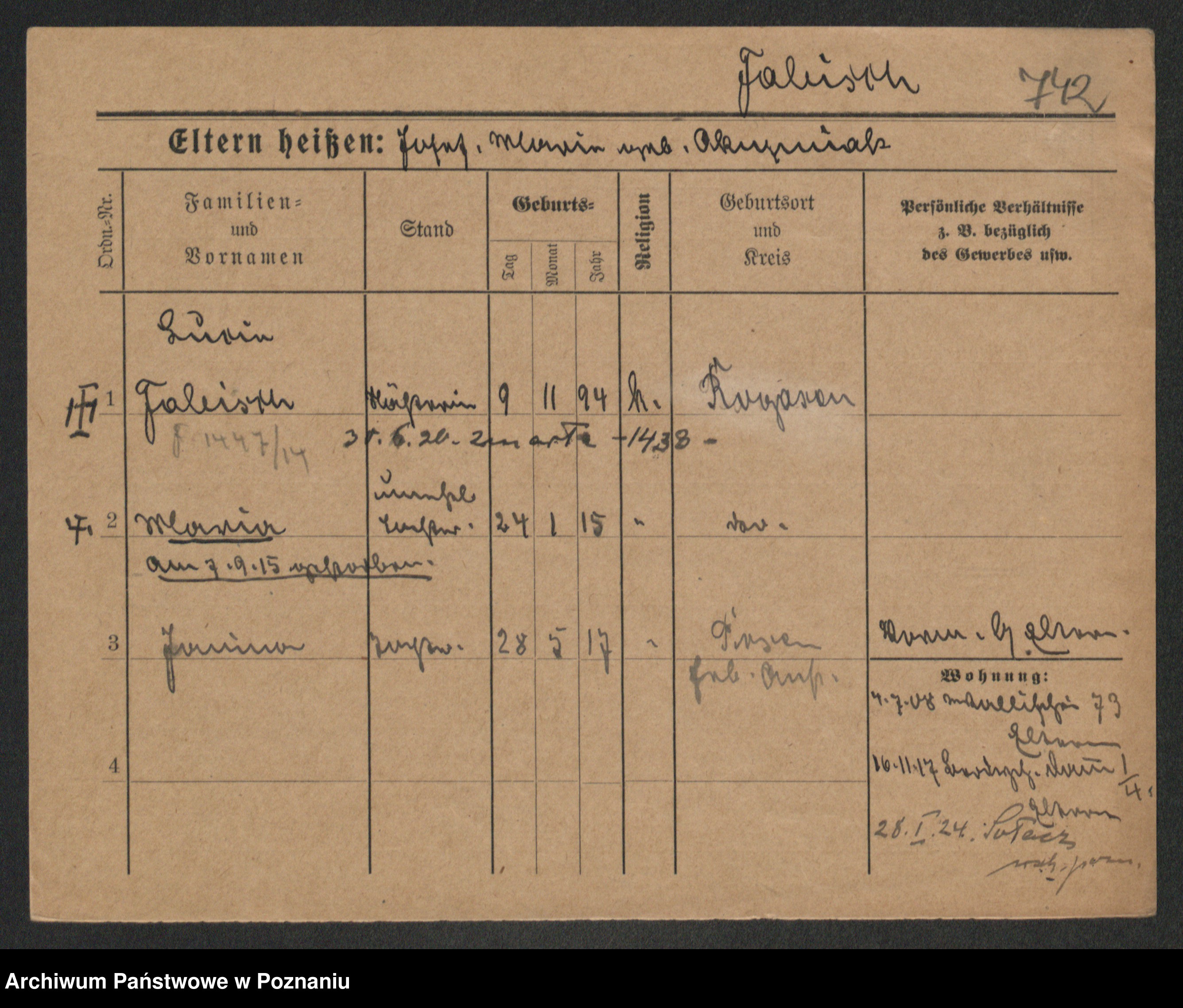 Podgląd karty osobowej dostępny jest po kliknięciu na nazwisko lub ikonkę karty. Można dokonywać powiększenia (ikony na górze) lub przechodzić między kolejnymi skanami (strzałki po bokach).