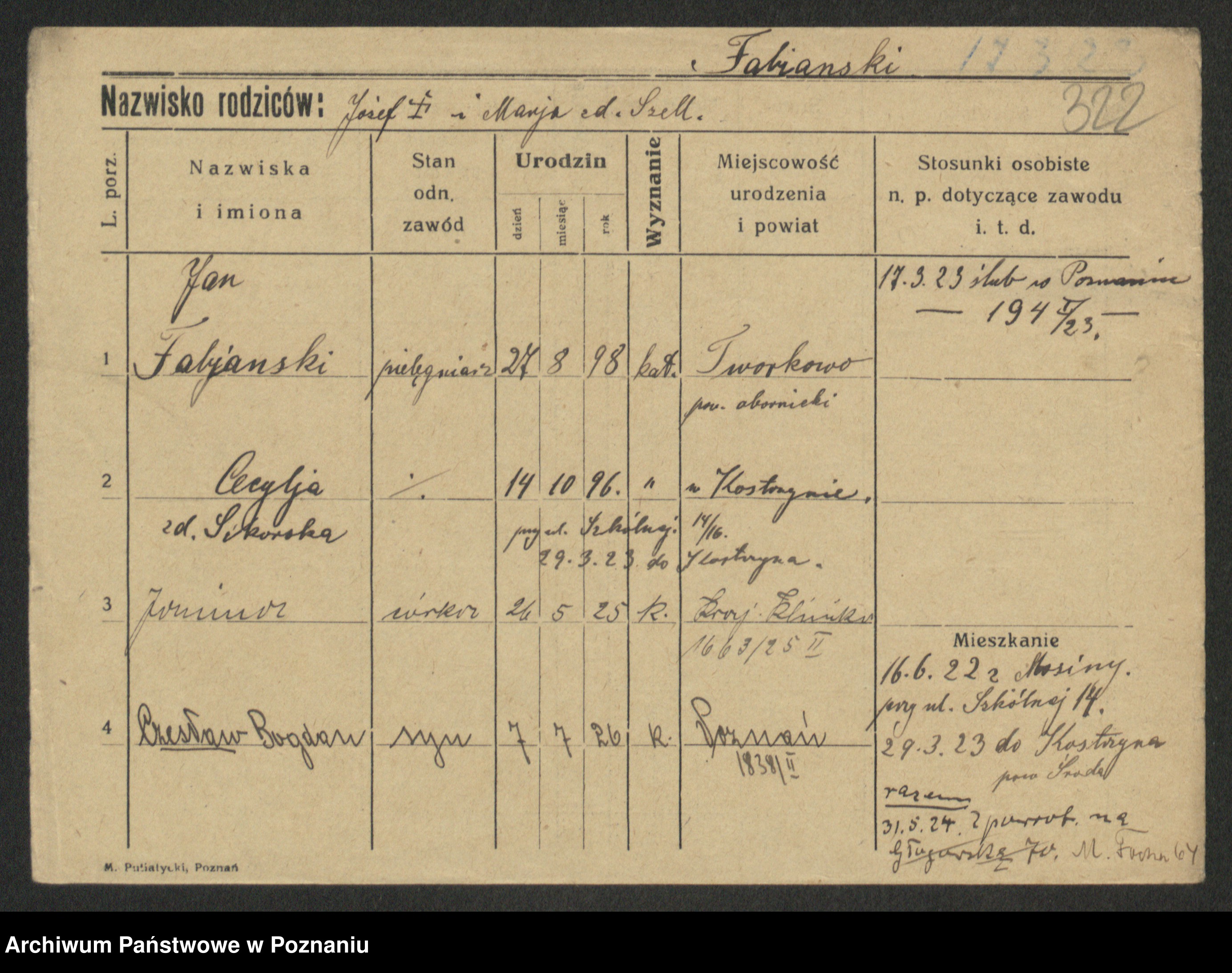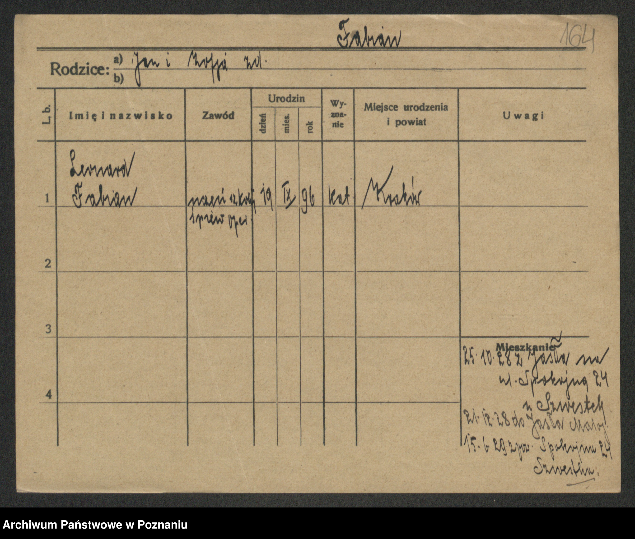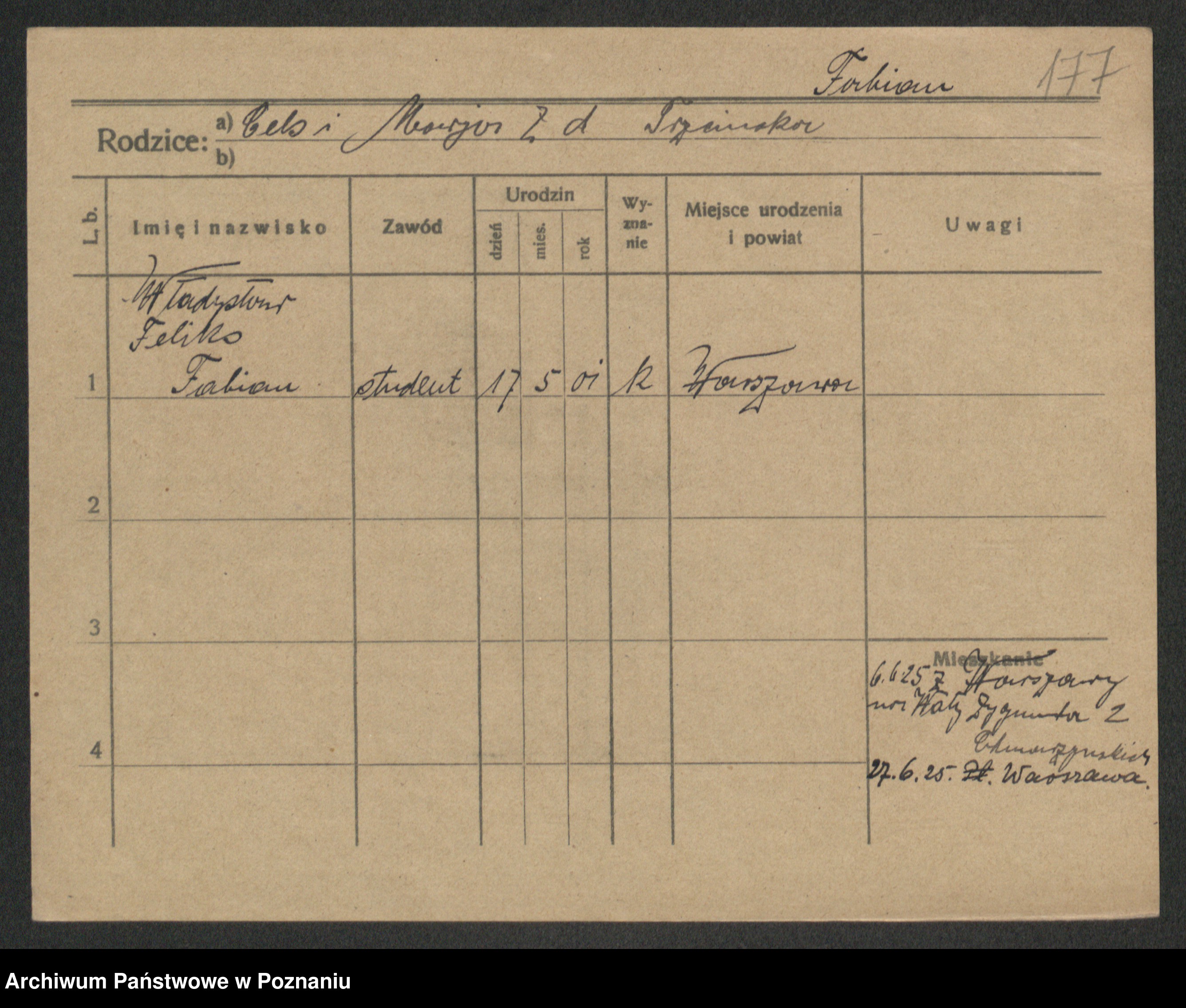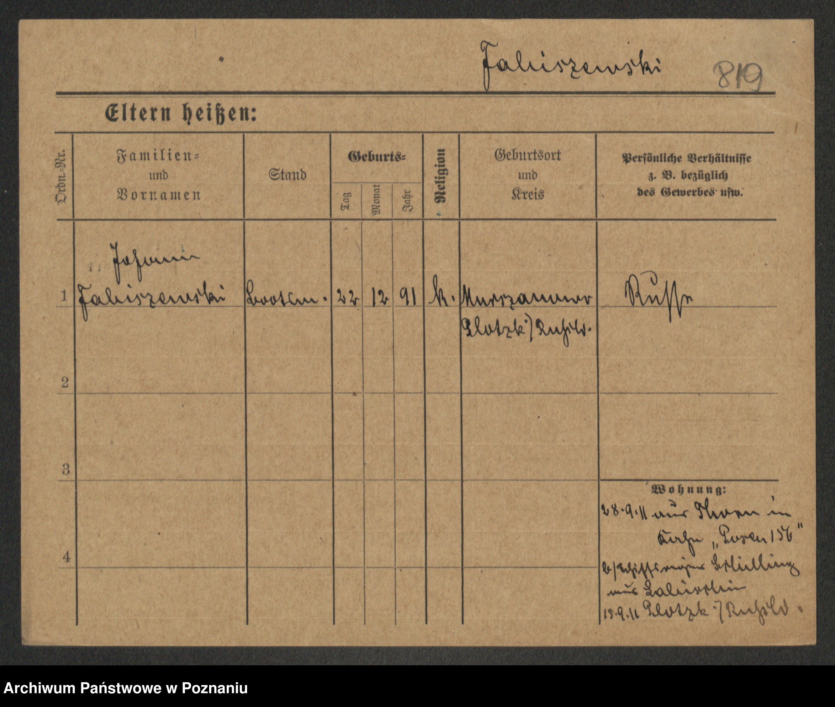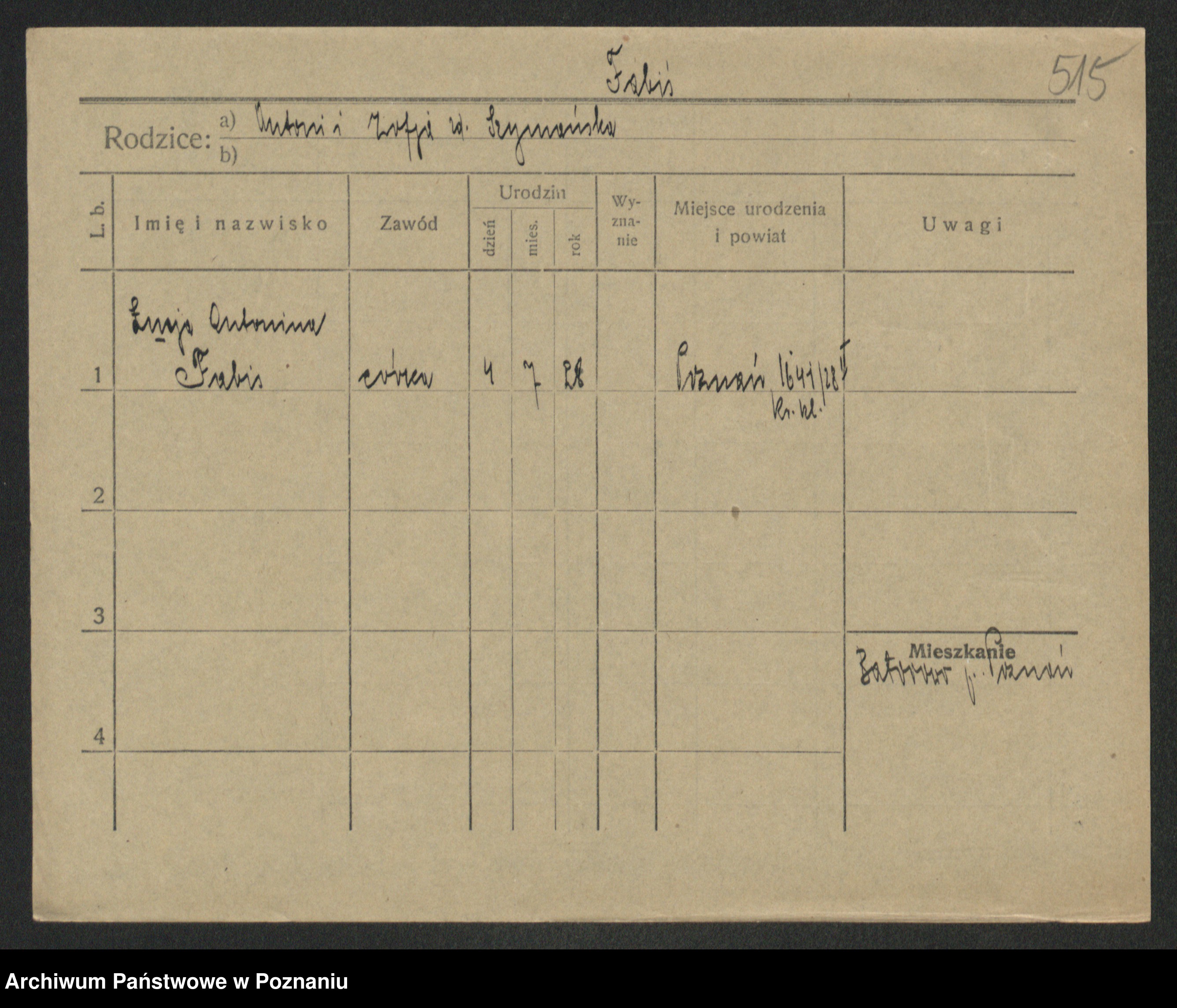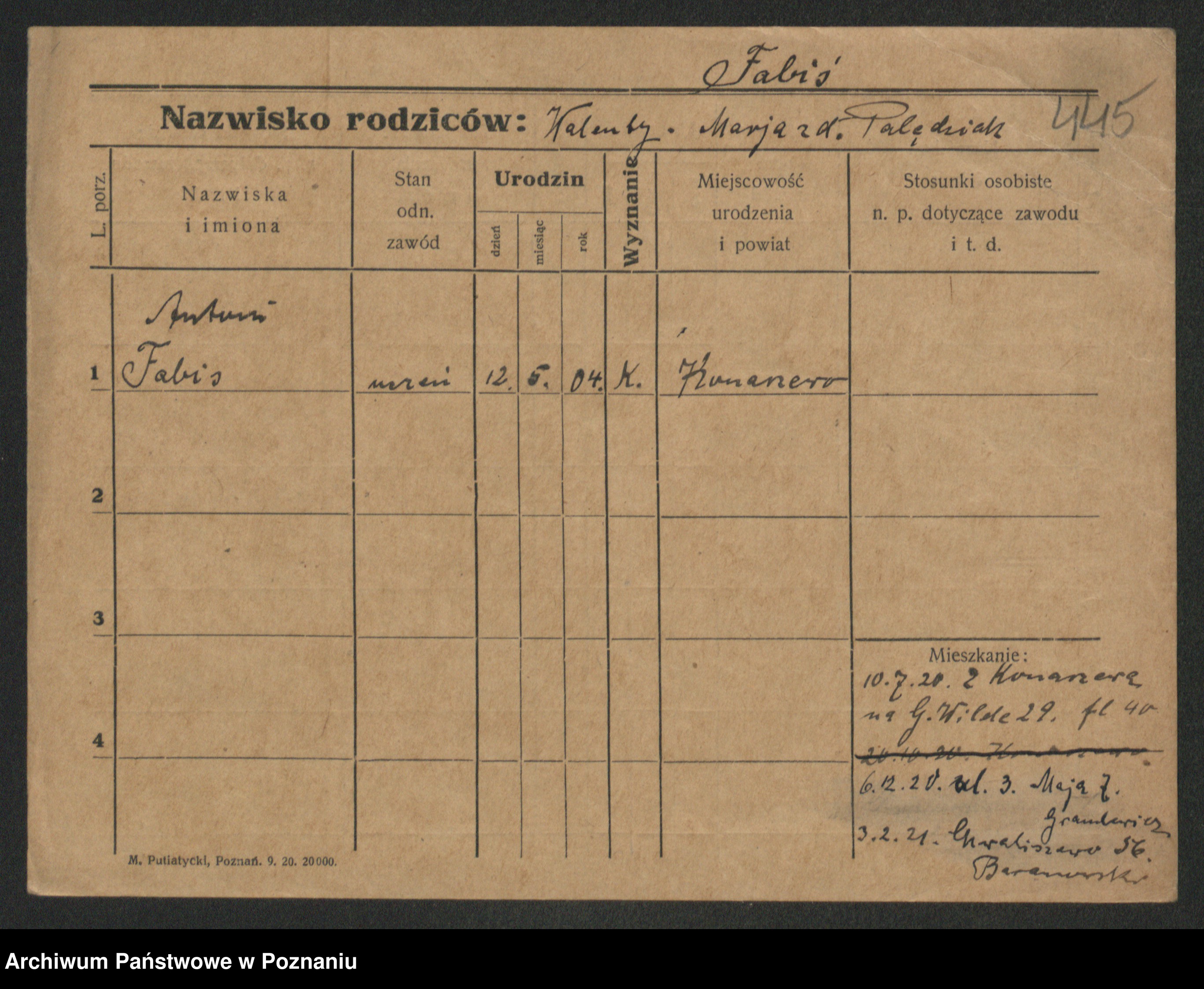 Podgląd karty osobowej dostępny jest po kliknięciu na nazwisko lub ikonkę karty. Można dokonywać powiększenia (ikony na górze) lub przechodzić między kolejnymi skanami (strzałki po bokach).