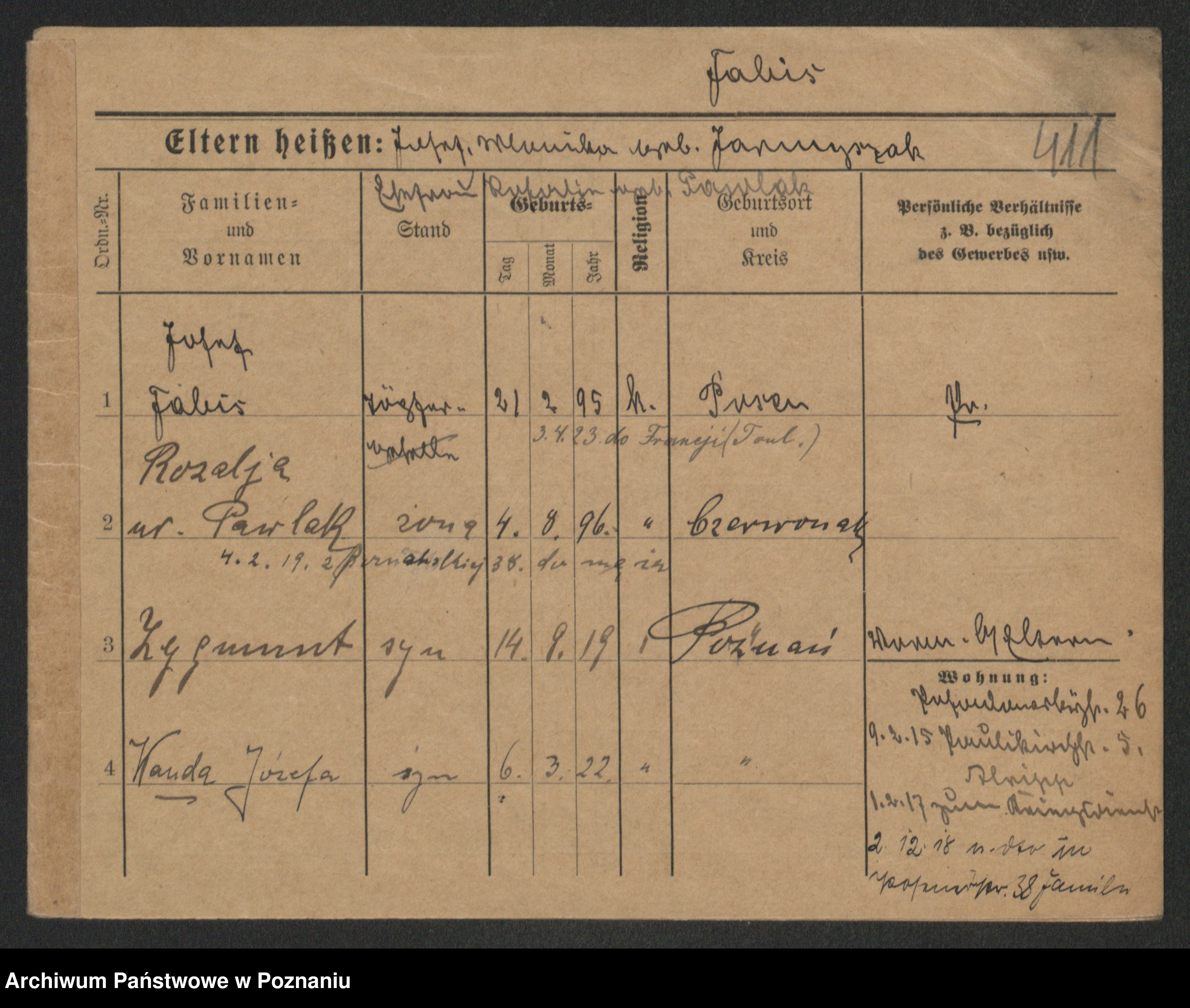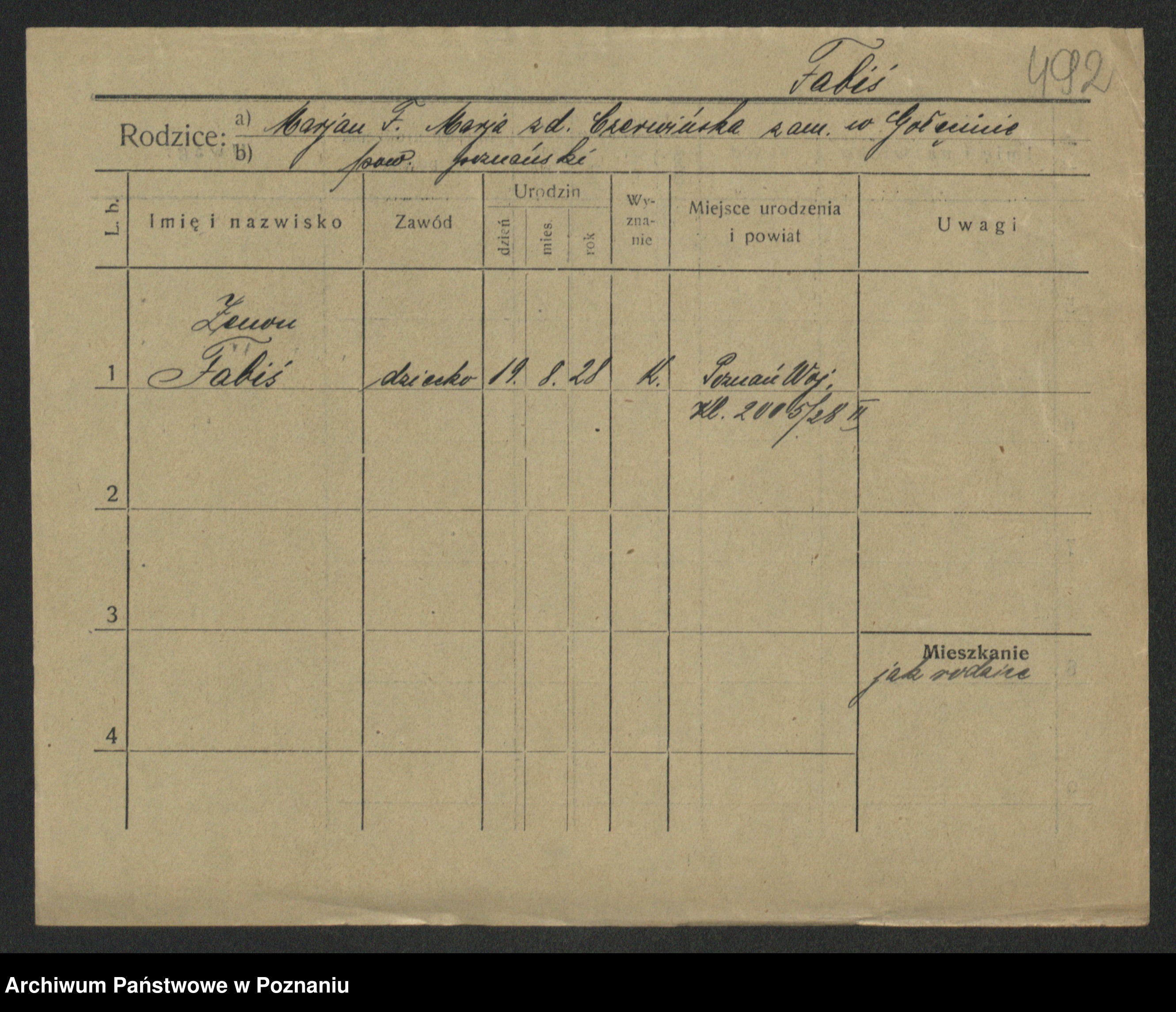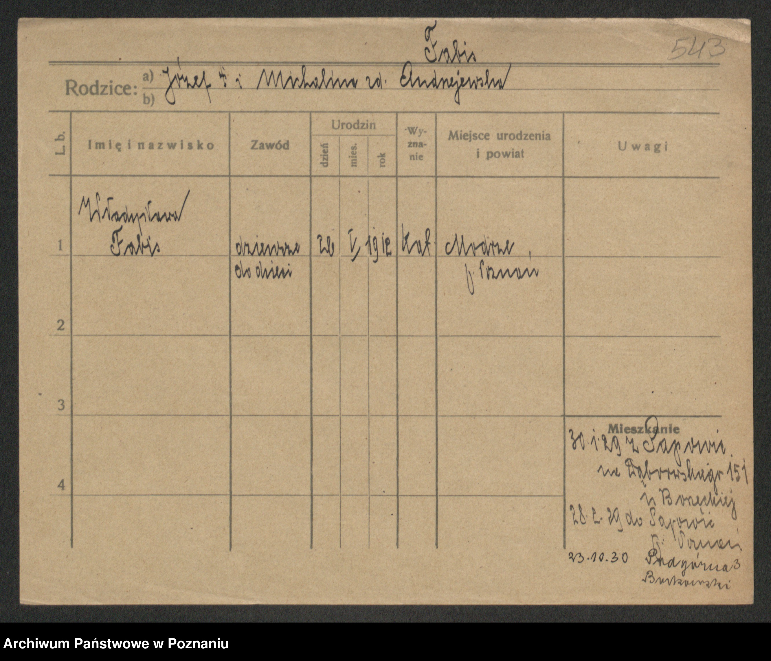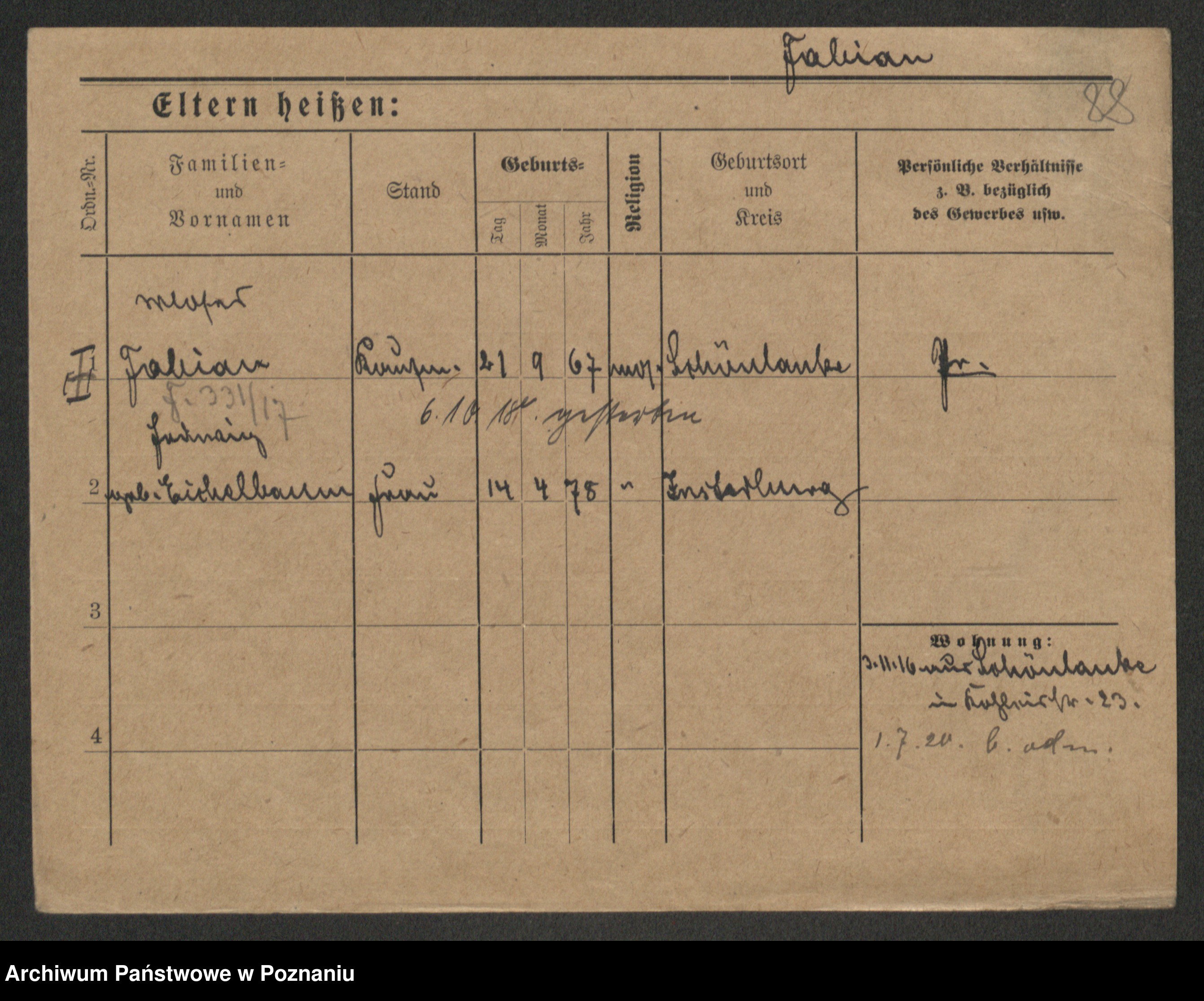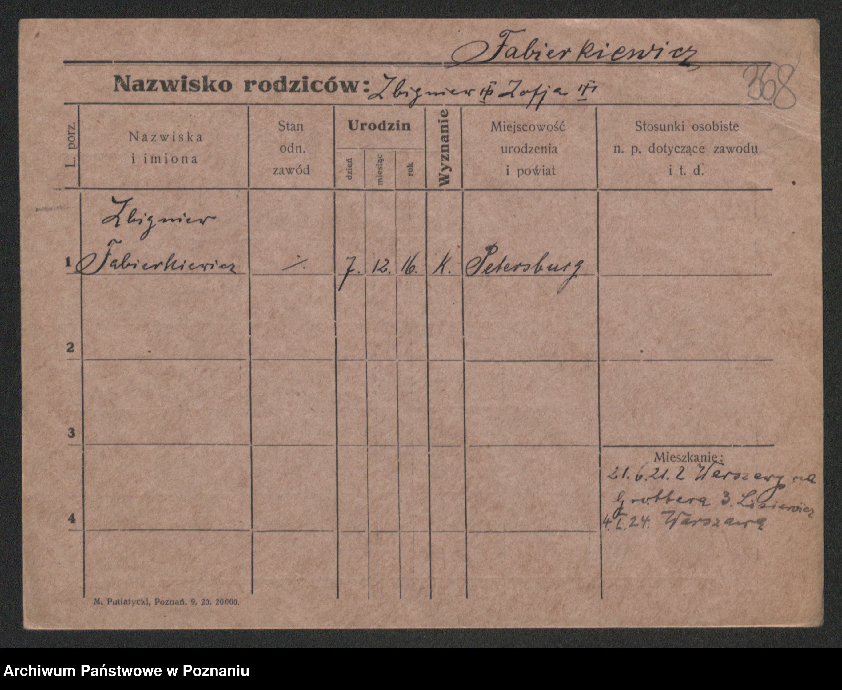 Podgląd karty osobowej dostępny jest po kliknięciu na nazwisko lub ikonkę karty. Można dokonywać powiększenia (ikony na górze) lub przechodzić między kolejnymi skanami (strzałki po bokach).
