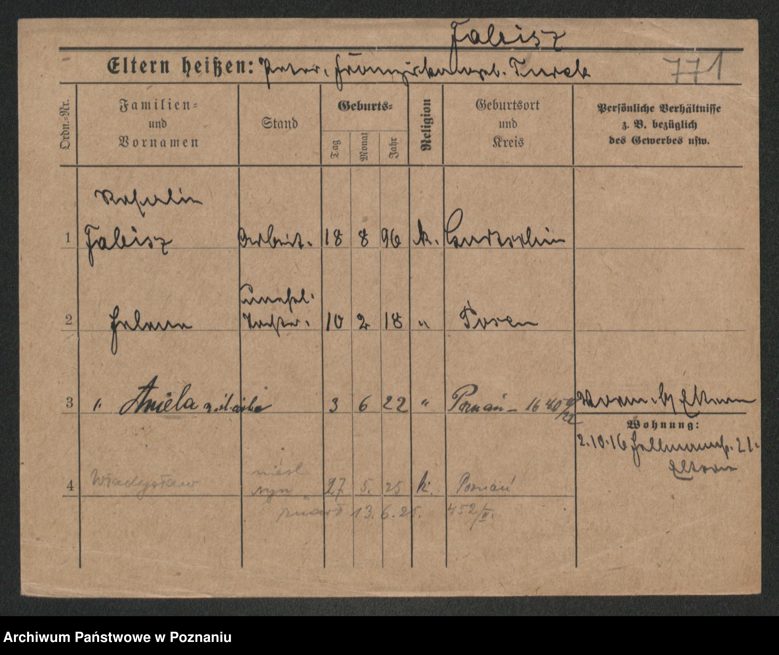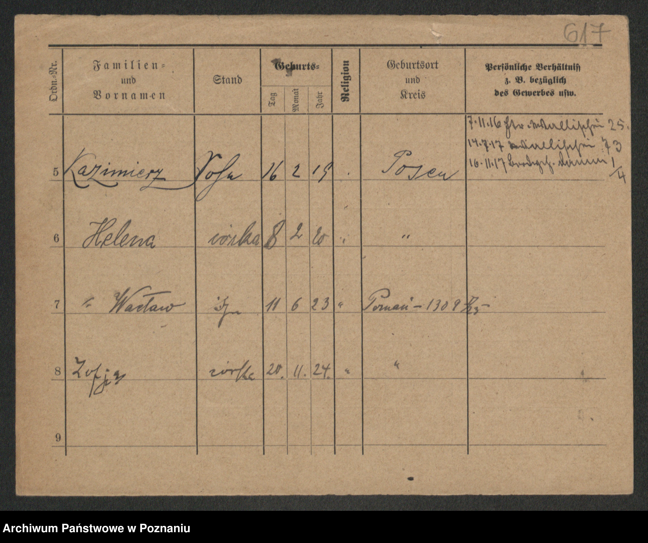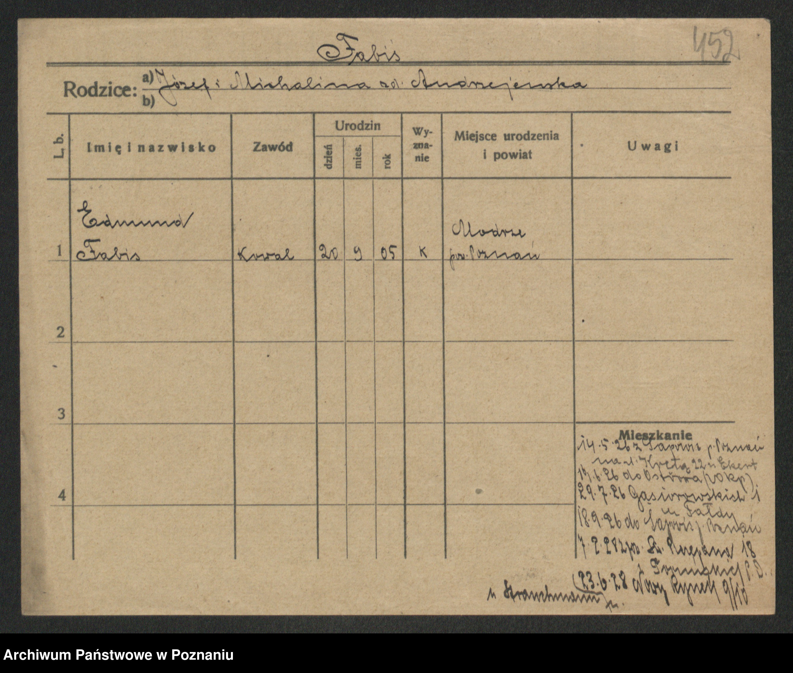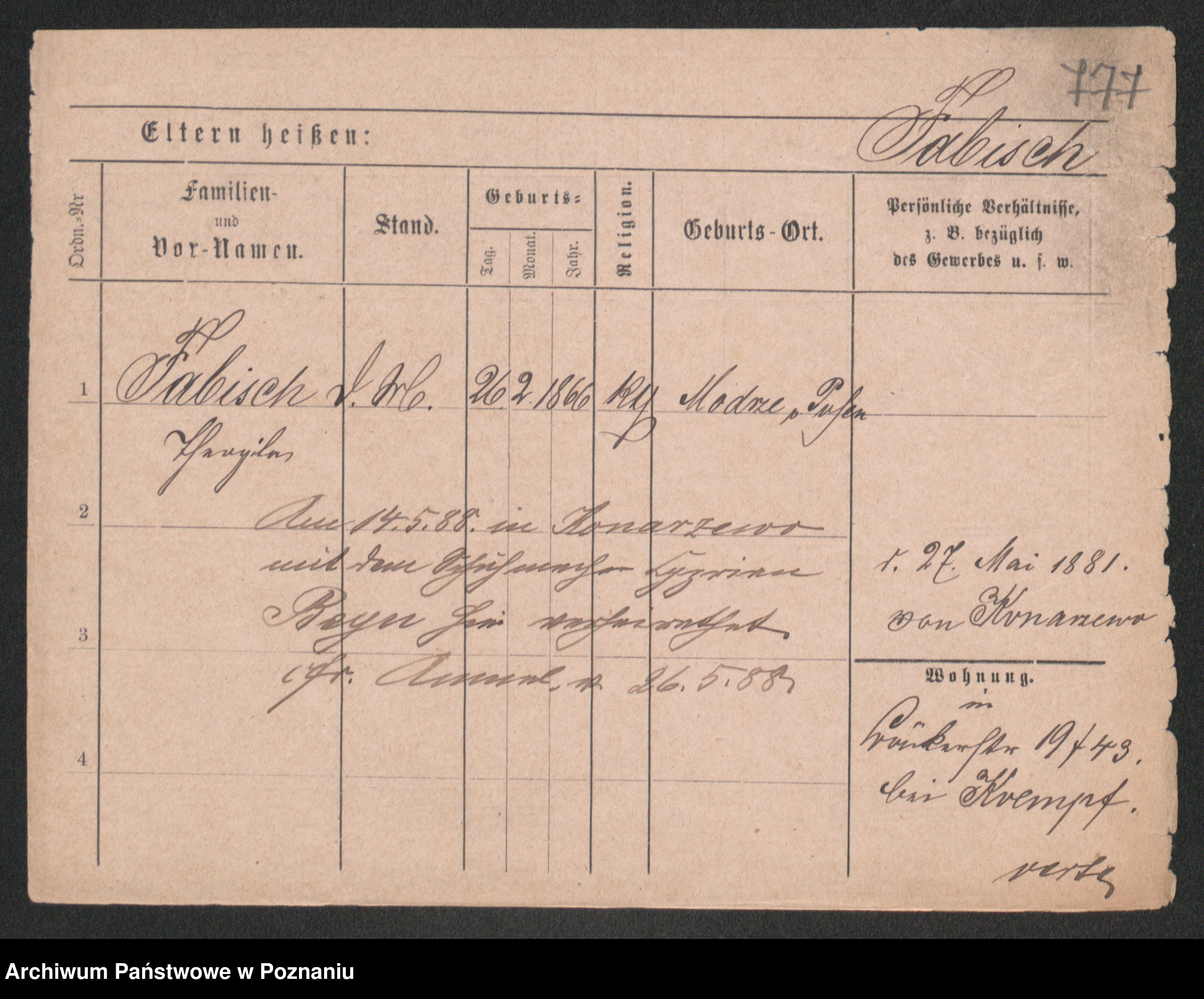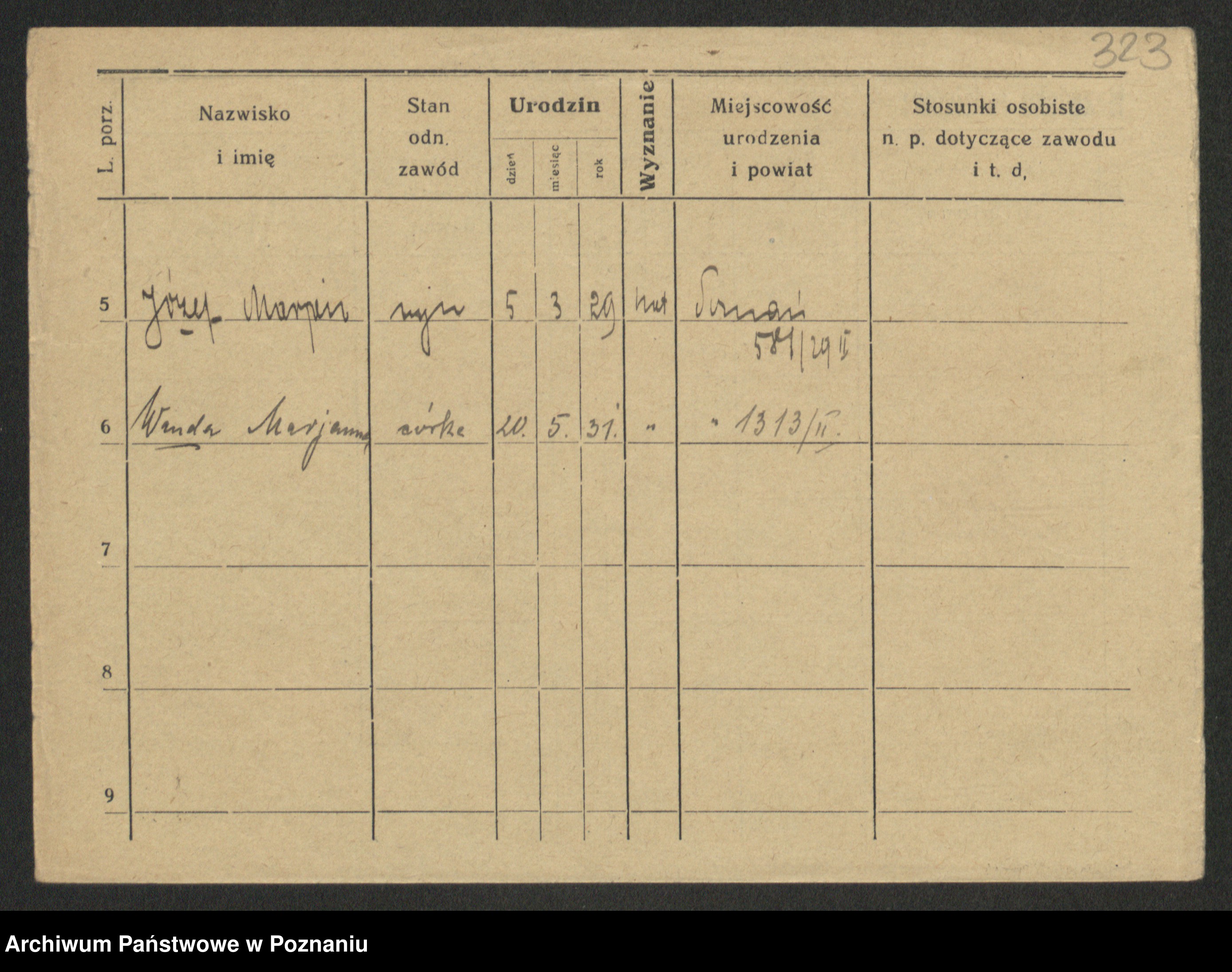 Podgląd karty osobowej dostępny jest po kliknięciu na nazwisko lub ikonkę karty. Można dokonywać powiększenia (ikony na górze) lub przechodzić między kolejnymi skanami (strzałki po bokach).