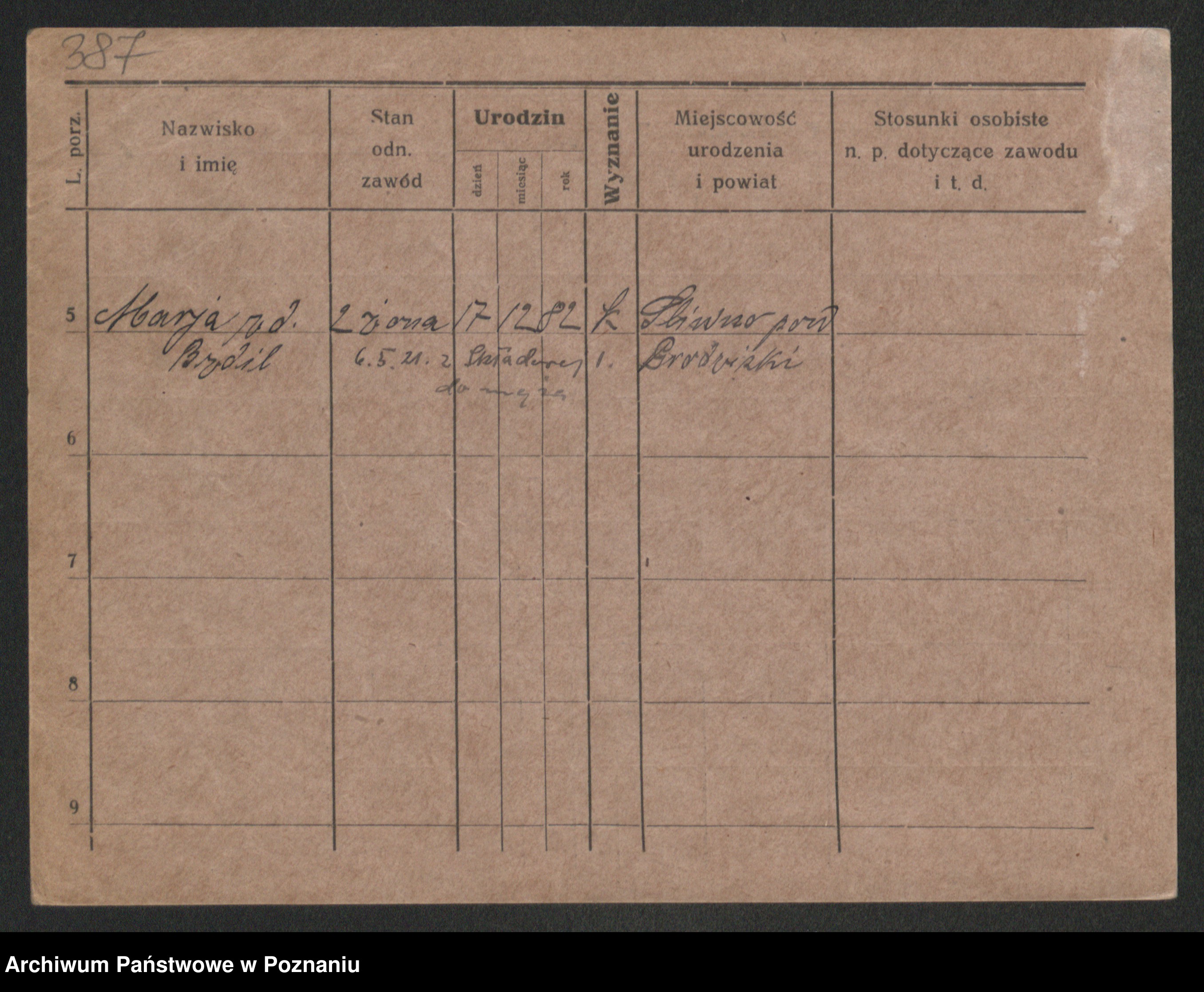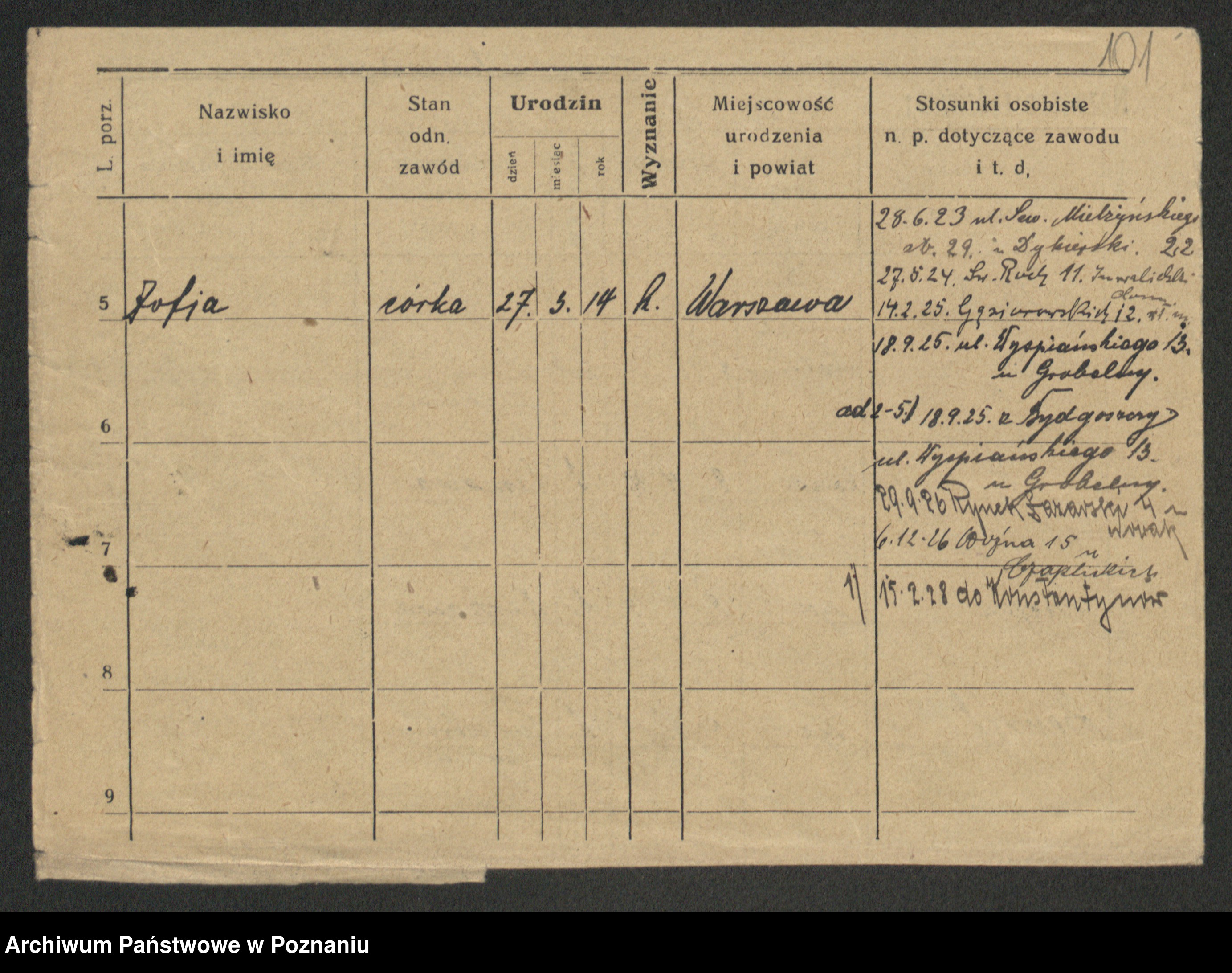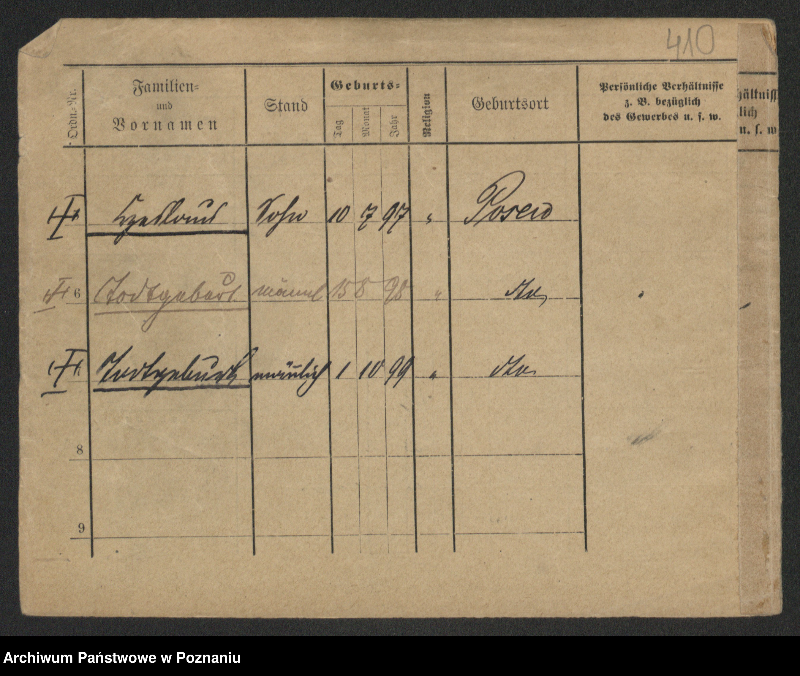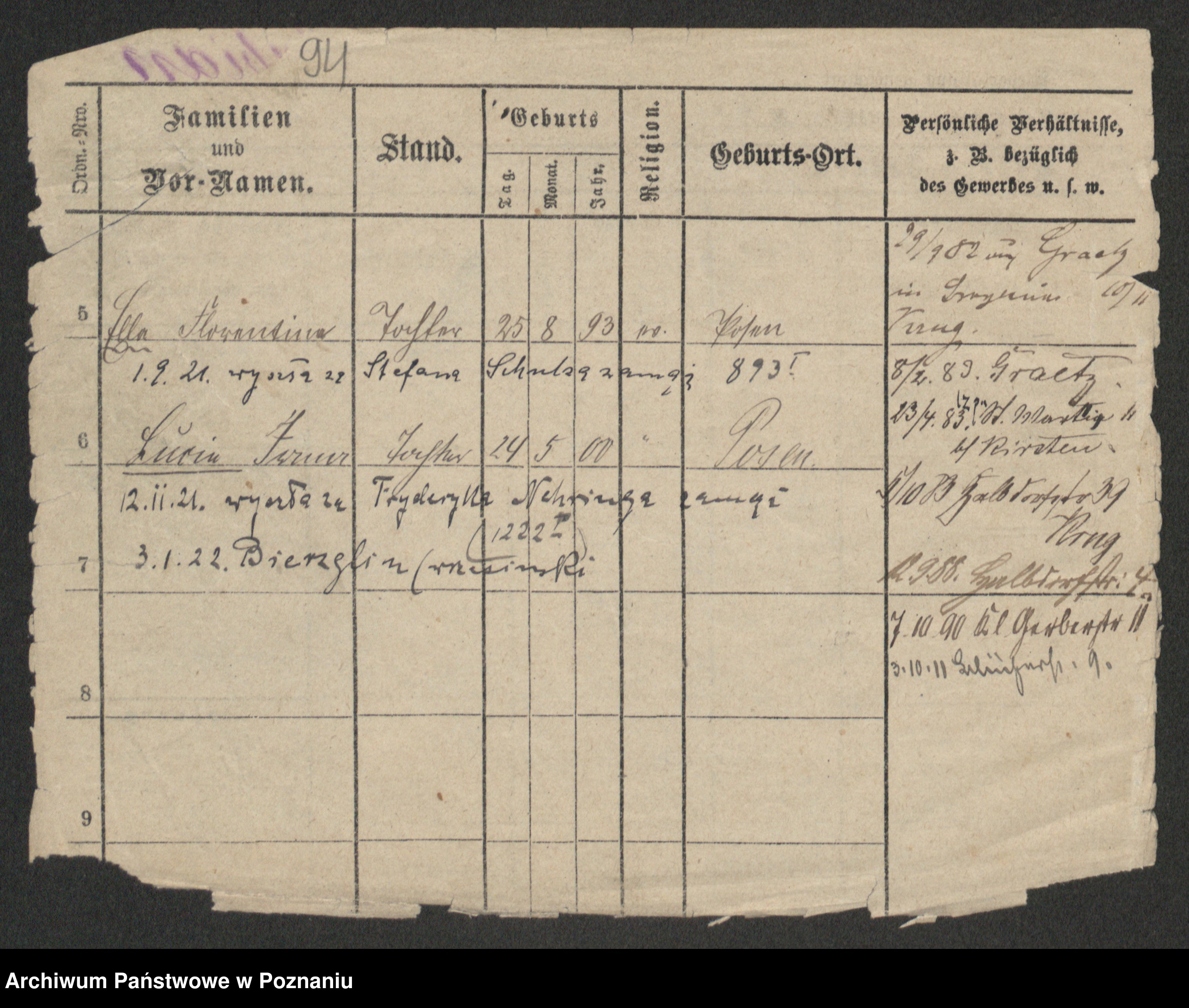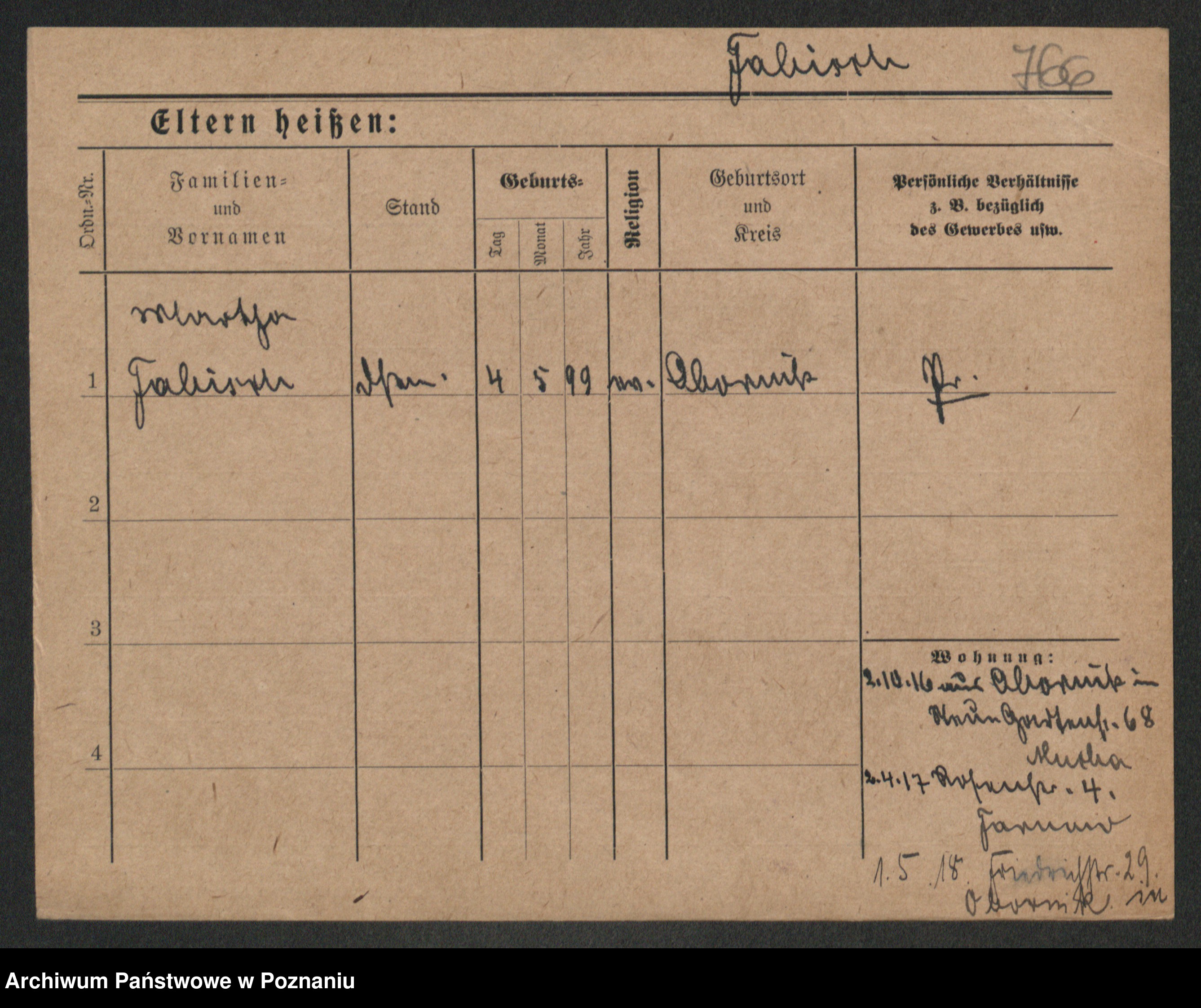 Podgląd karty osobowej dostępny jest po kliknięciu na nazwisko lub ikonkę karty. Można dokonywać powiększenia (ikony na górze) lub przechodzić między kolejnymi skanami (strzałki po bokach).