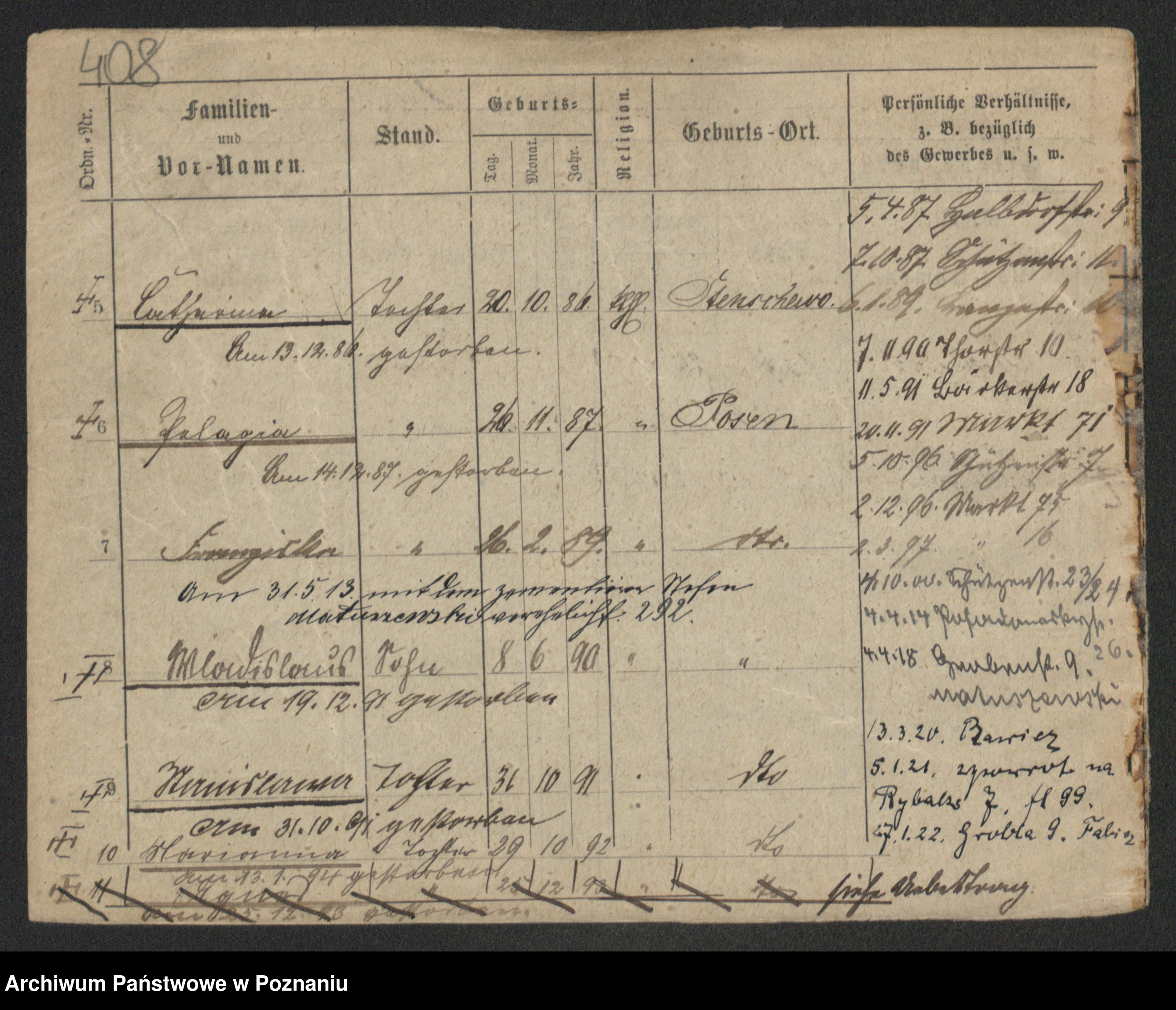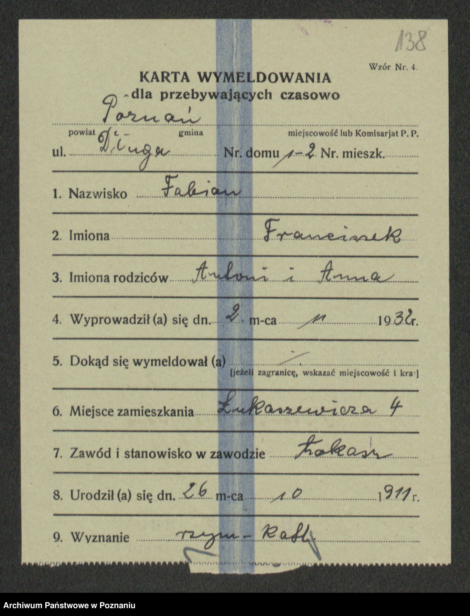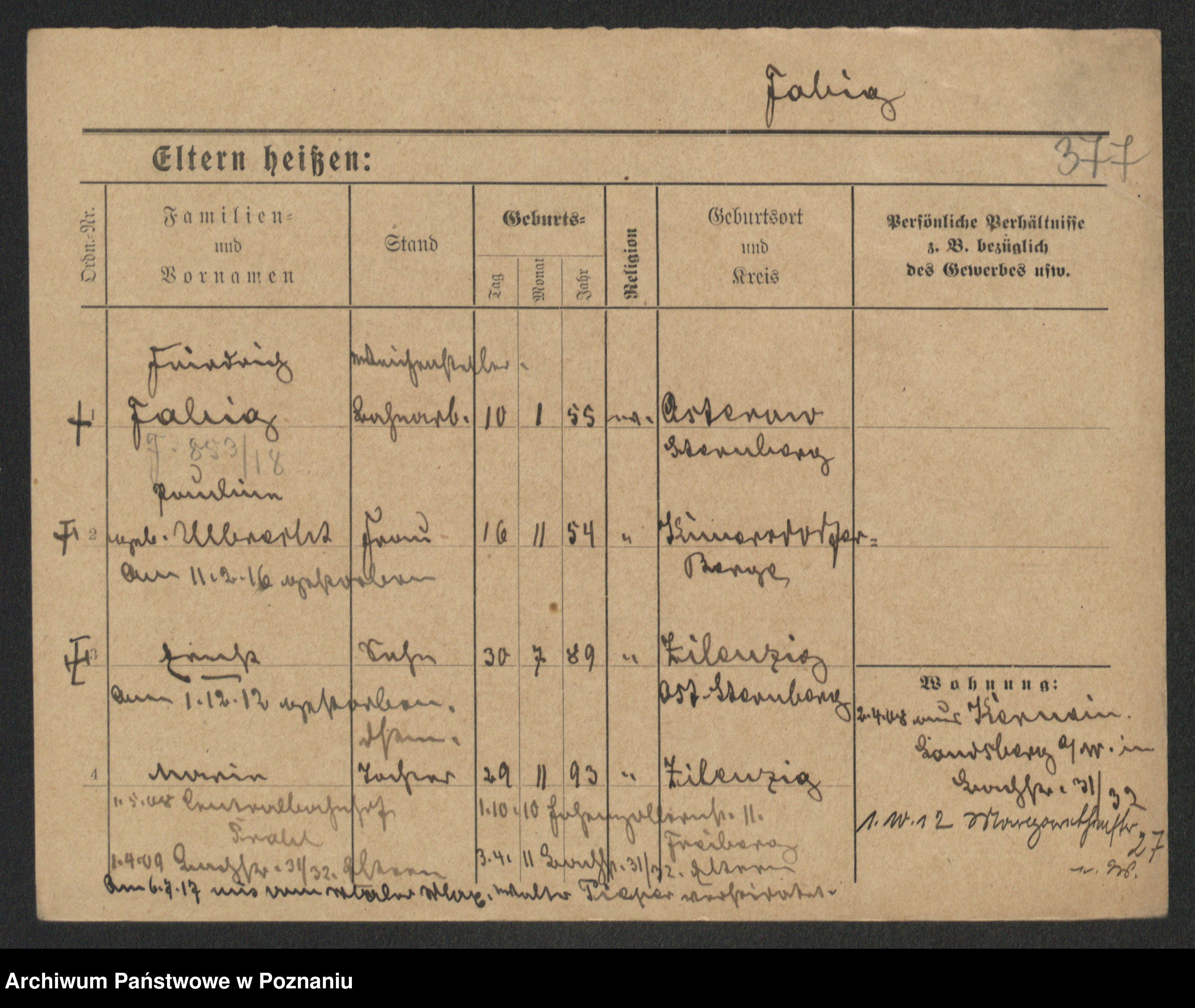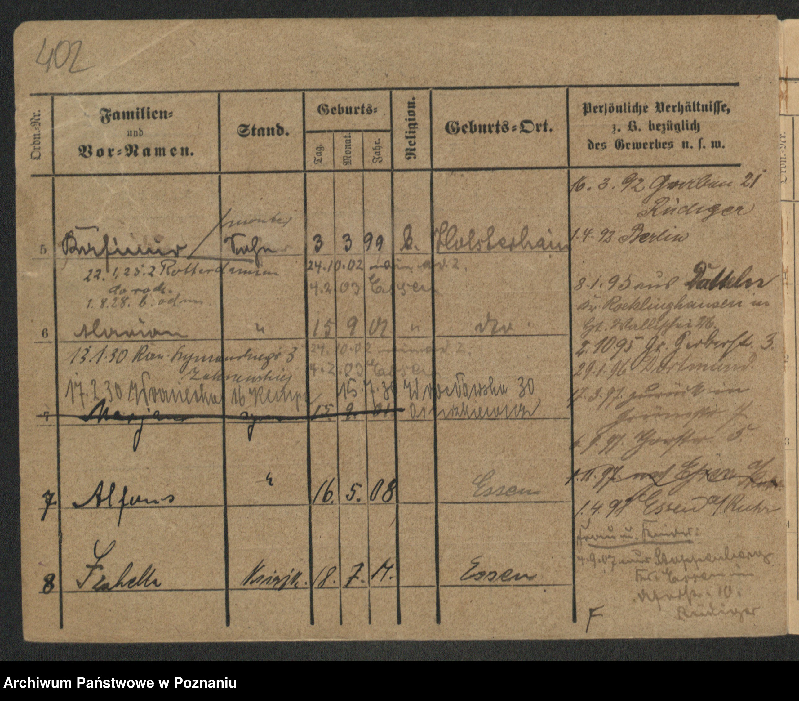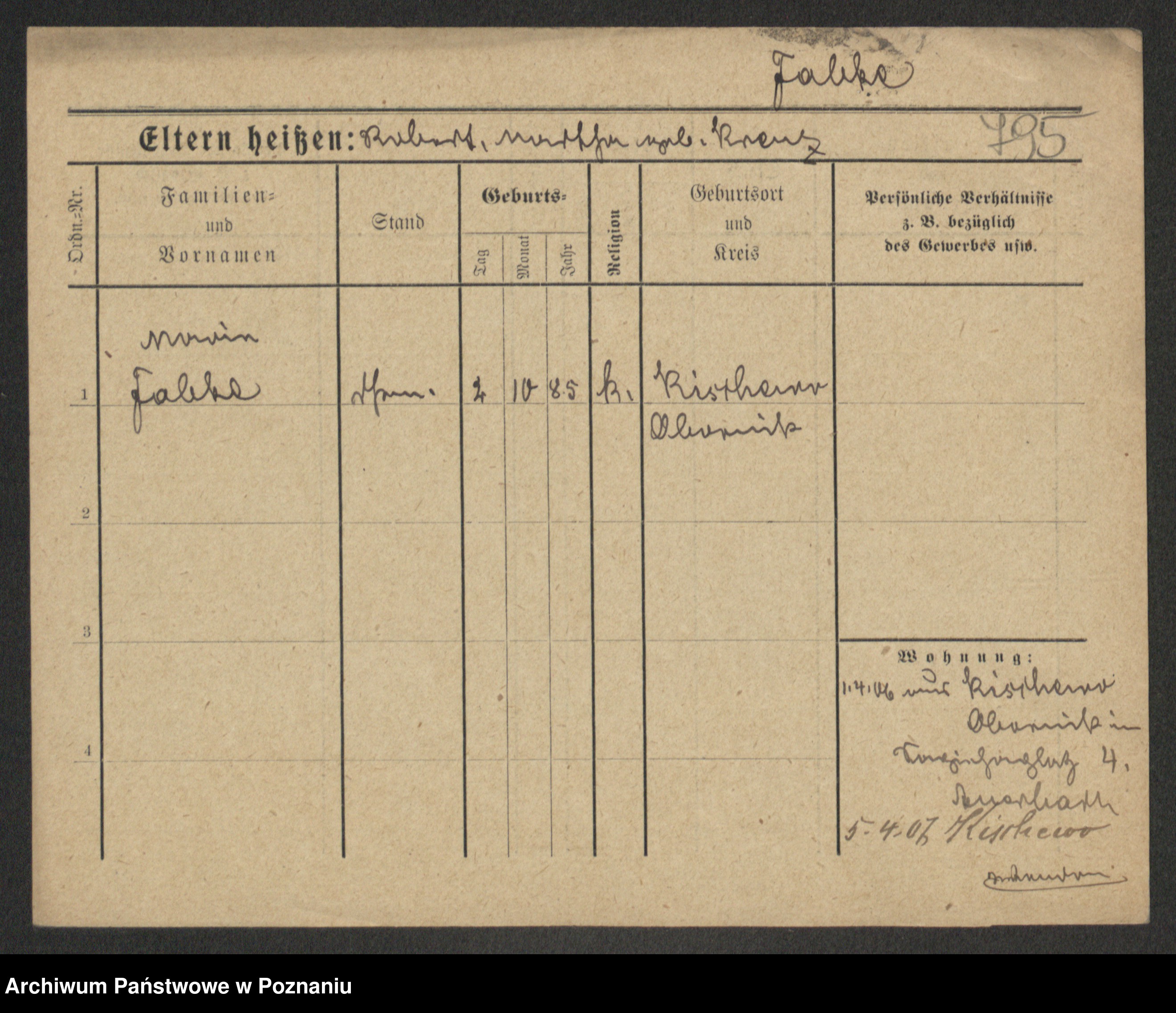 Podgląd karty osobowej dostępny jest po kliknięciu na nazwisko lub ikonkę karty. Można dokonywać powiększenia (ikony na górze) lub przechodzić między kolejnymi skanami (strzałki po bokach).