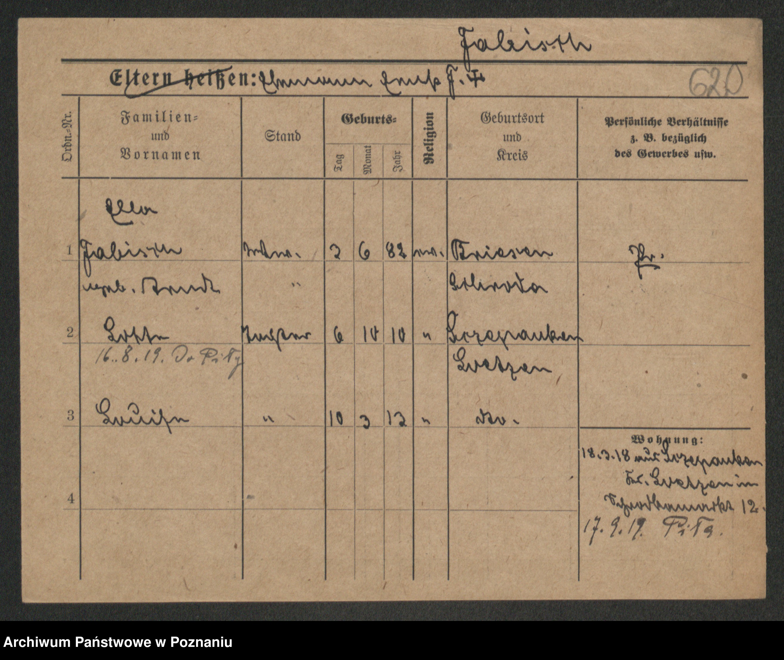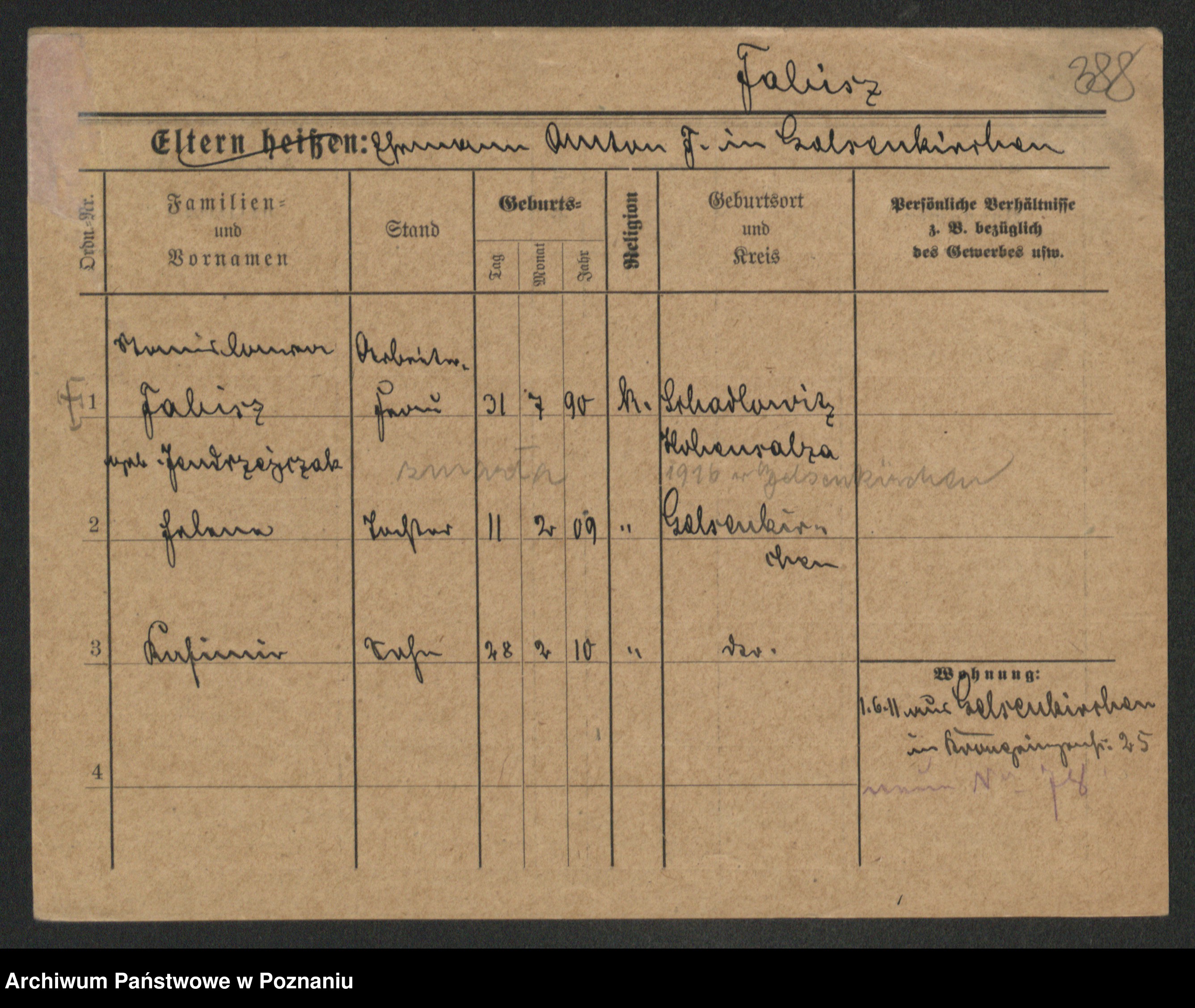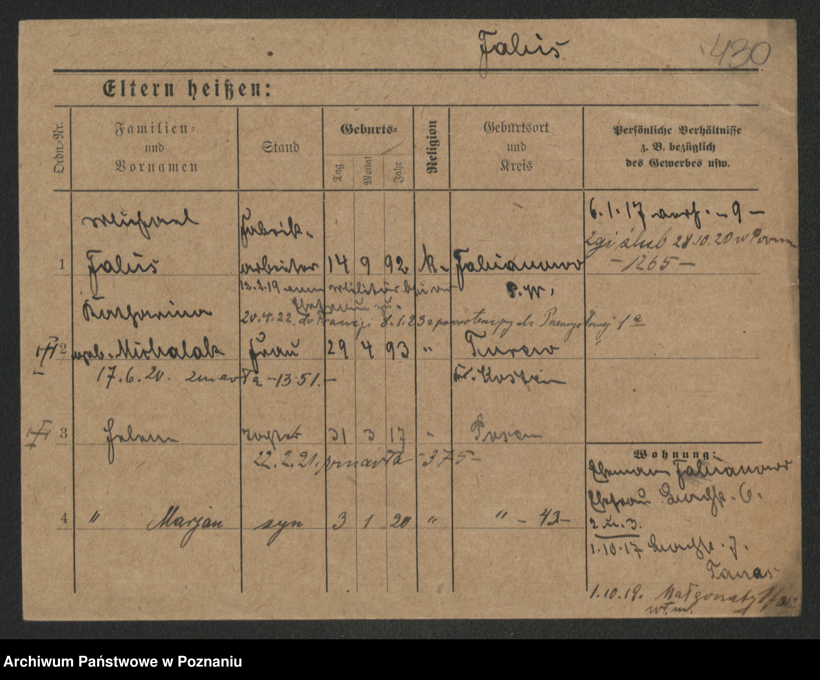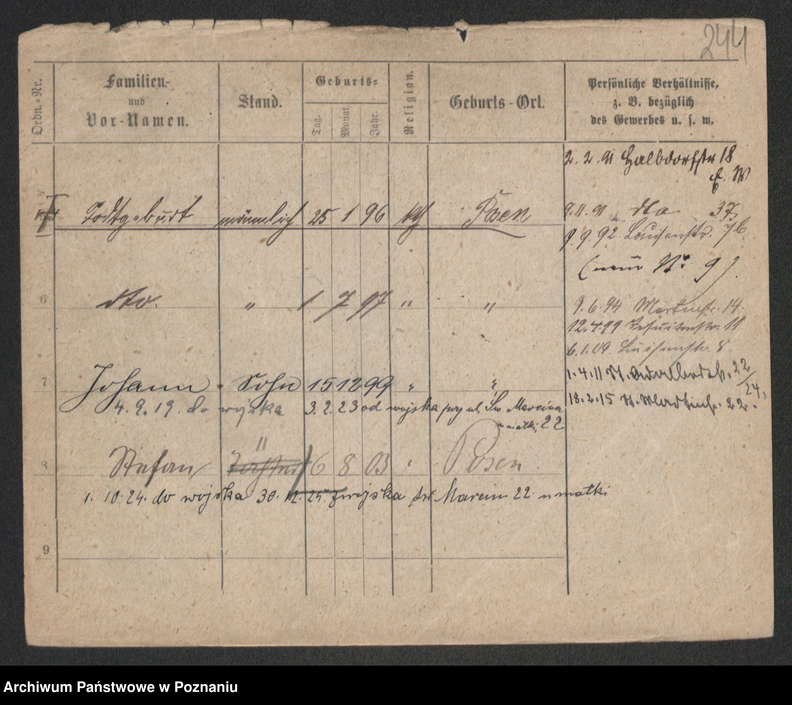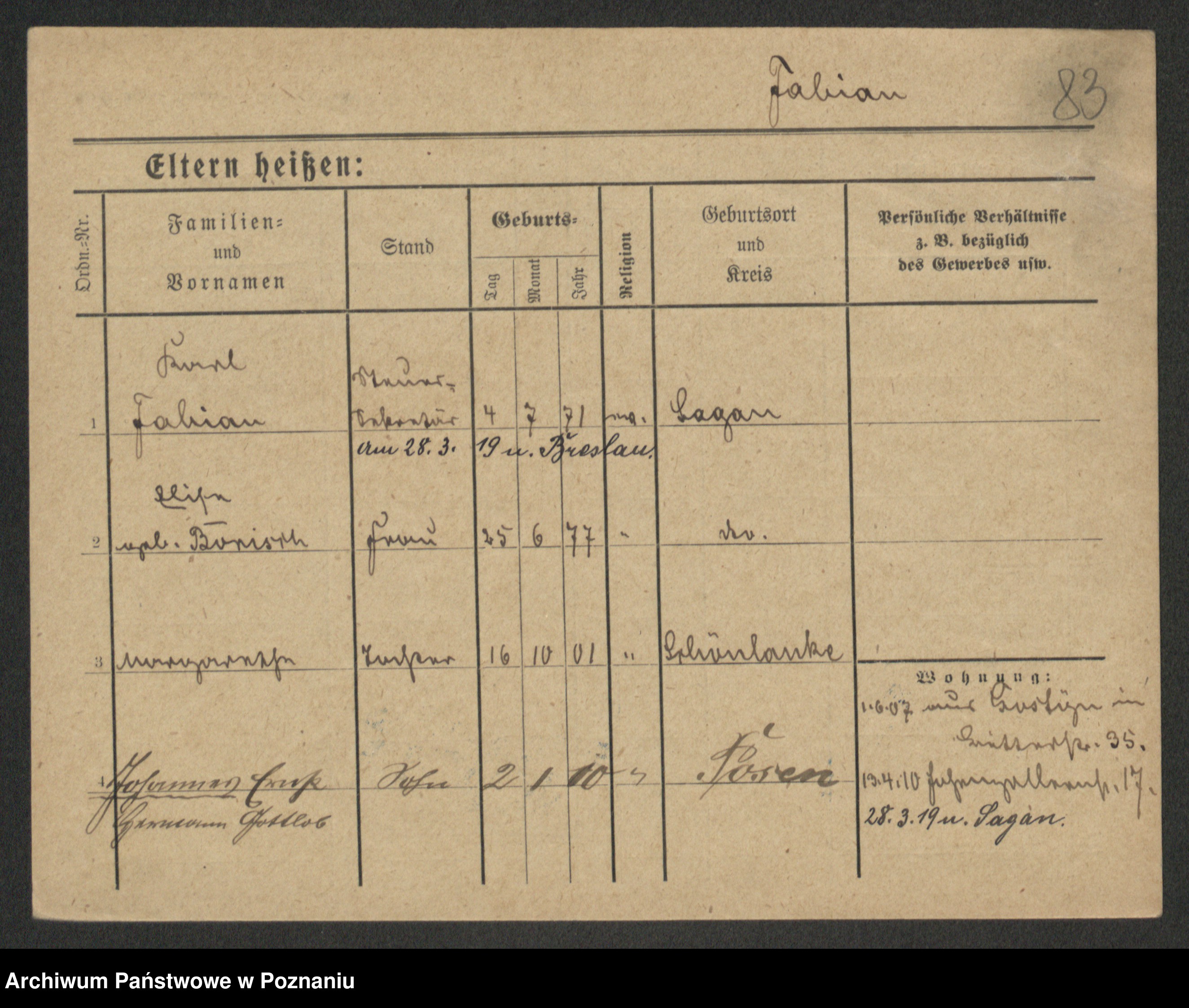 Podgląd karty osobowej dostępny jest po kliknięciu na nazwisko lub ikonkę karty. Można dokonywać powiększenia (ikony na górze) lub przechodzić między kolejnymi skanami (strzałki po bokach).