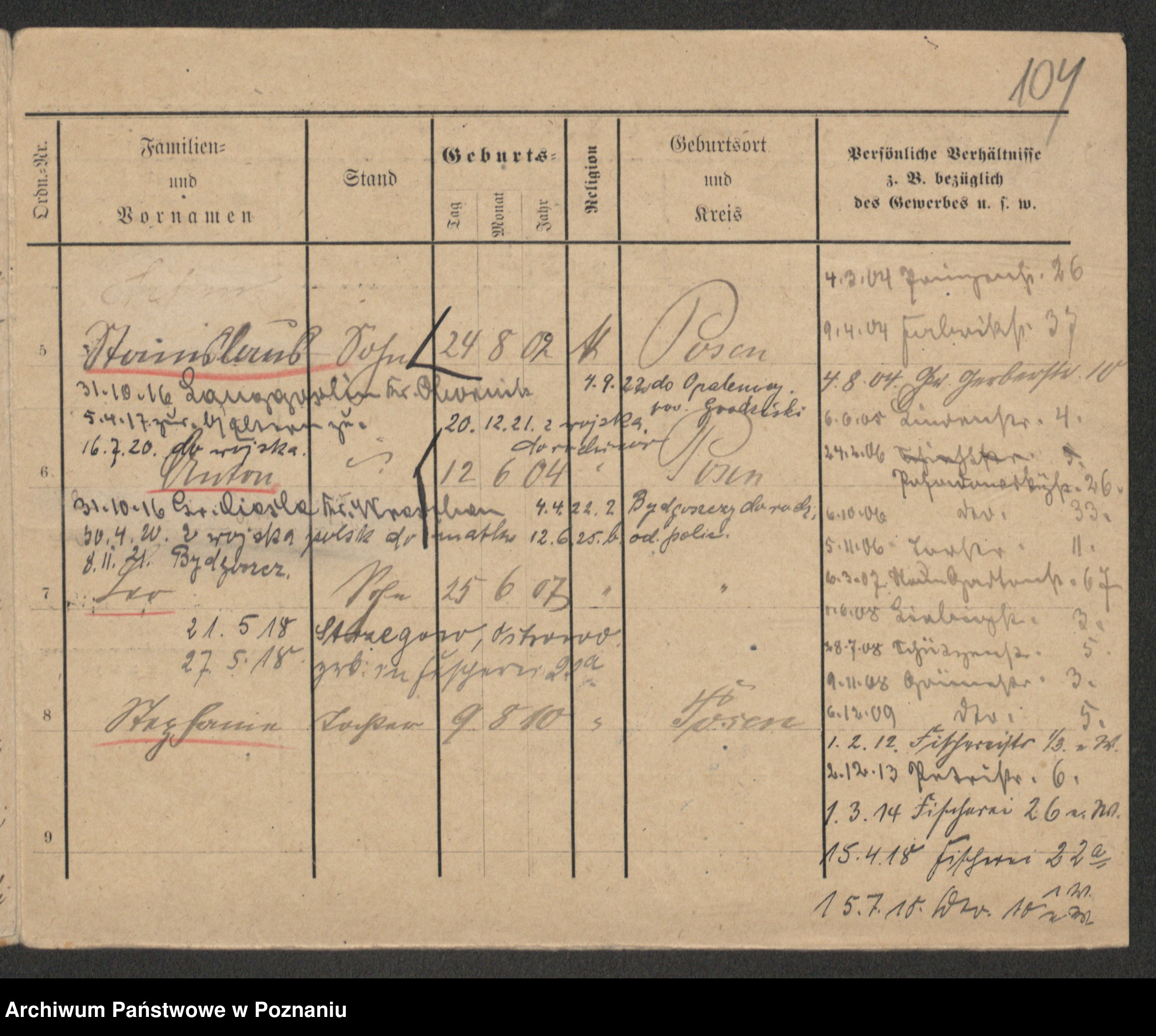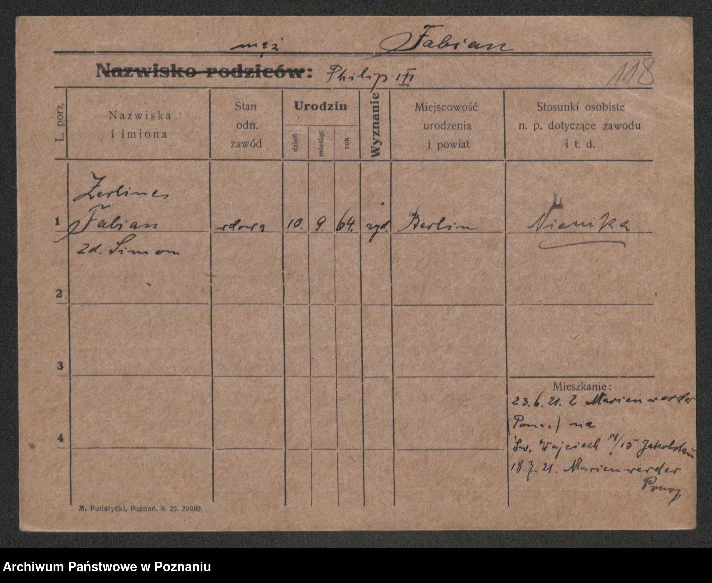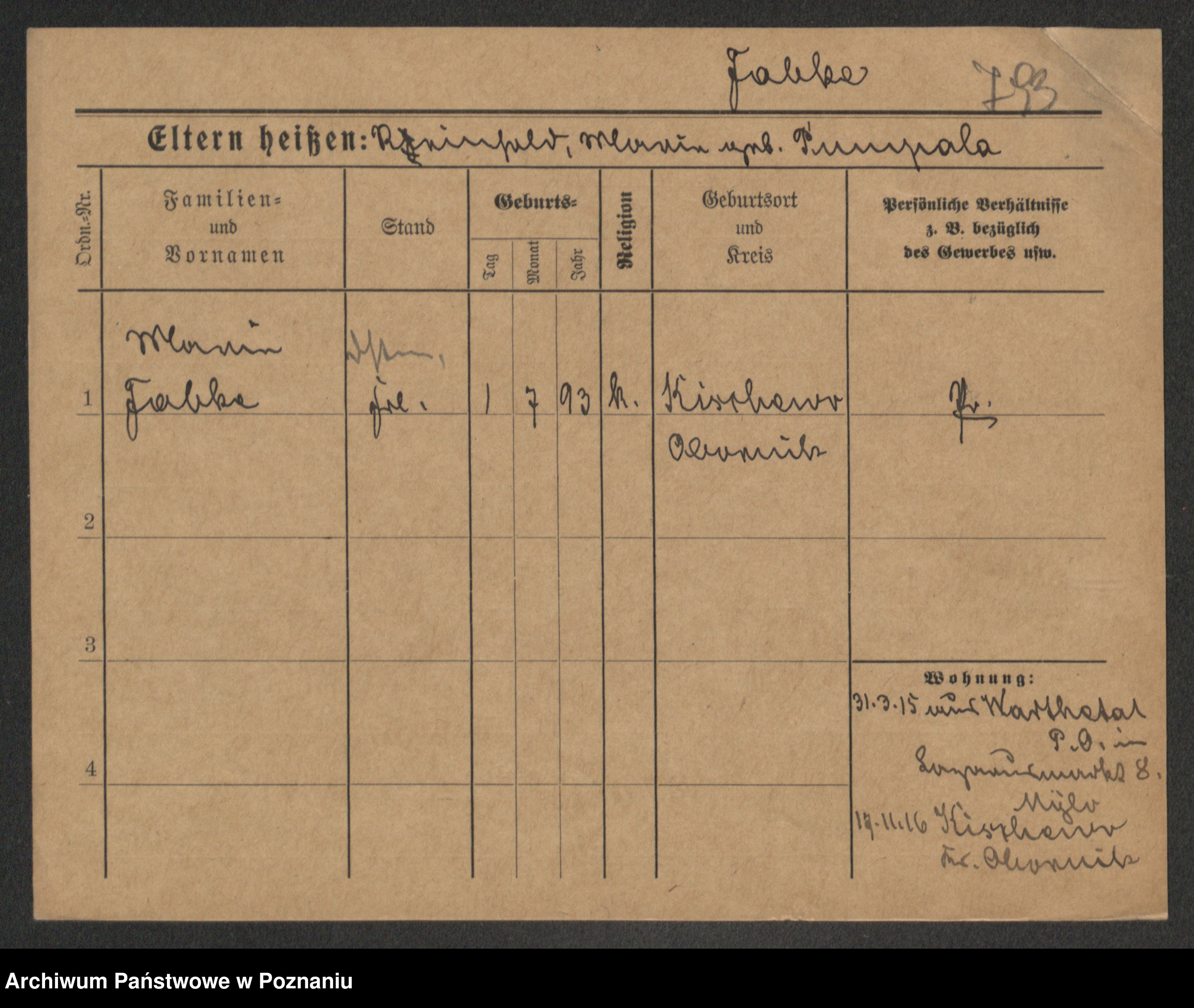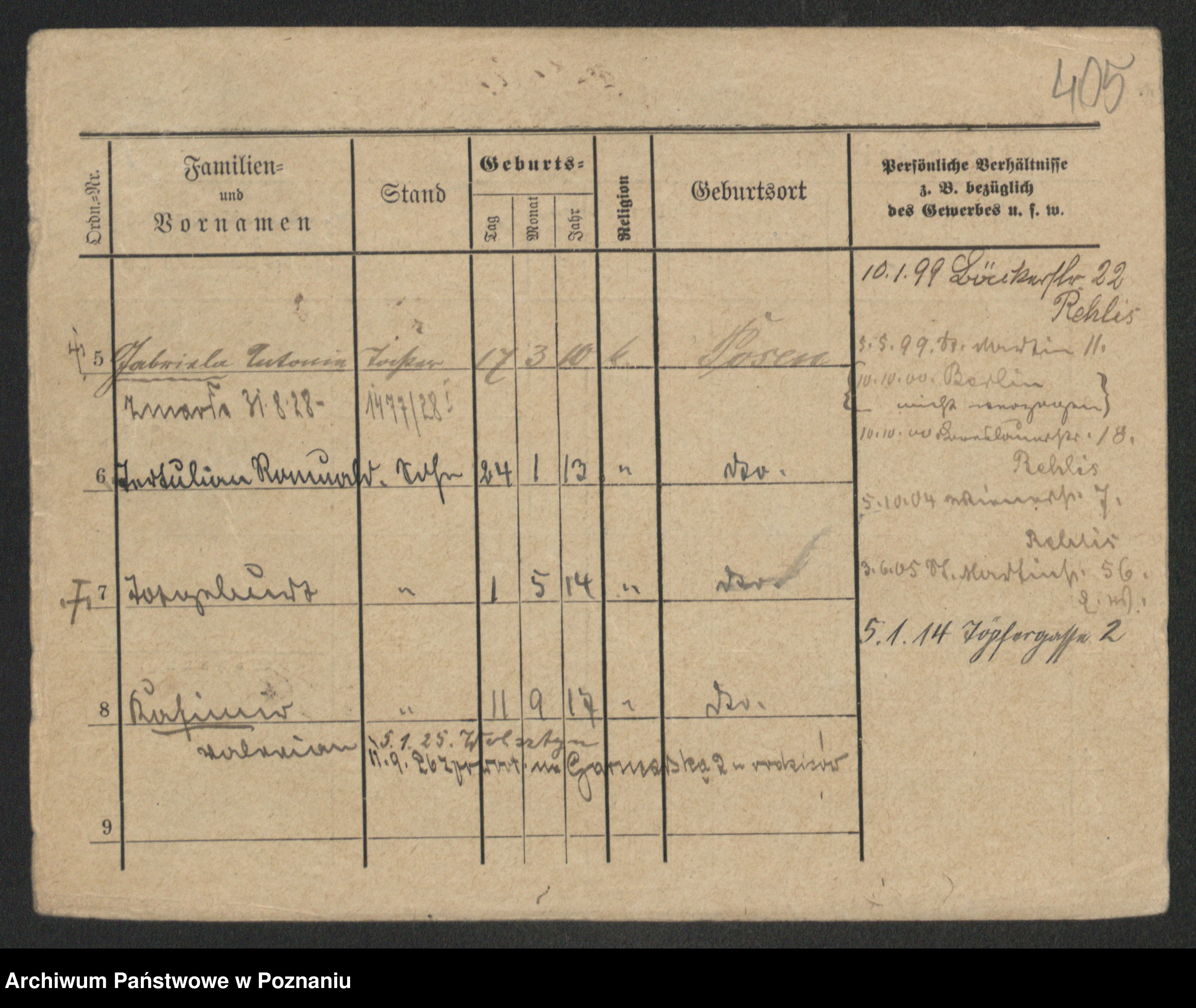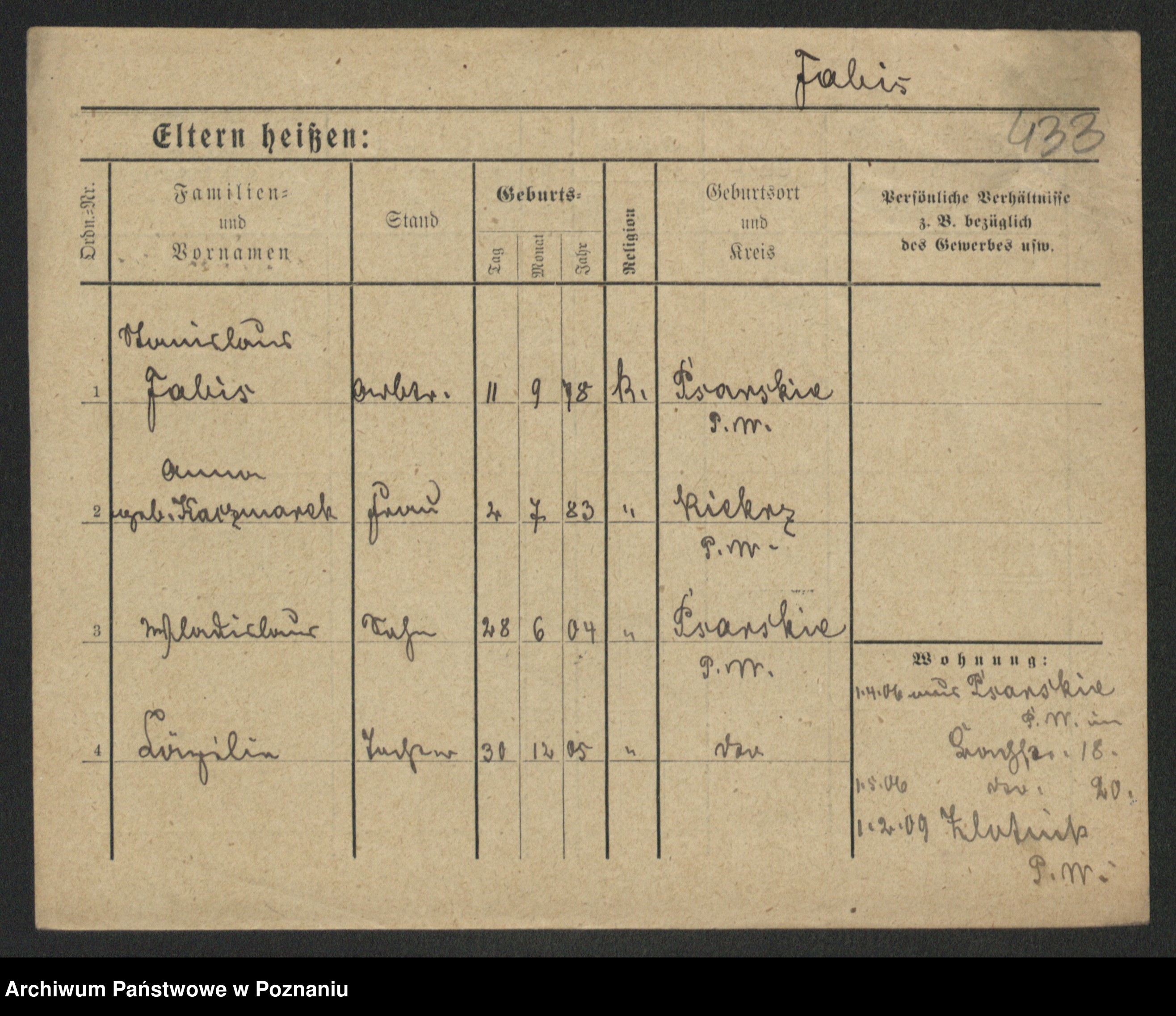 Podgląd karty osobowej dostępny jest po kliknięciu na nazwisko lub ikonkę karty. Można dokonywać powiększenia (ikony na górze) lub przechodzić między kolejnymi skanami (strzałki po bokach).