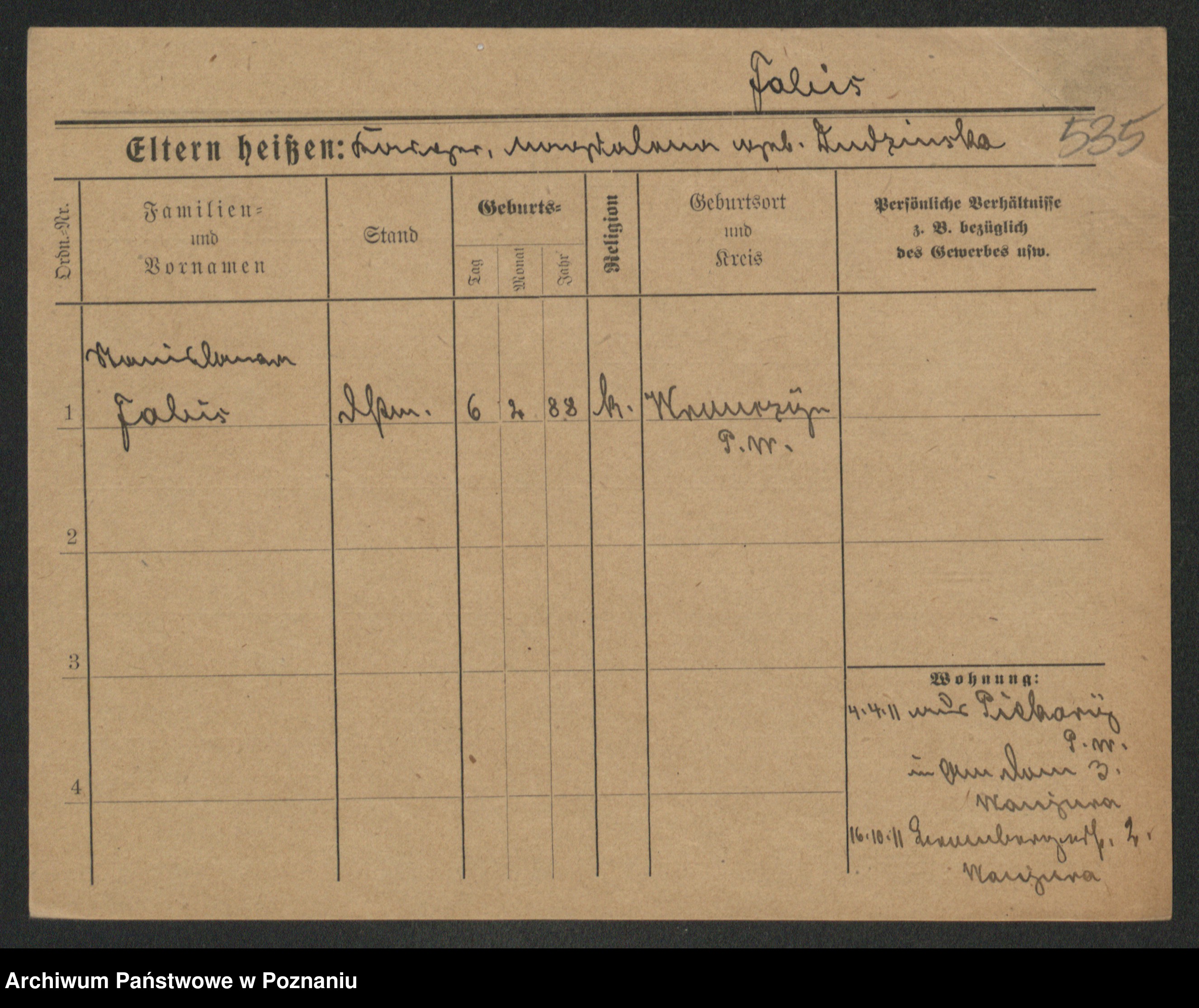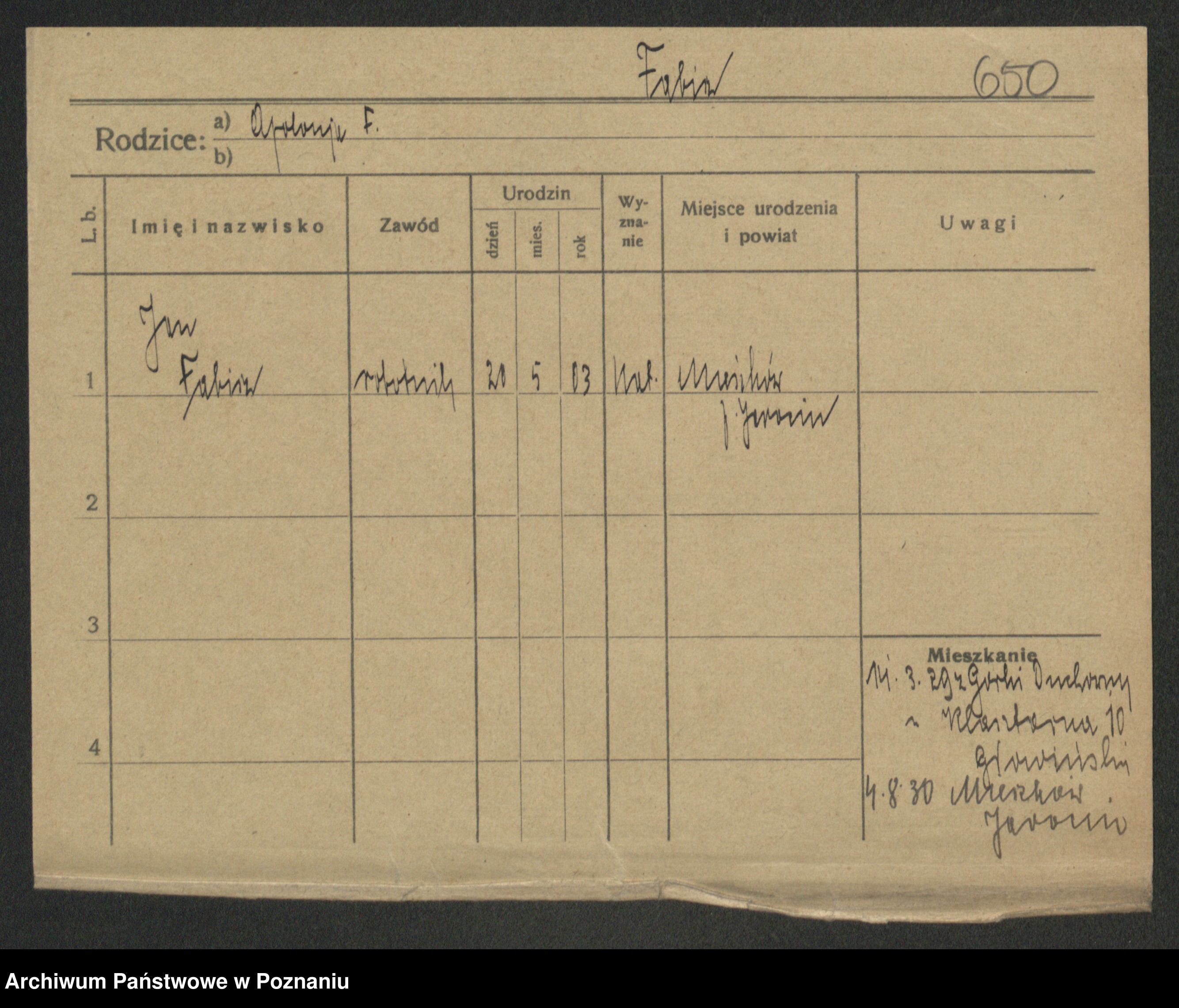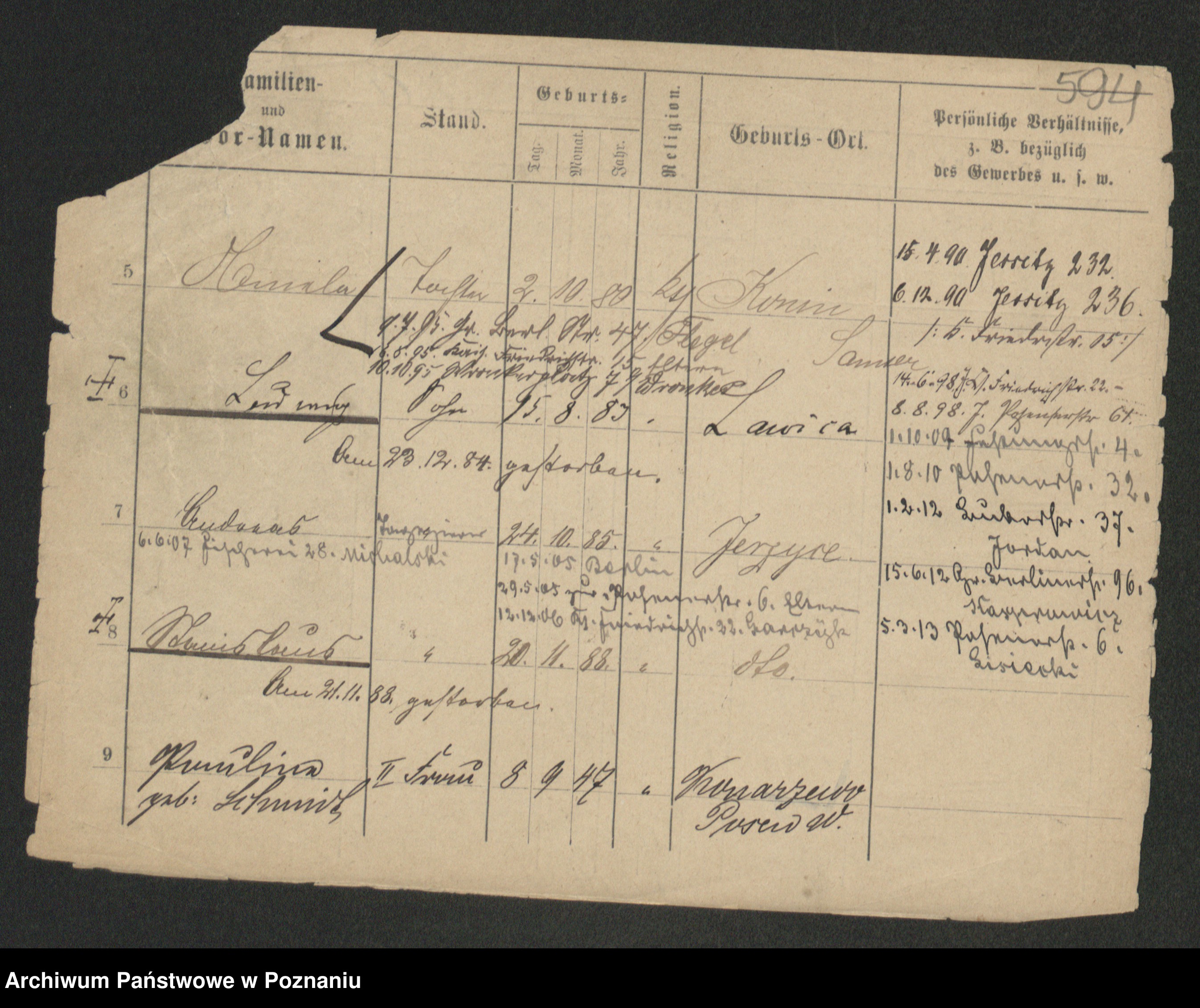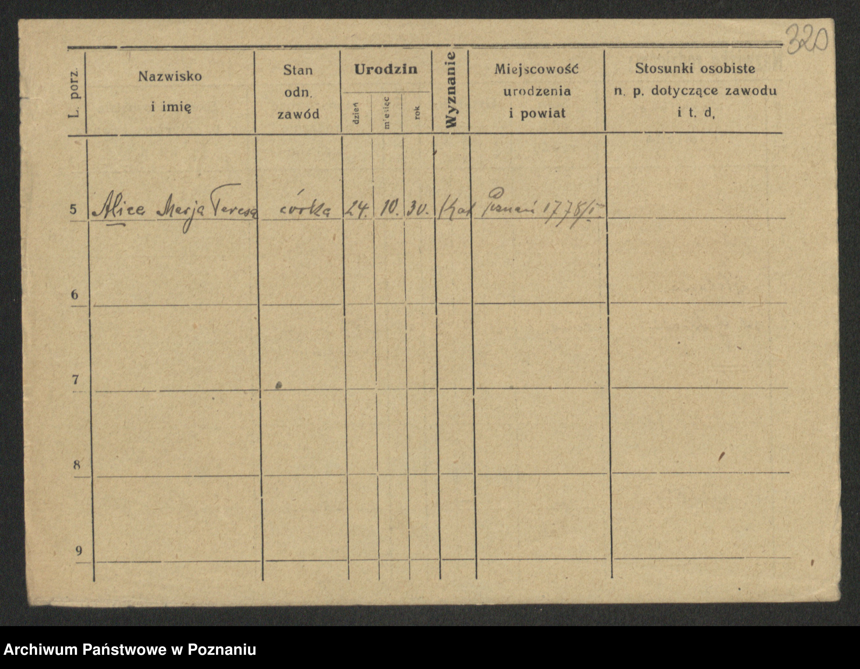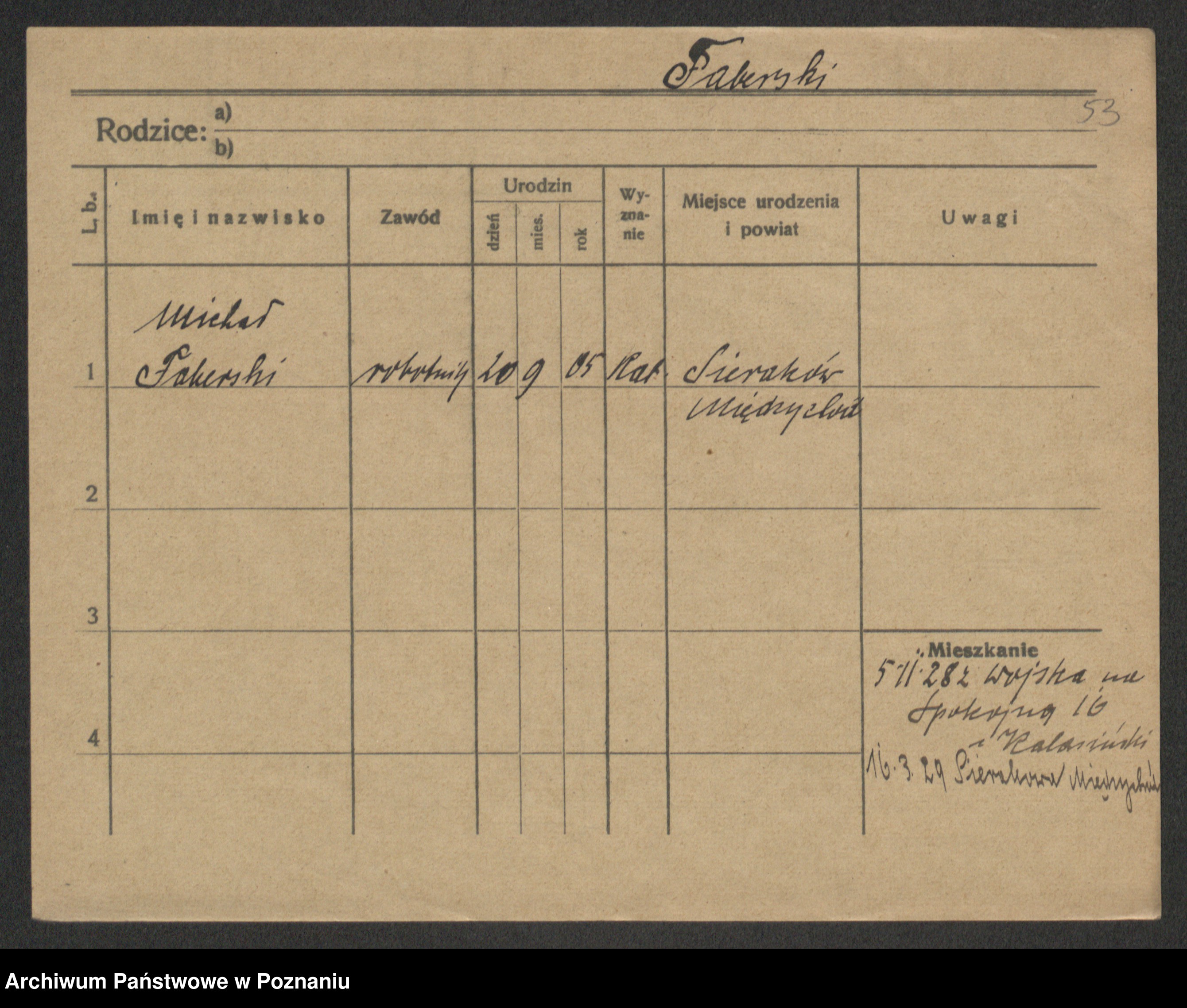 Podgląd karty osobowej dostępny jest po kliknięciu na nazwisko lub ikonkę karty. Można dokonywać powiększenia (ikony na górze) lub przechodzić między kolejnymi skanami (strzałki po bokach).