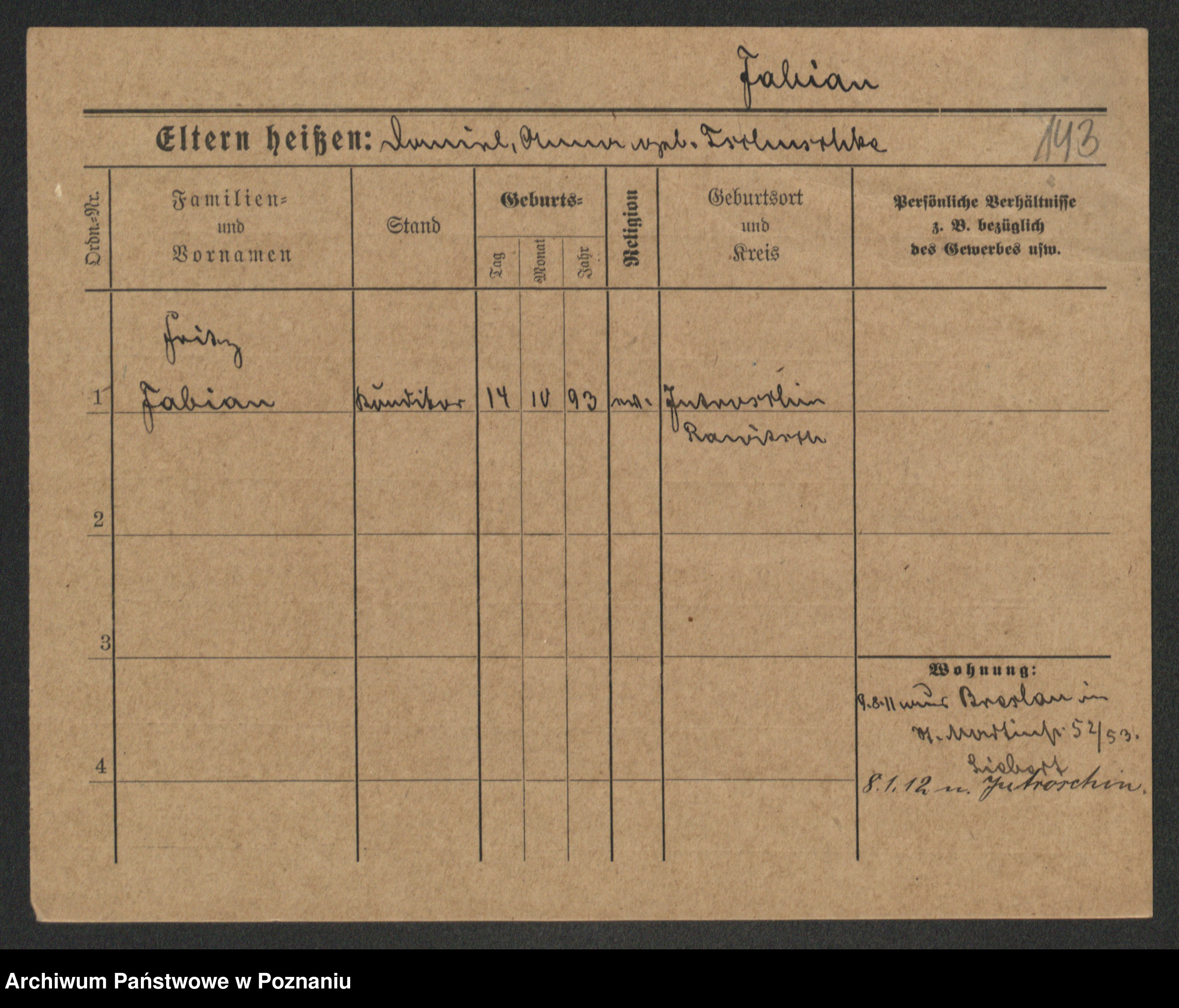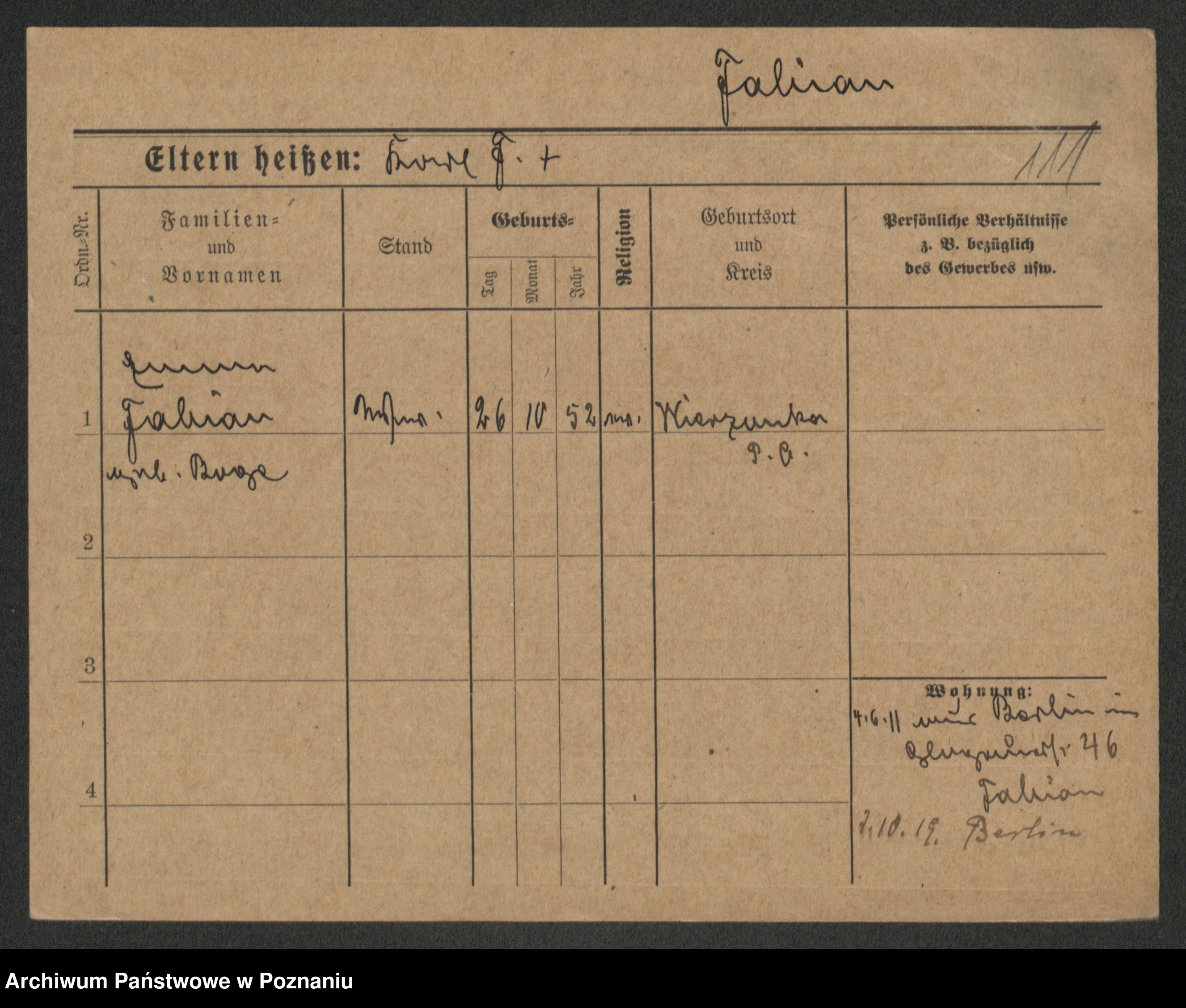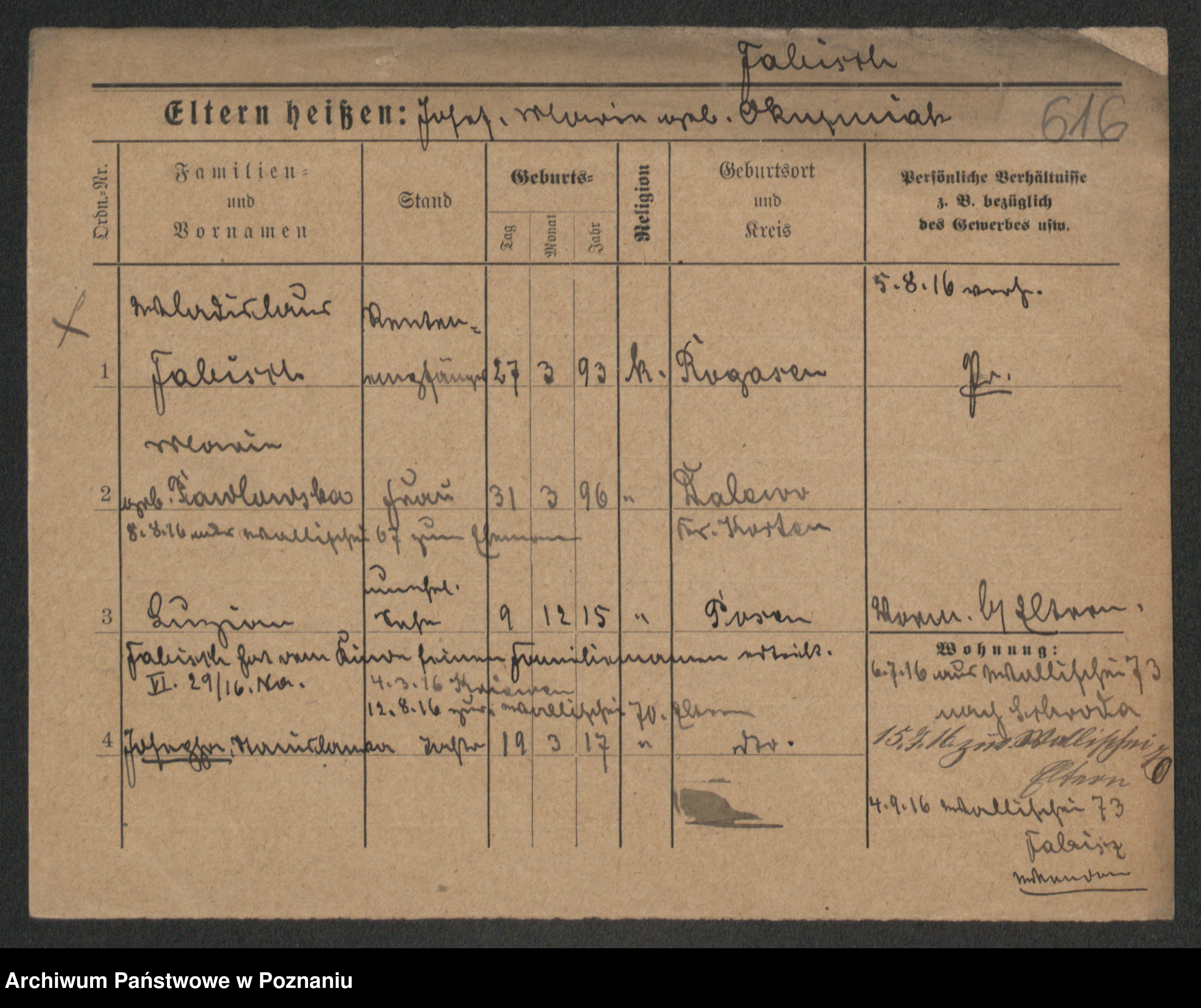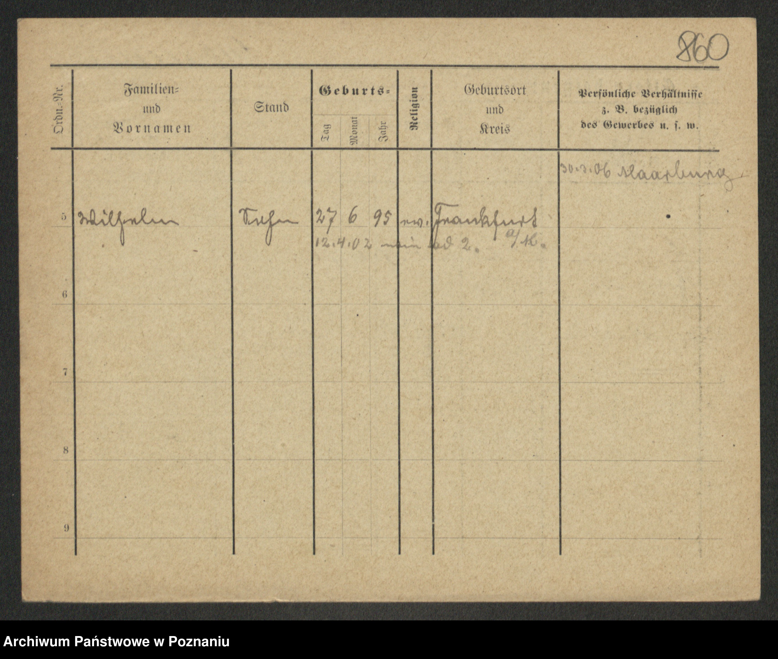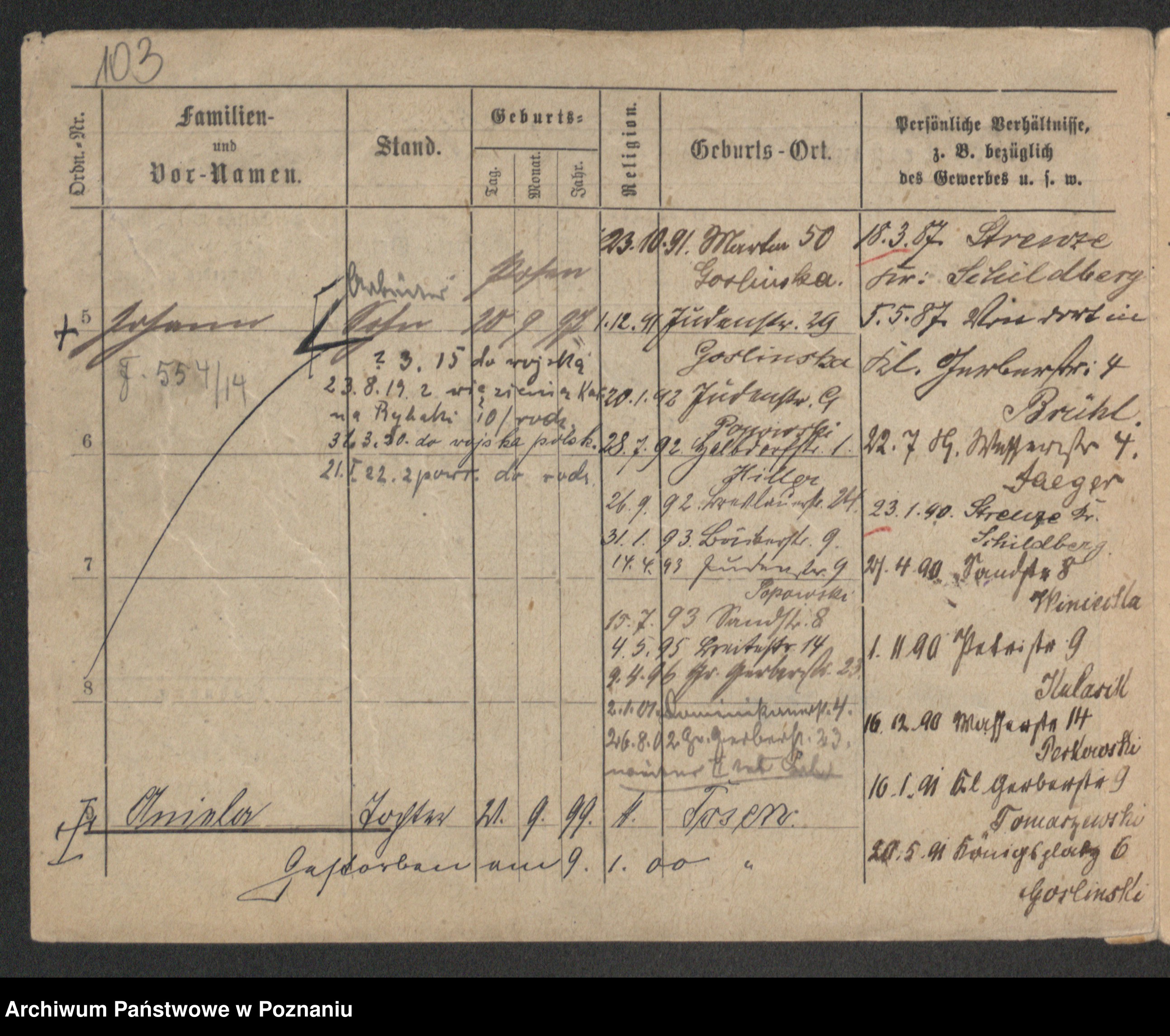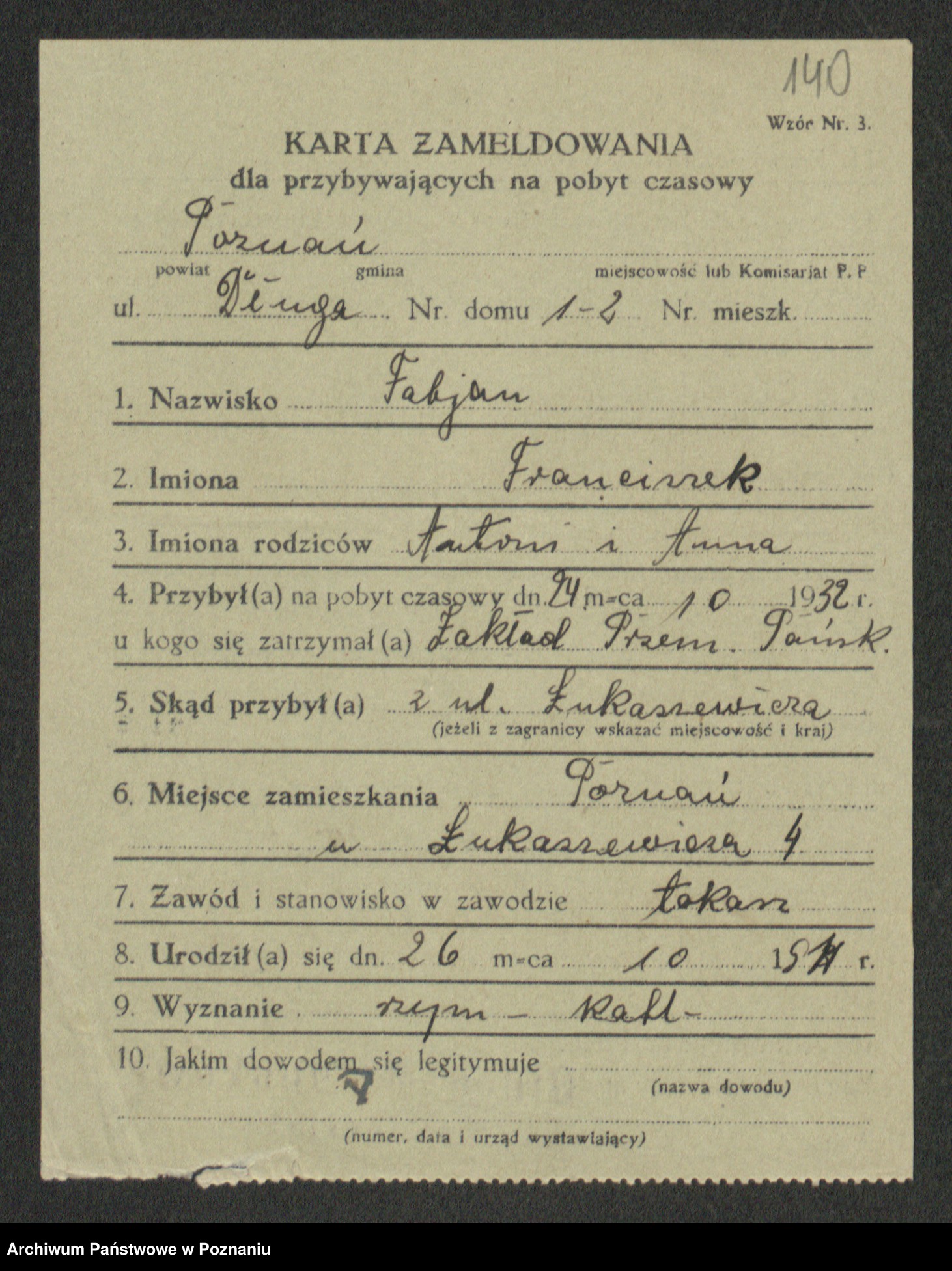 Podgląd karty osobowej dostępny jest po kliknięciu na nazwisko lub ikonkę karty. Można dokonywać powiększenia (ikony na górze) lub przechodzić między kolejnymi skanami (strzałki po bokach).