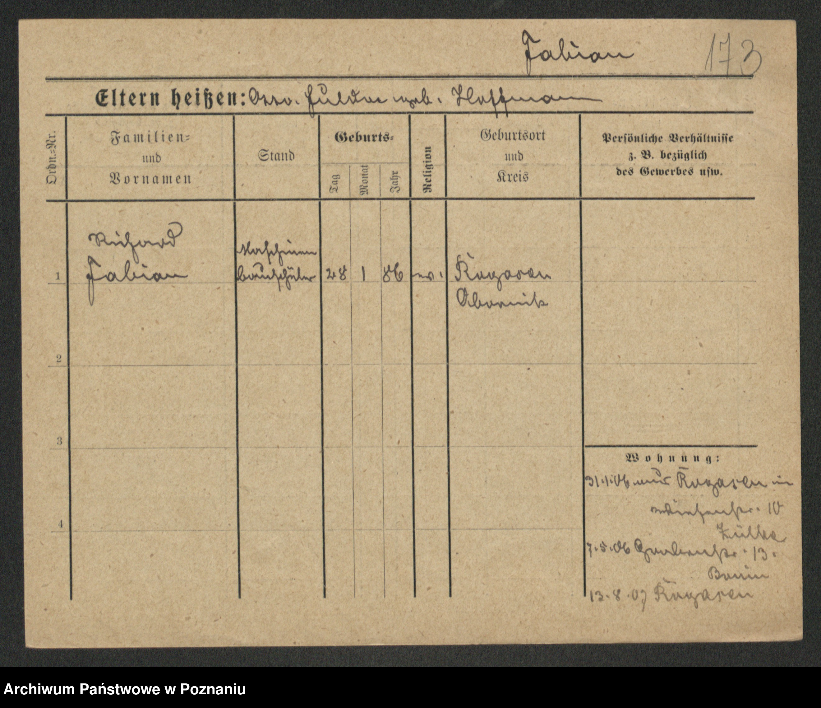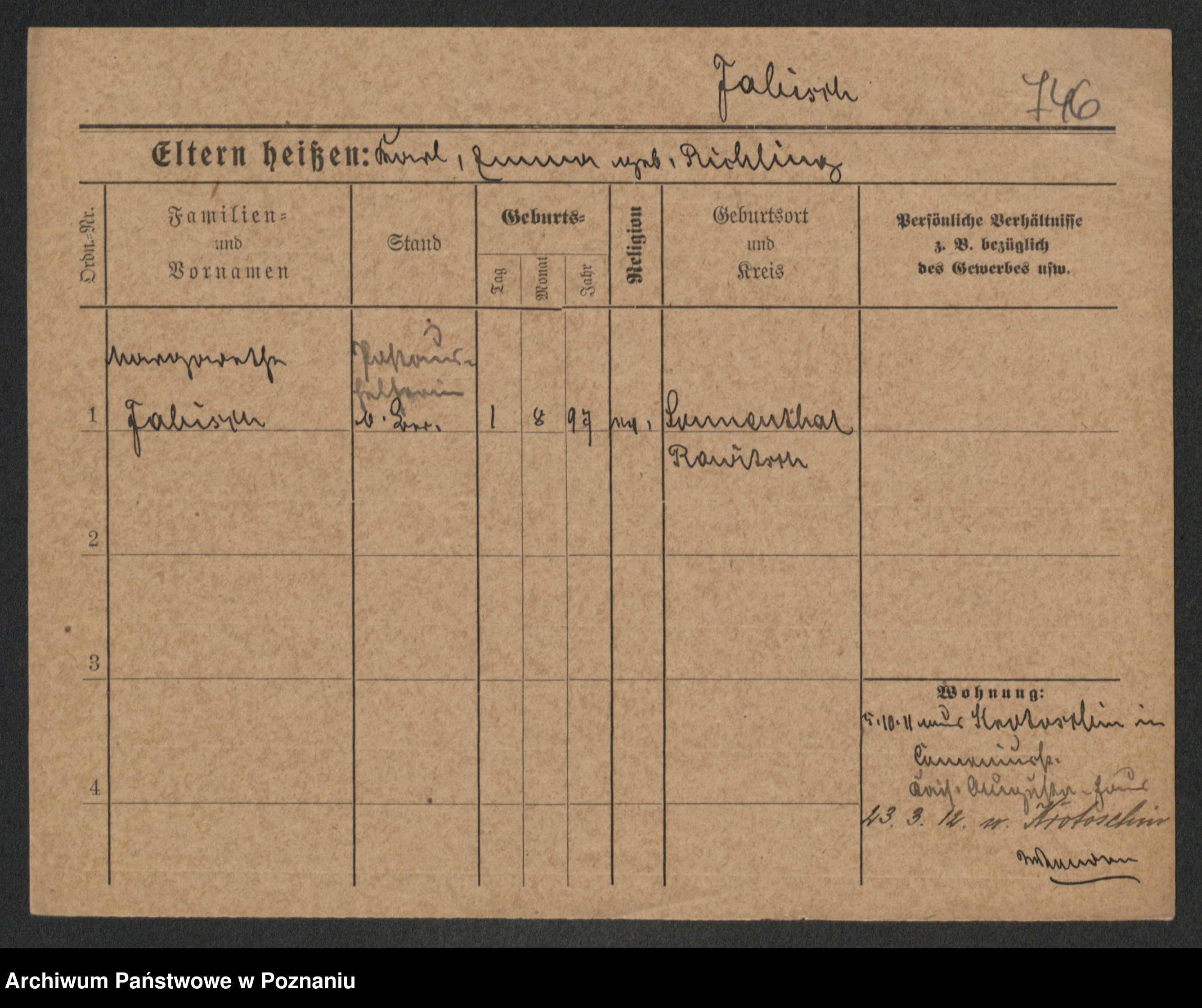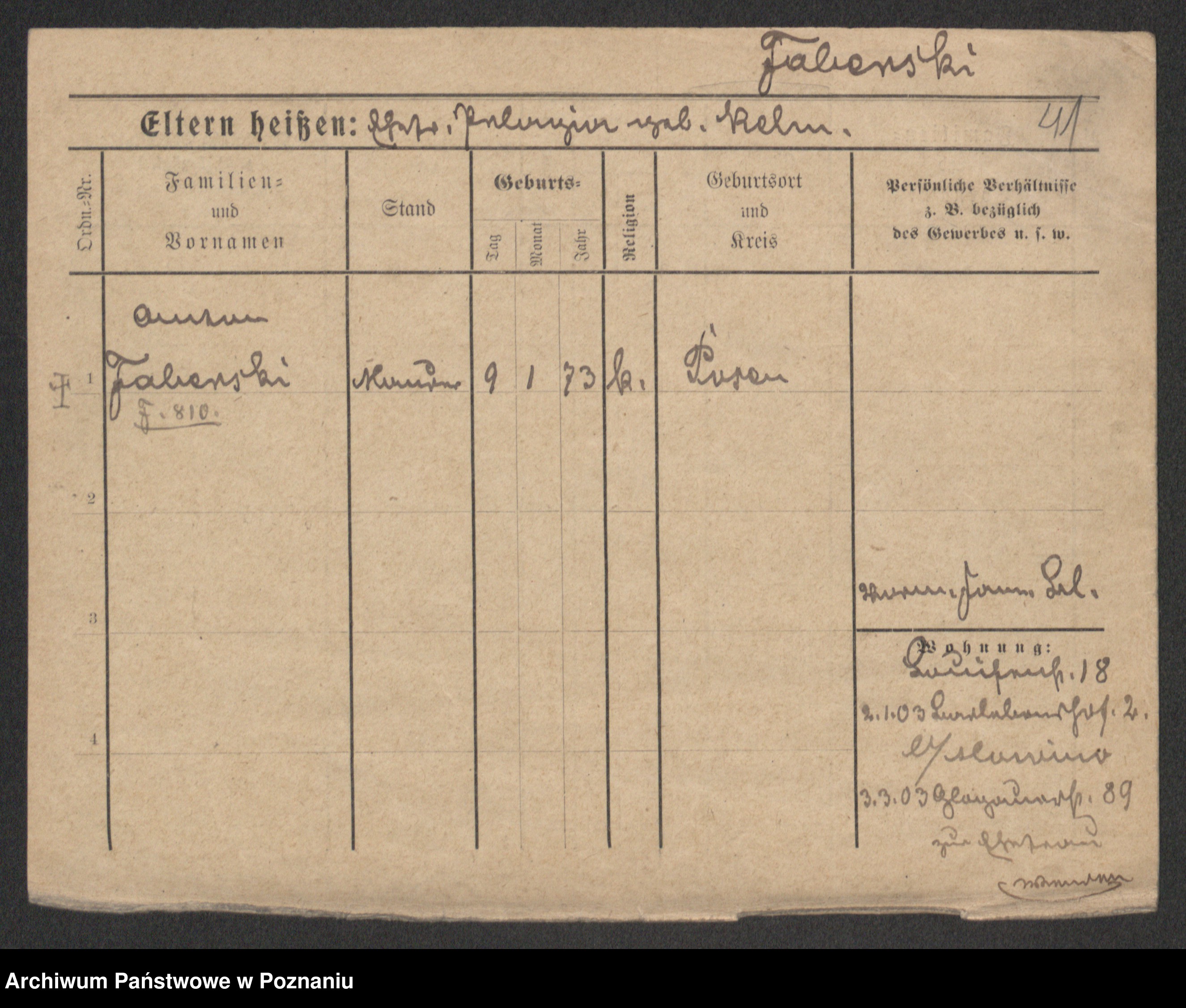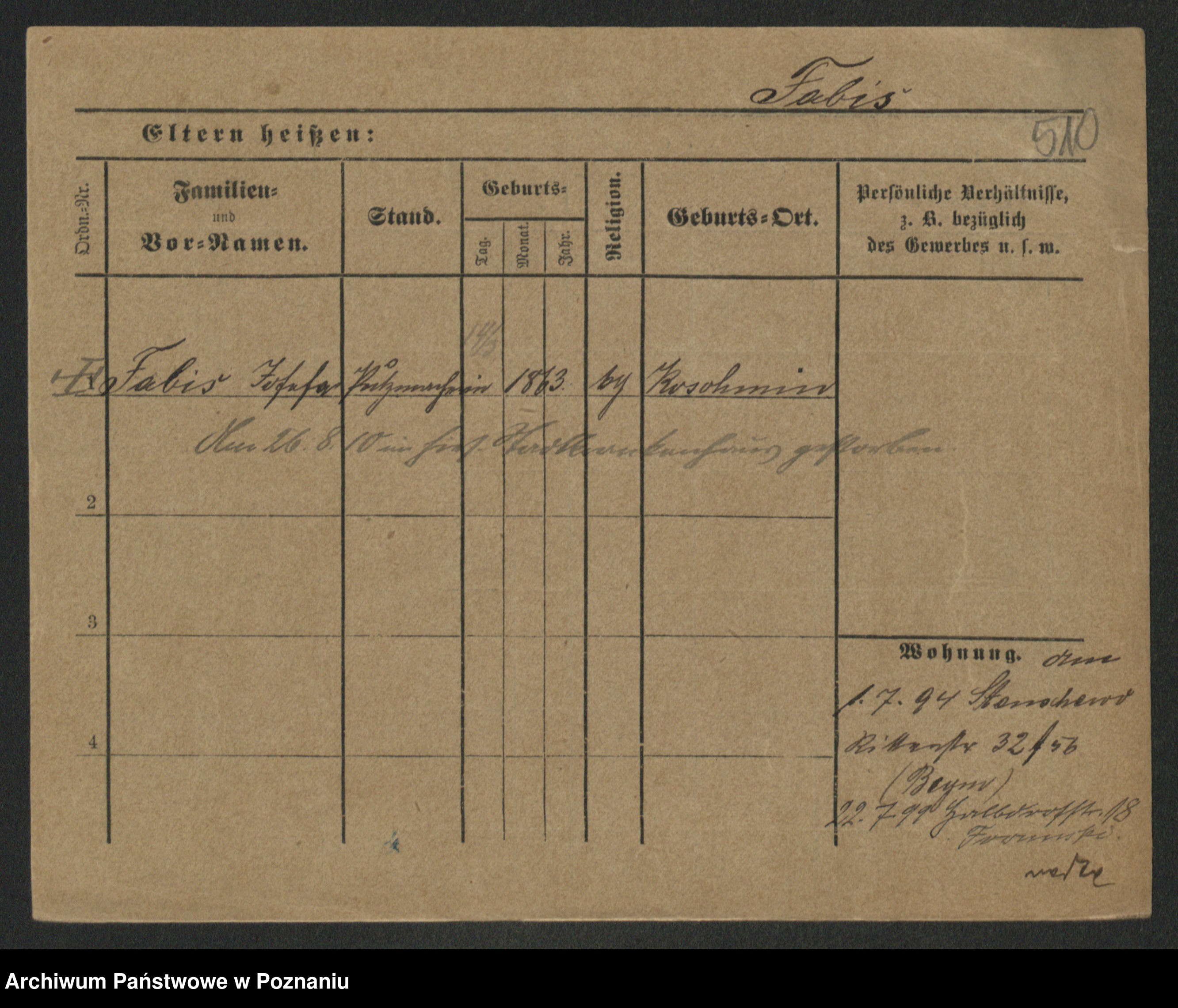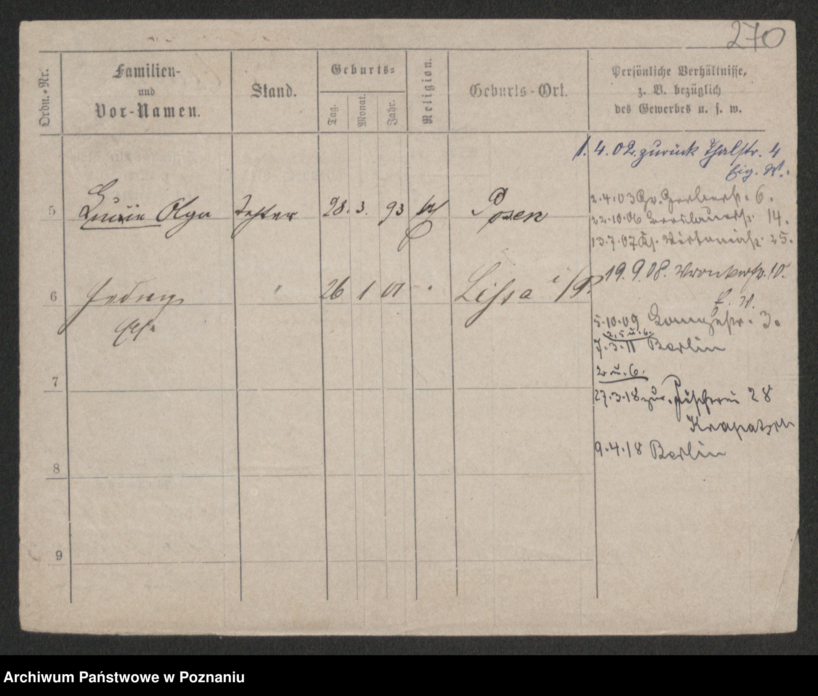 Podgląd karty osobowej dostępny jest po kliknięciu na nazwisko lub ikonkę karty. Można dokonywać powiększenia (ikony na górze) lub przechodzić między kolejnymi skanami (strzałki po bokach).