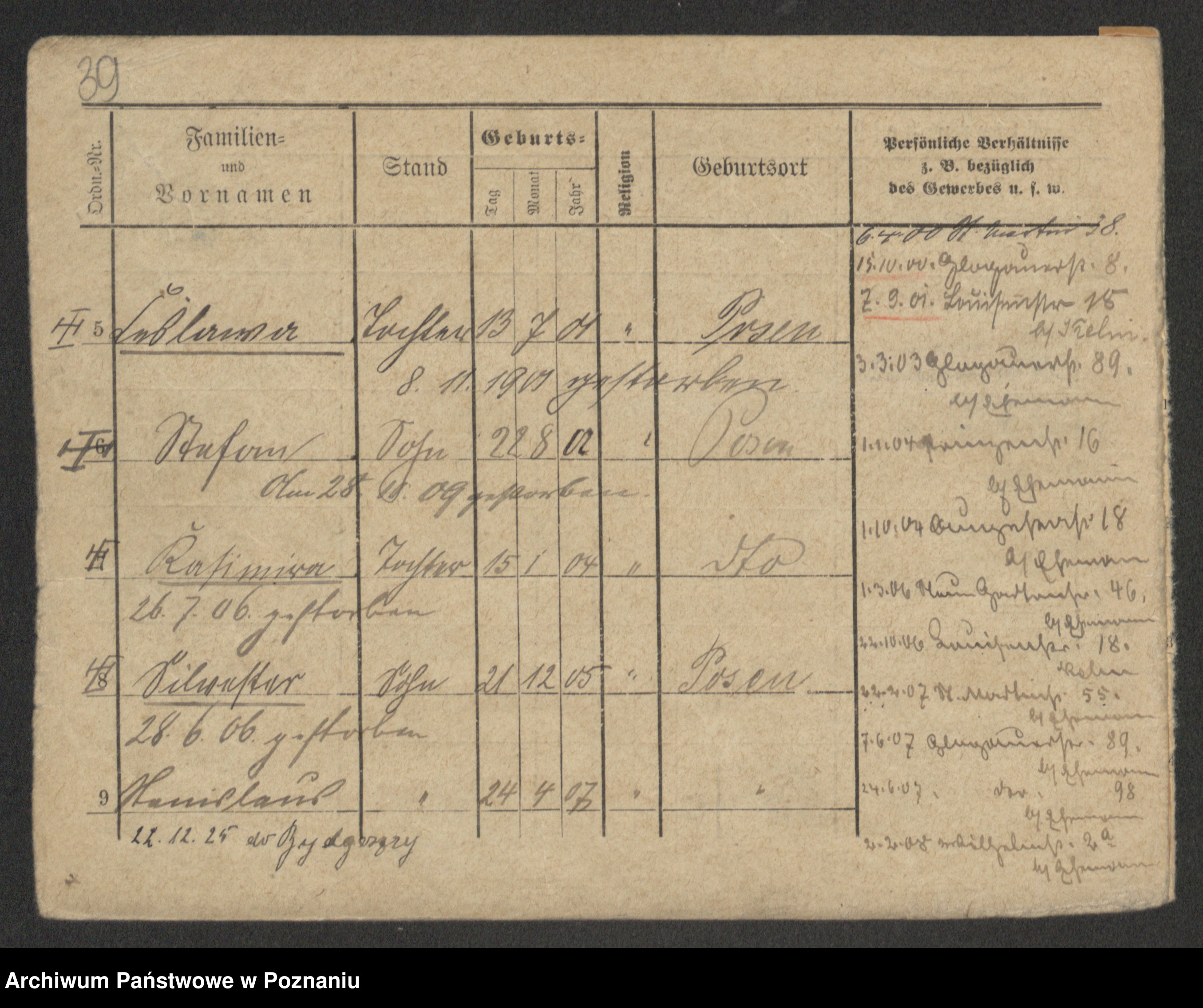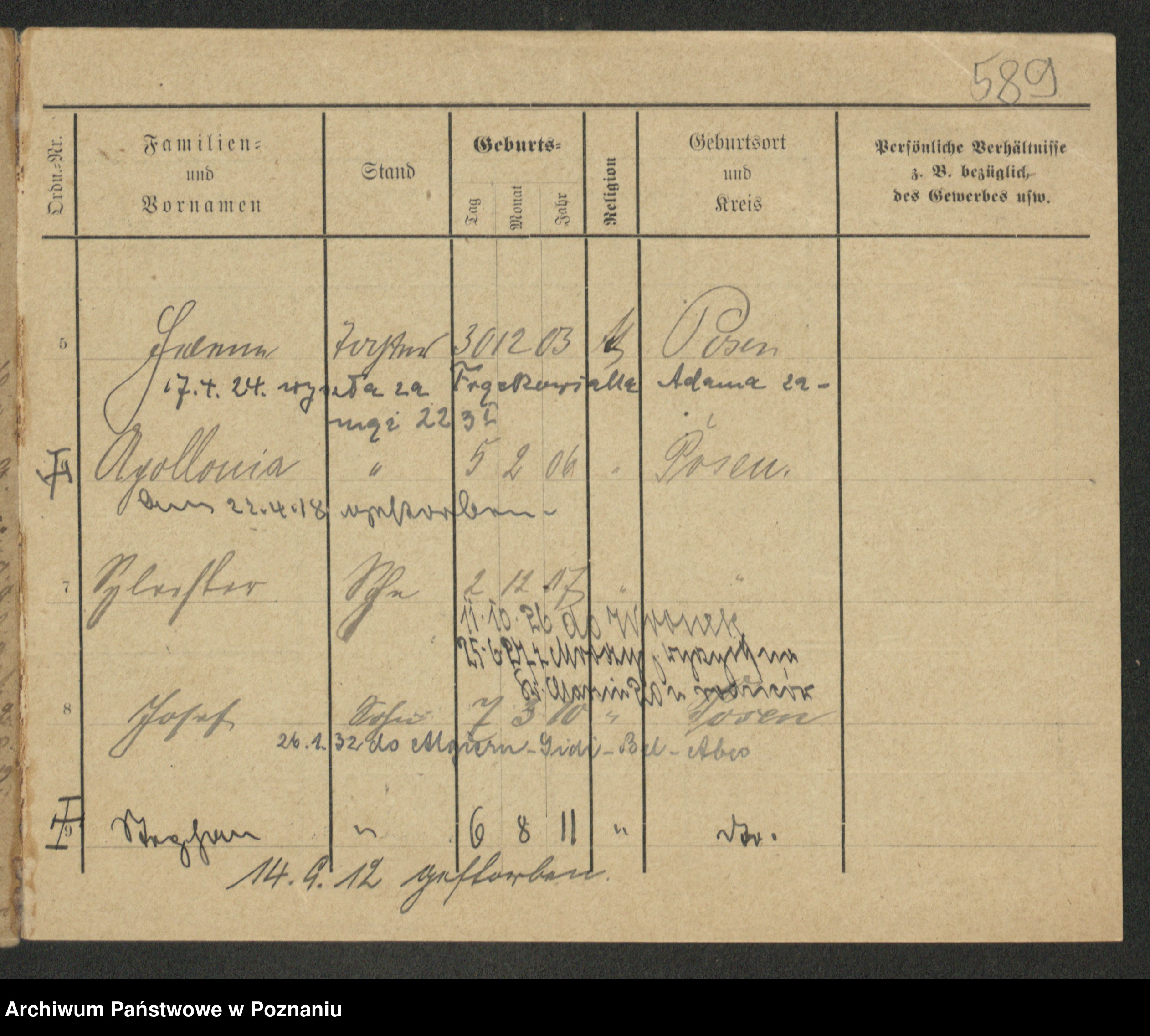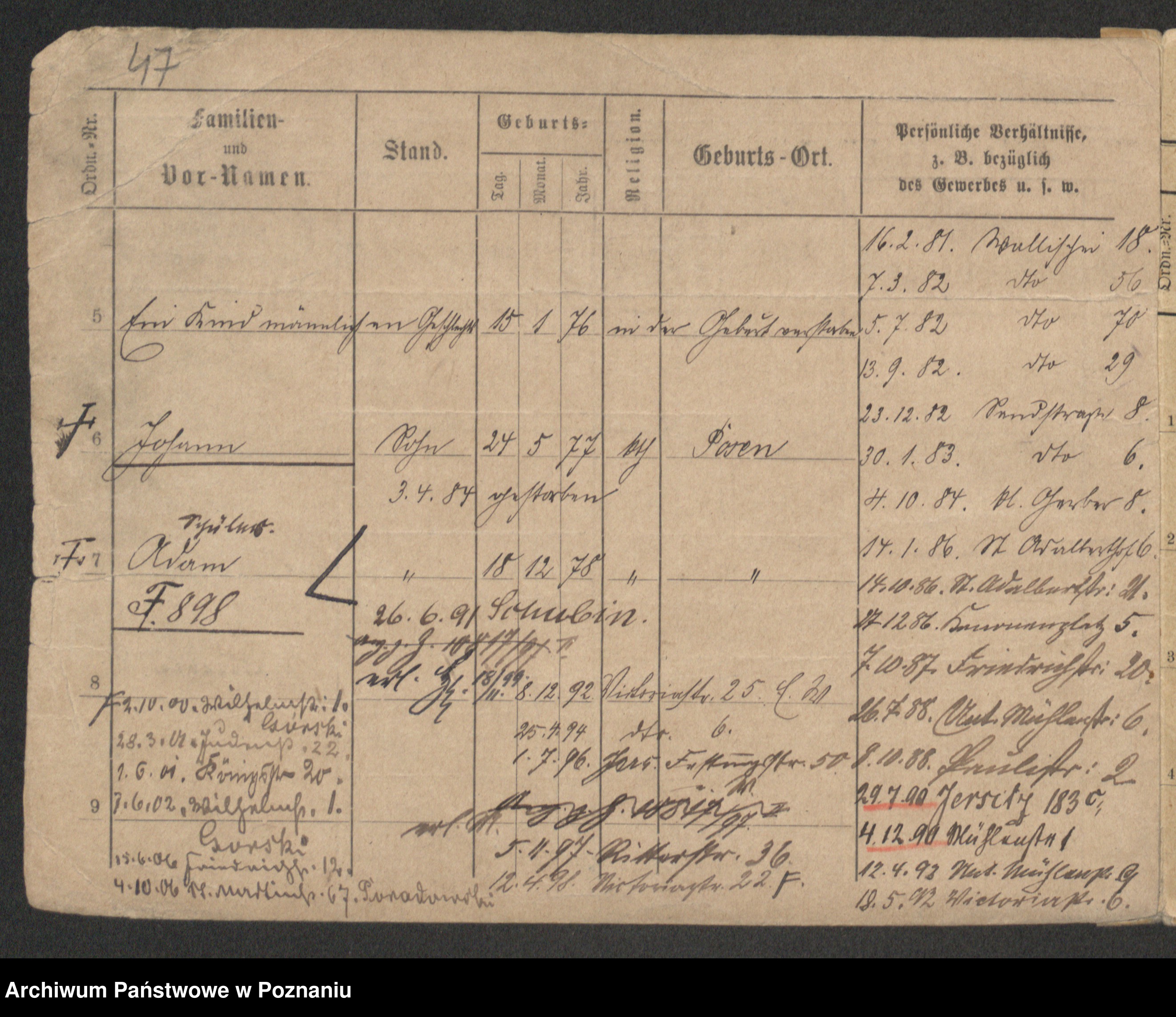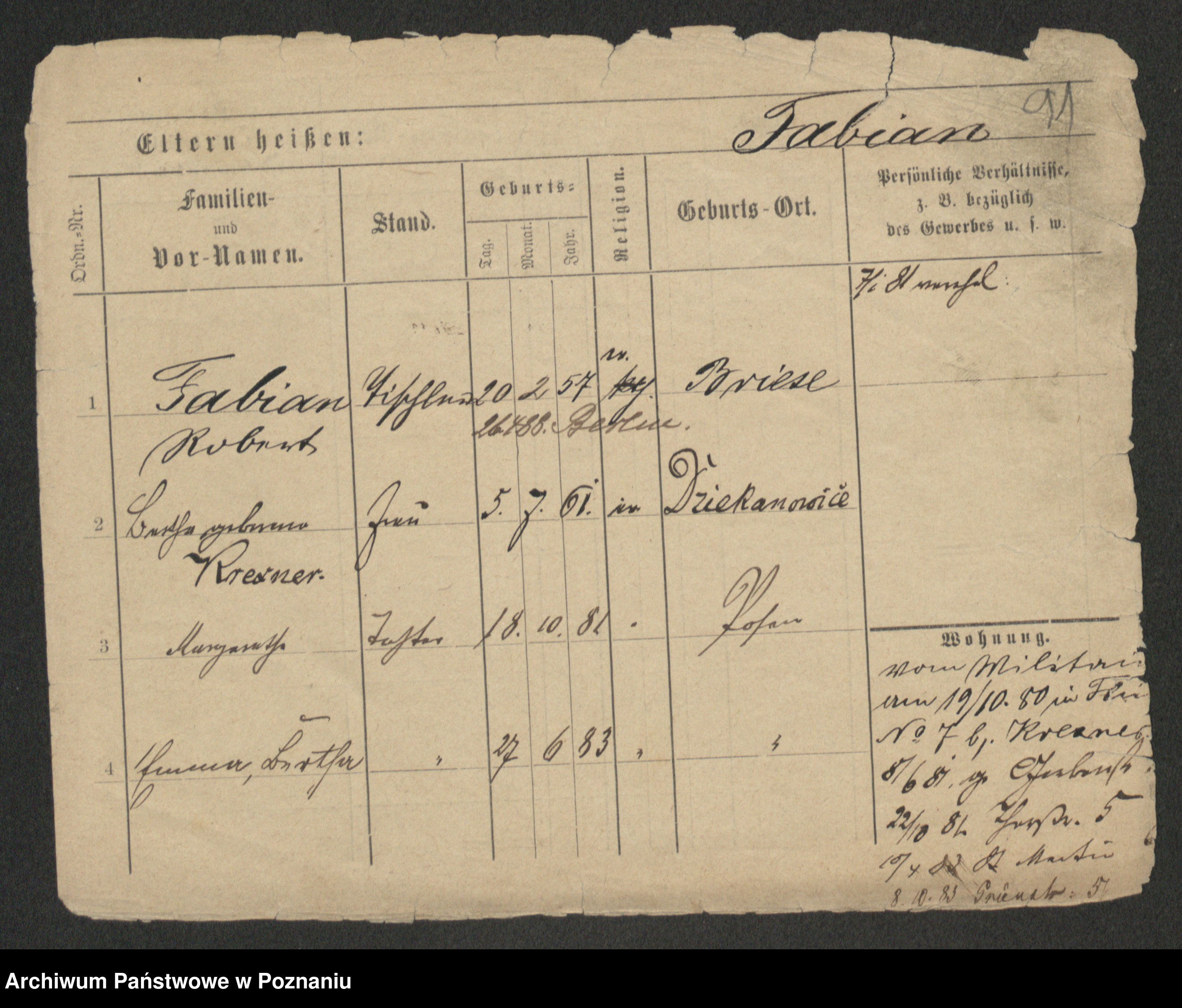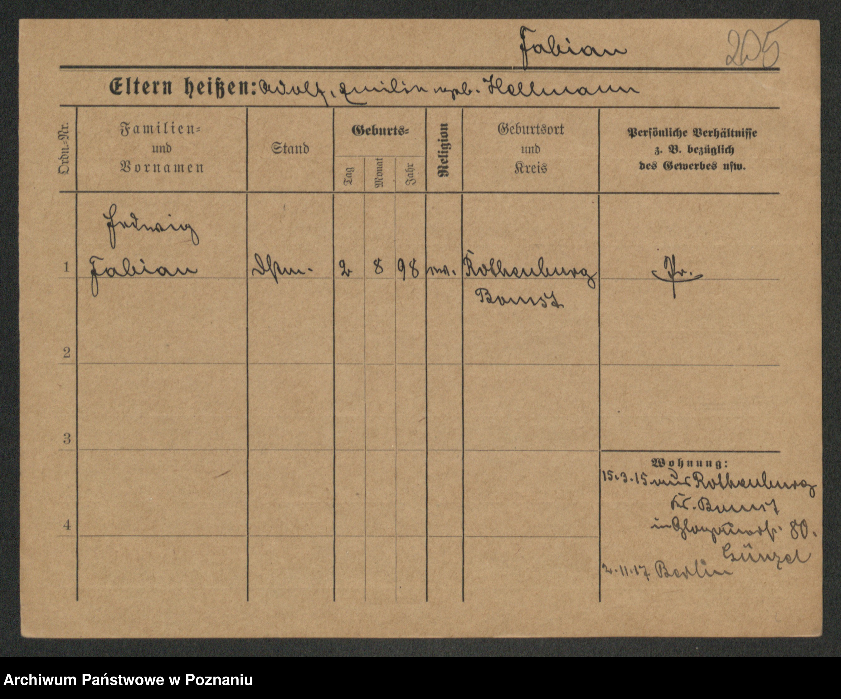 Podgląd karty osobowej dostępny jest po kliknięciu na nazwisko lub ikonkę karty. Można dokonywać powiększenia (ikony na górze) lub przechodzić między kolejnymi skanami (strzałki po bokach).