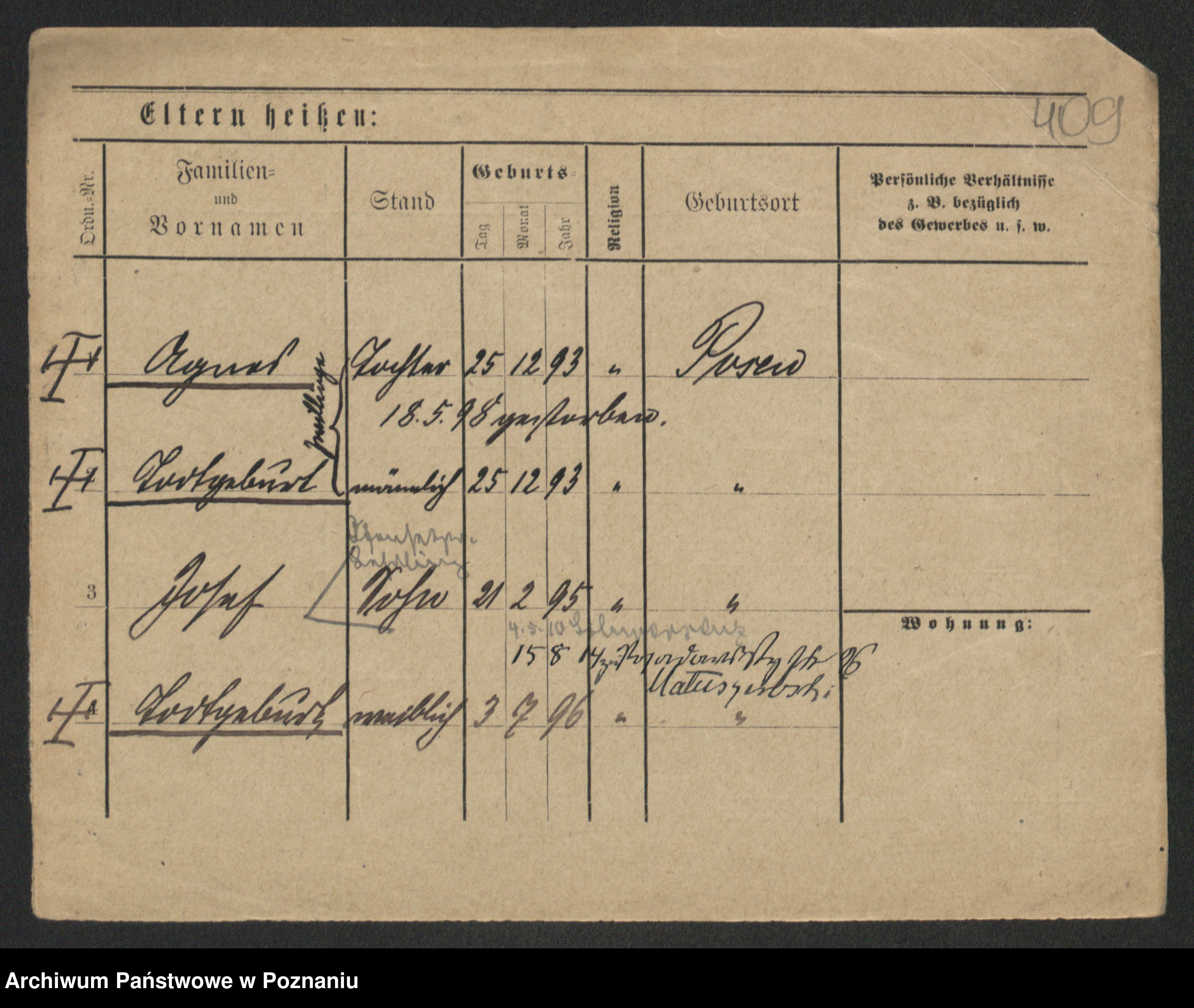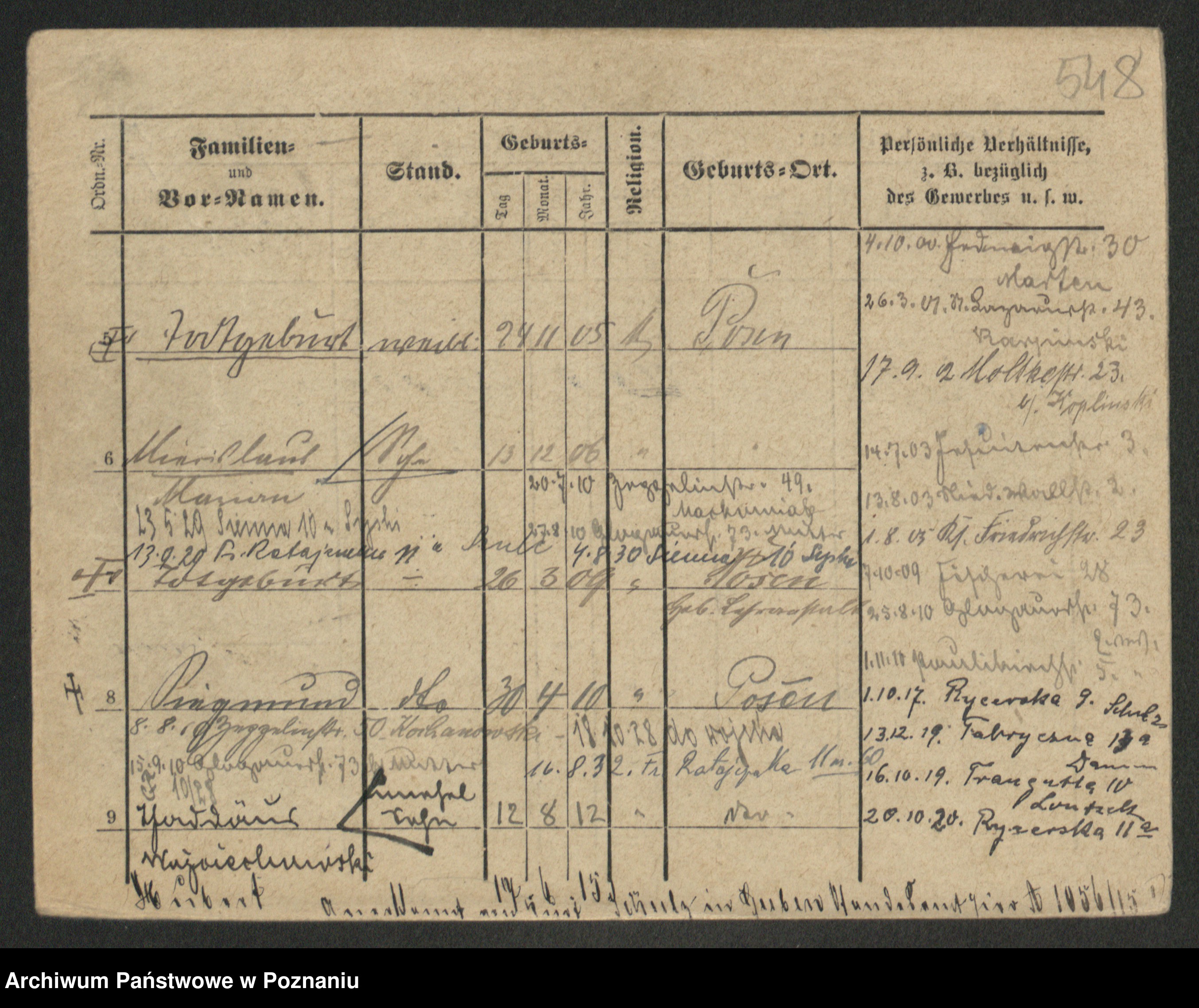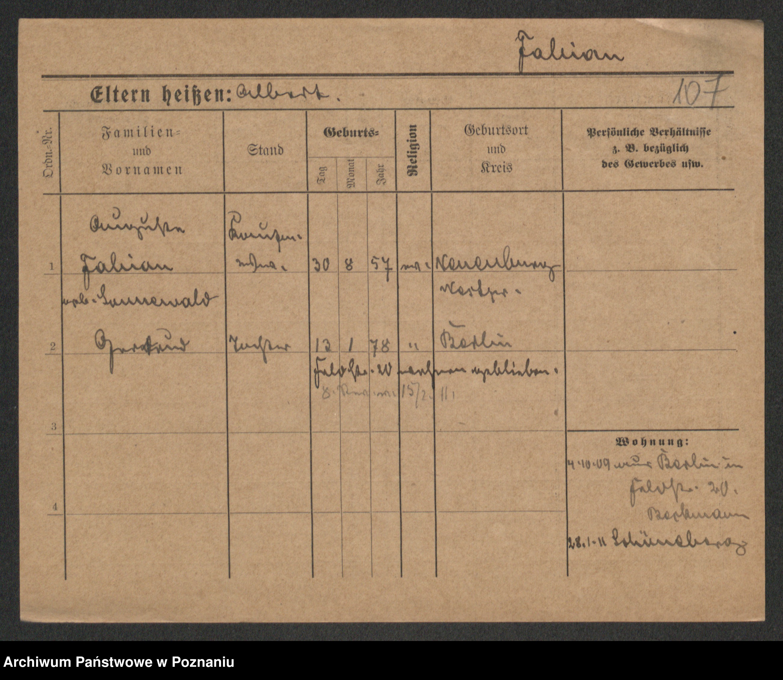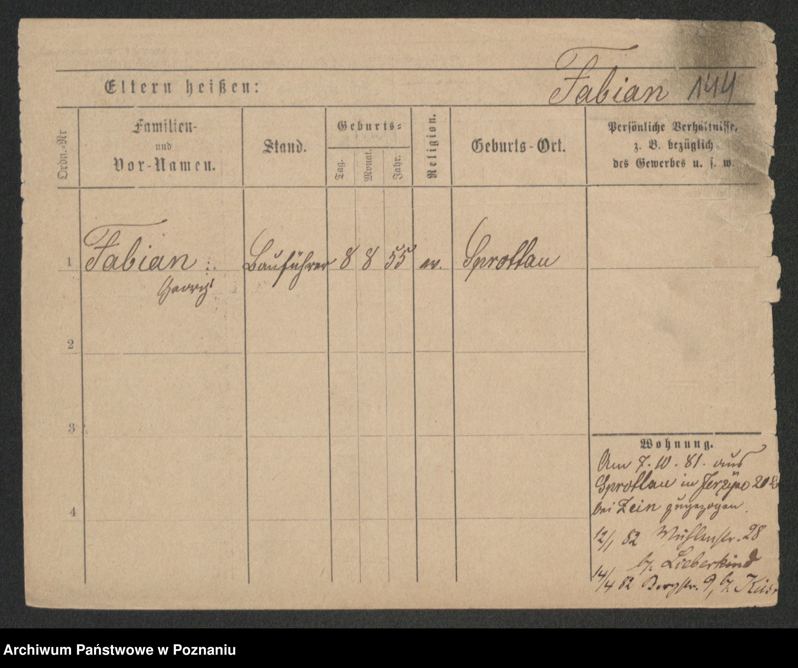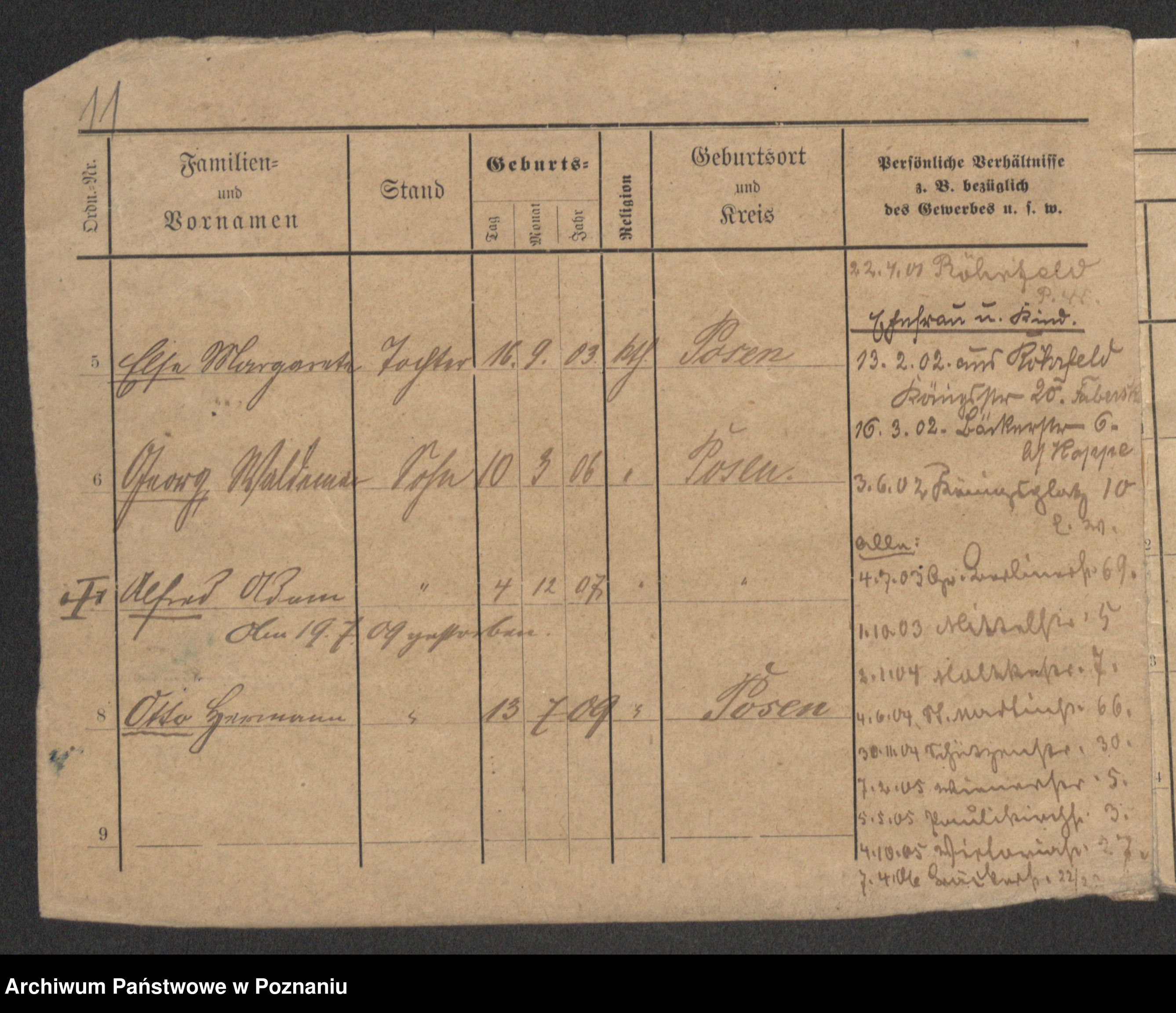 Podgląd karty osobowej dostępny jest po kliknięciu na nazwisko lub ikonkę karty. Można dokonywać powiększenia (ikony na górze) lub przechodzić między kolejnymi skanami (strzałki po bokach).