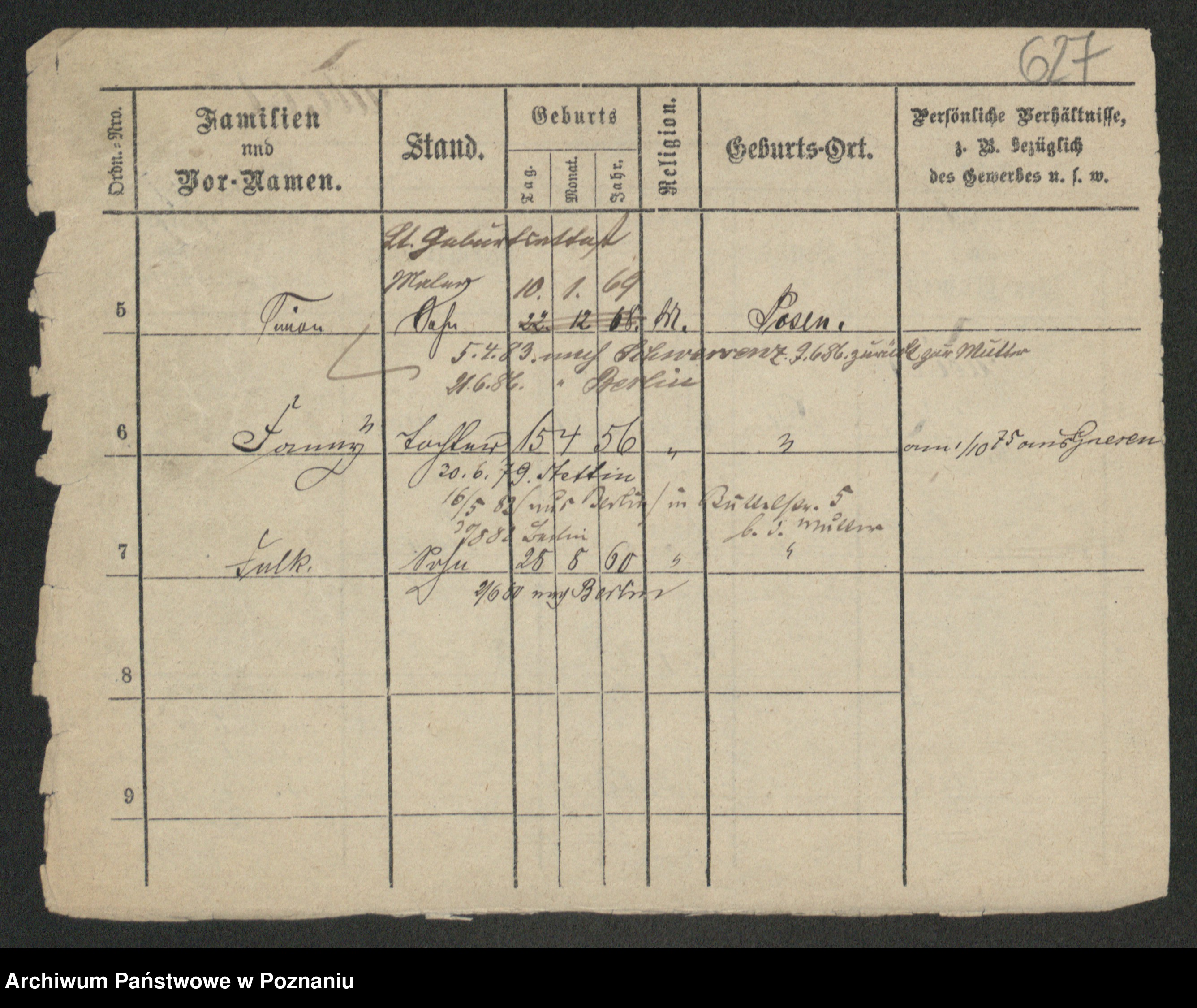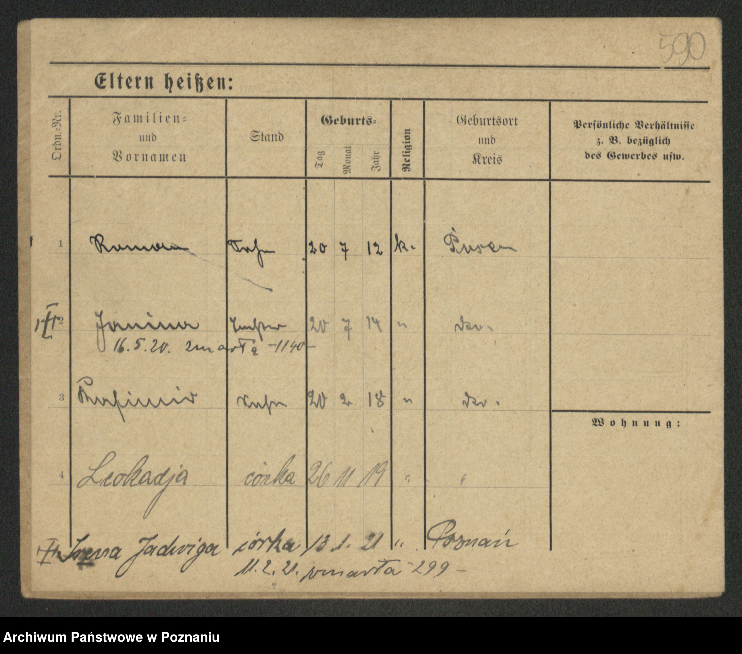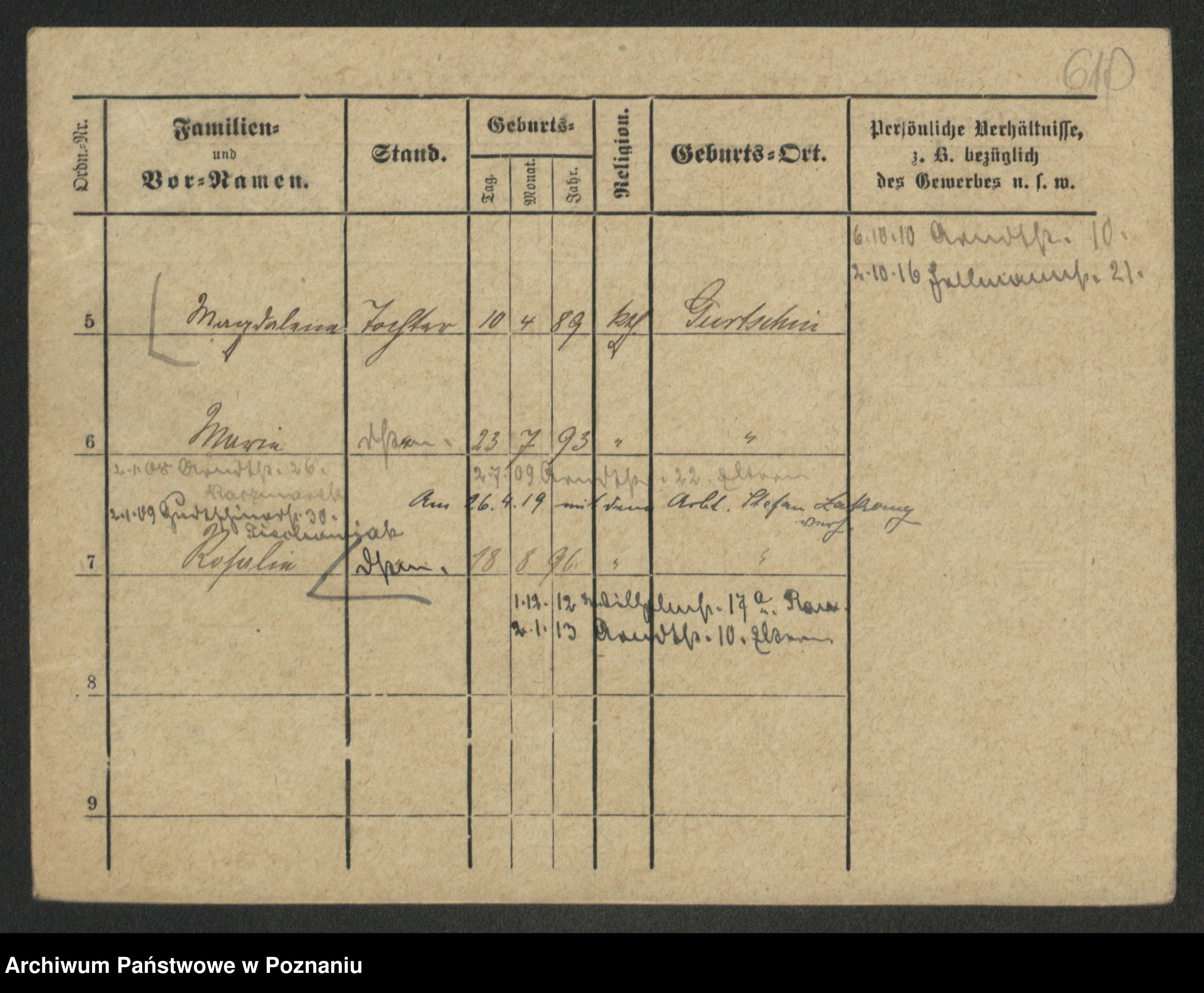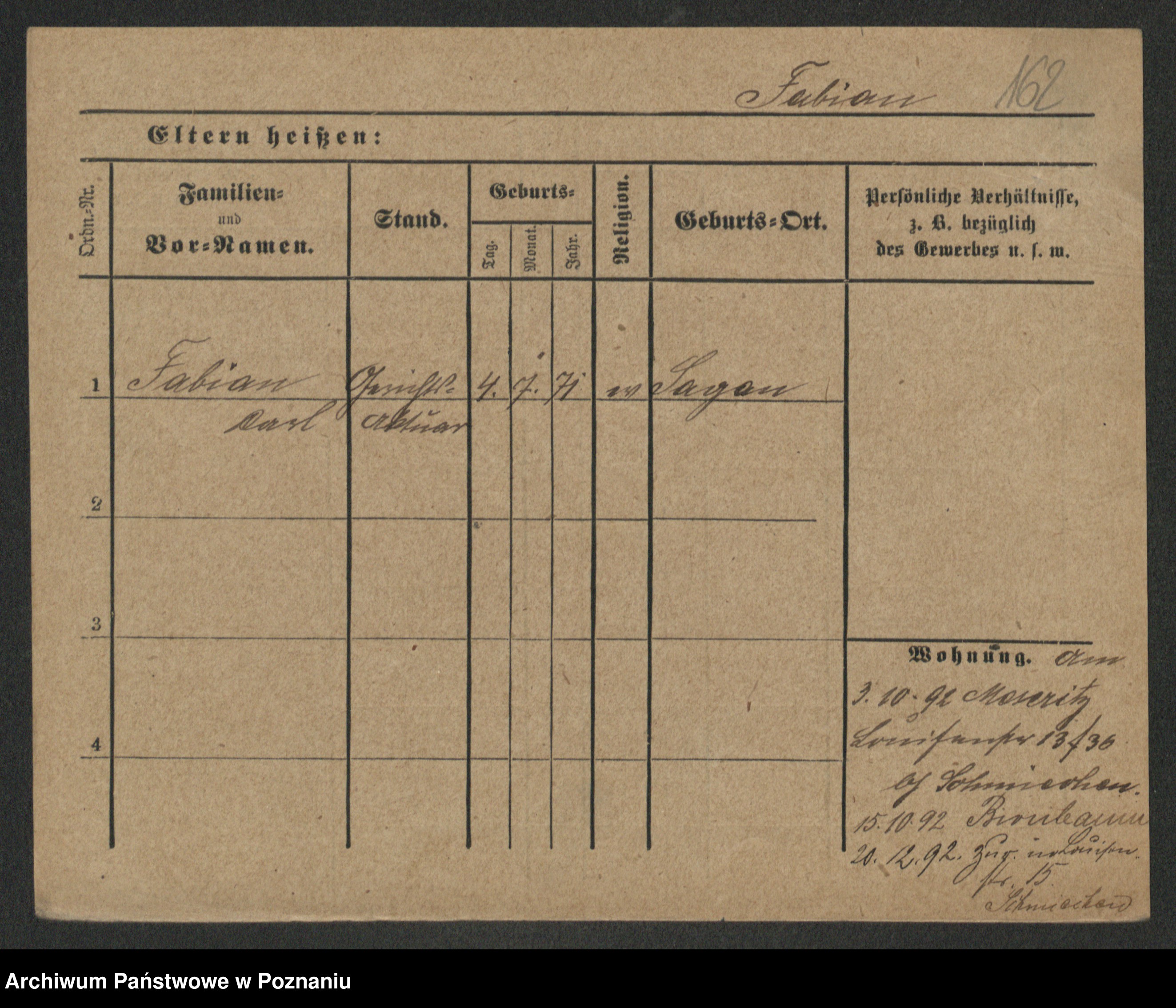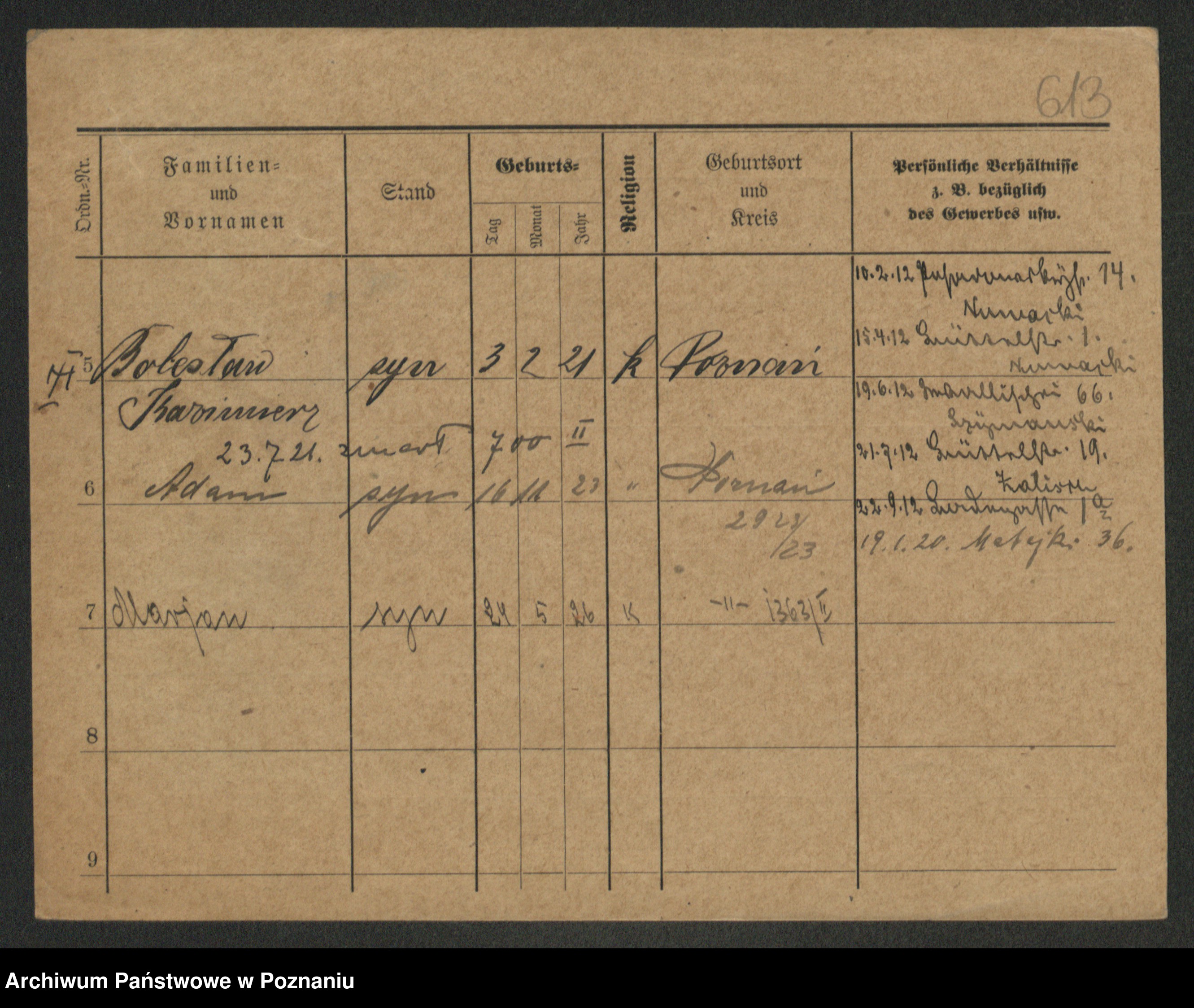 Podgląd karty osobowej dostępny jest po kliknięciu na nazwisko lub ikonkę karty. Można dokonywać powiększenia (ikony na górze) lub przechodzić między kolejnymi skanami (strzałki po bokach).