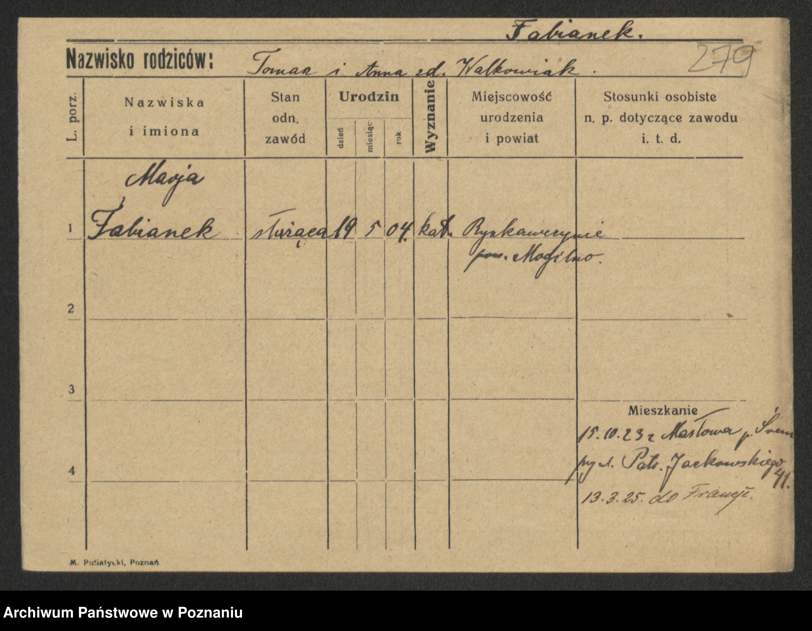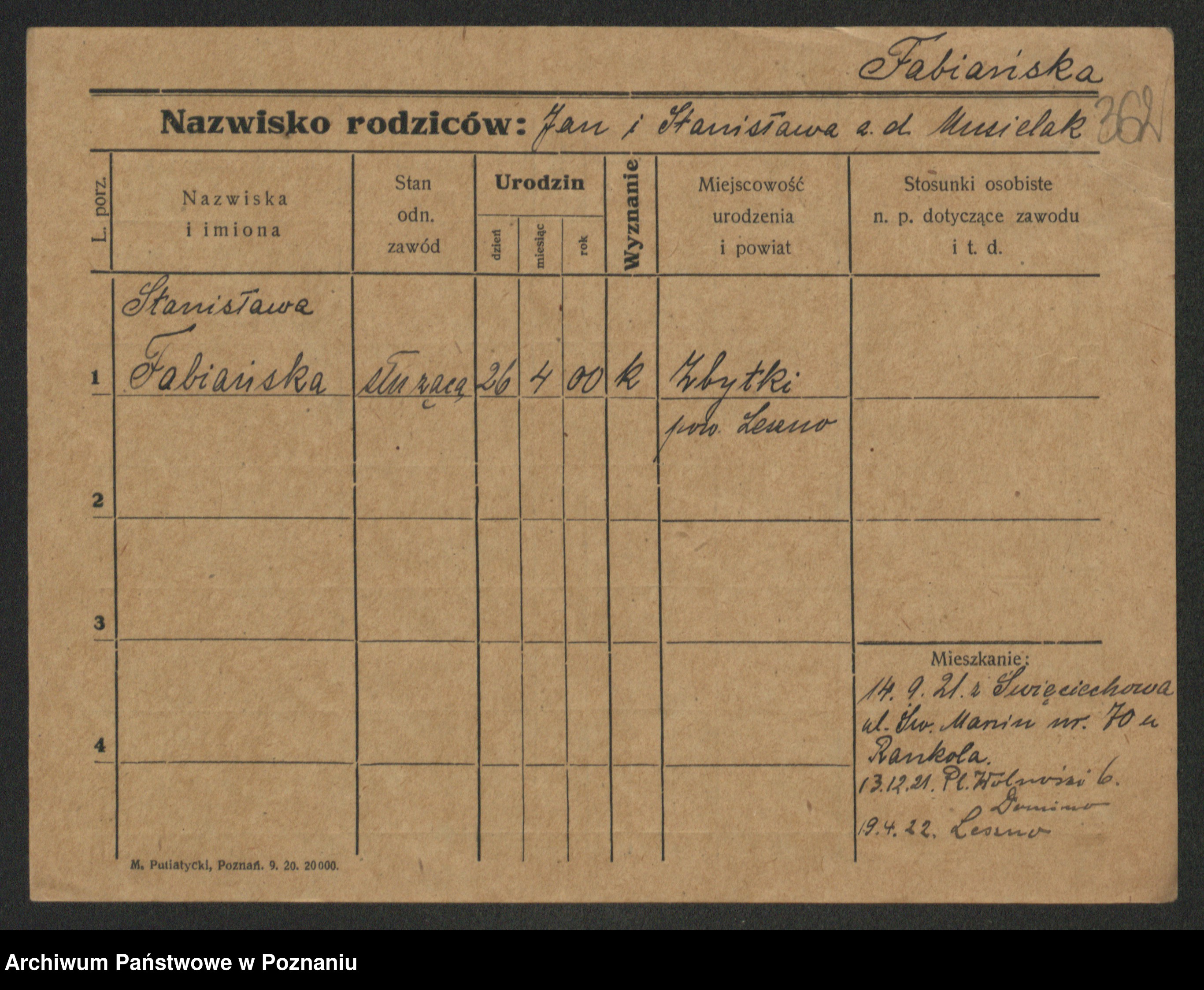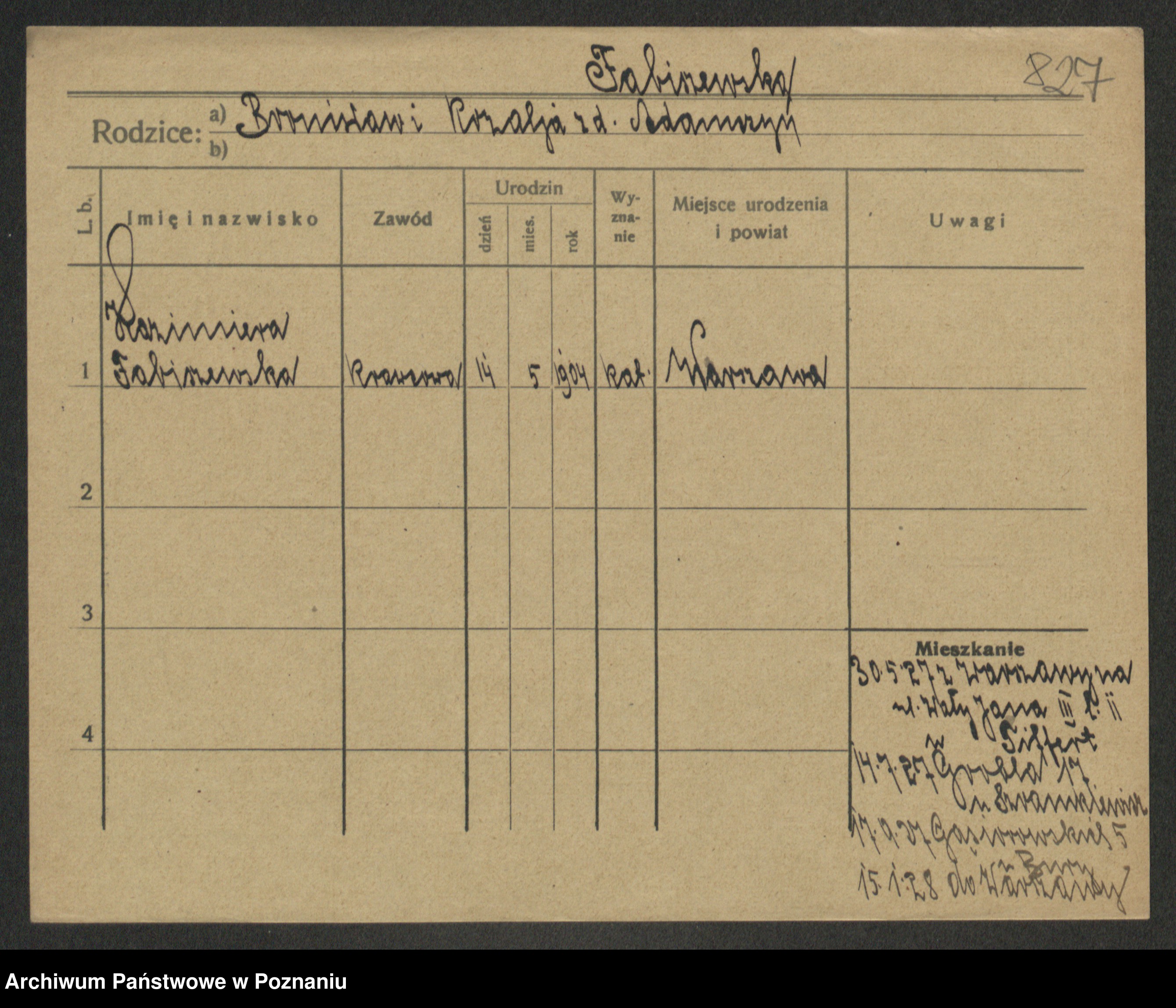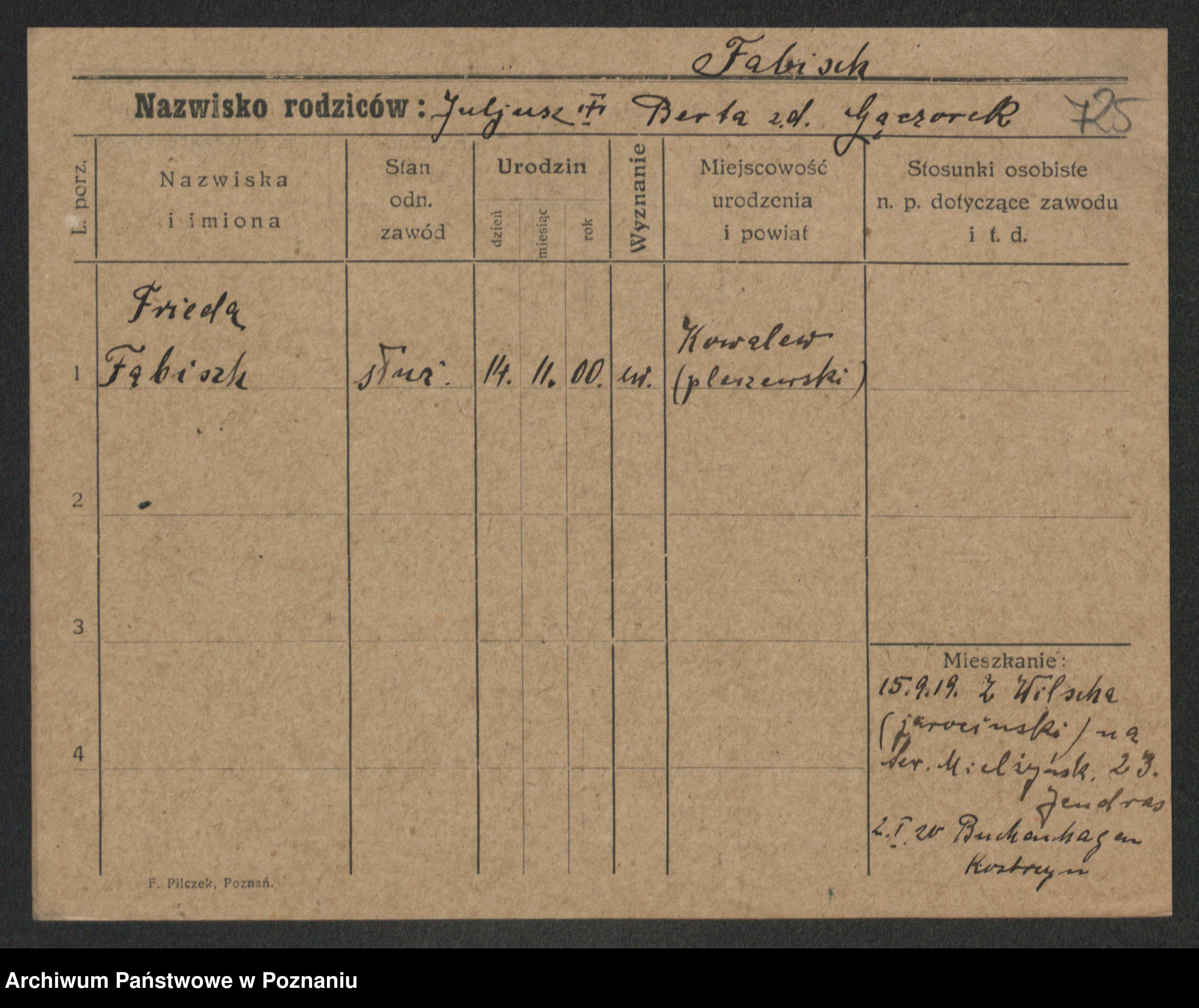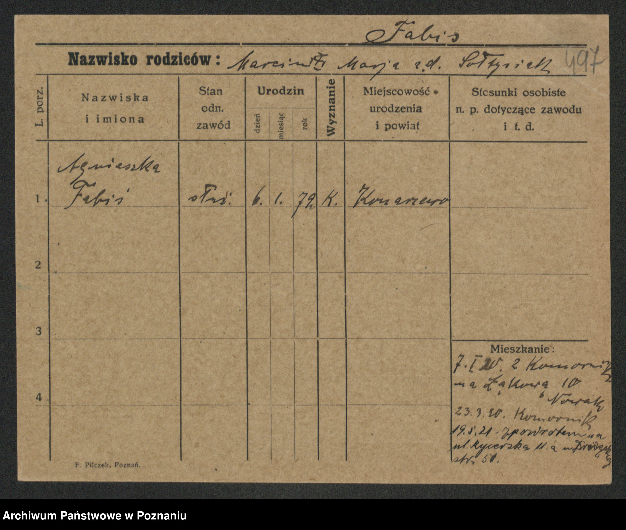 Fabrowska z d. Lipinska 1. voto Nowaczyk, Franziska