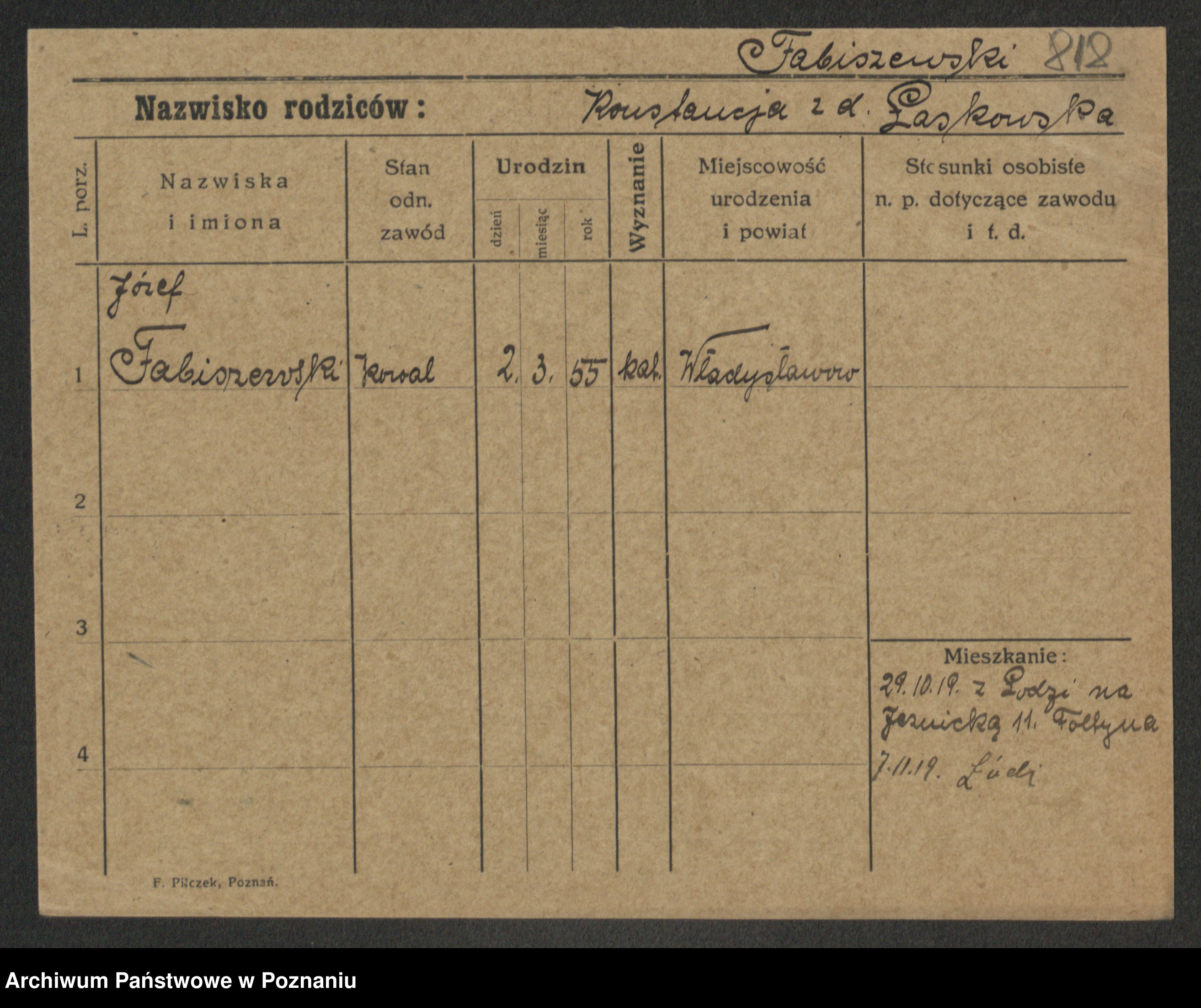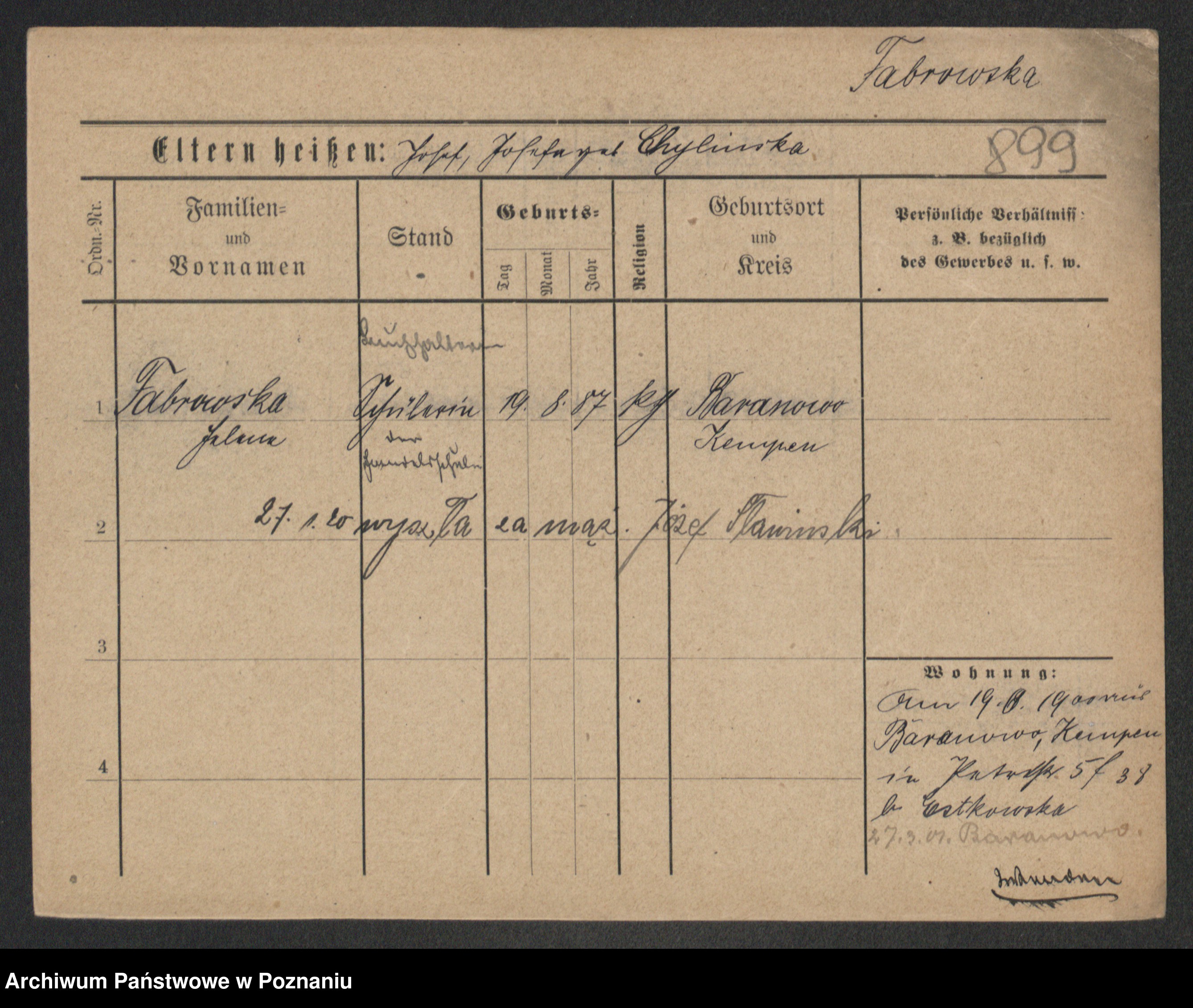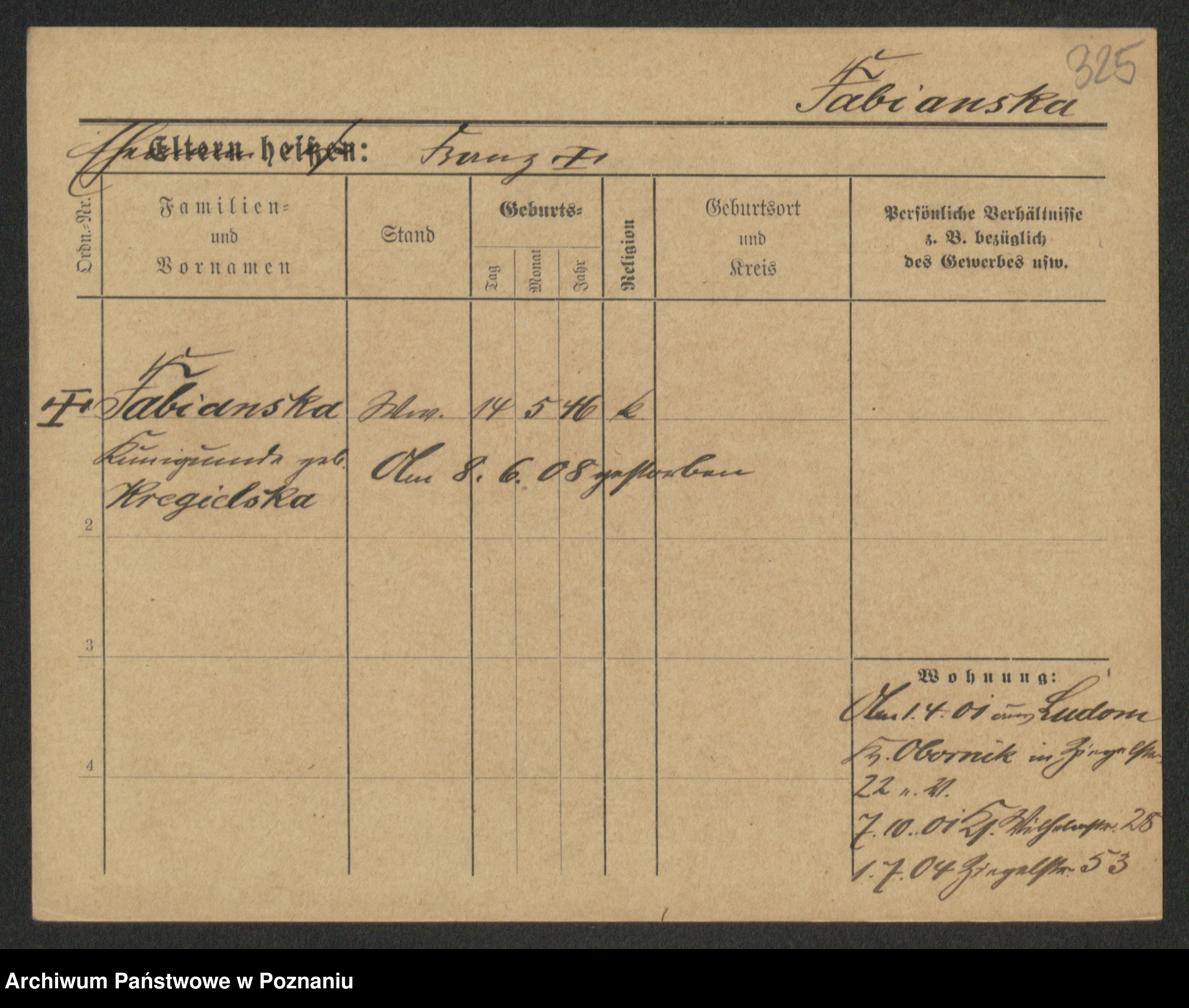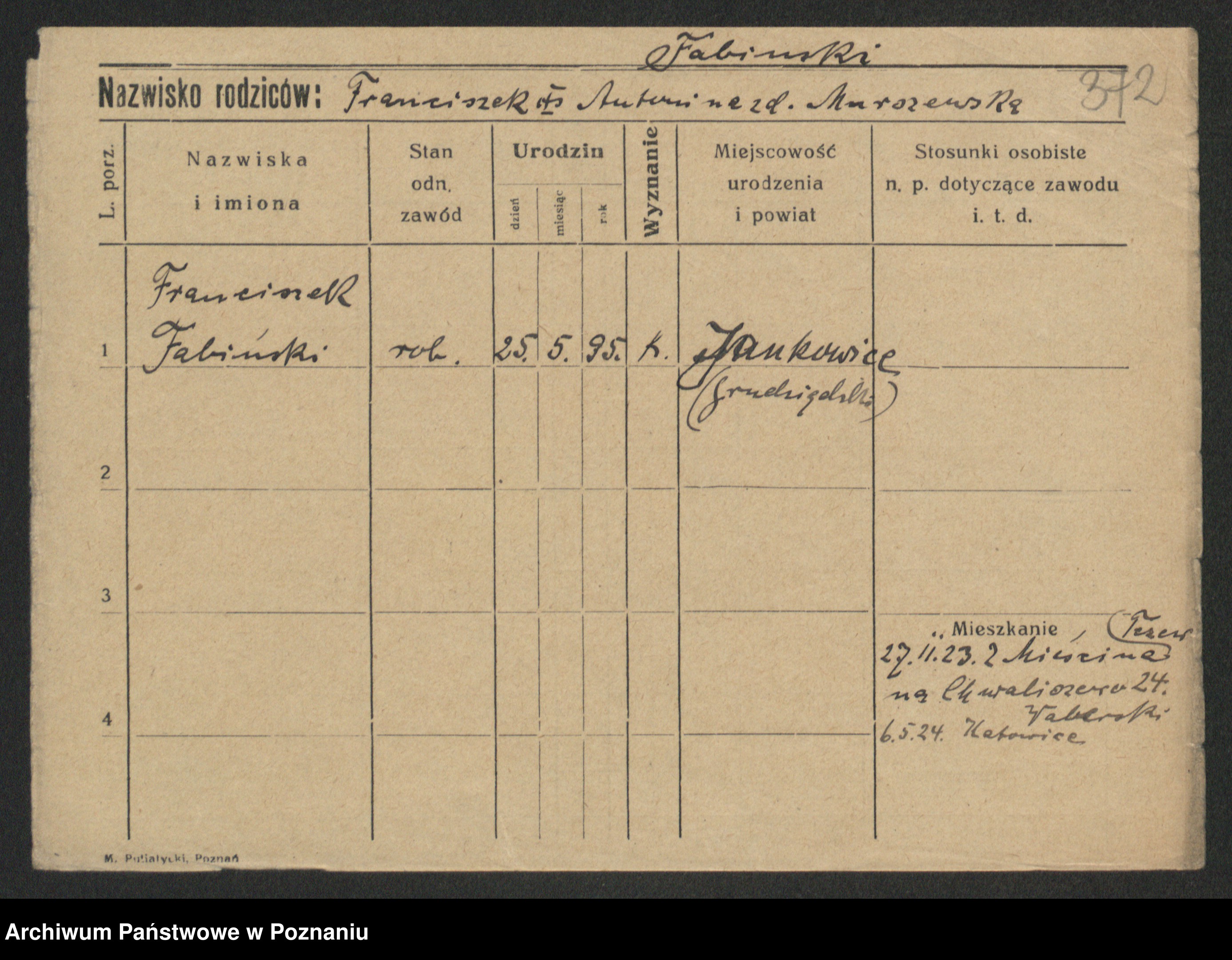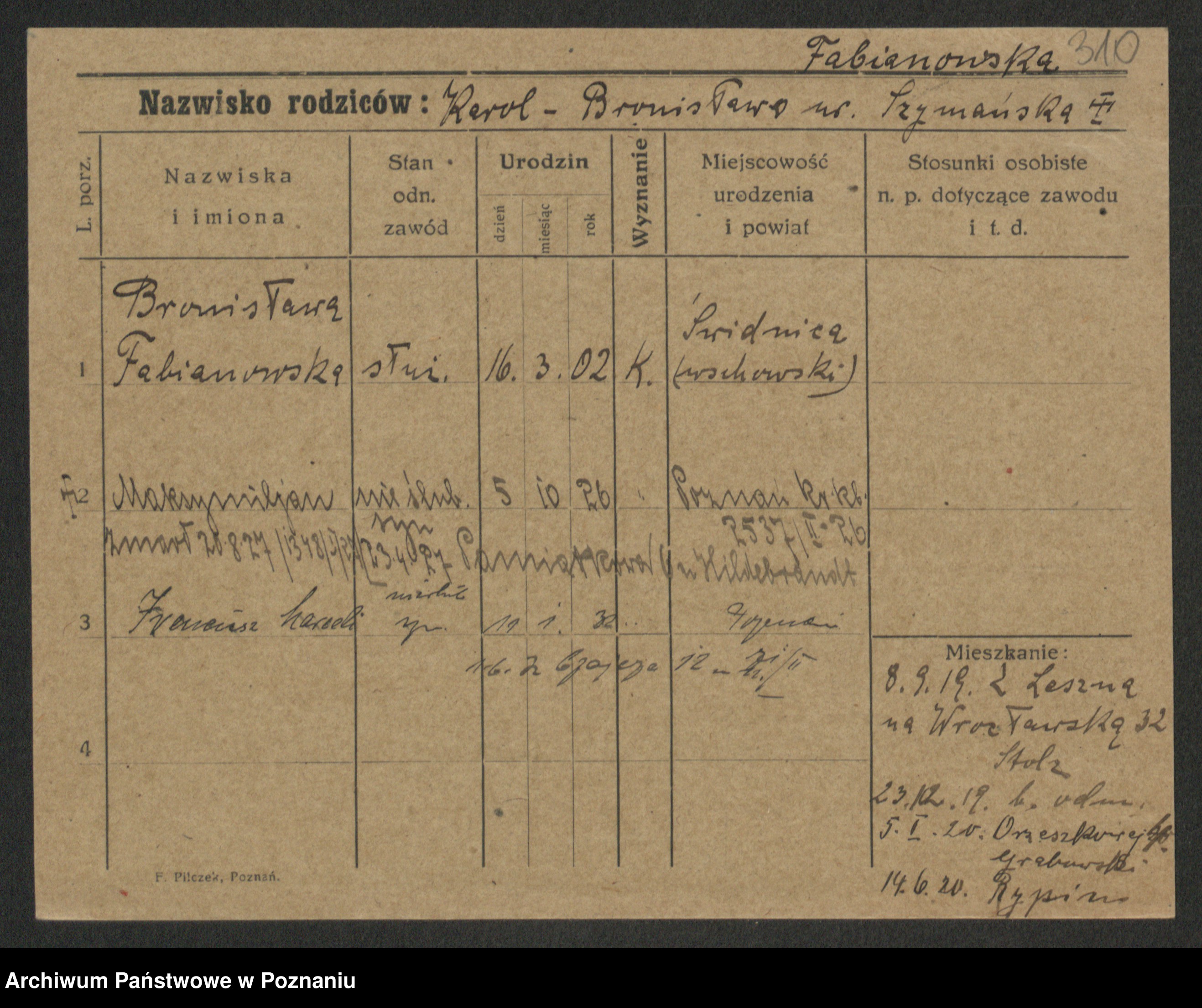 Fabrowska z d. Lipinska 1. voto Nowaczyk, Franziska