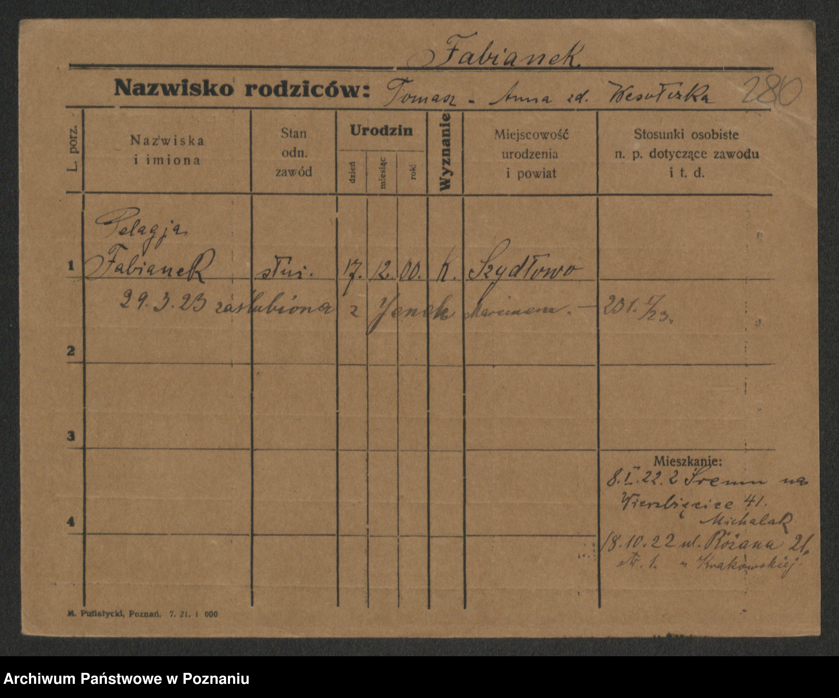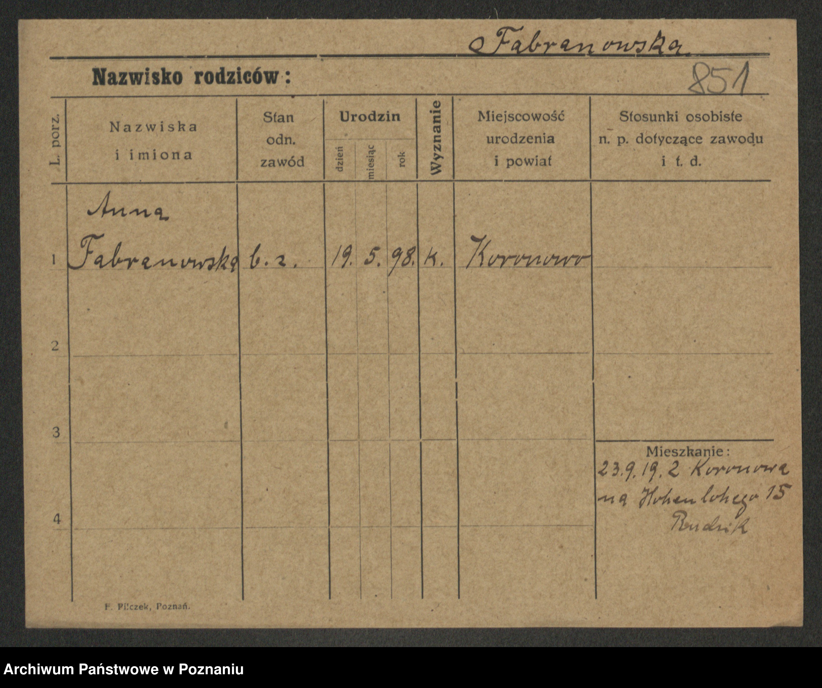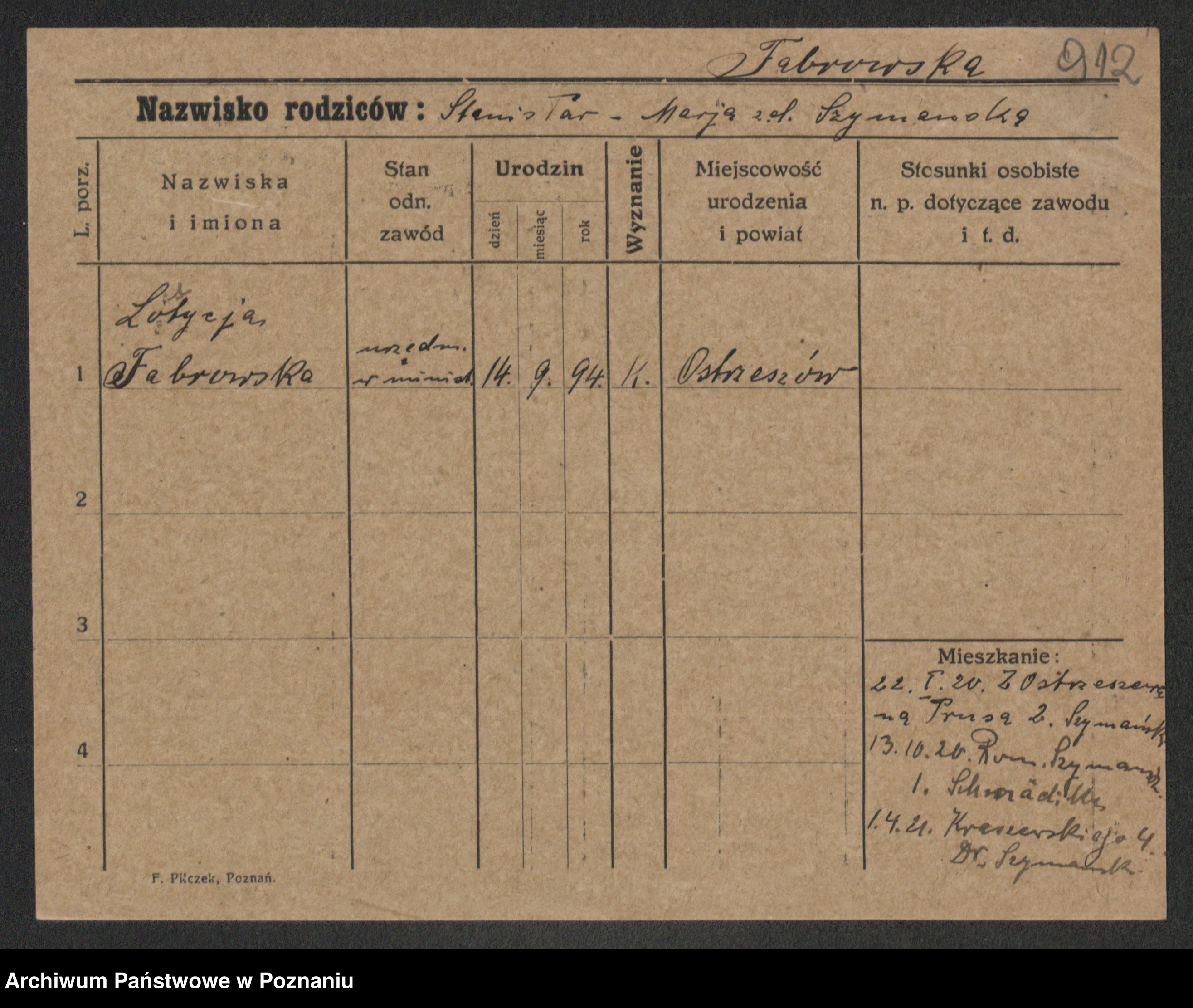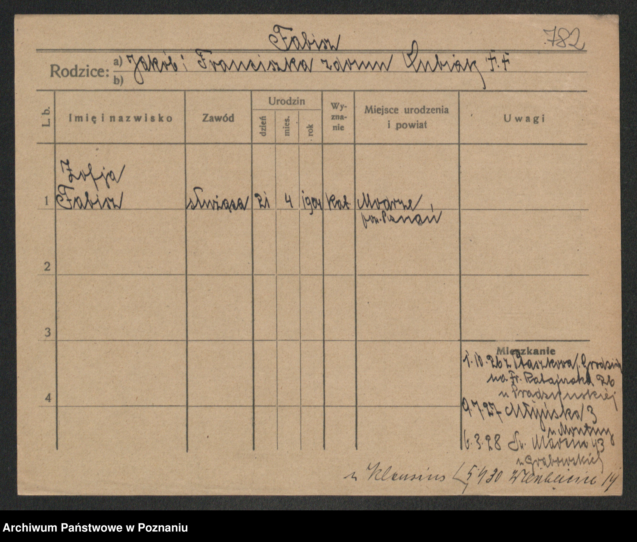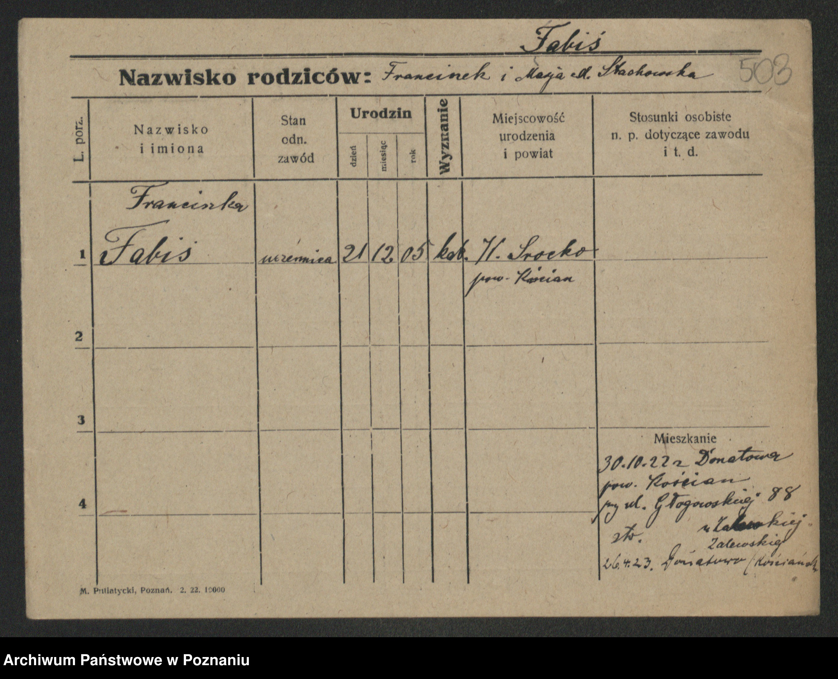 Fabrowska z d. Lipinska 1. voto Nowaczyk, Franziska