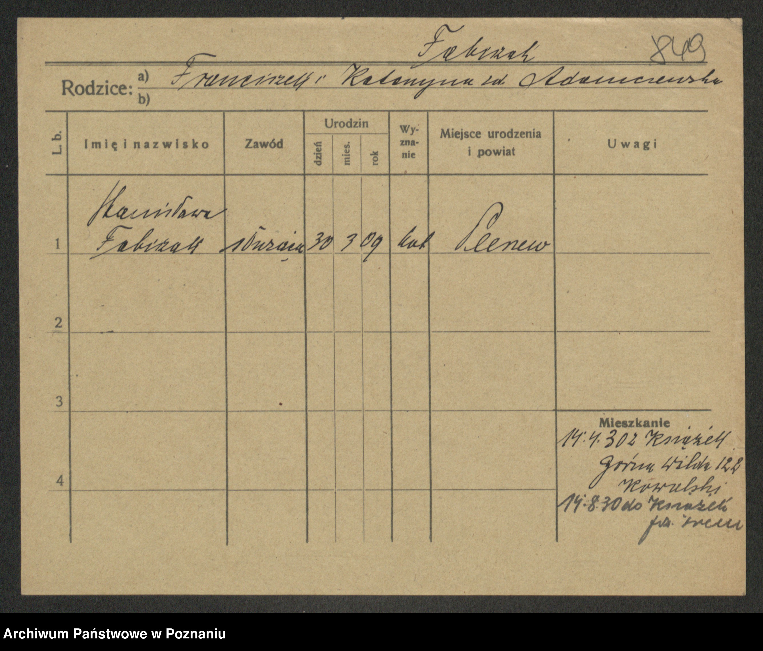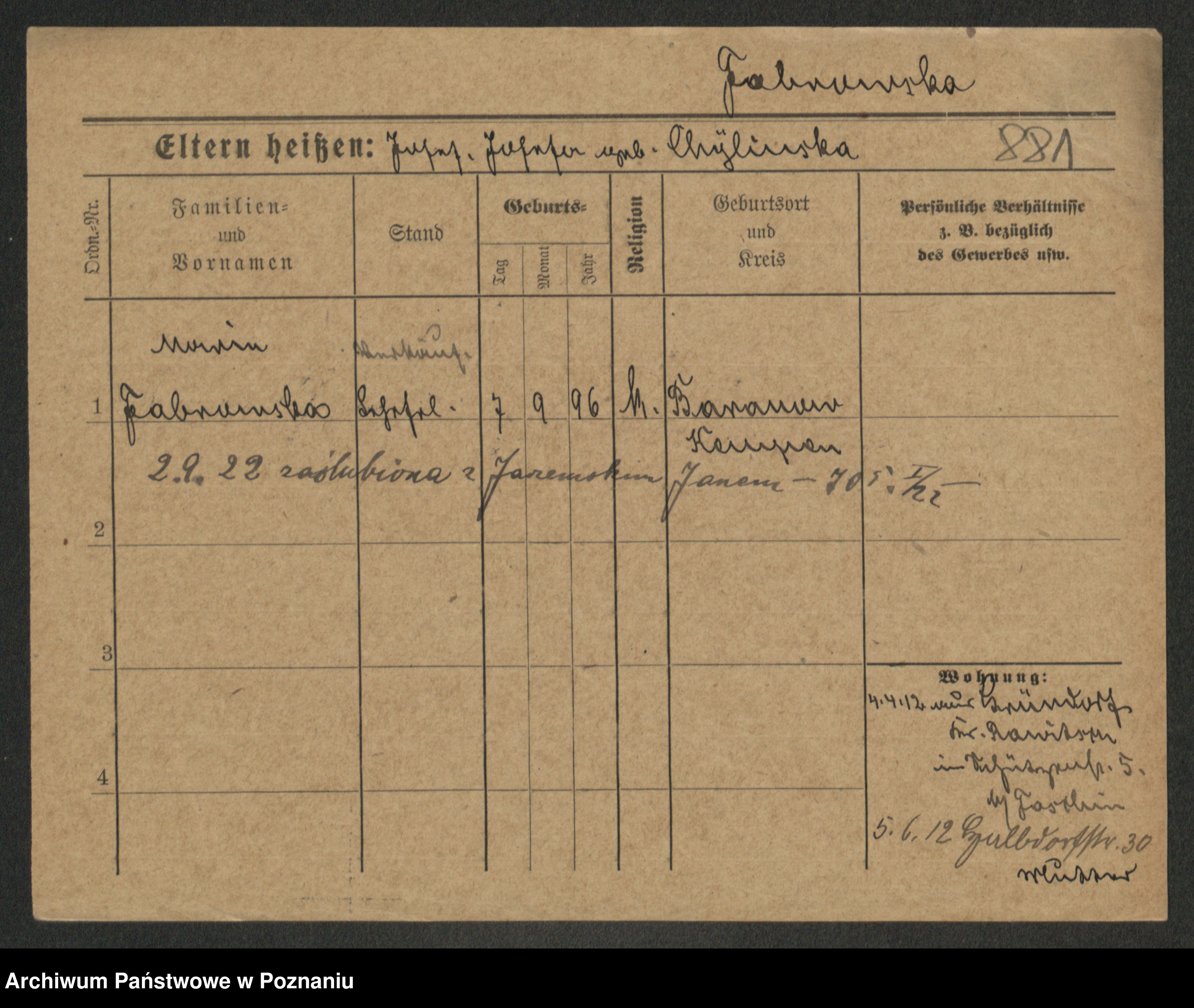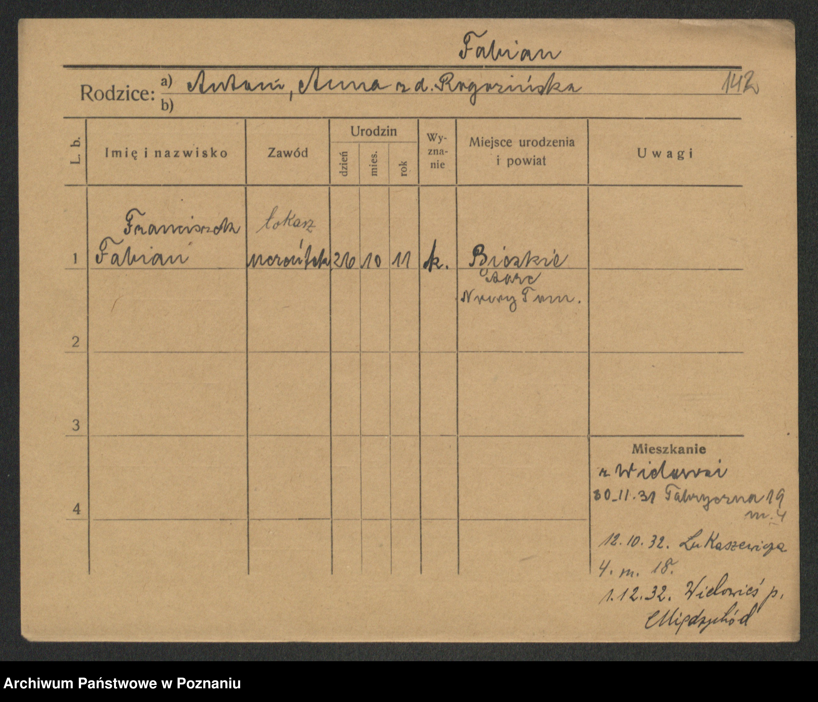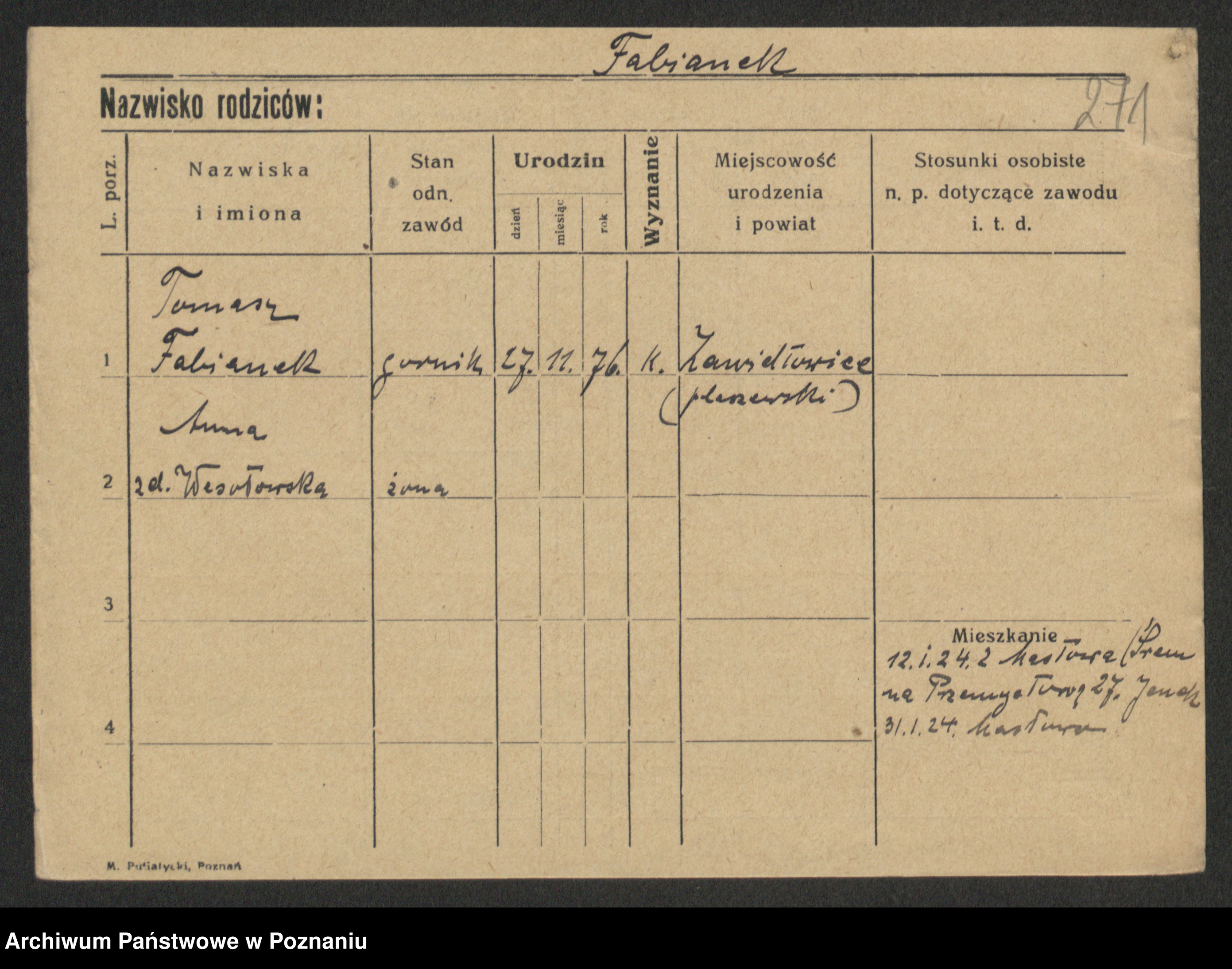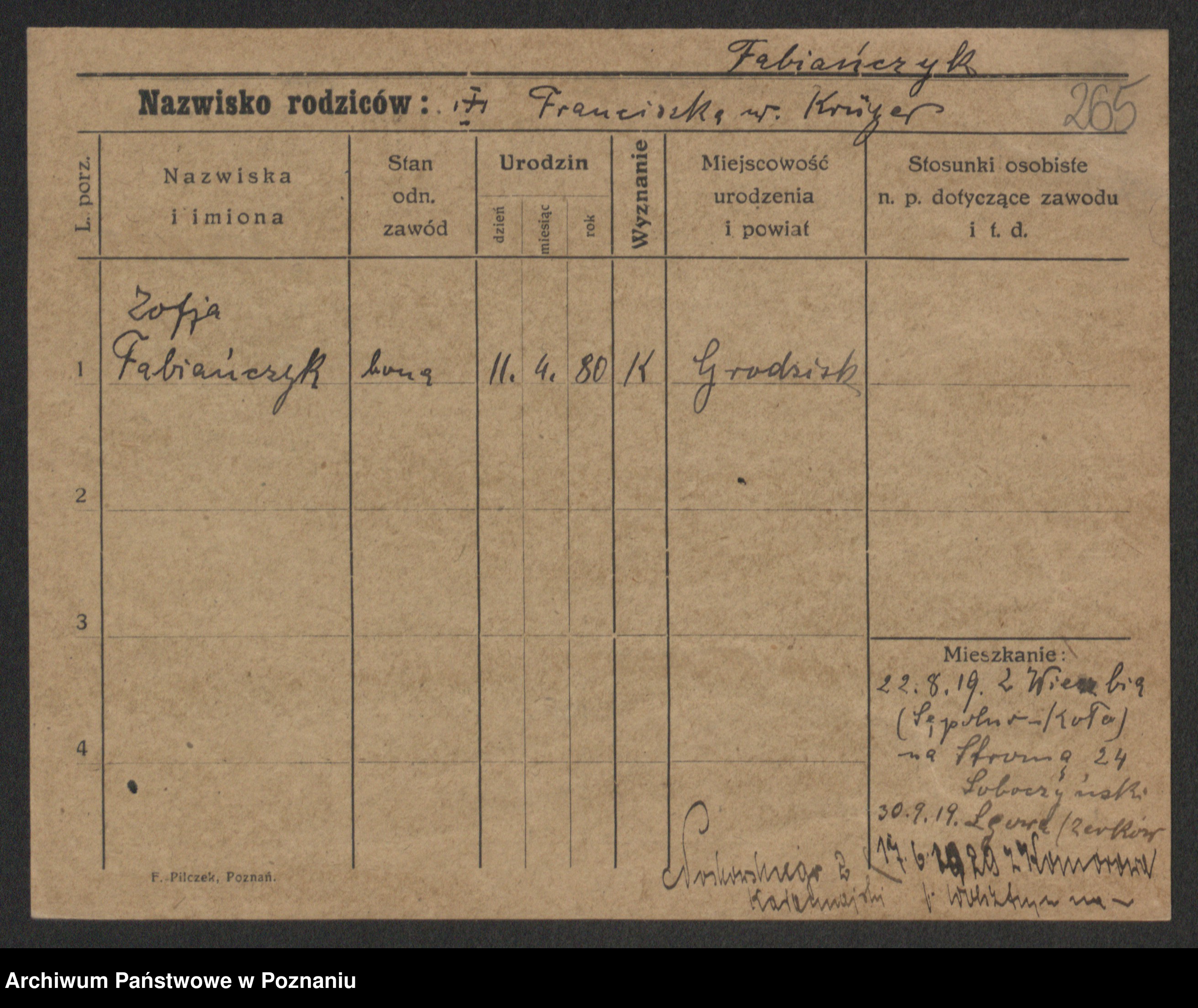 Fabrowska z d. Lipinska 1. voto Nowaczyk, Franziska