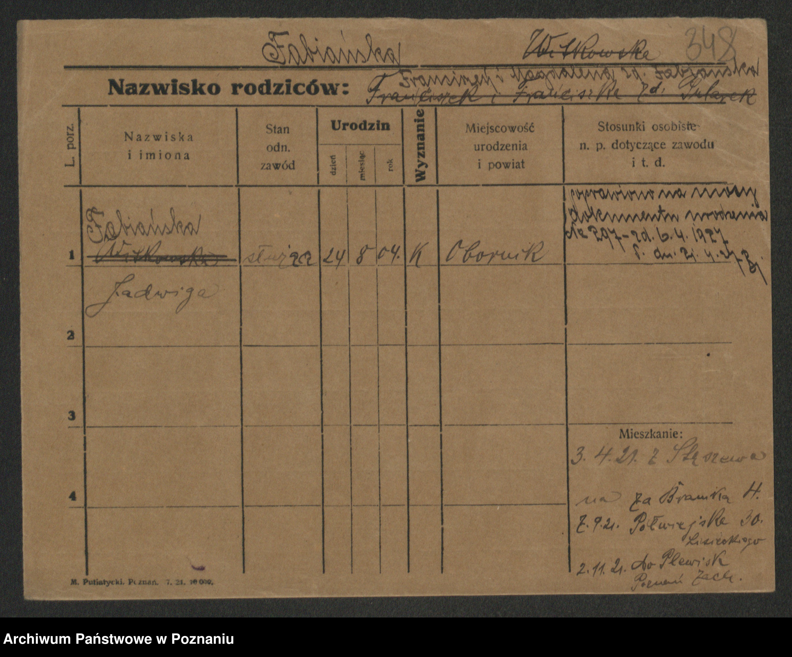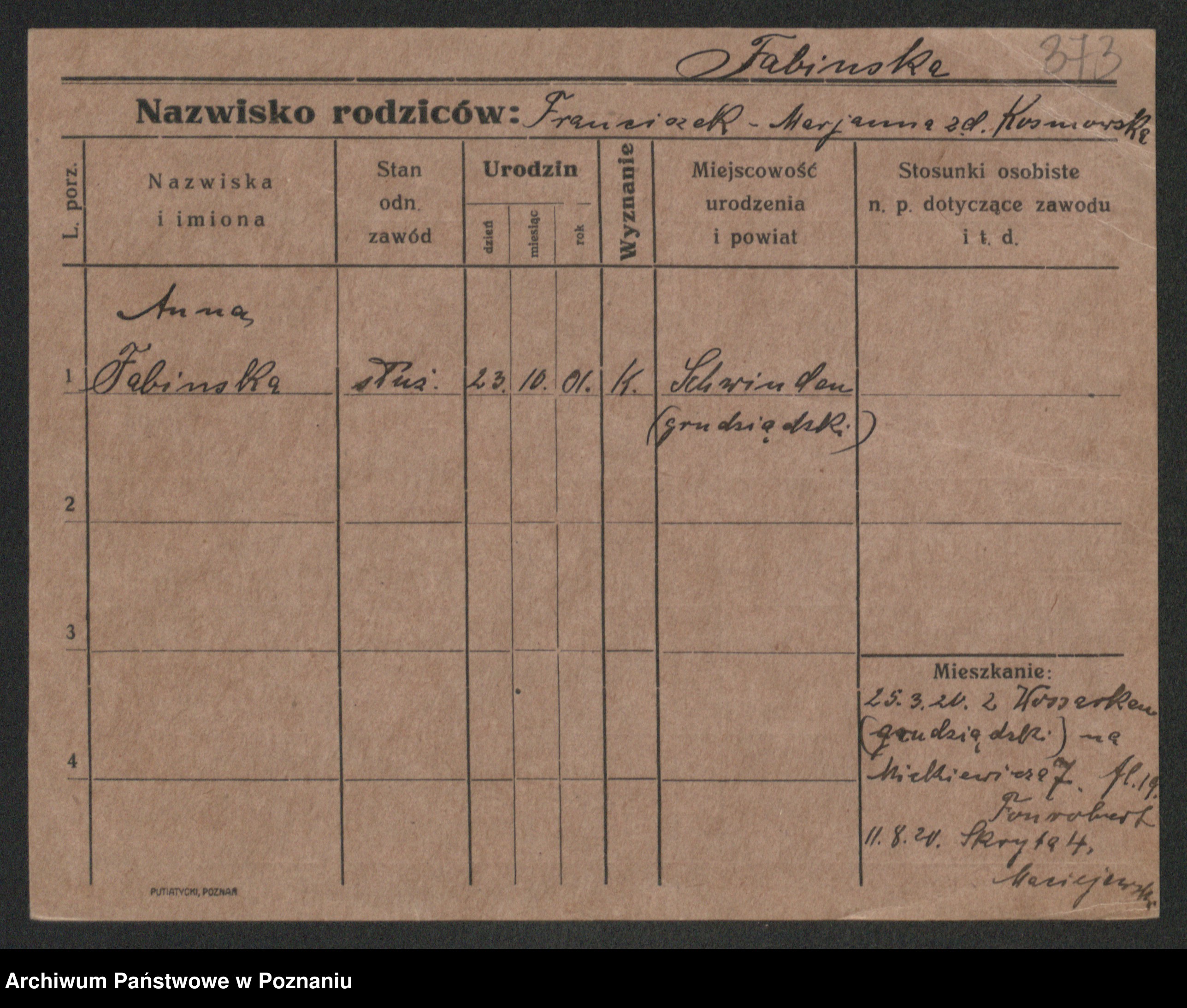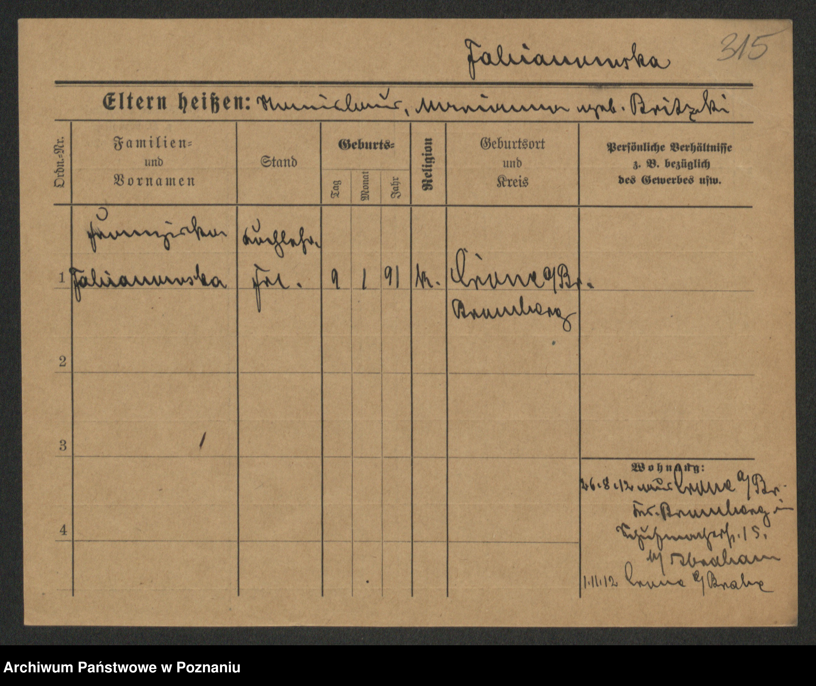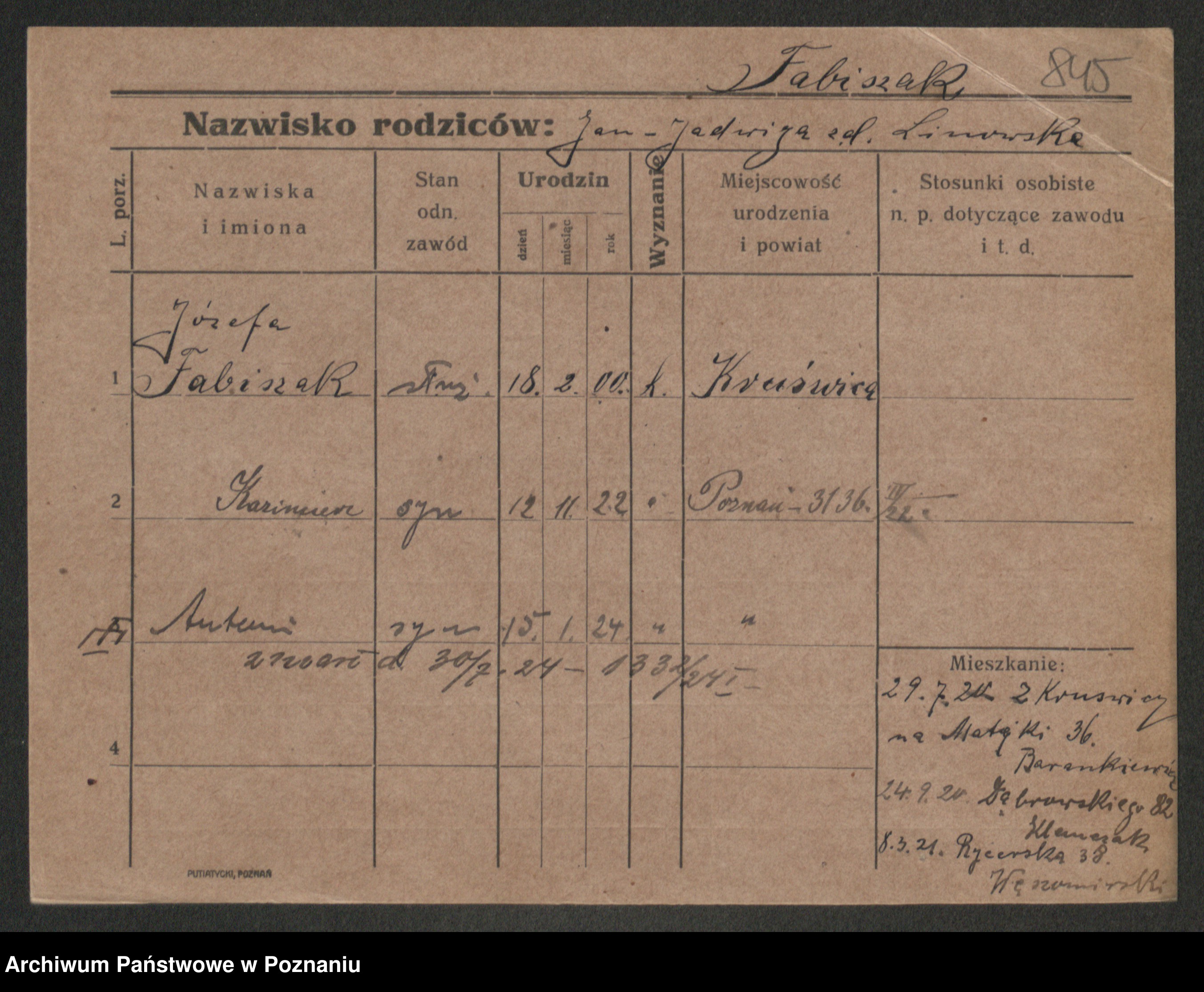 Fabrowska z d. Lipinska 1. voto Nowaczyk, Franziska