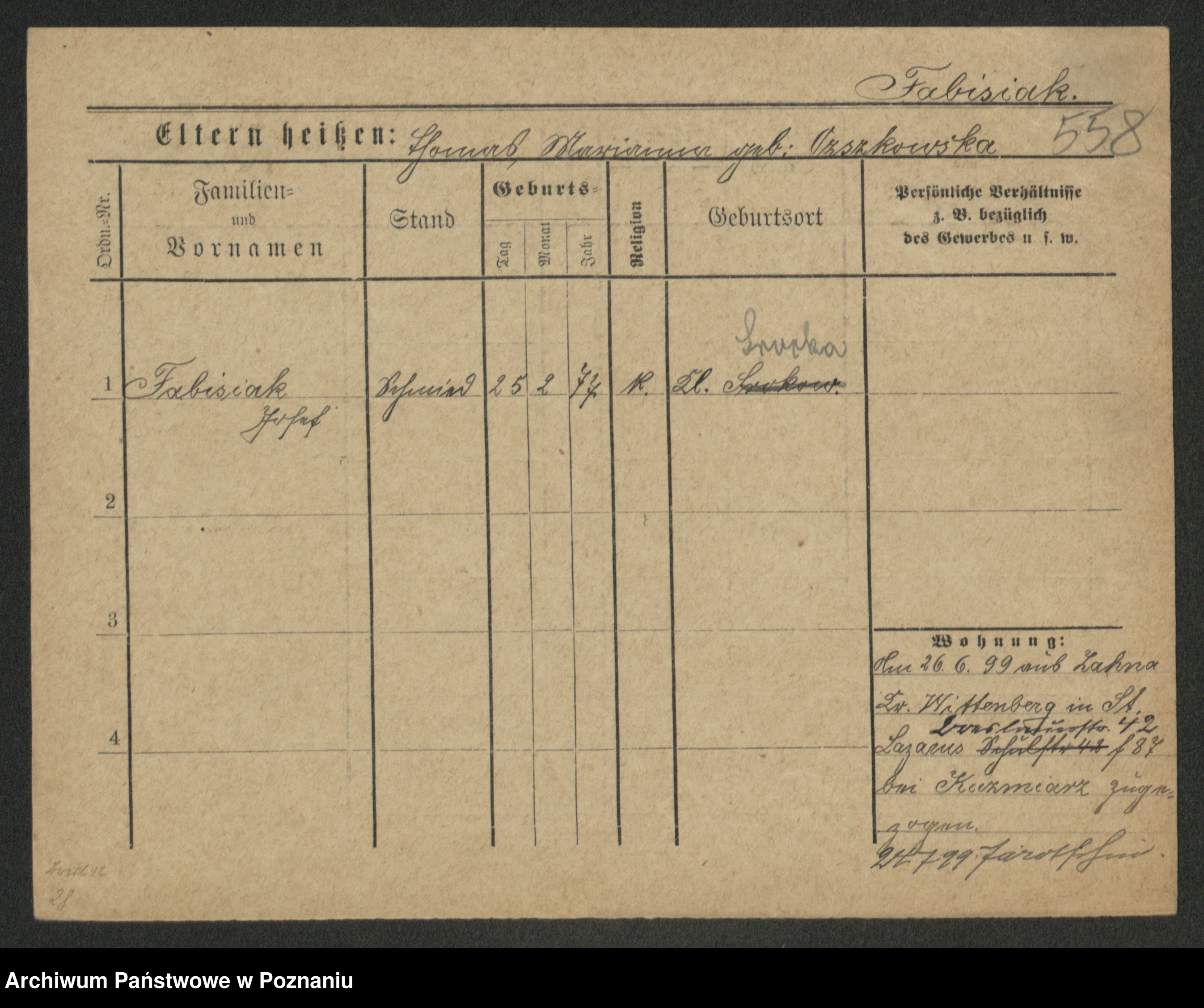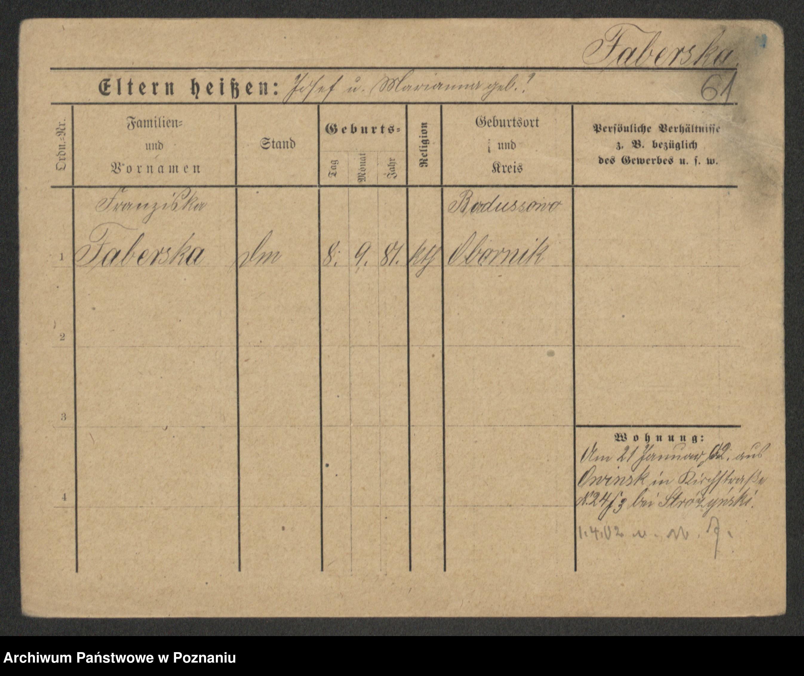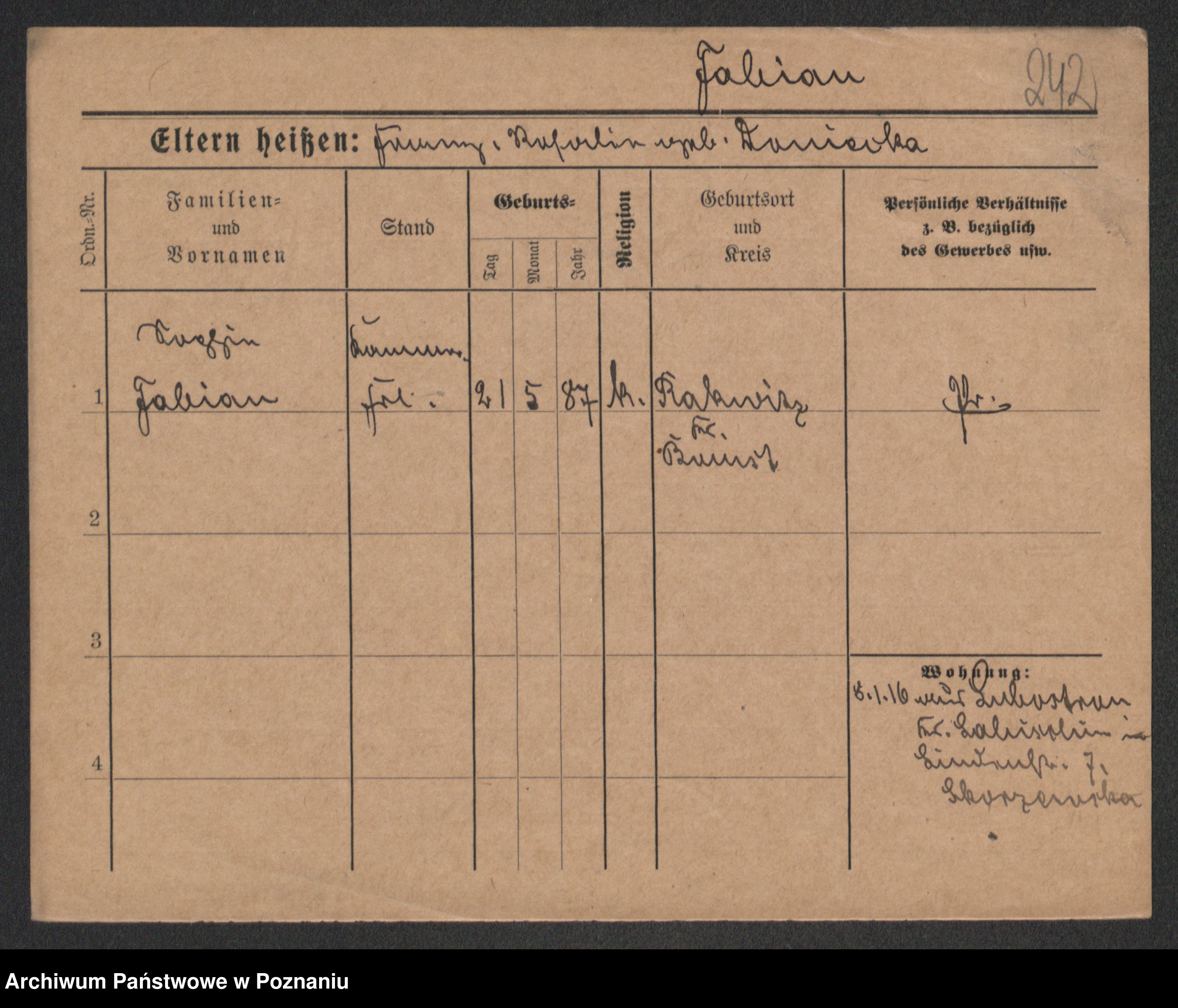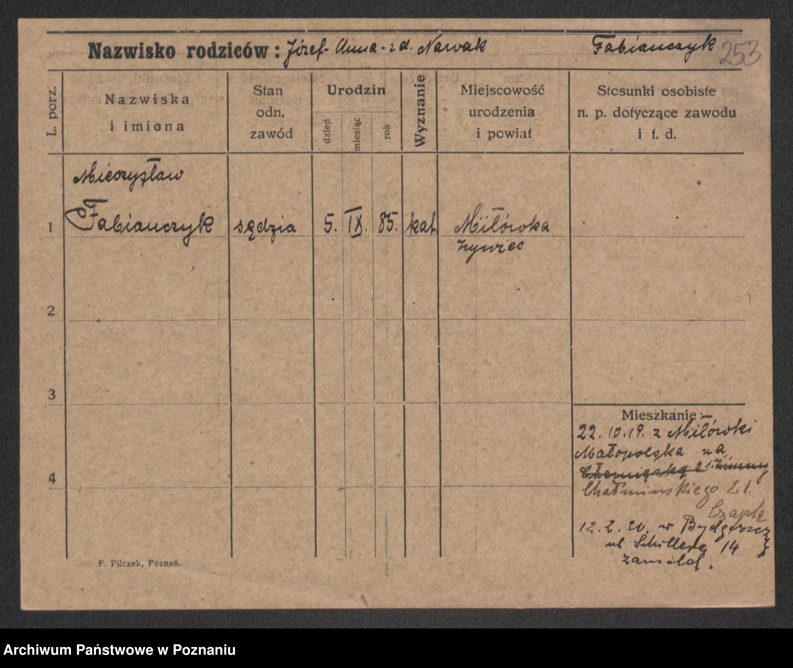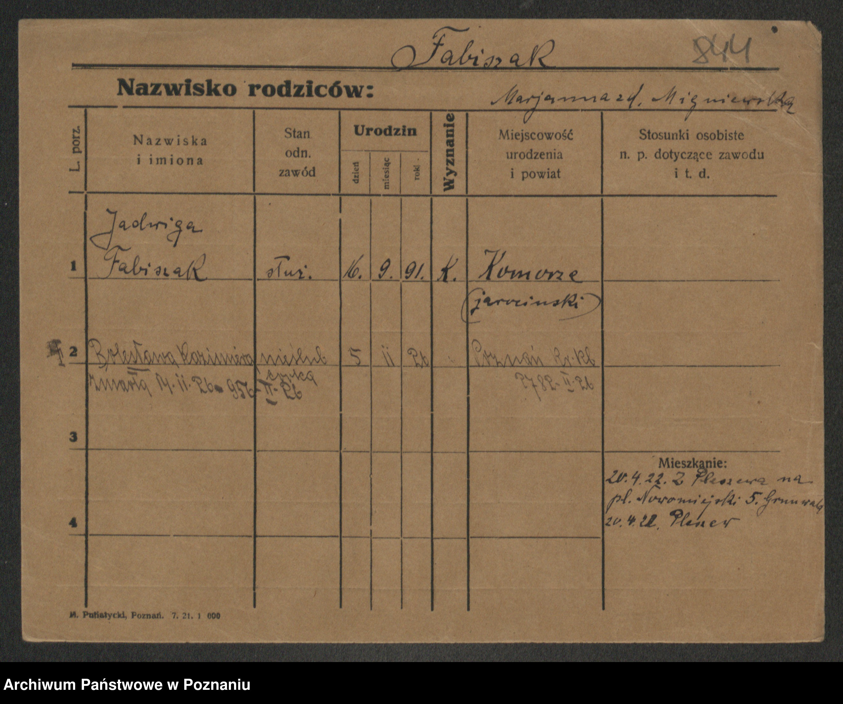 Fabrowska z d. Lipinska 1. voto Nowaczyk, Franziska