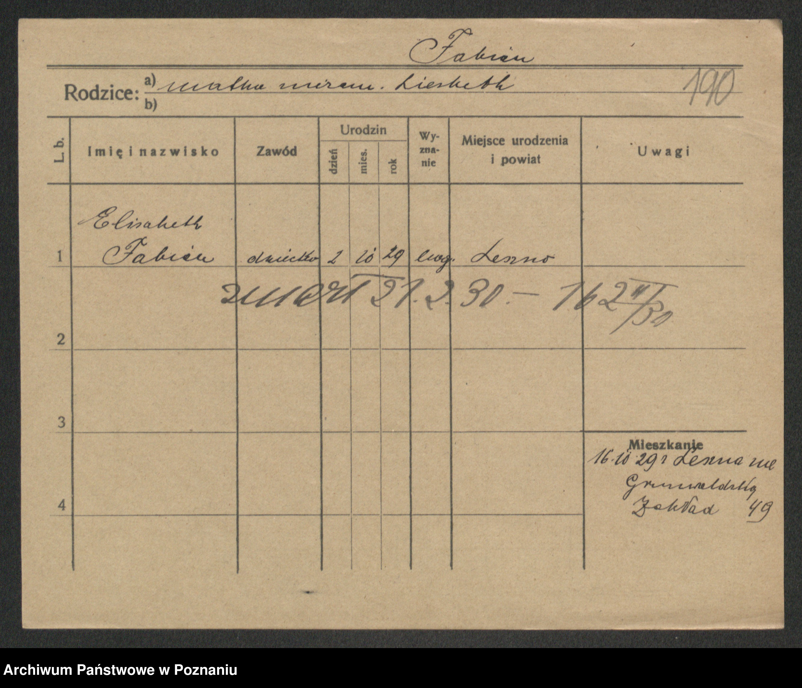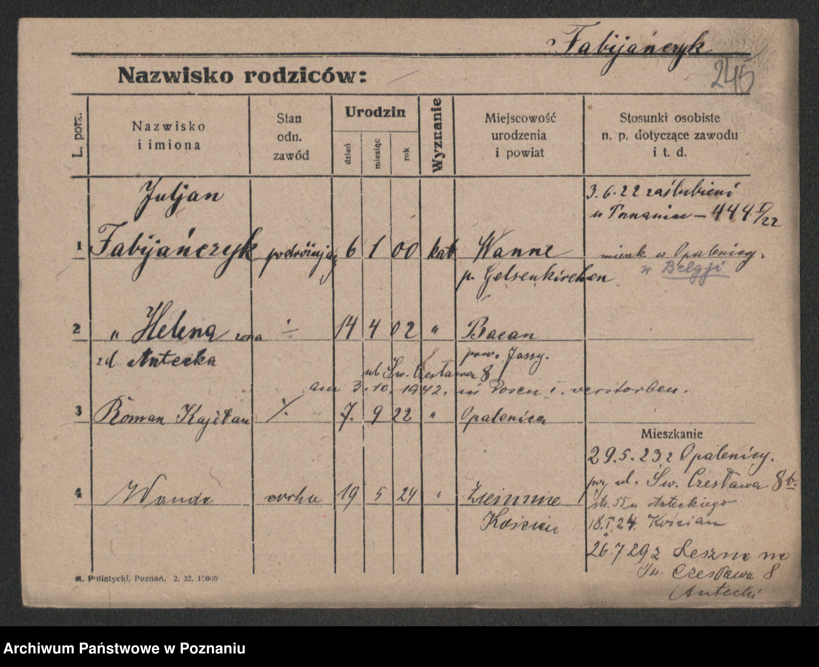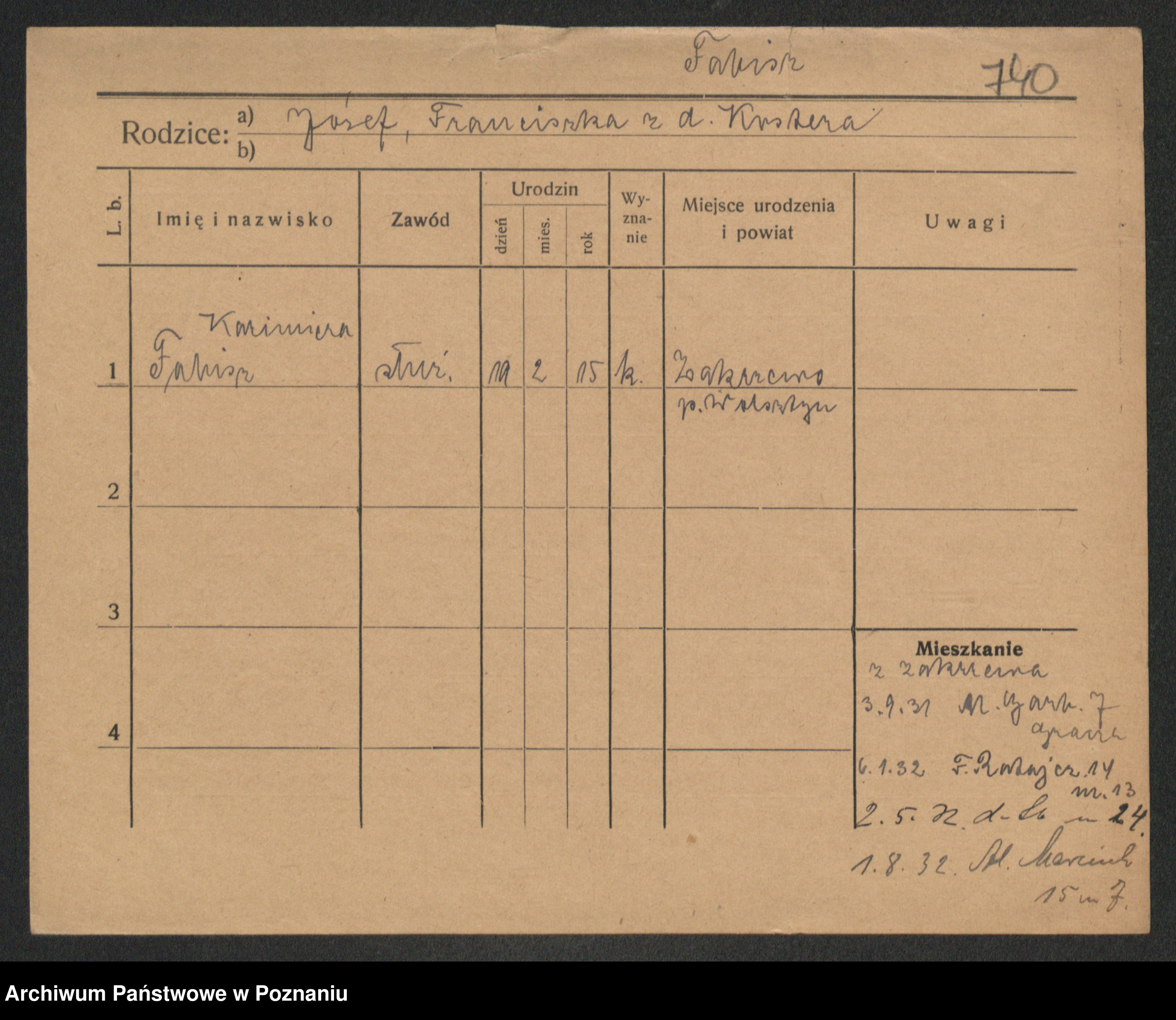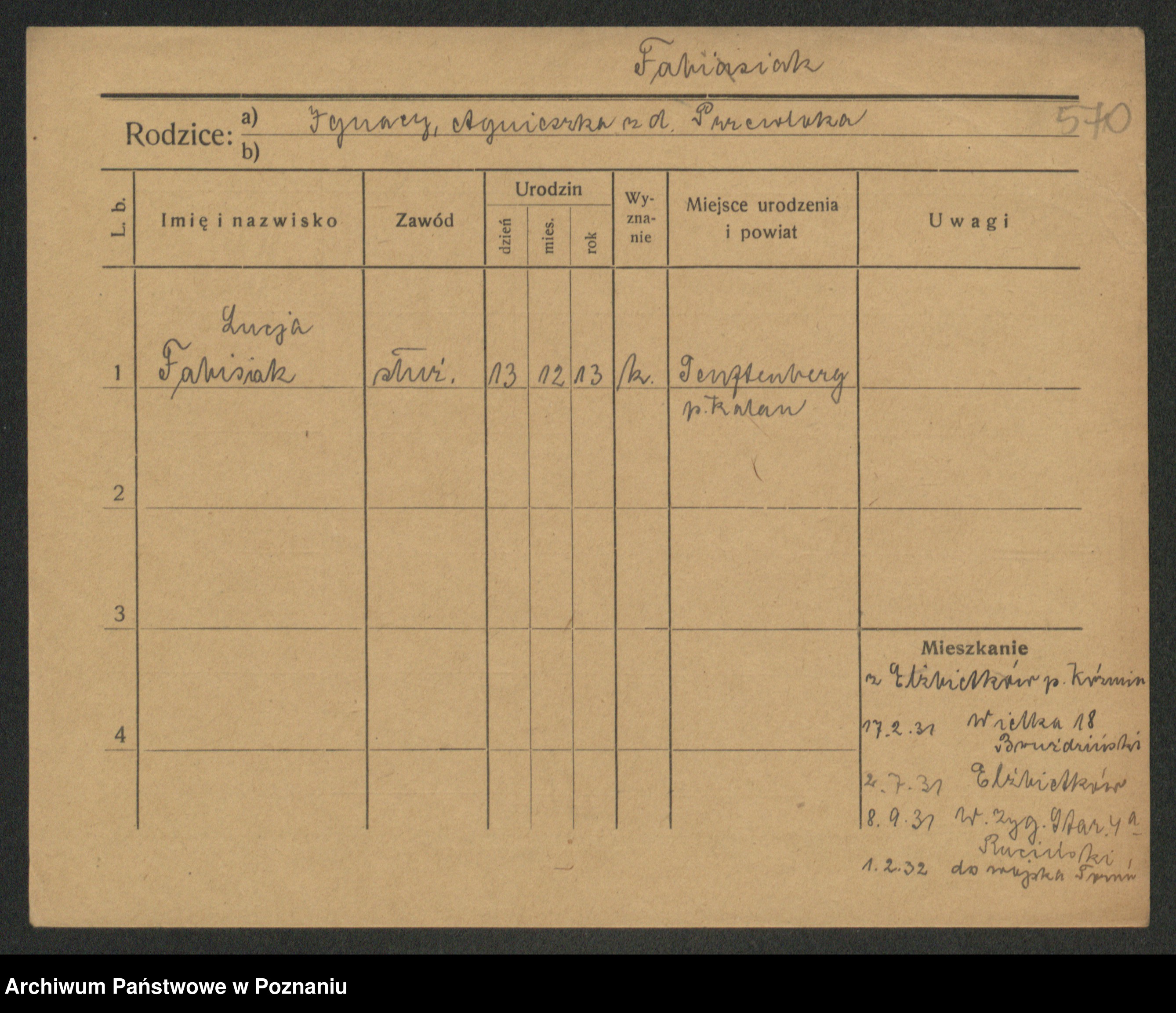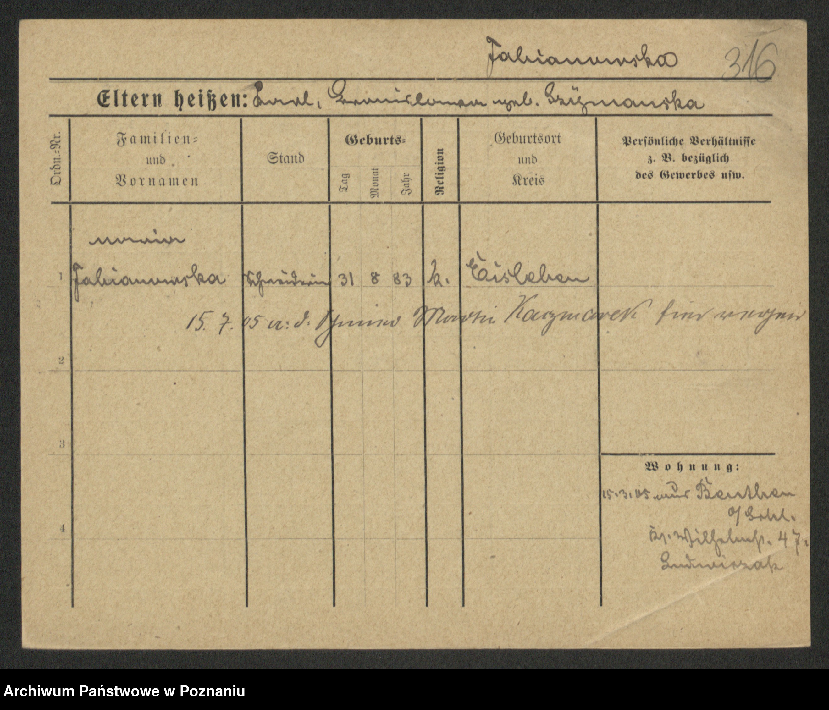Fabrowska z d. Lipinska 1. voto Nowaczyk, Franziska