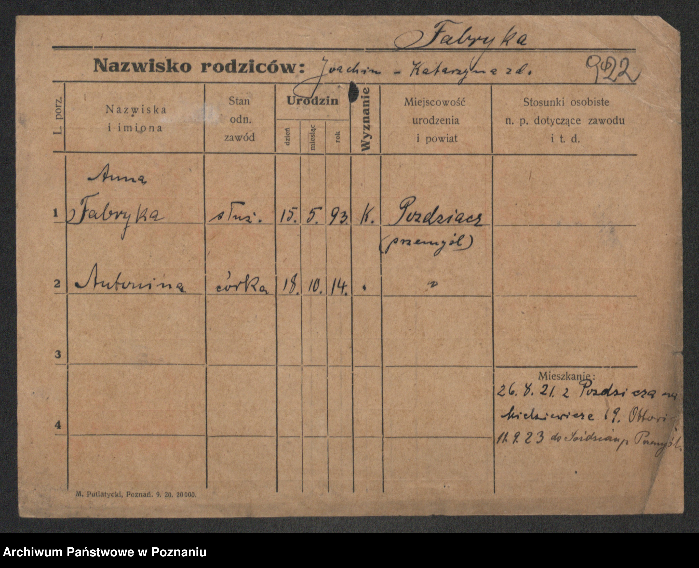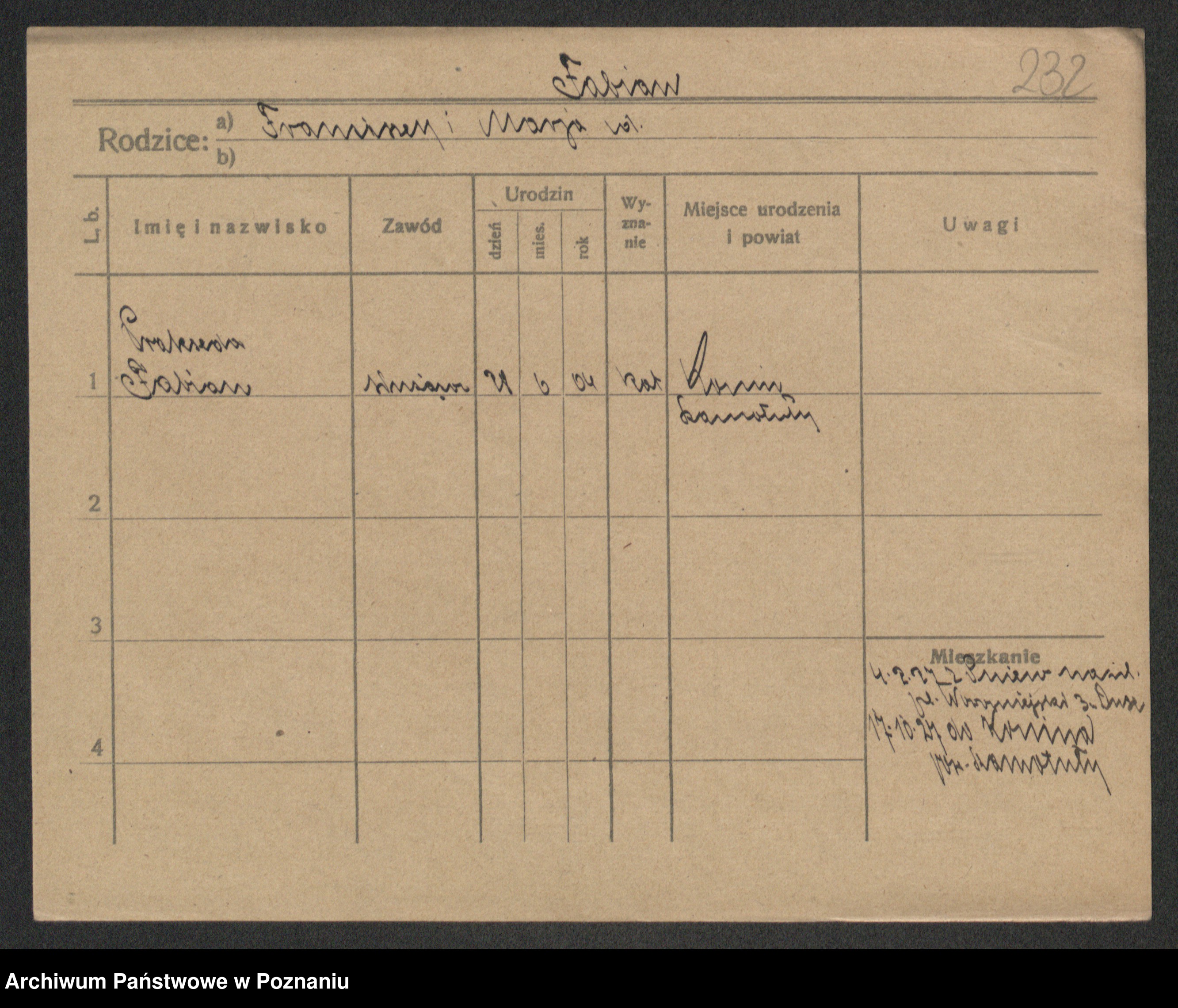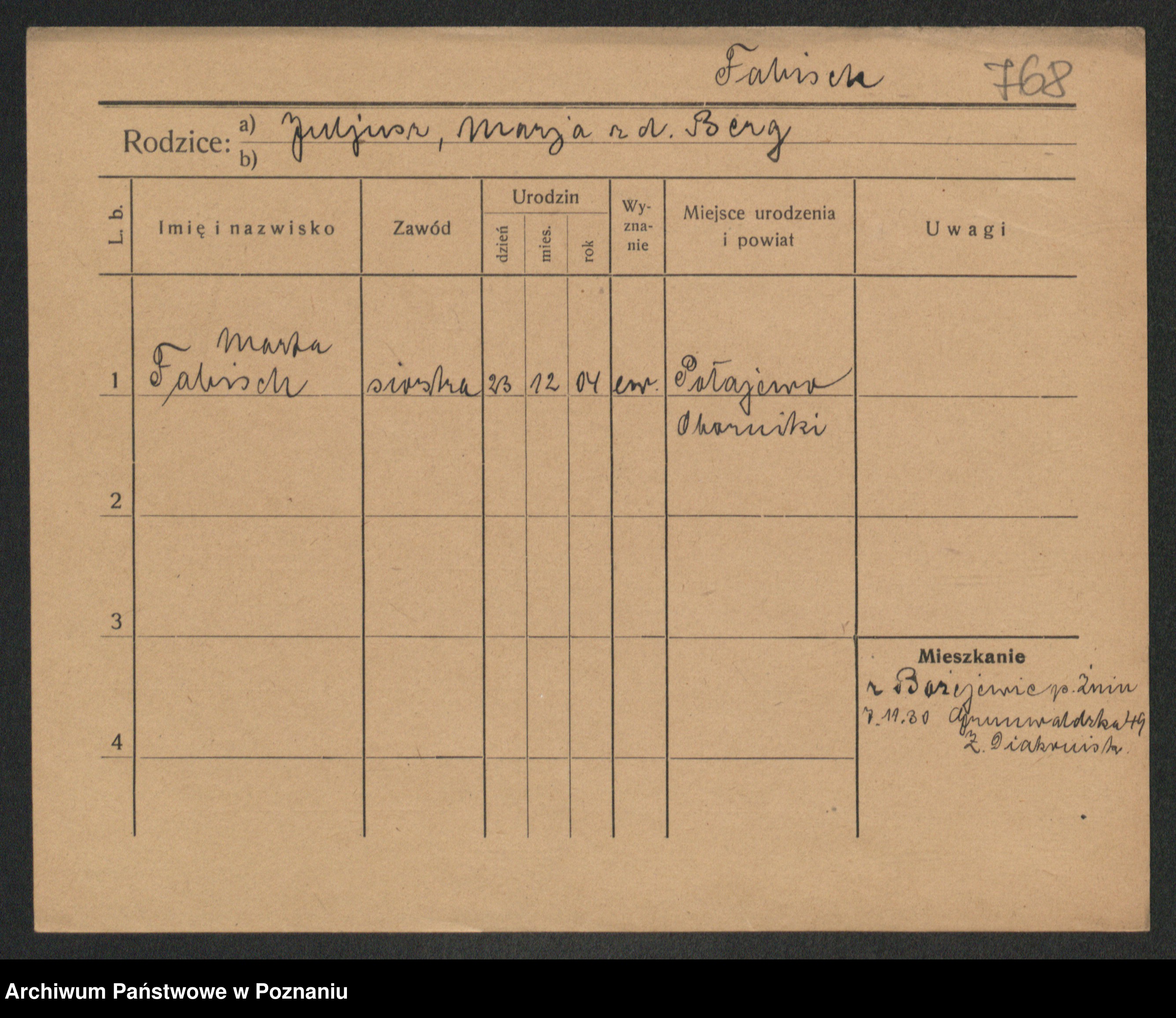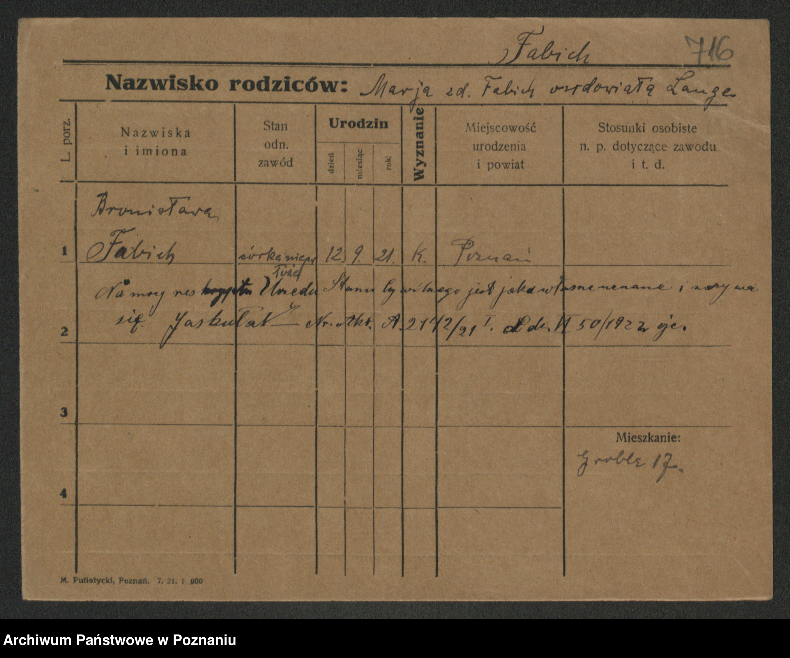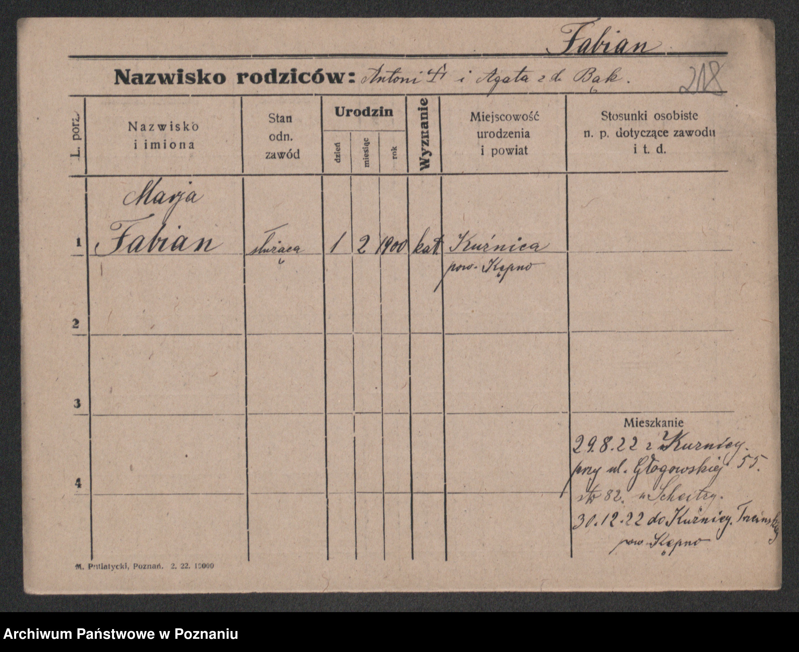 Fabrowska z d. Lipinska 1. voto Nowaczyk, Franziska