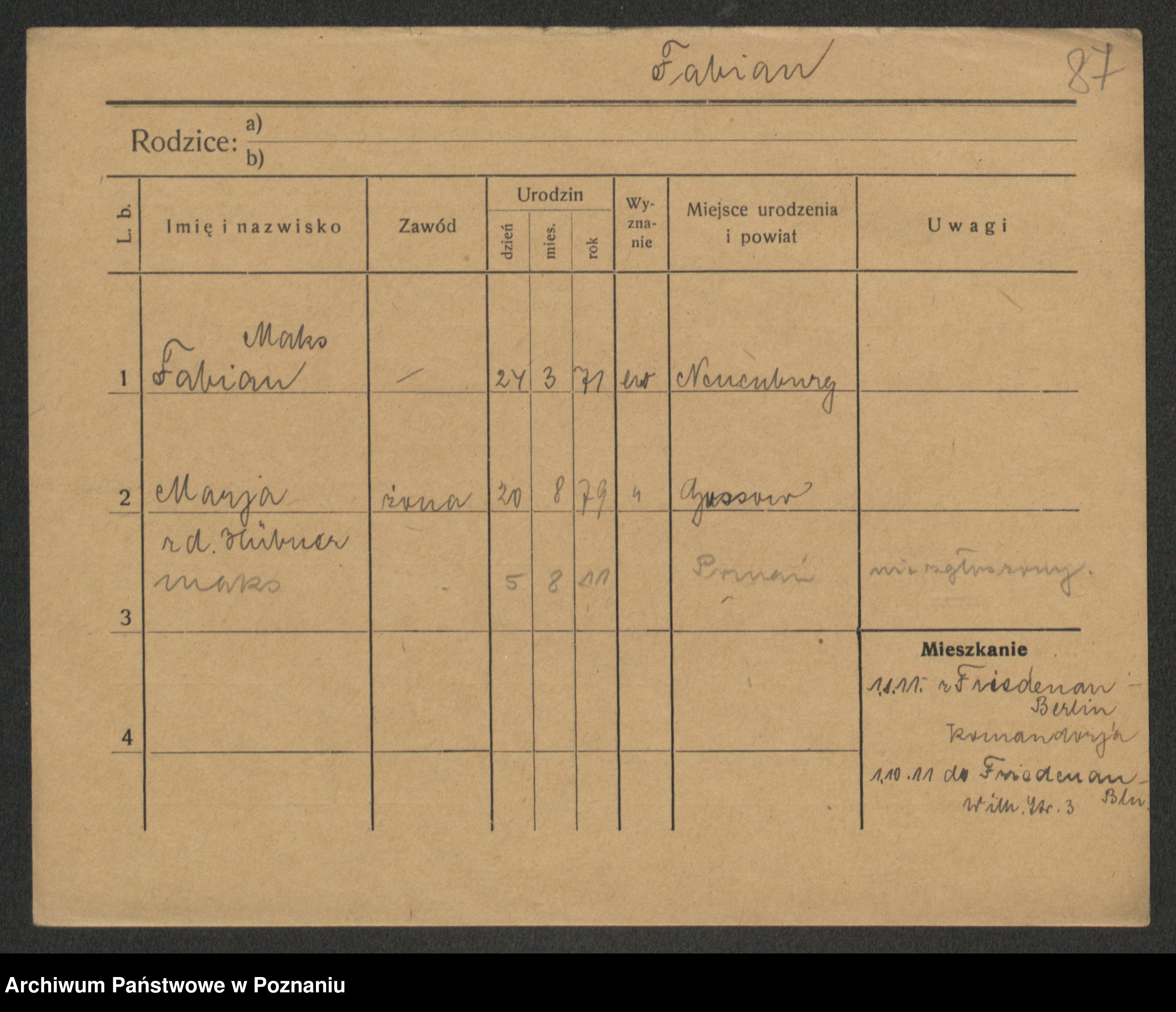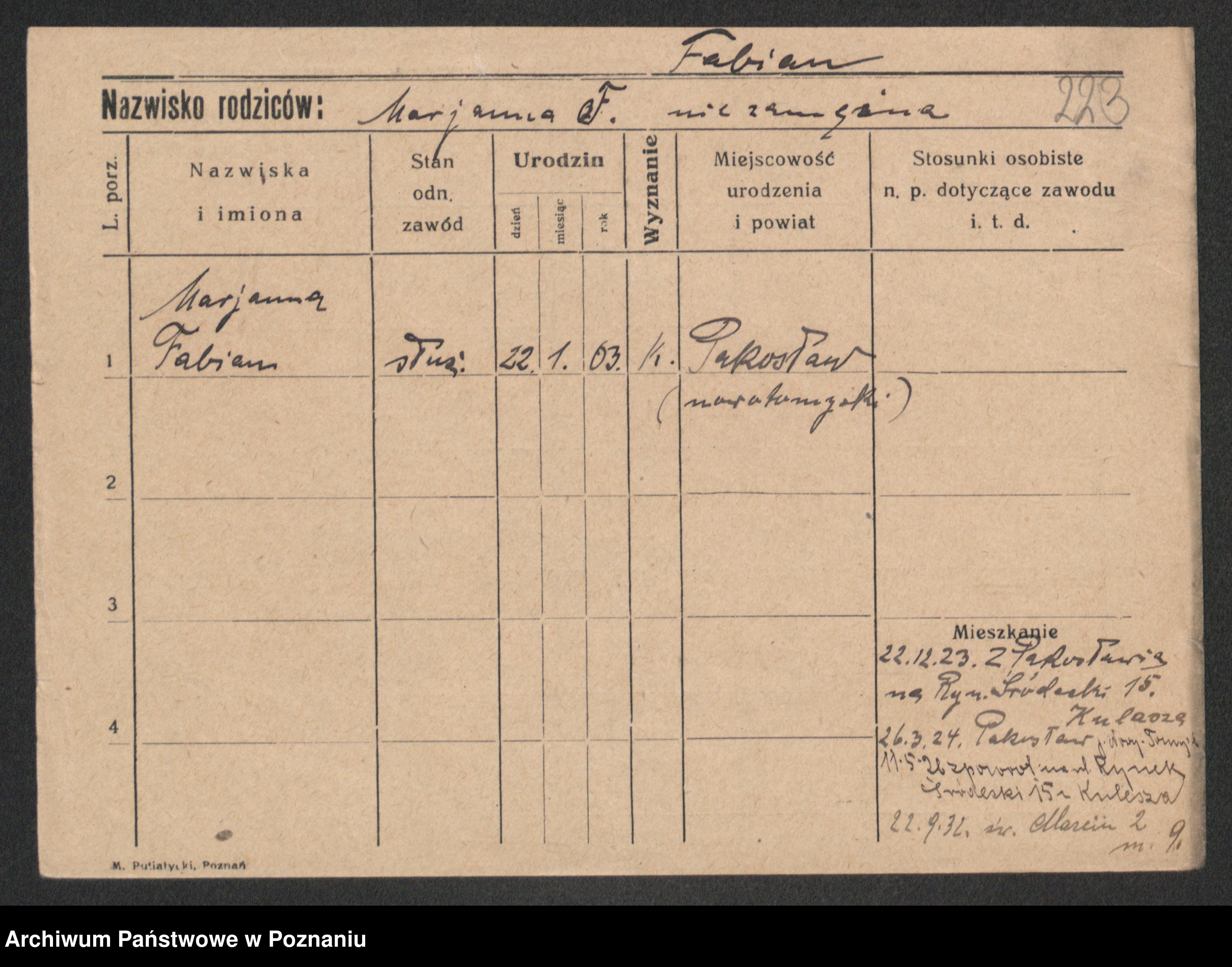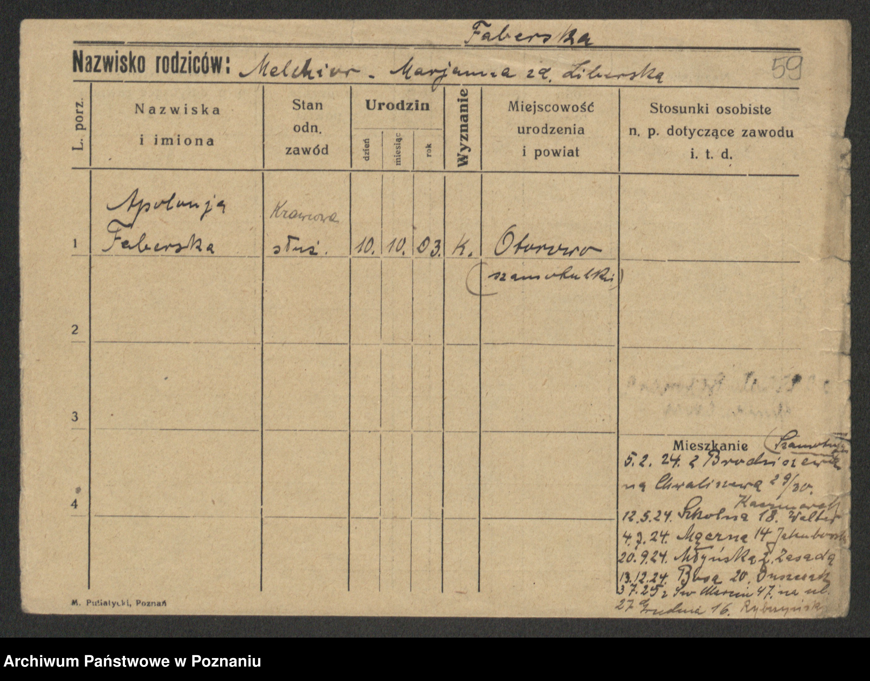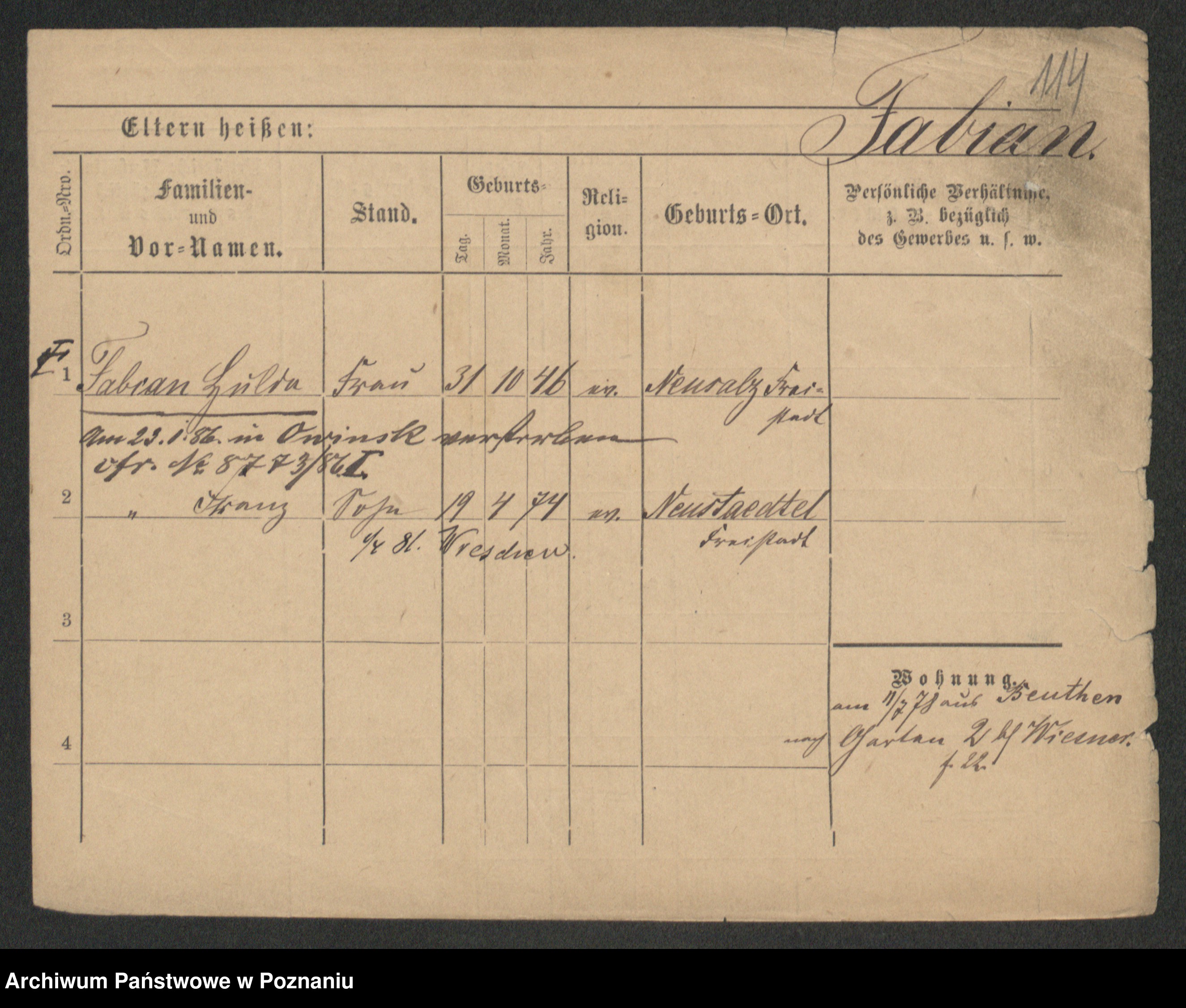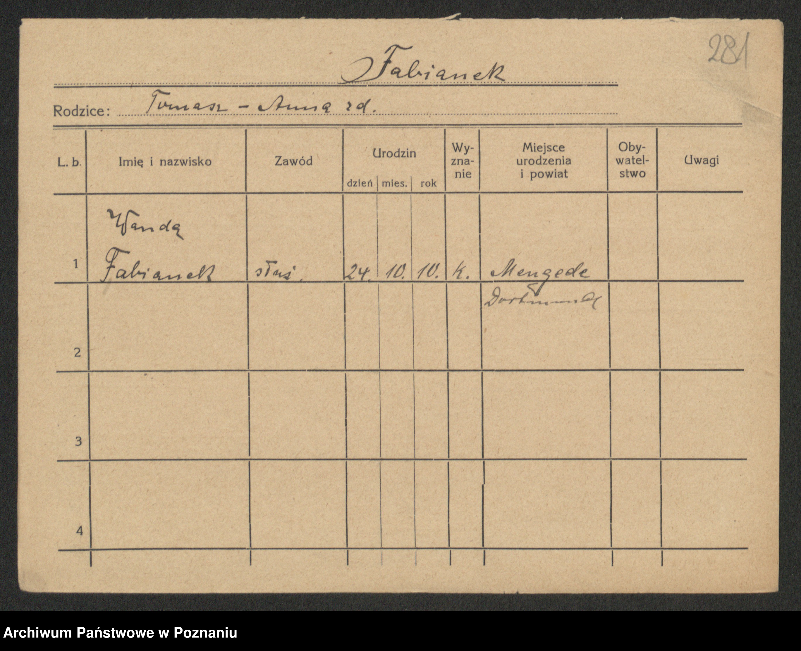 Fabrowska z d. Lipinska 1. voto Nowaczyk, Franziska