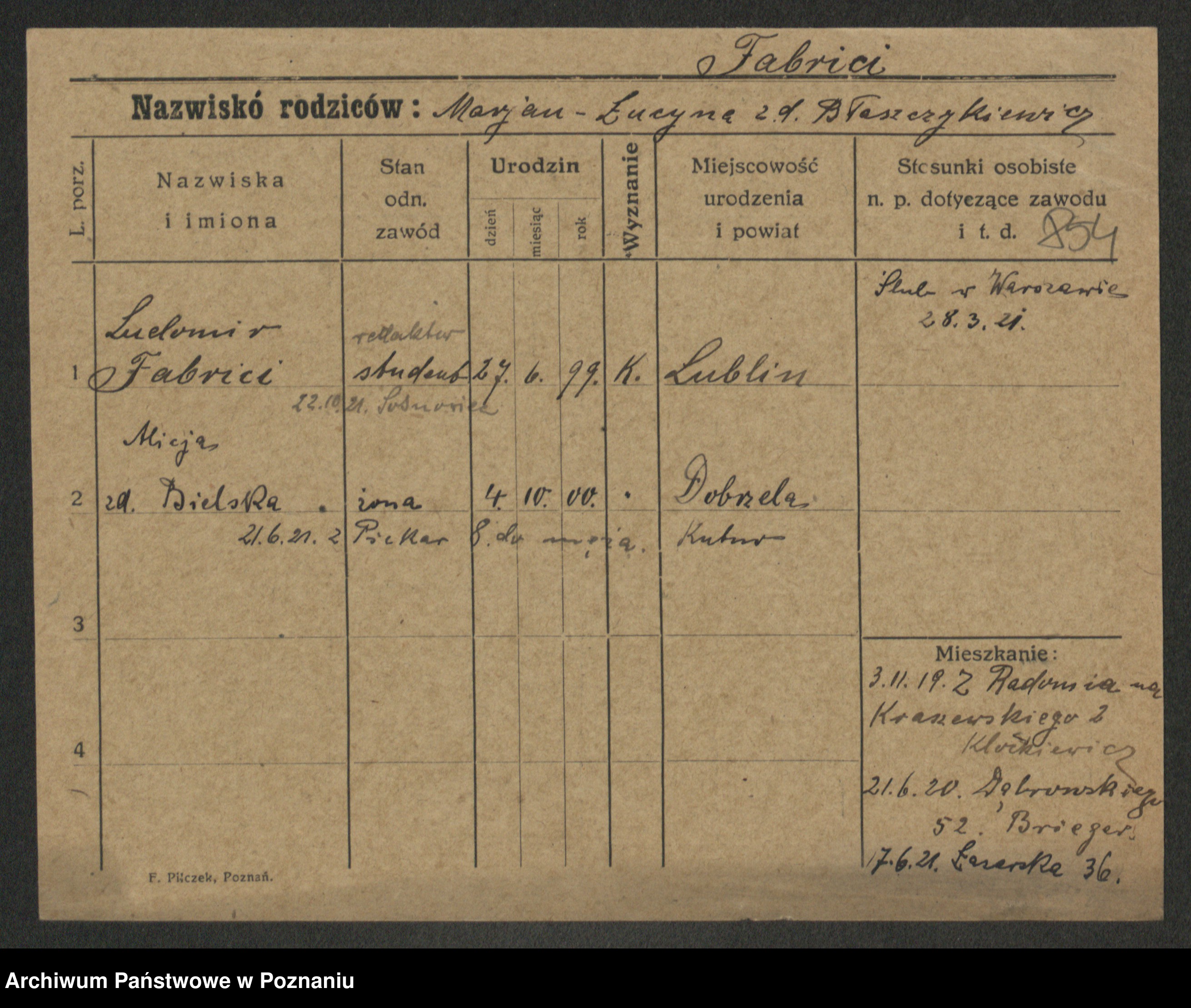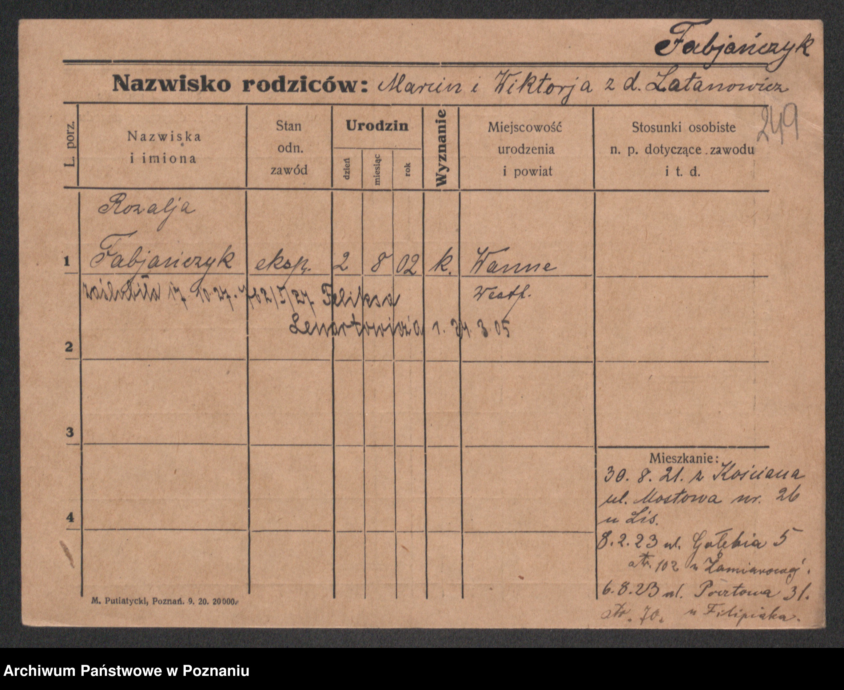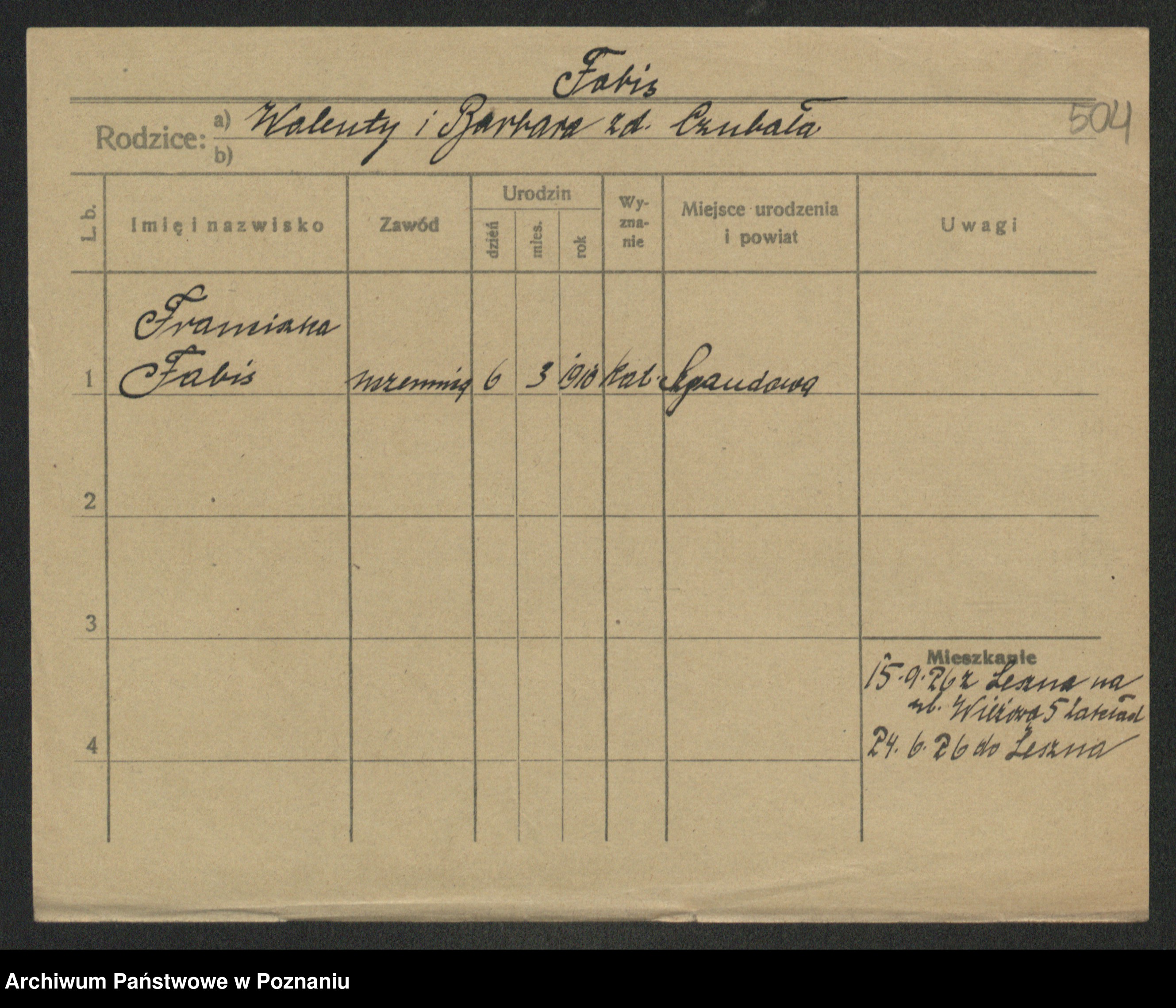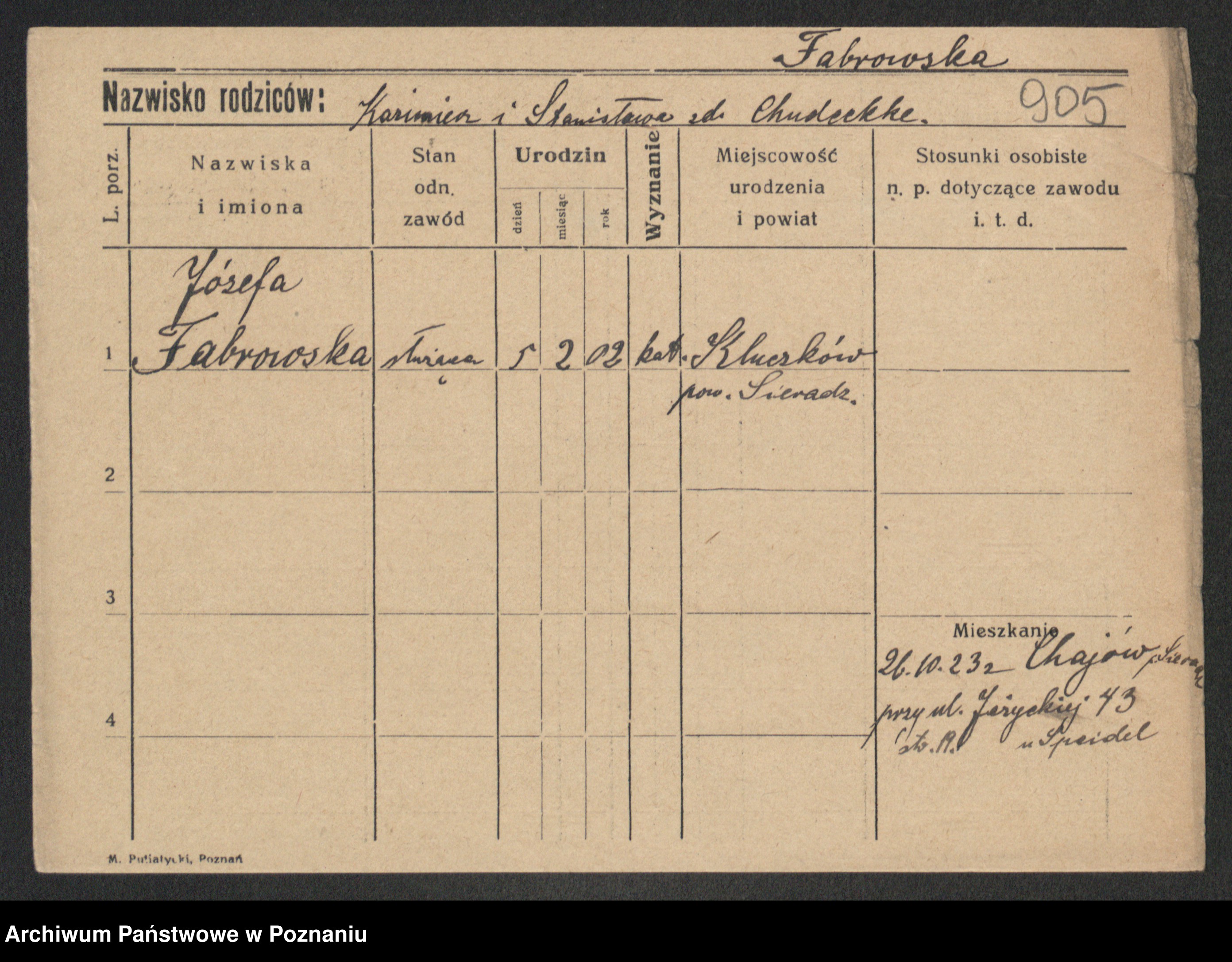 Fabrowski z d. Rubisiak 1. voto Chwalisz, Viktoria