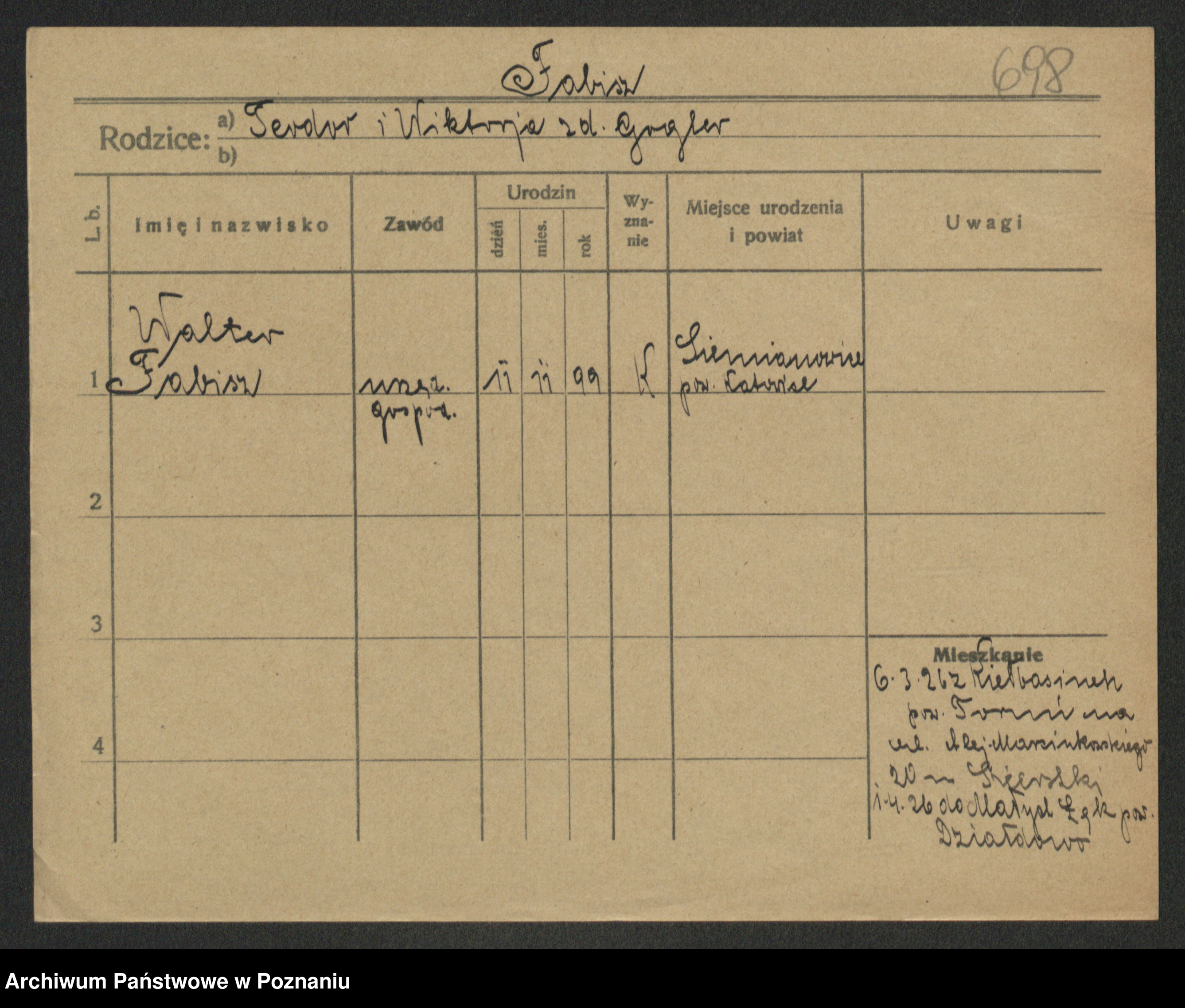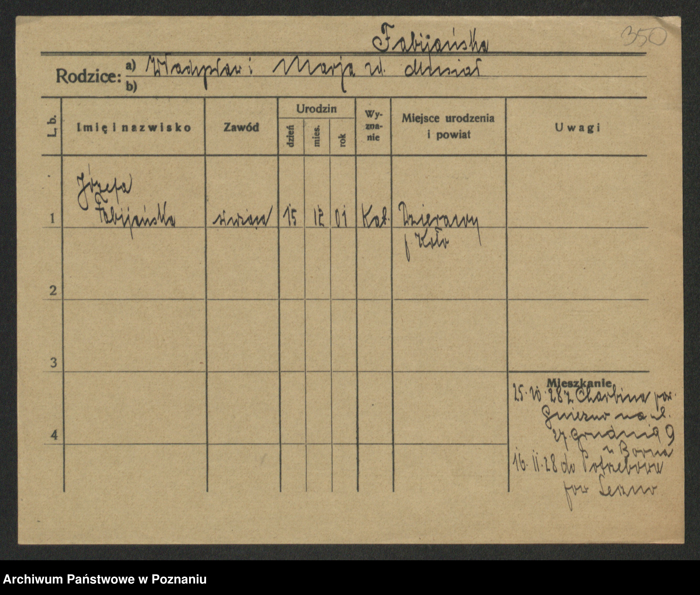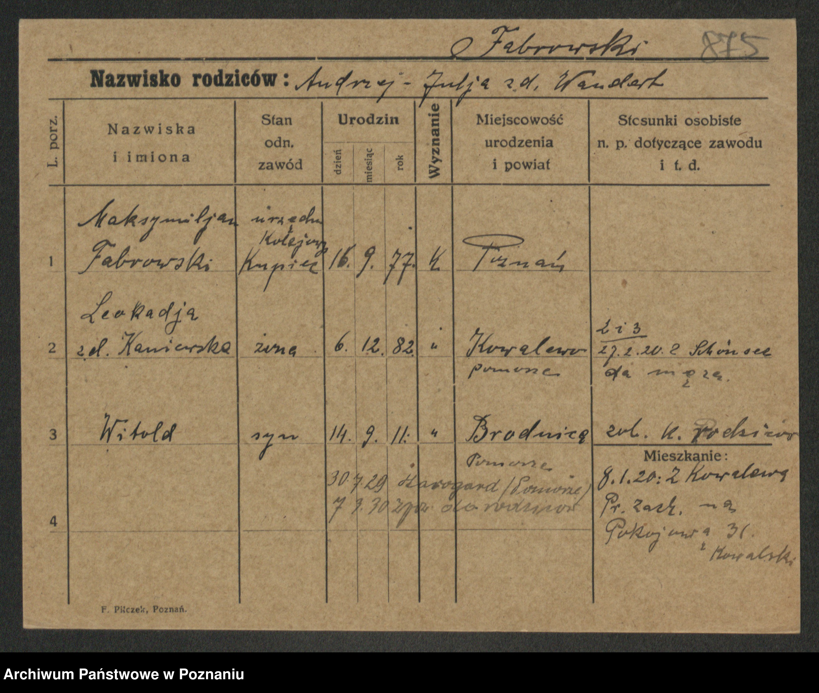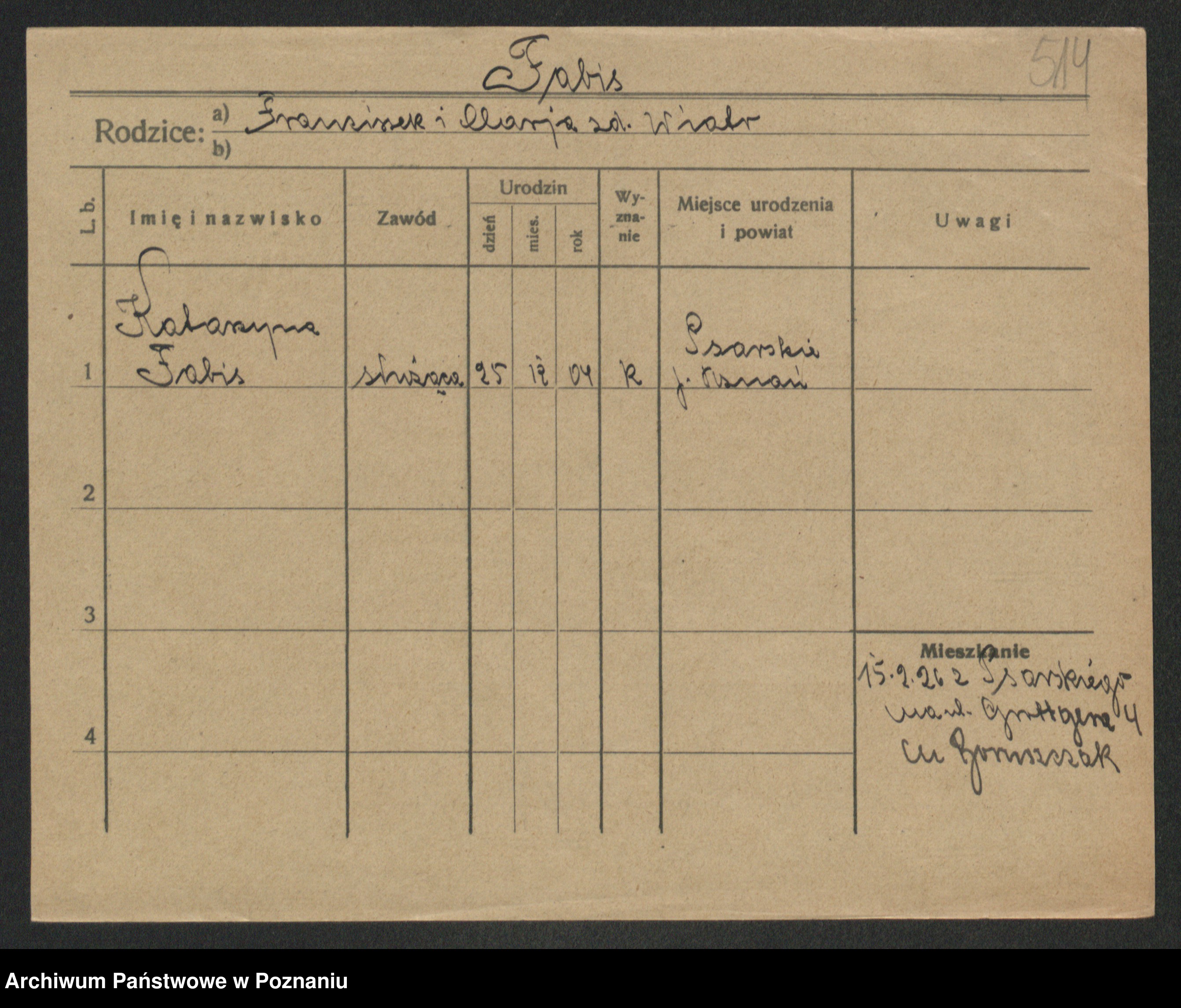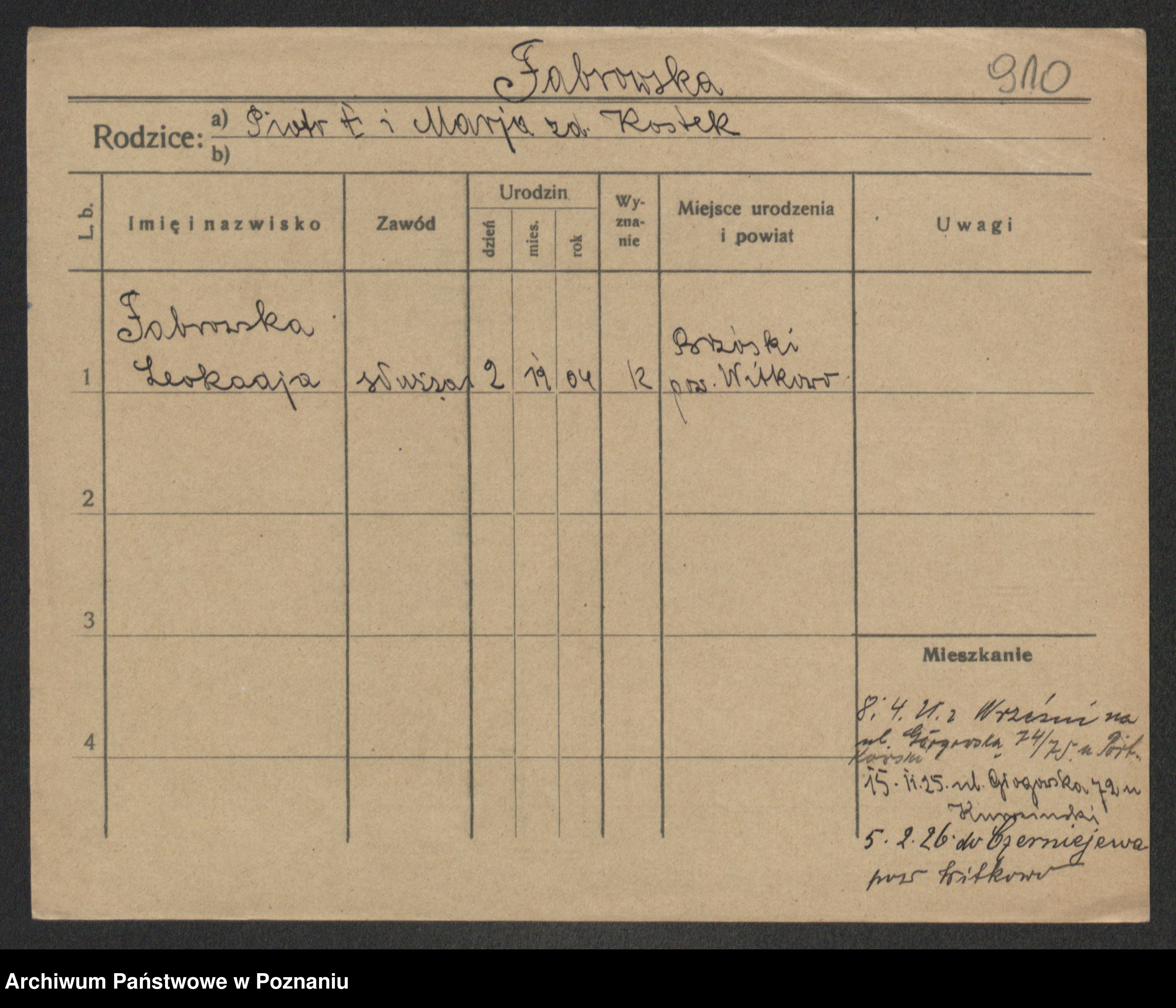 Fabrowski z d. Rubisiak 1. voto Chwalisz, Viktoria