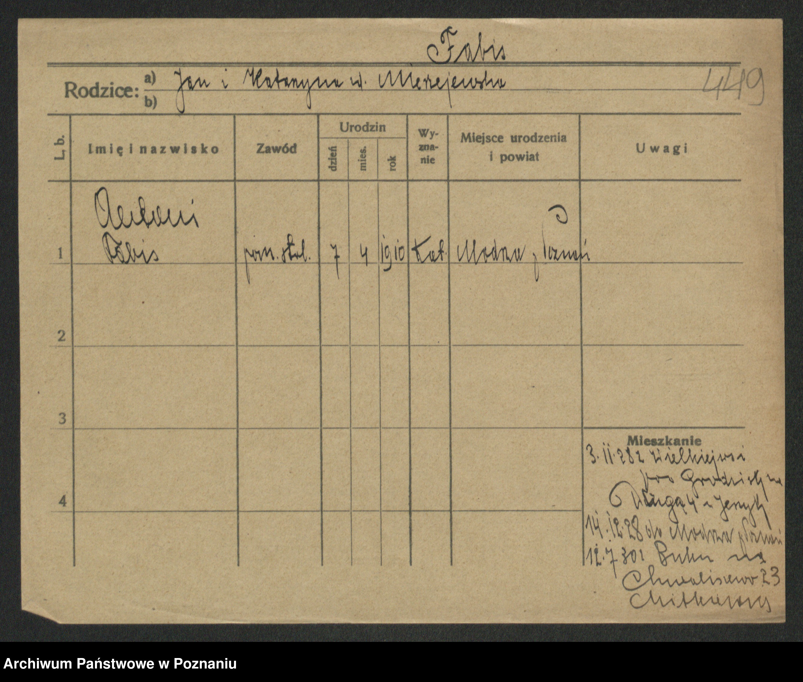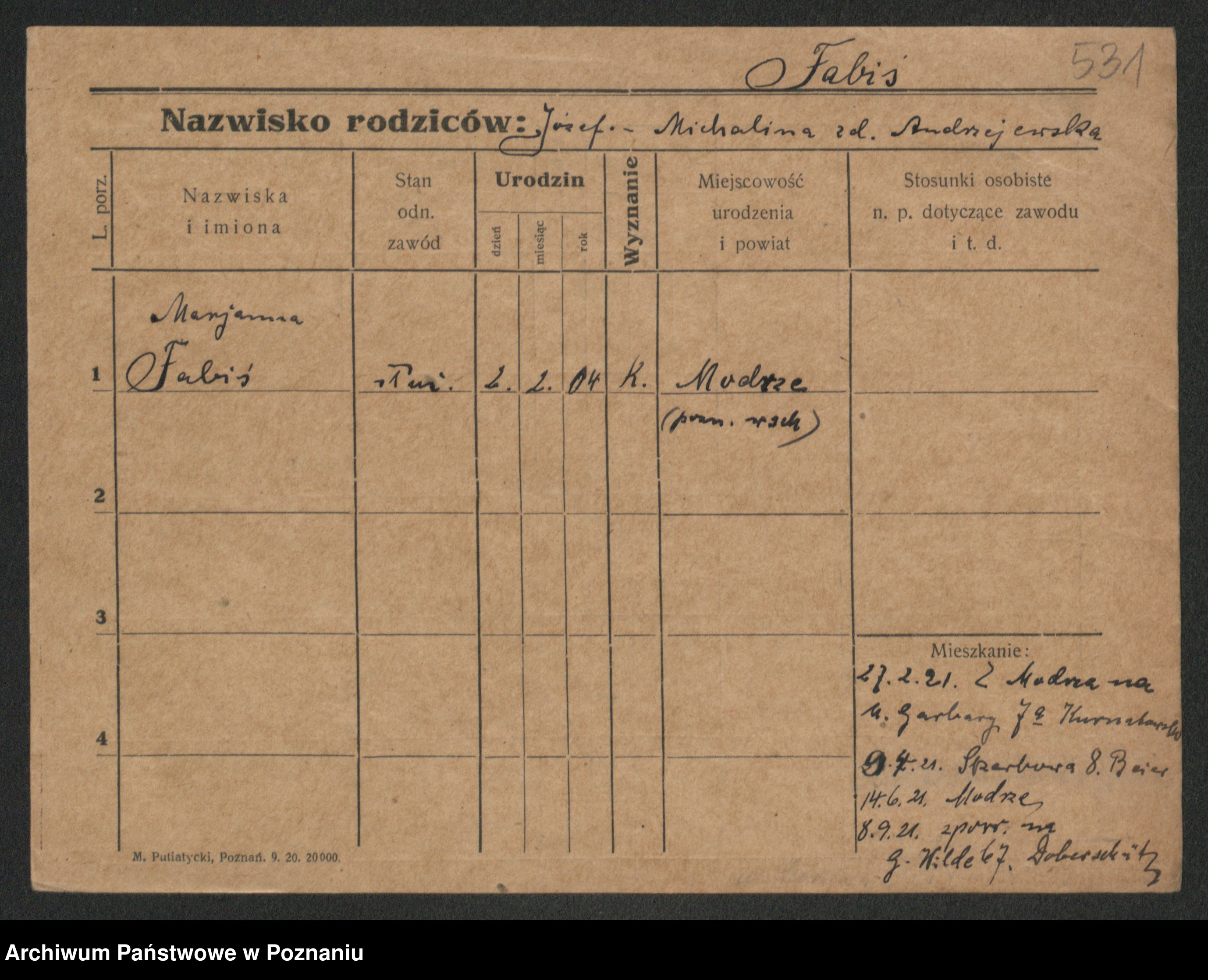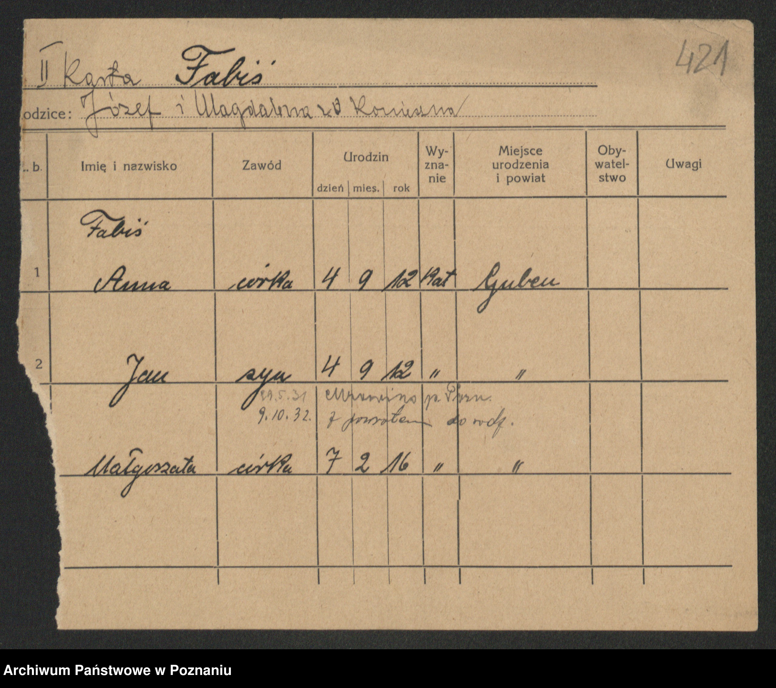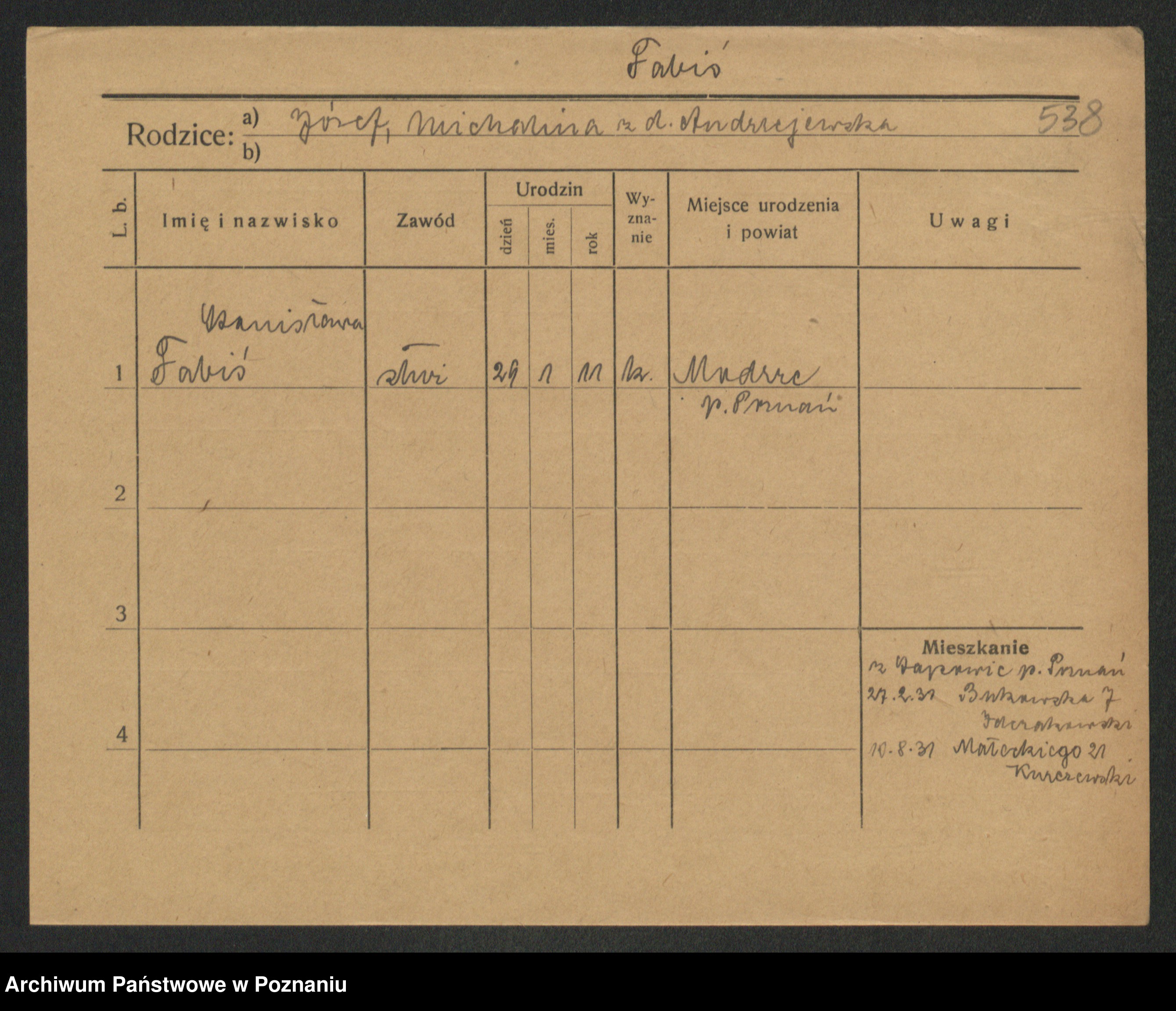 Fabrowski z d. Rubisiak 1. voto Chwalisz, Viktoria