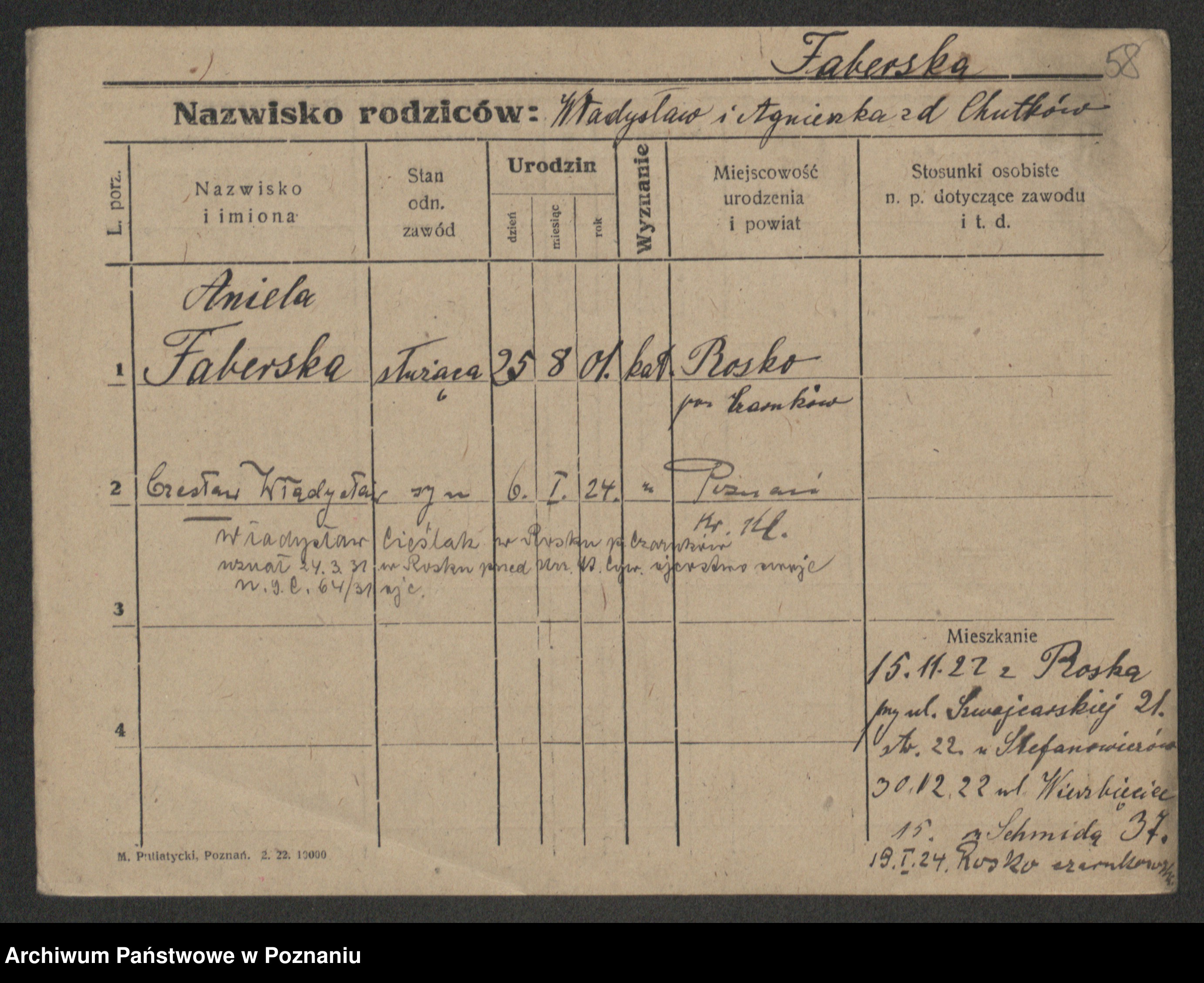 Faberski, Wacława