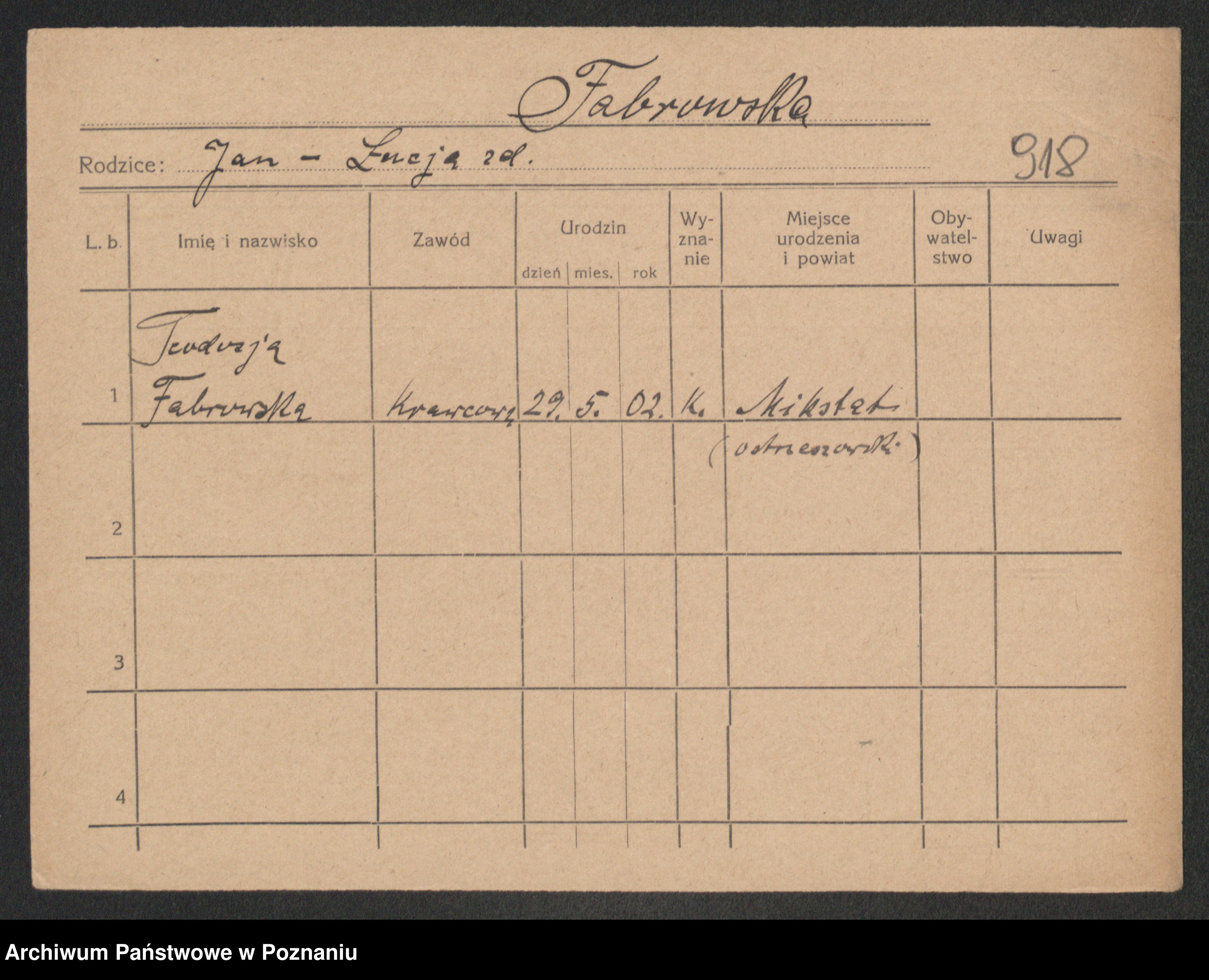 Fabrowski z d. Kaniewska, Leokadja