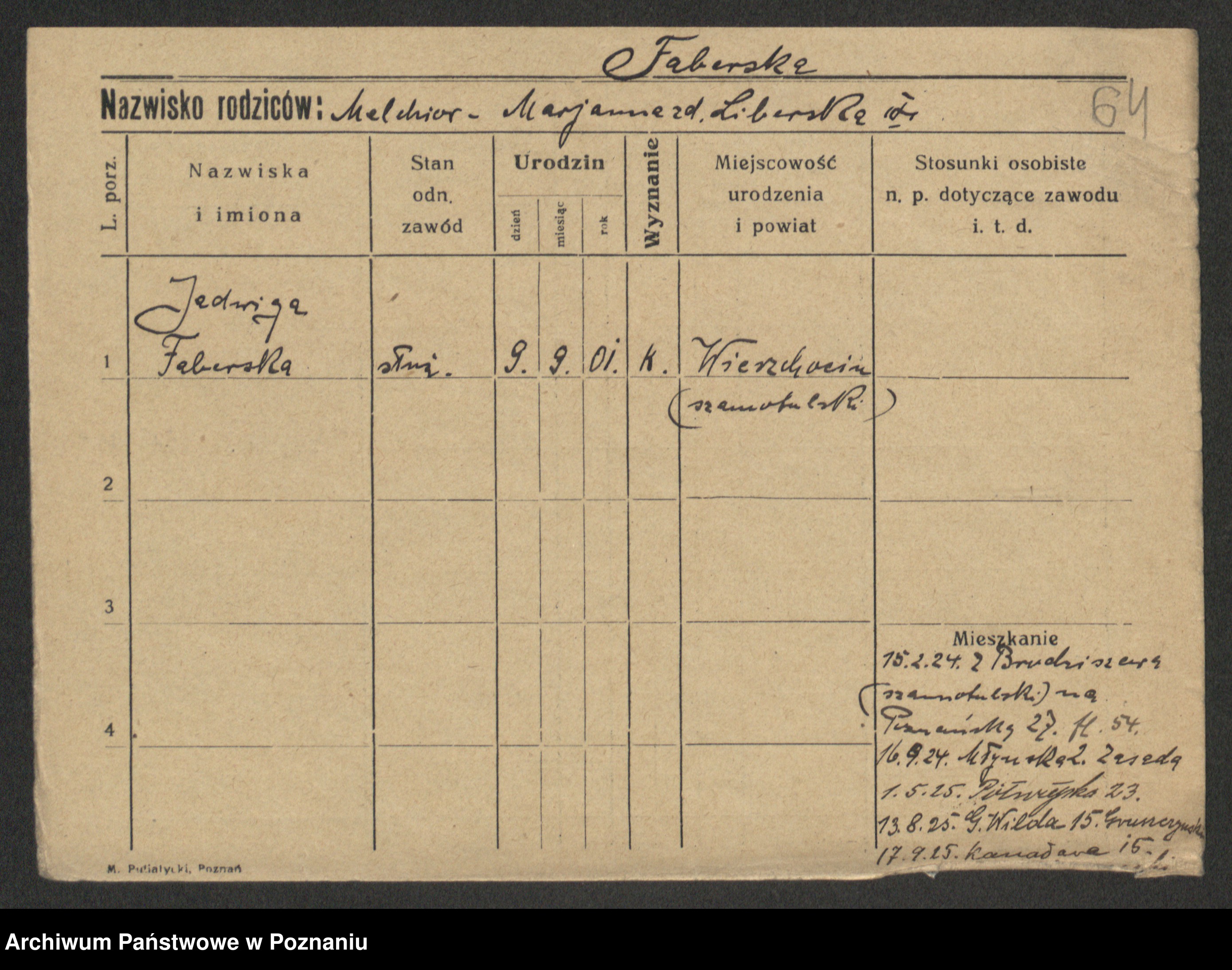 Faberski z d. Piechota, Magdalena