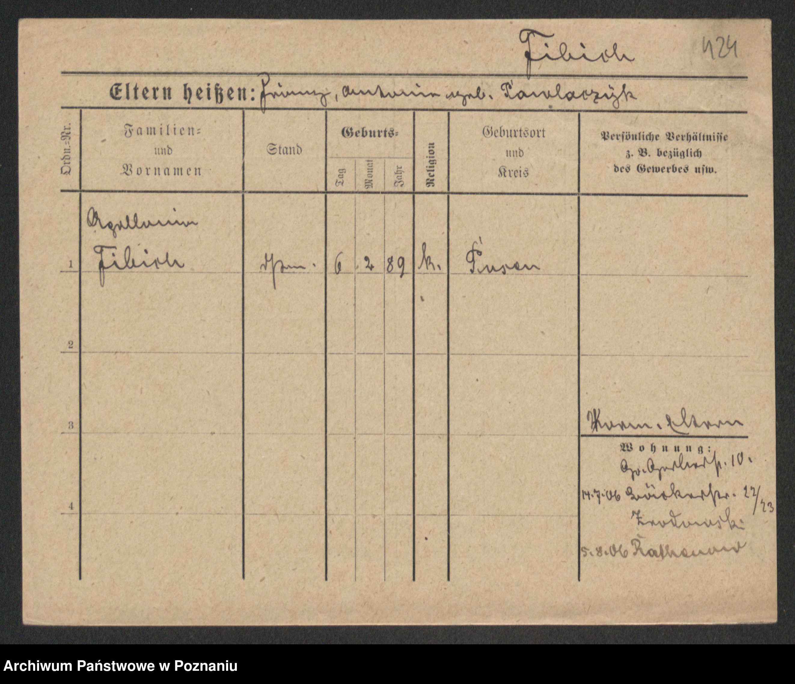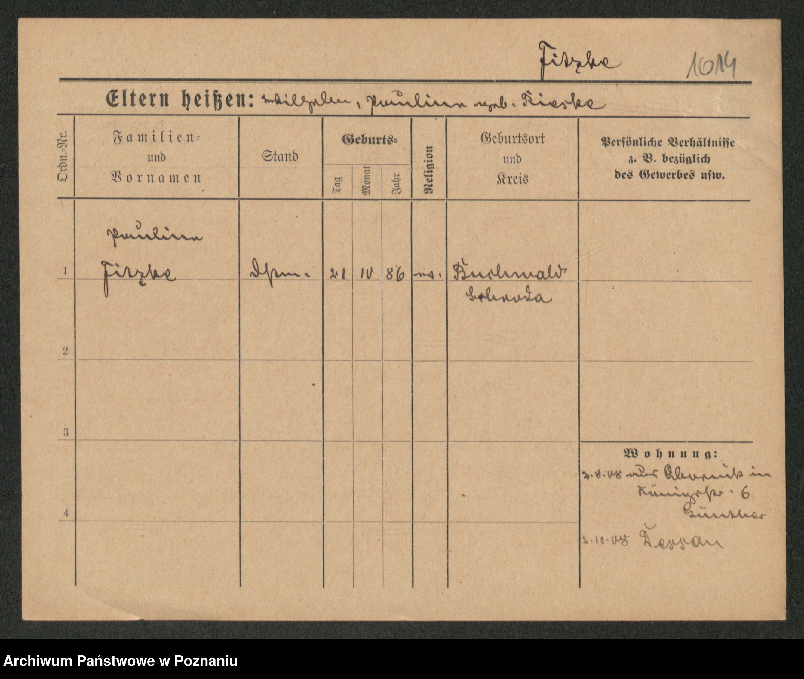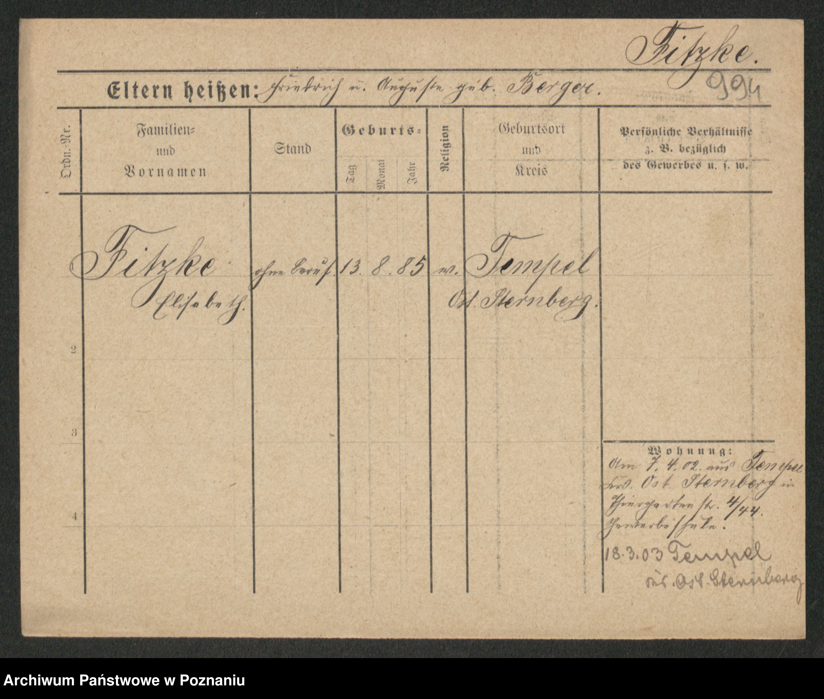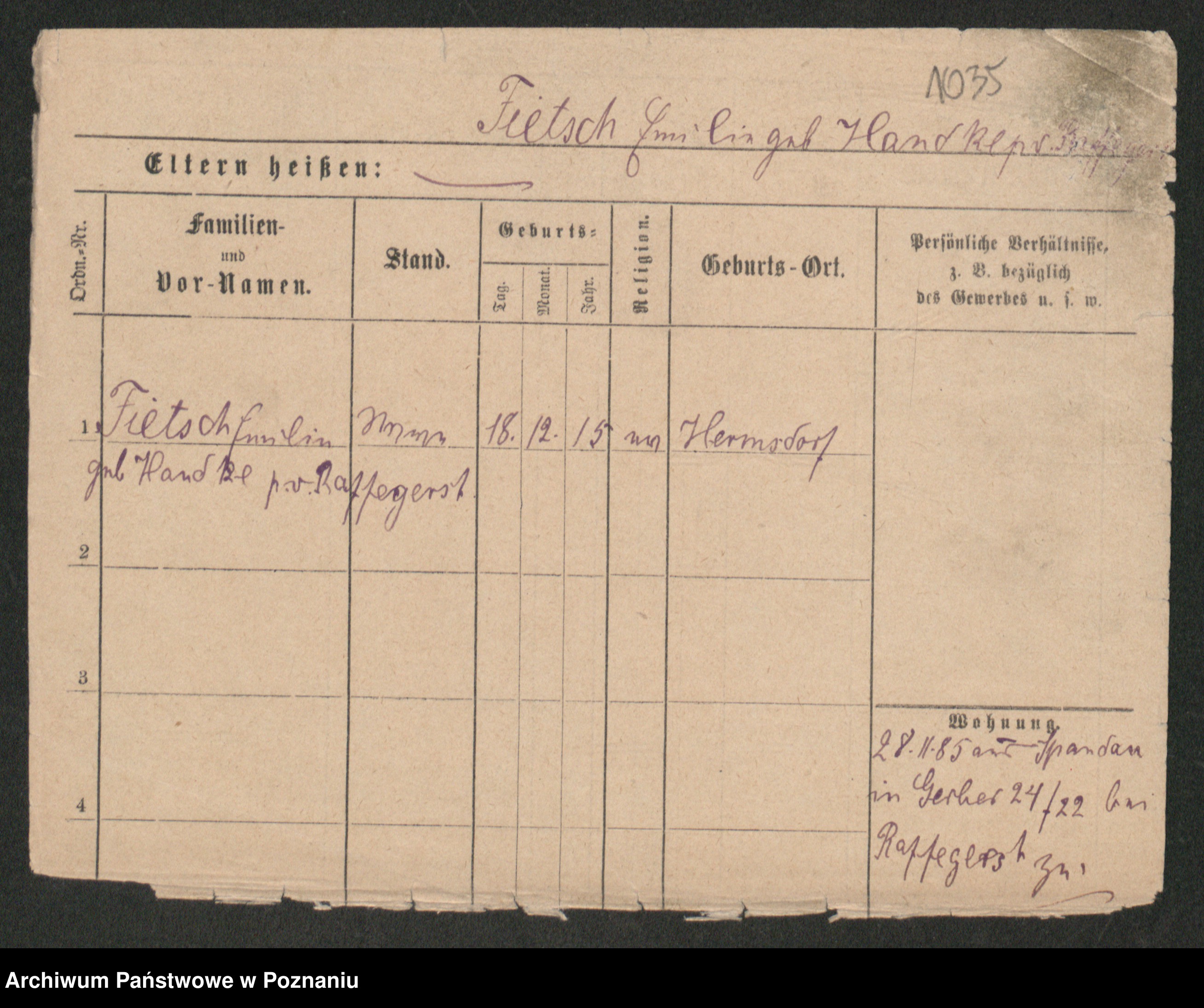 Fietsch zd. Handke p. v. Rassegerst, Emilie