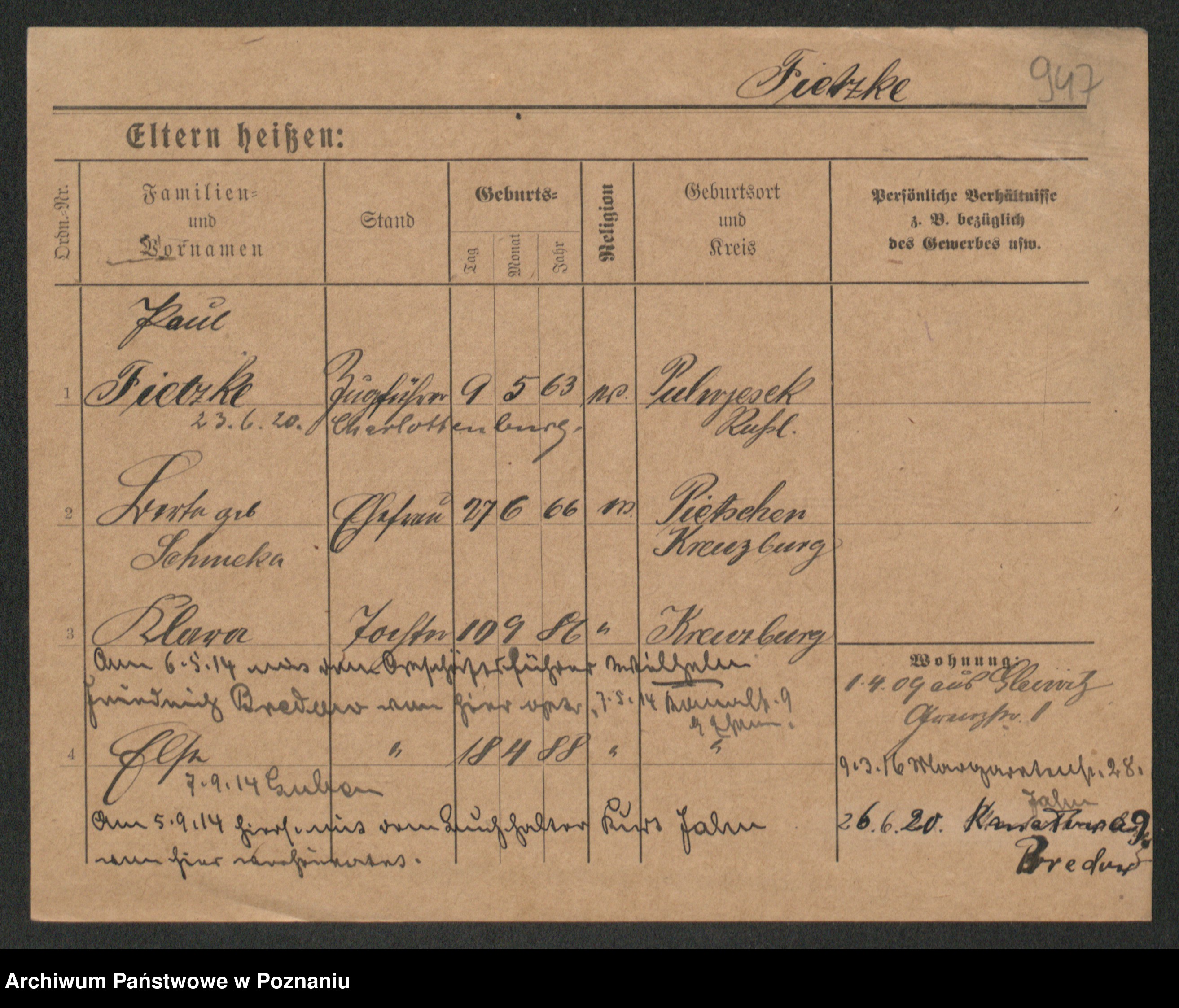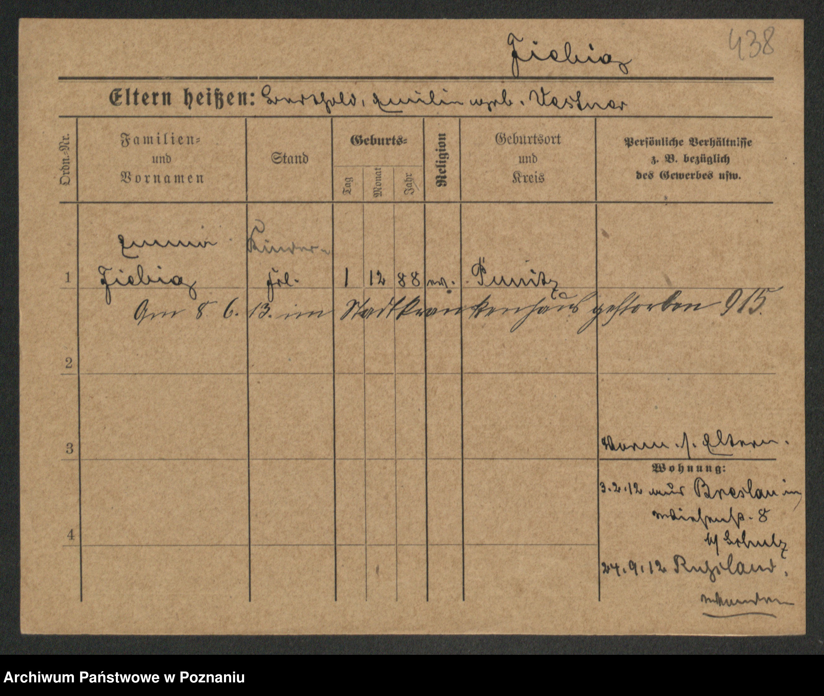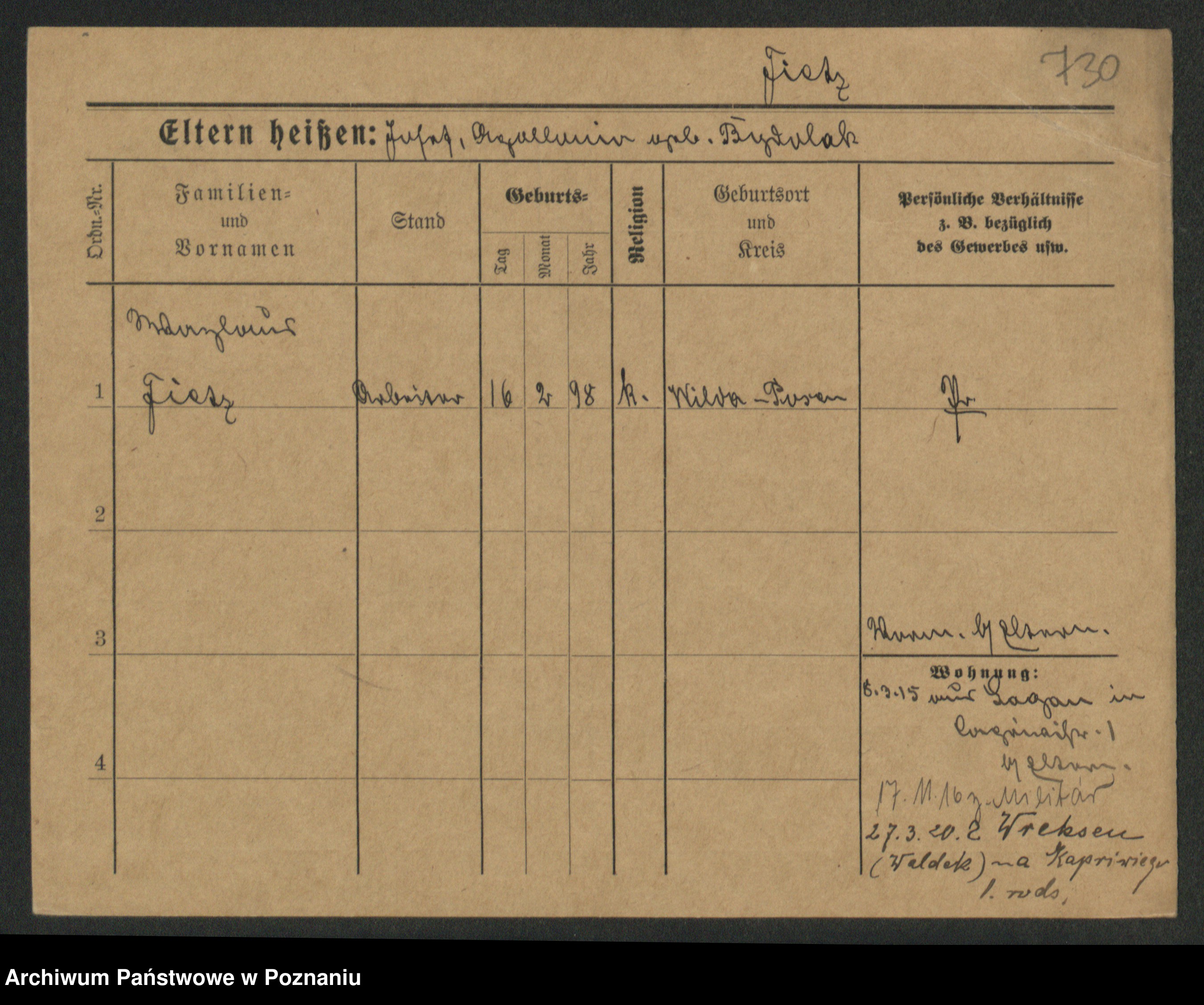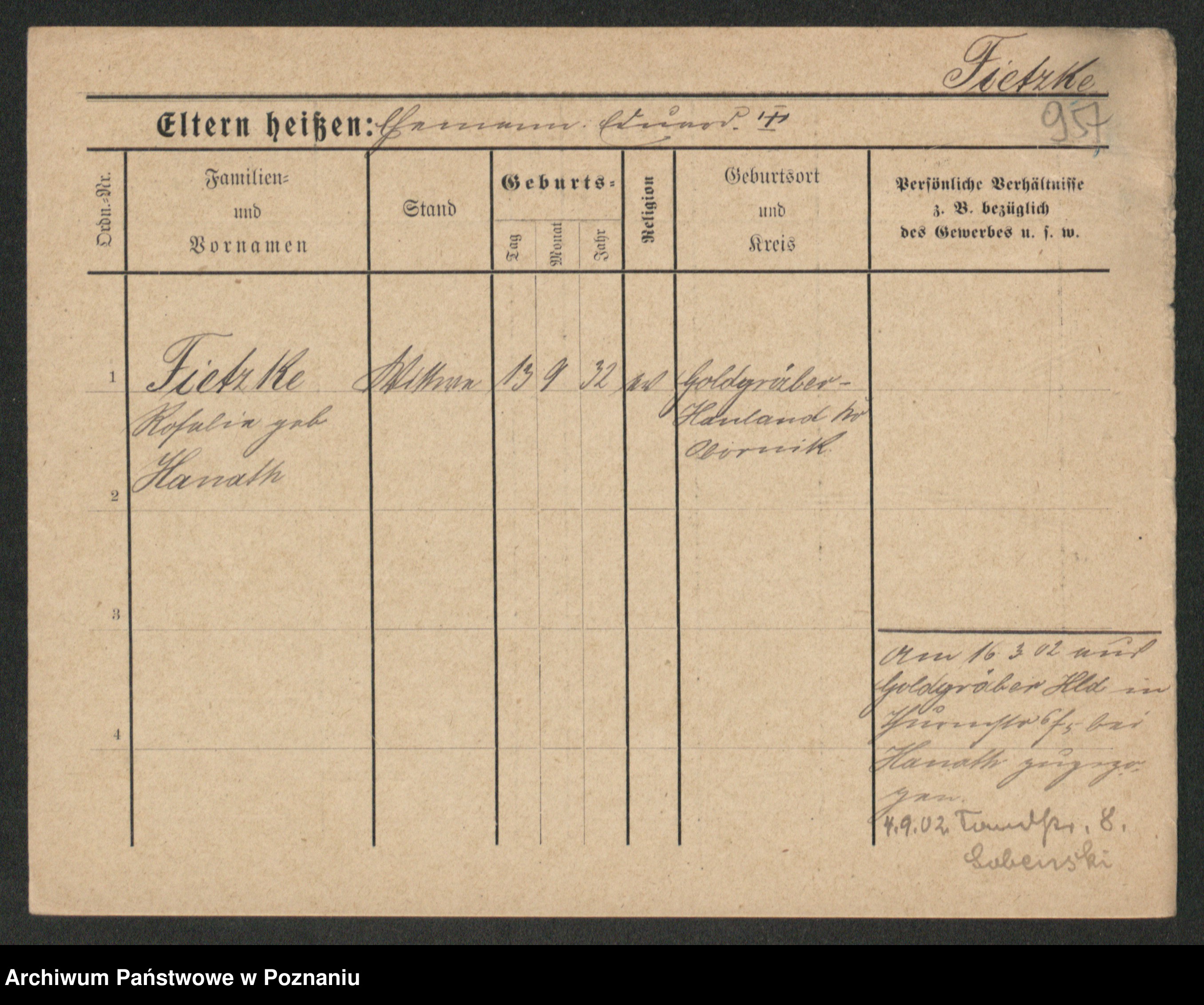 Fietsch zd. Handke p. v. Rassegerst, Emilie