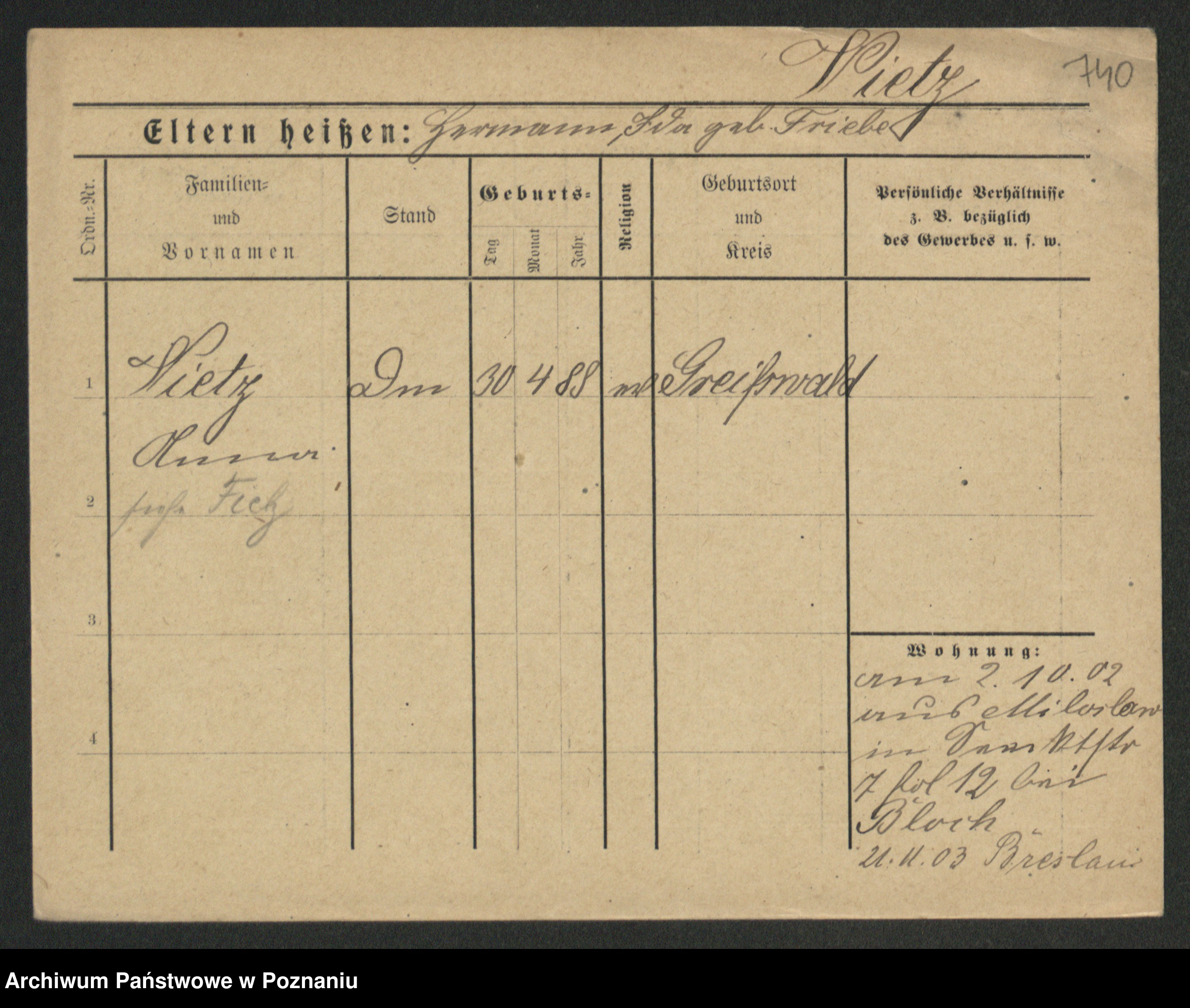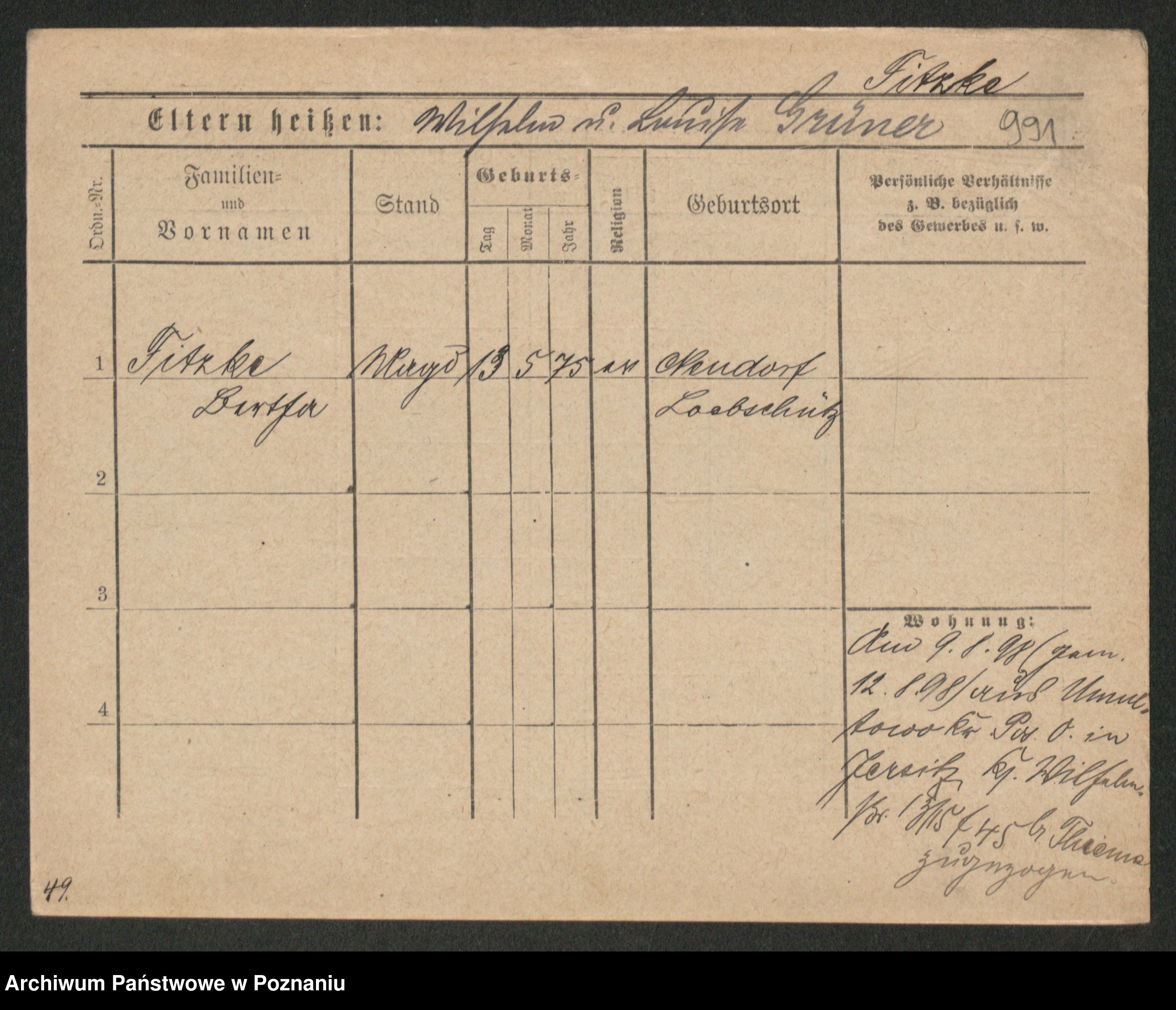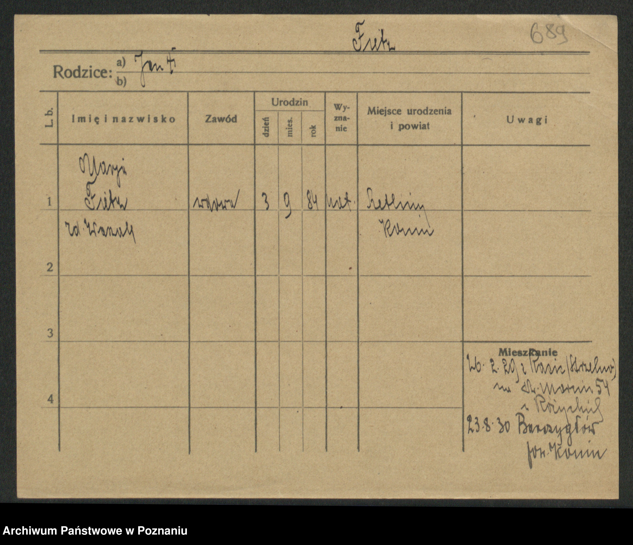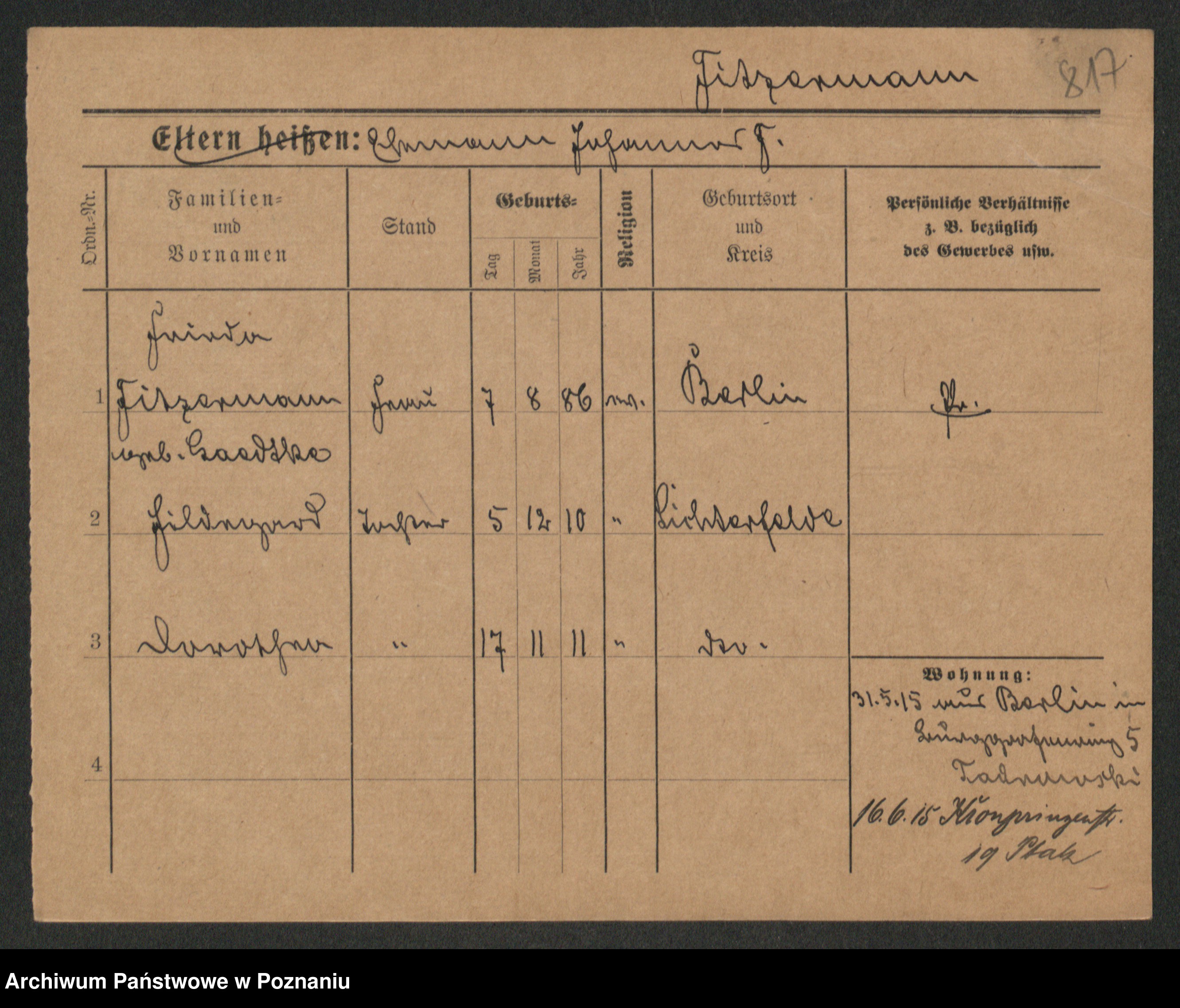 Fietsch zd. Handke p. v. Rassegerst, Emilie
