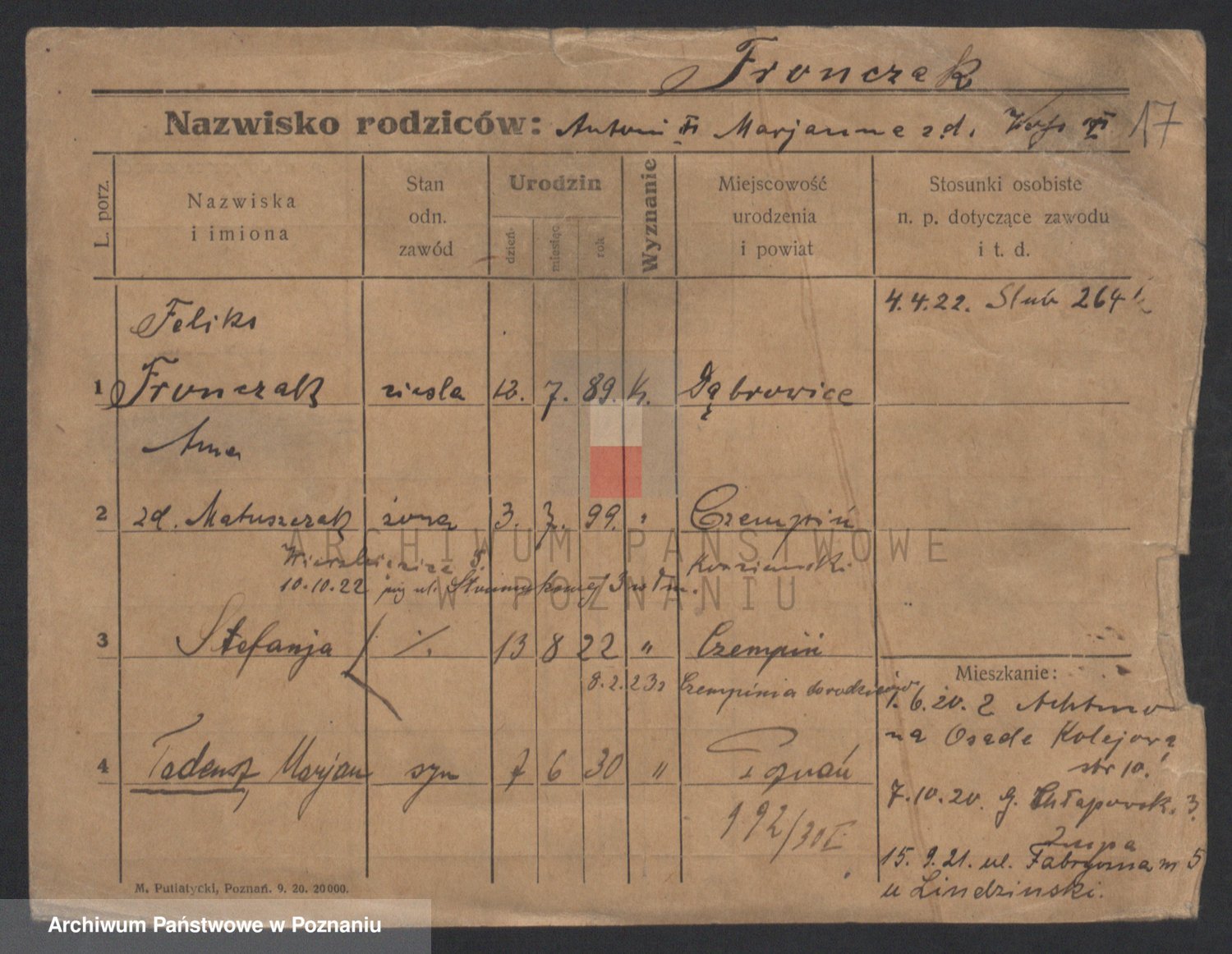 Fremikowski z d. Okoniecka 1.voto Rakowska, Marie