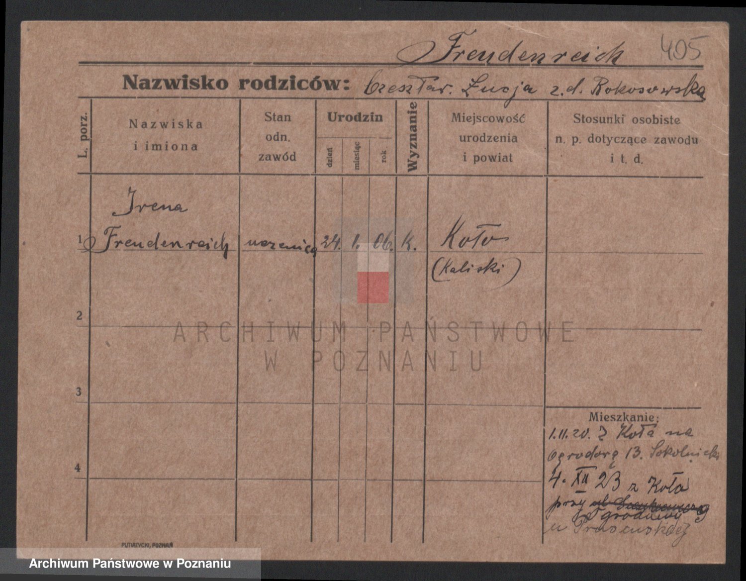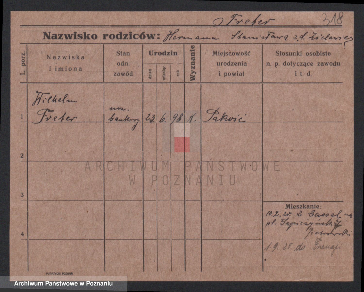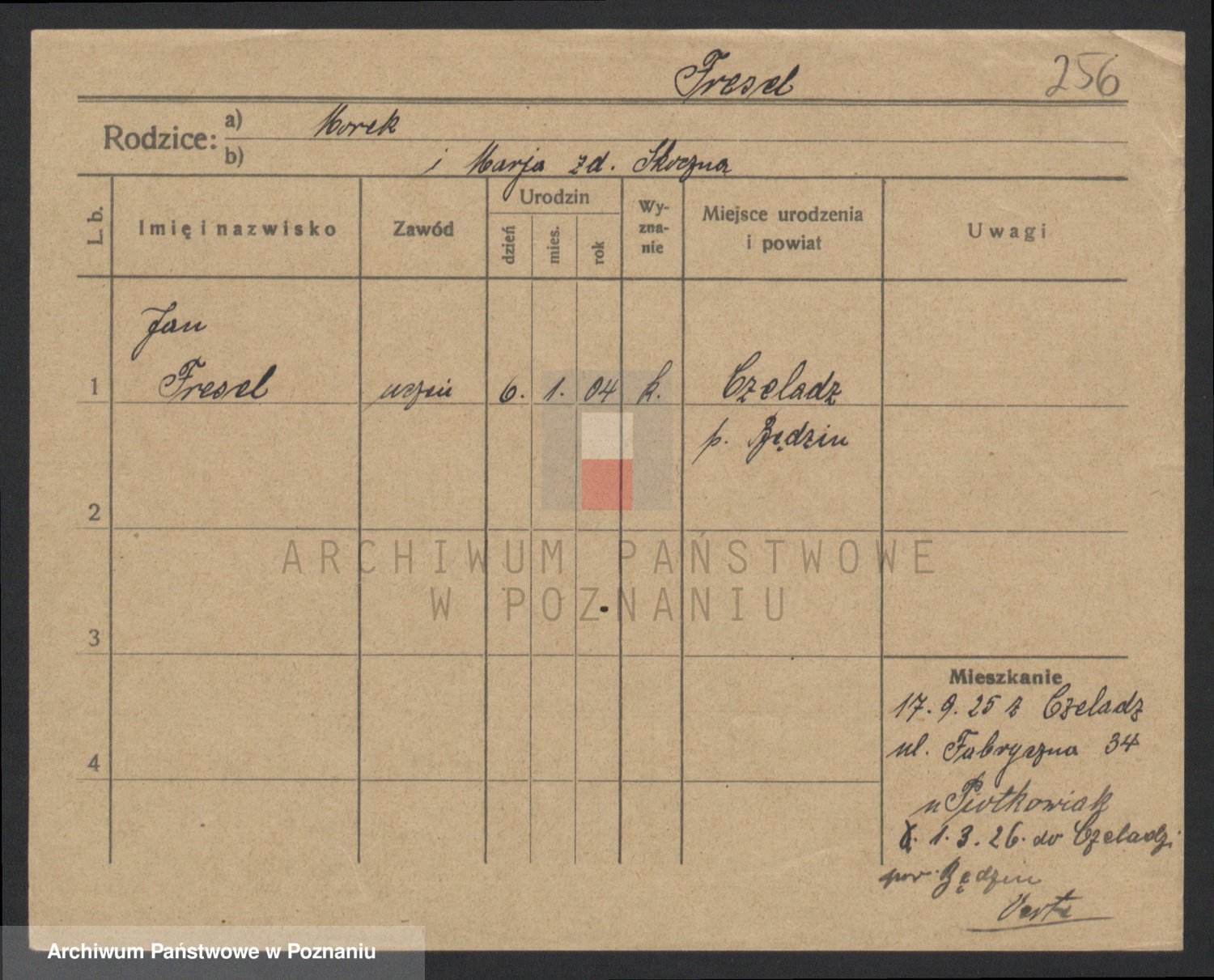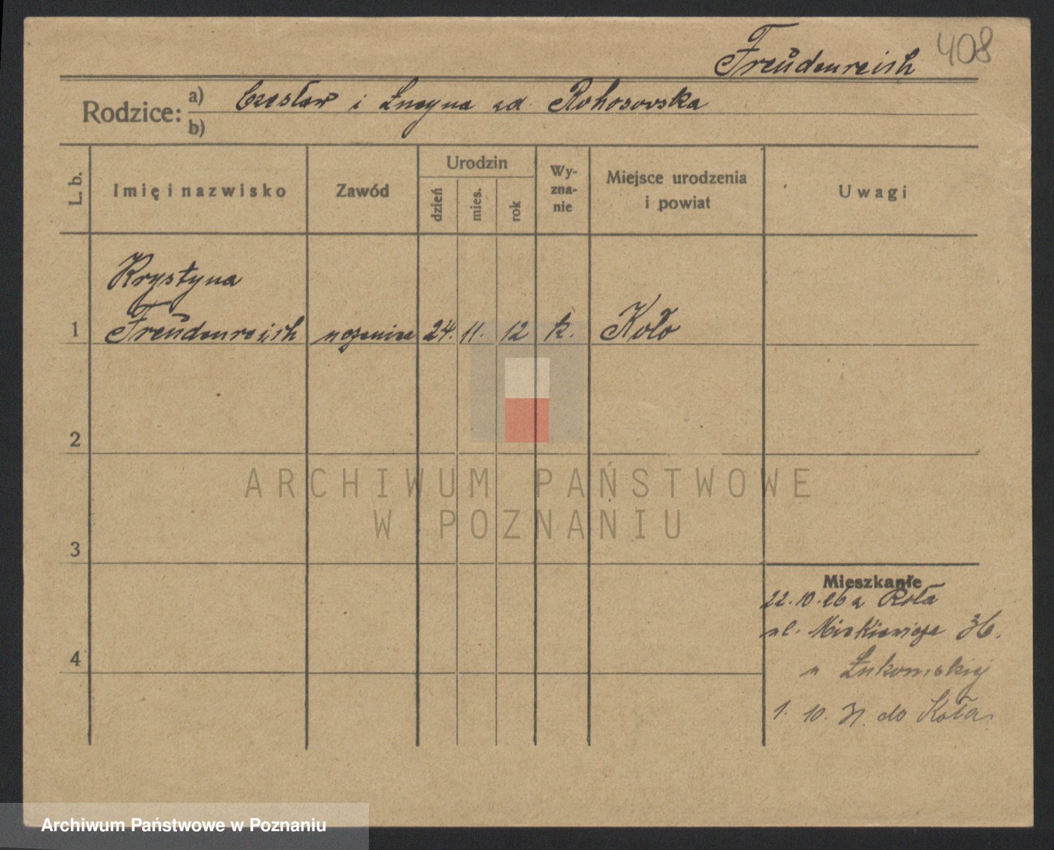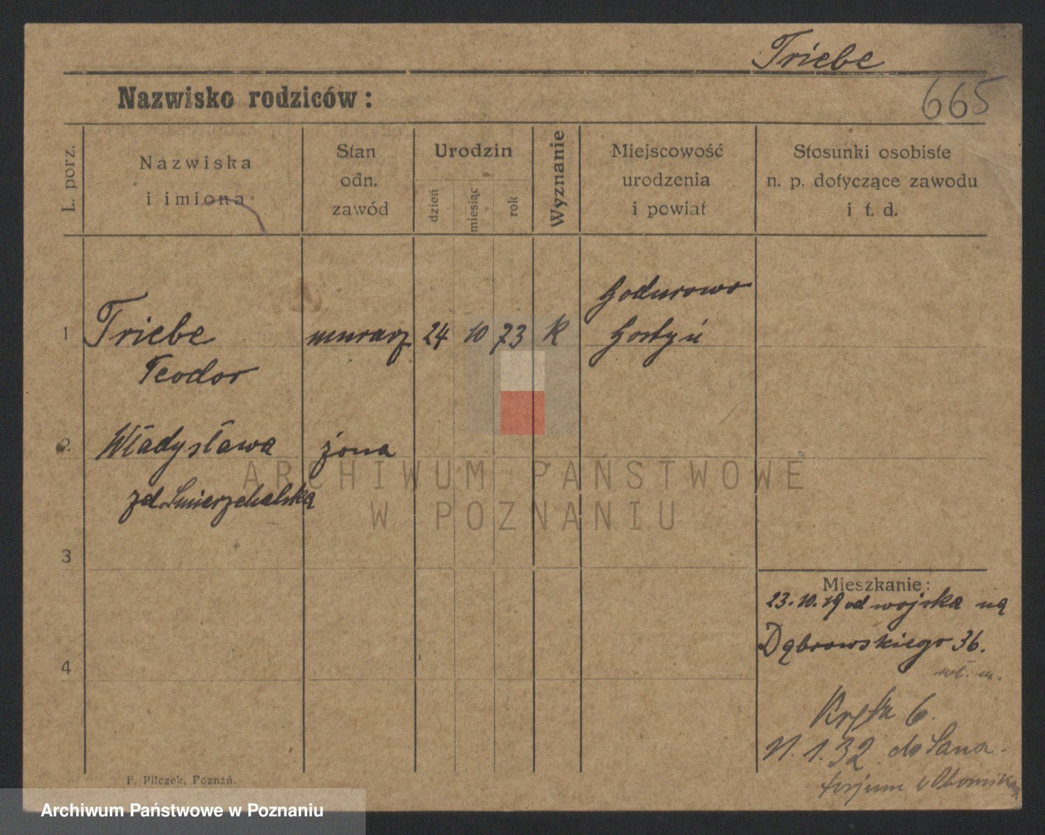 Podgląd karty osobowej dostępny jest po kliknięciu na nazwisko lub ikonkę karty. Można dokonywać powiększenia (ikony na górze) lub przechodzić między kolejnymi skanami (strzałki po bokach).