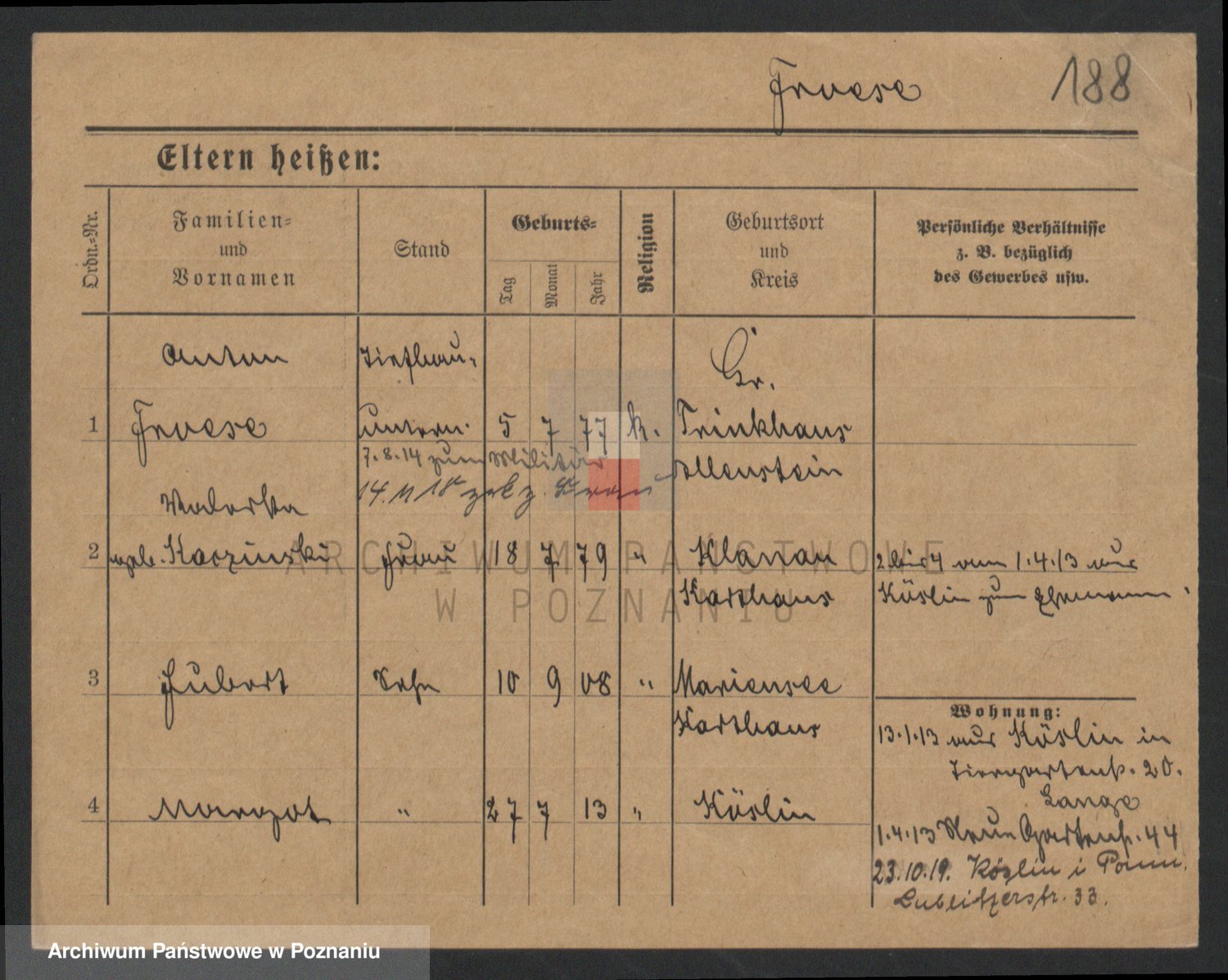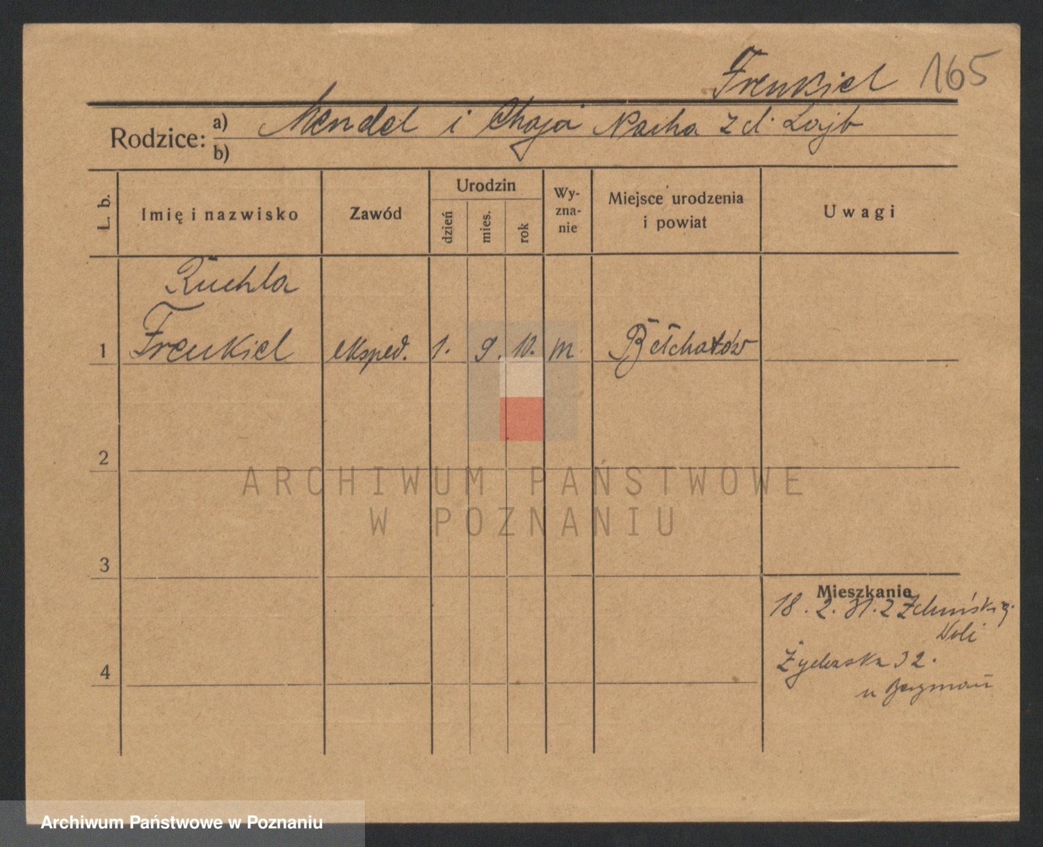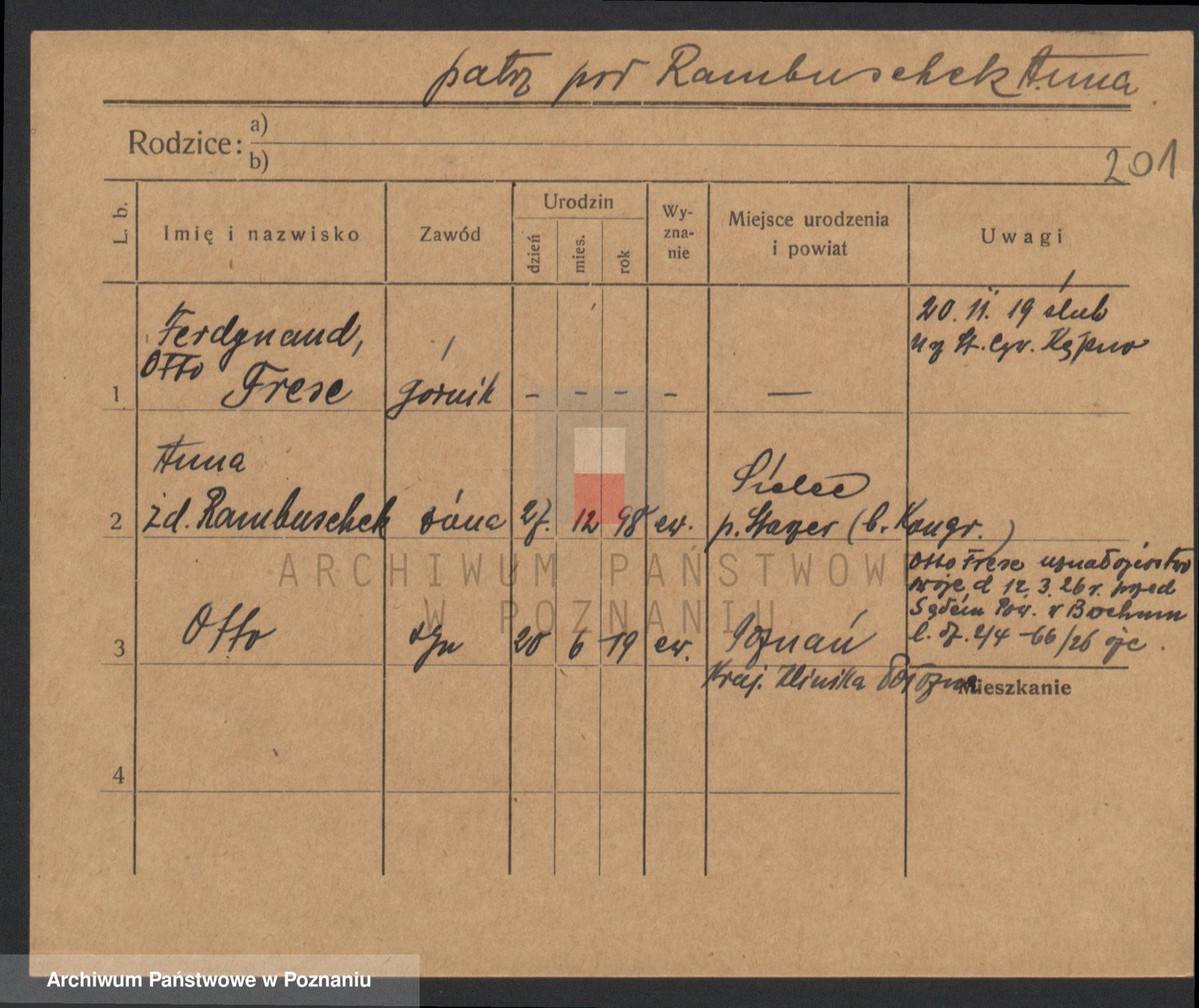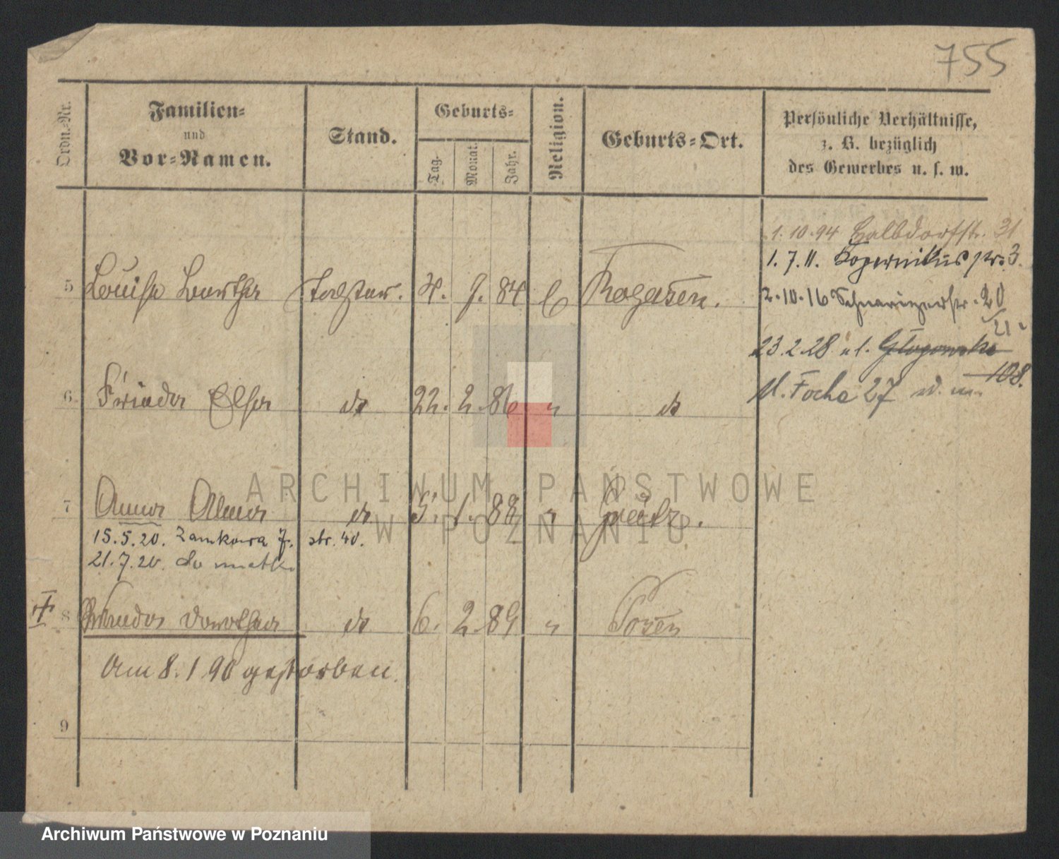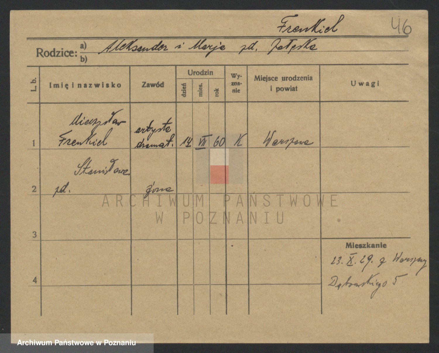 Podgląd karty osobowej dostępny jest po kliknięciu na nazwisko lub ikonkę karty. Można dokonywać powiększenia (ikony na górze) lub przechodzić między kolejnymi skanami (strzałki po bokach).