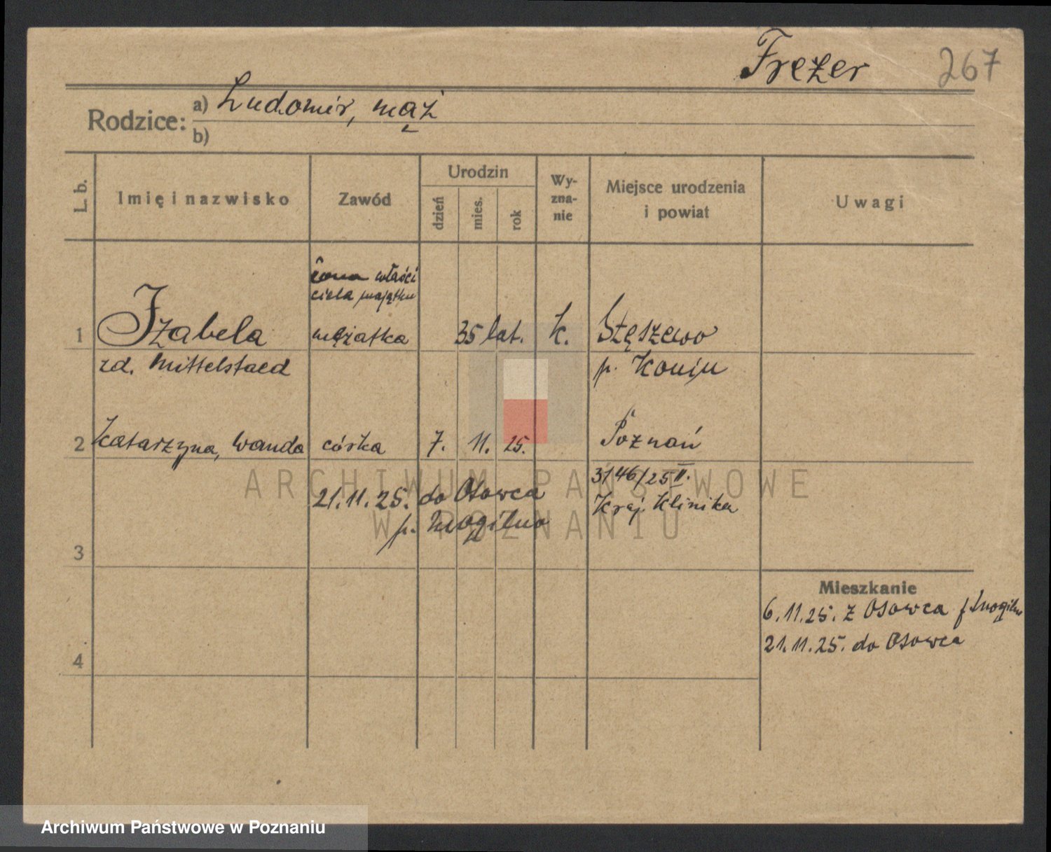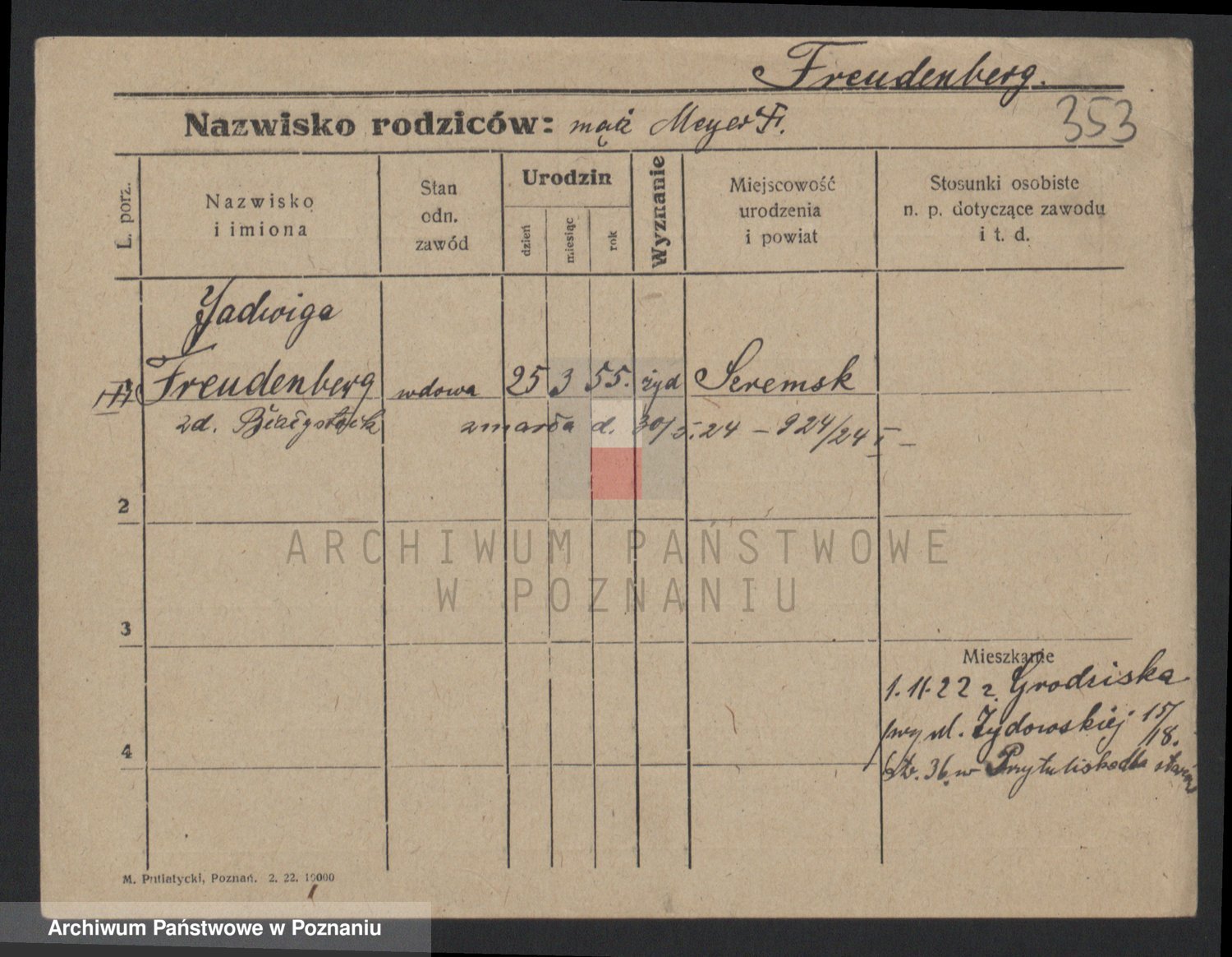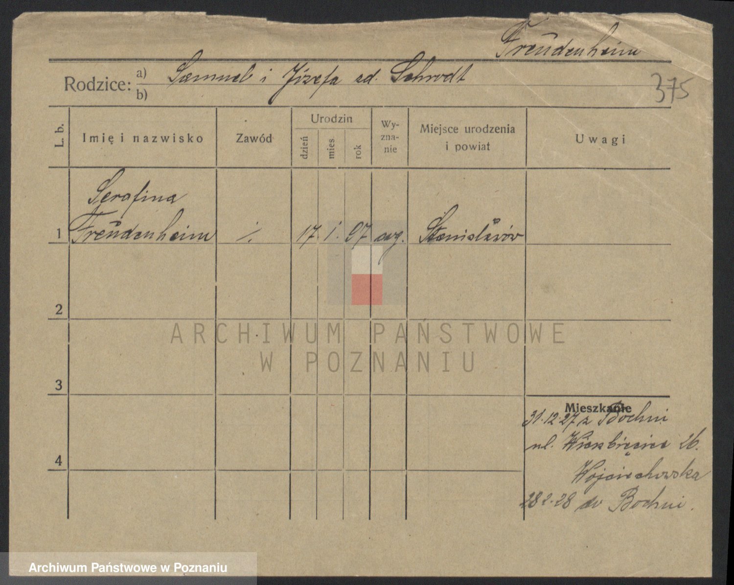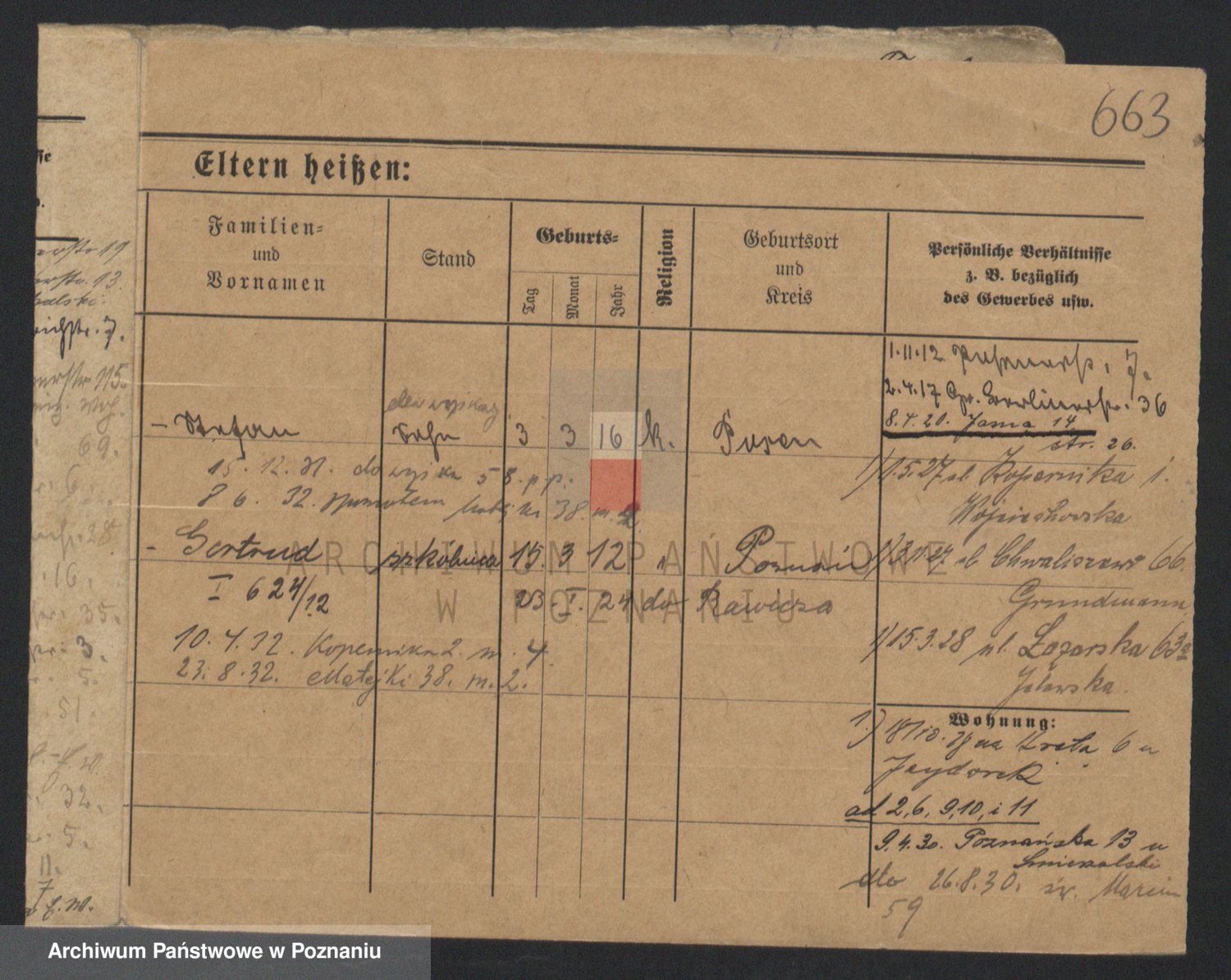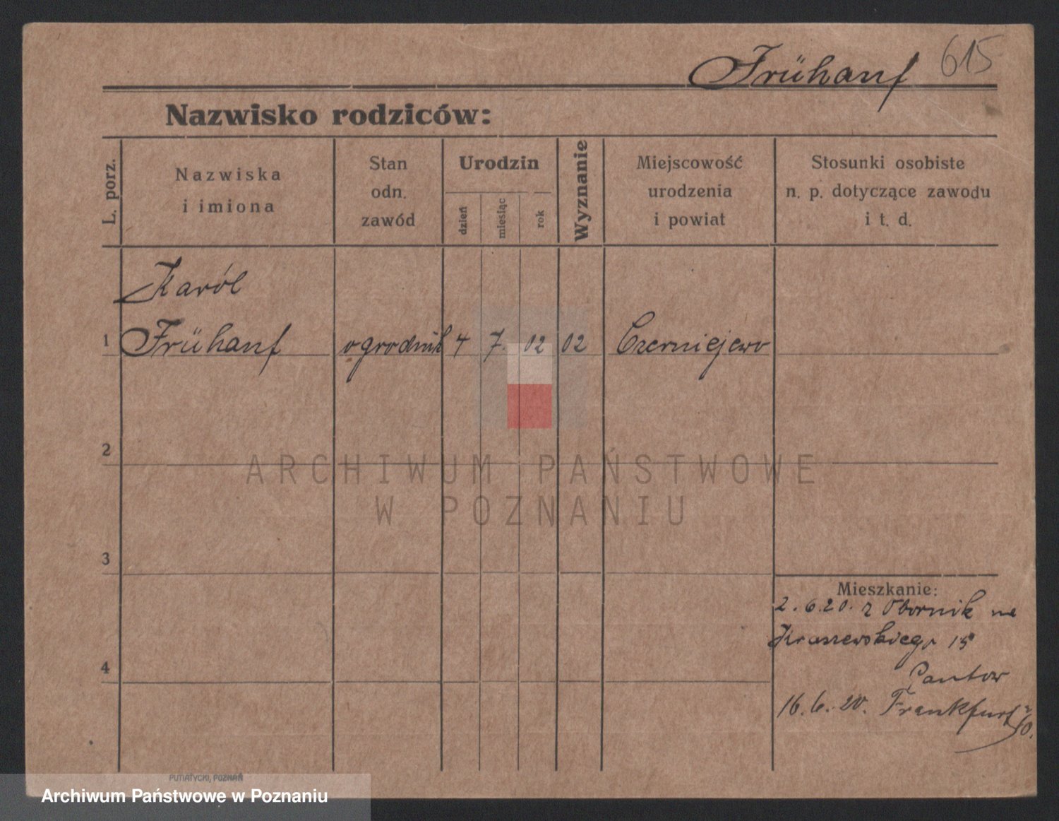 Podgląd karty osobowej dostępny jest po kliknięciu na nazwisko lub ikonkę karty. Można dokonywać powiększenia (ikony na górze) lub przechodzić między kolejnymi skanami (strzałki po bokach).