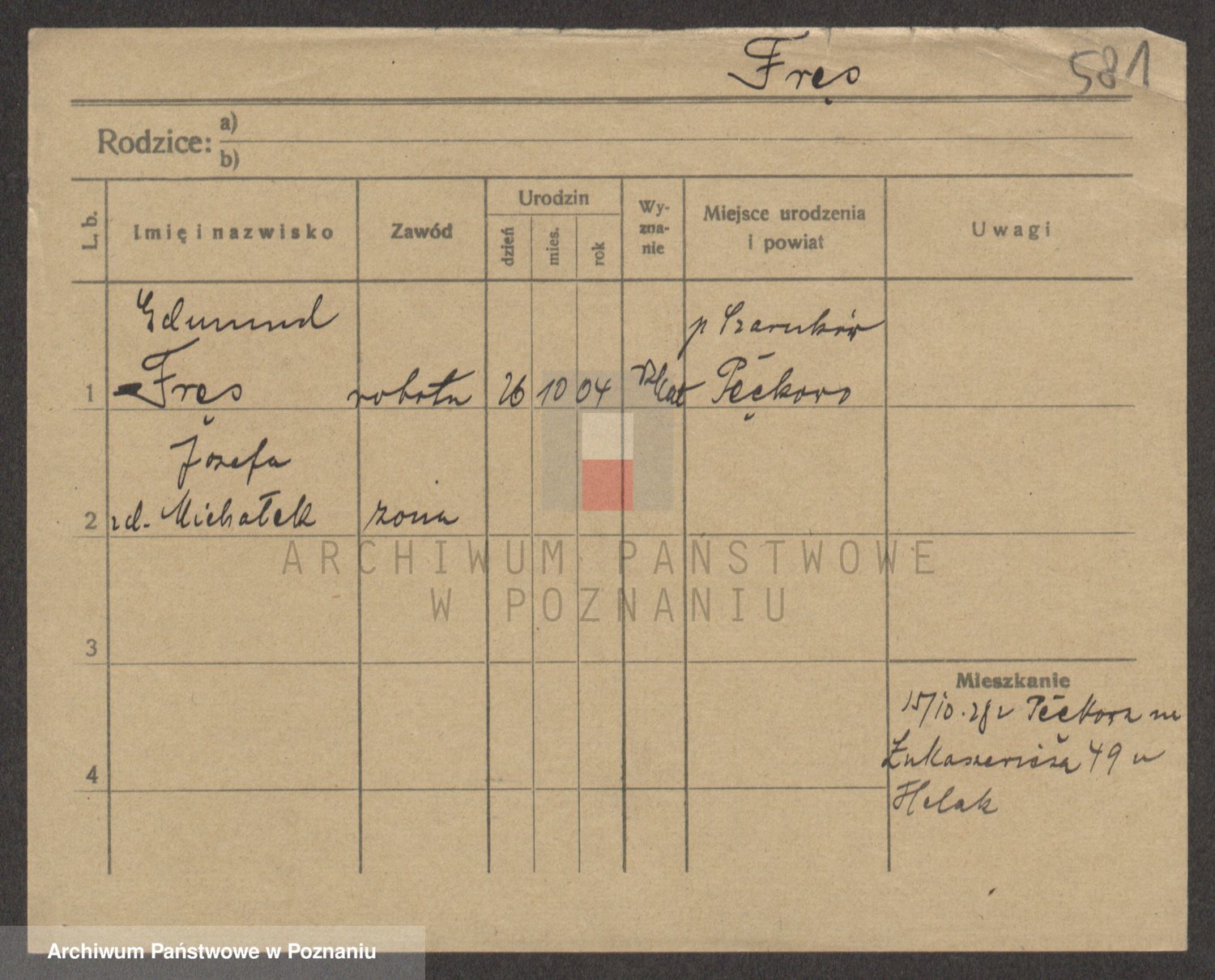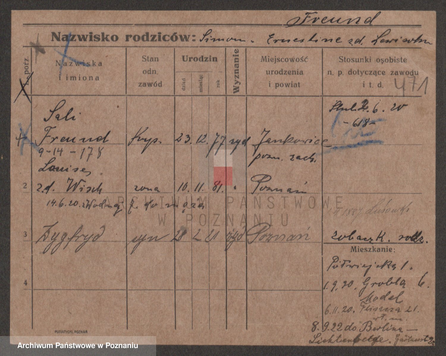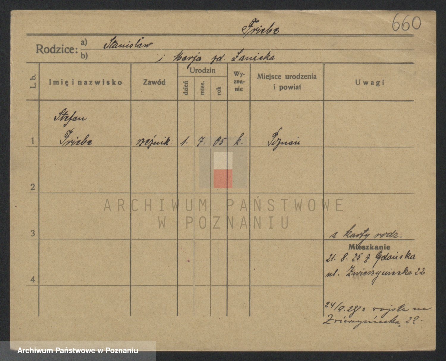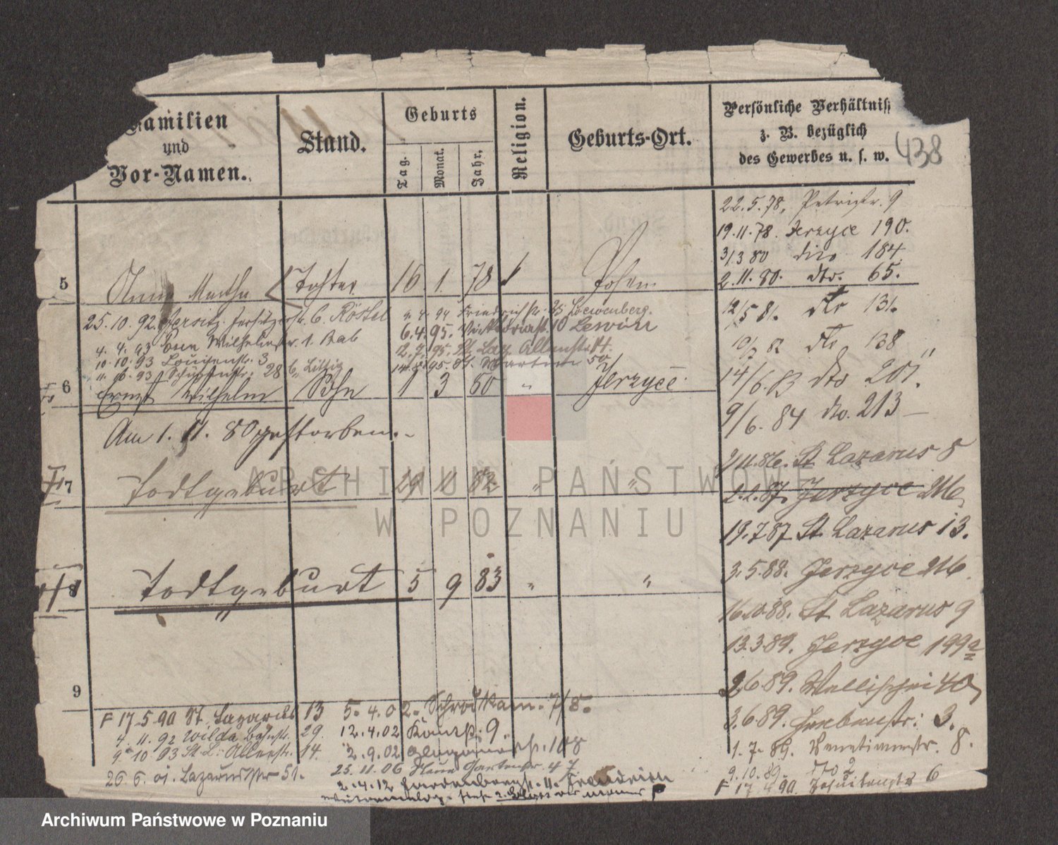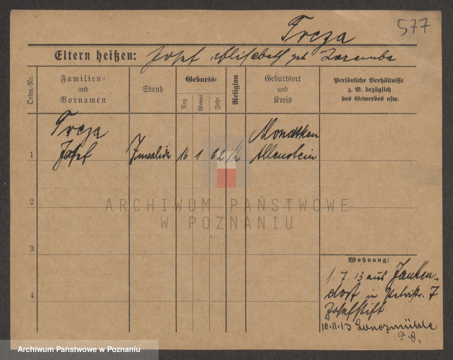 Podgląd karty osobowej dostępny jest po kliknięciu na nazwisko lub ikonkę karty. Można dokonywać powiększenia (ikony na górze) lub przechodzić między kolejnymi skanami (strzałki po bokach).