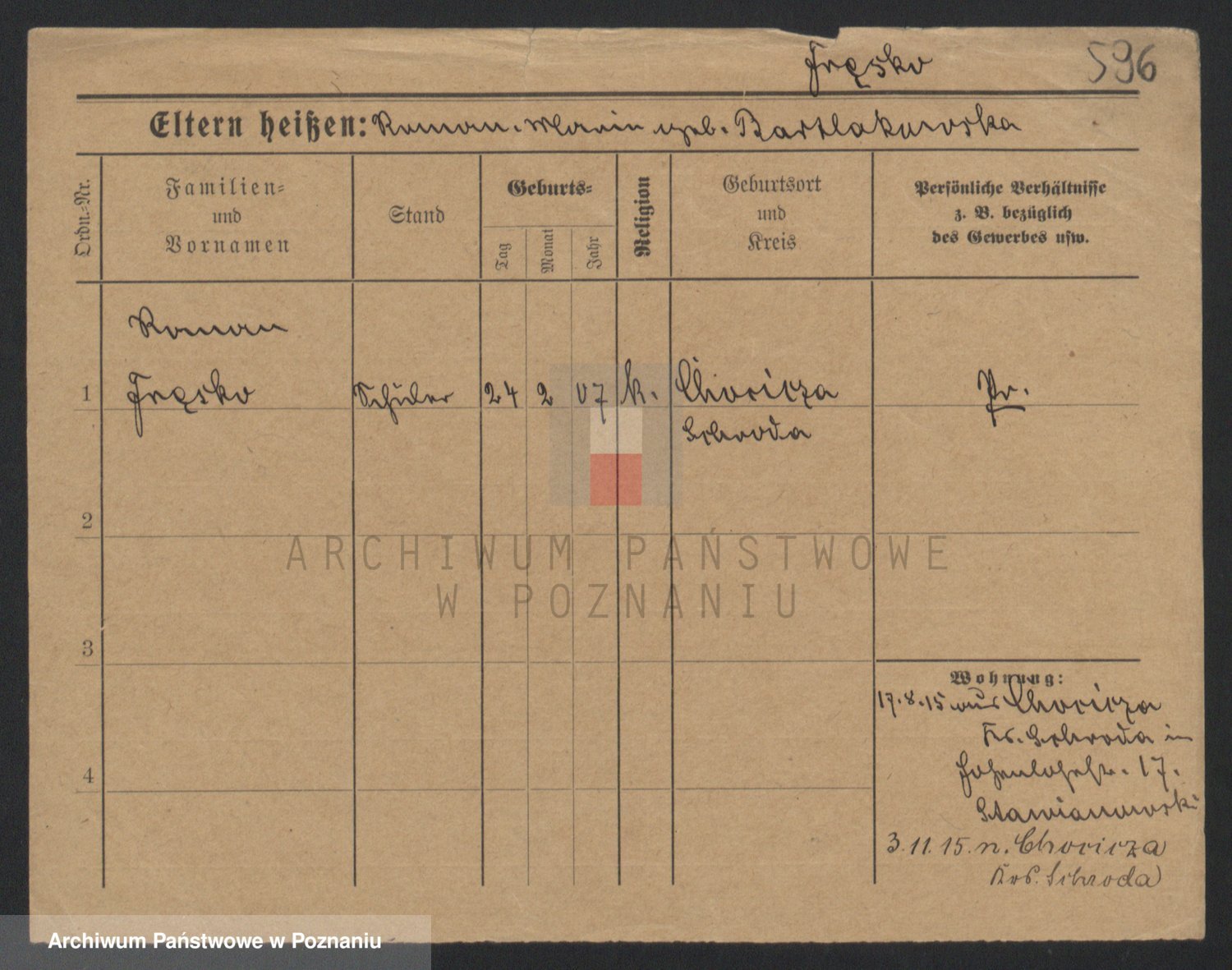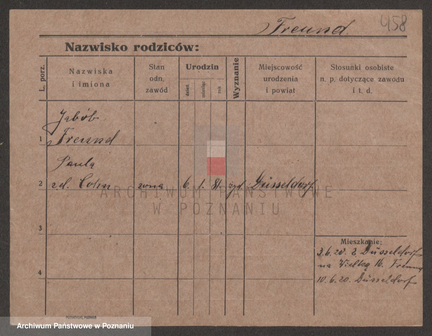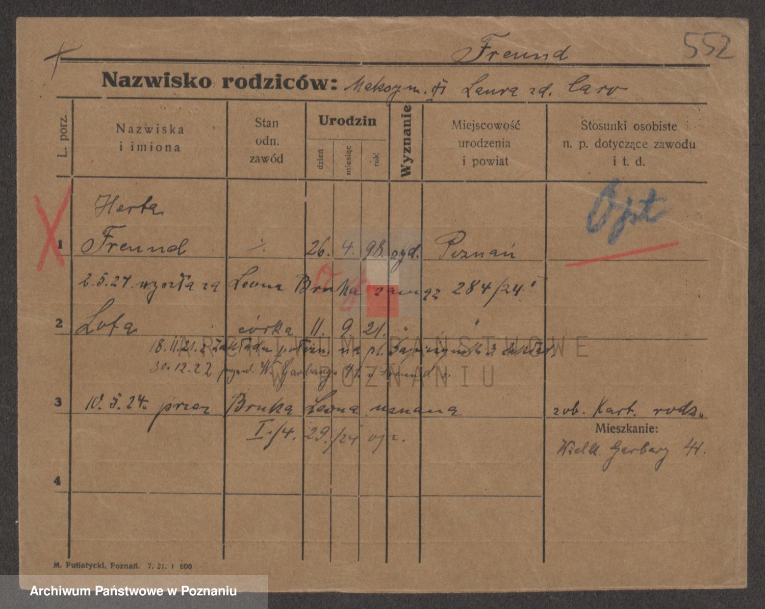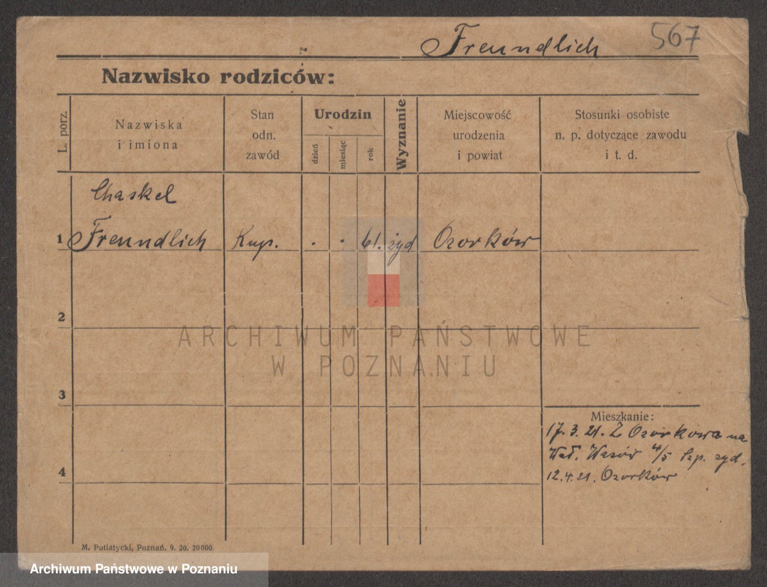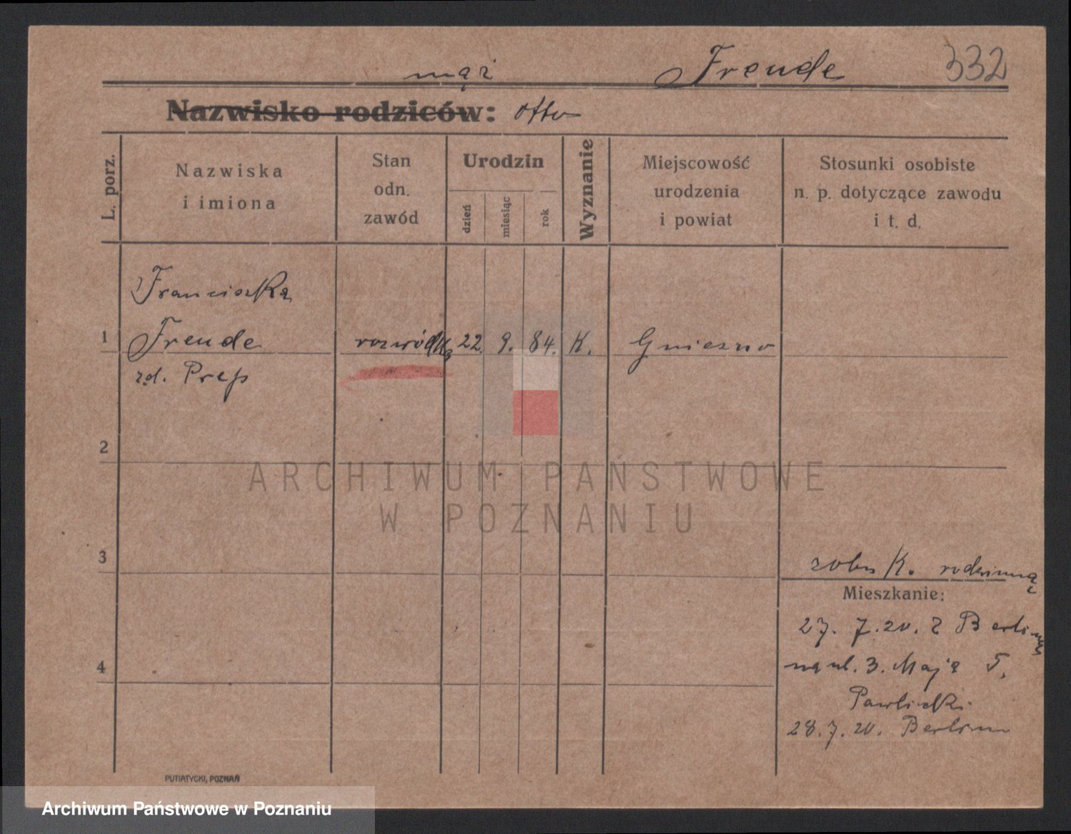 Podgląd karty osobowej dostępny jest po kliknięciu na nazwisko lub ikonkę karty. Można dokonywać powiększenia (ikony na górze) lub przechodzić między kolejnymi skanami (strzałki po bokach).