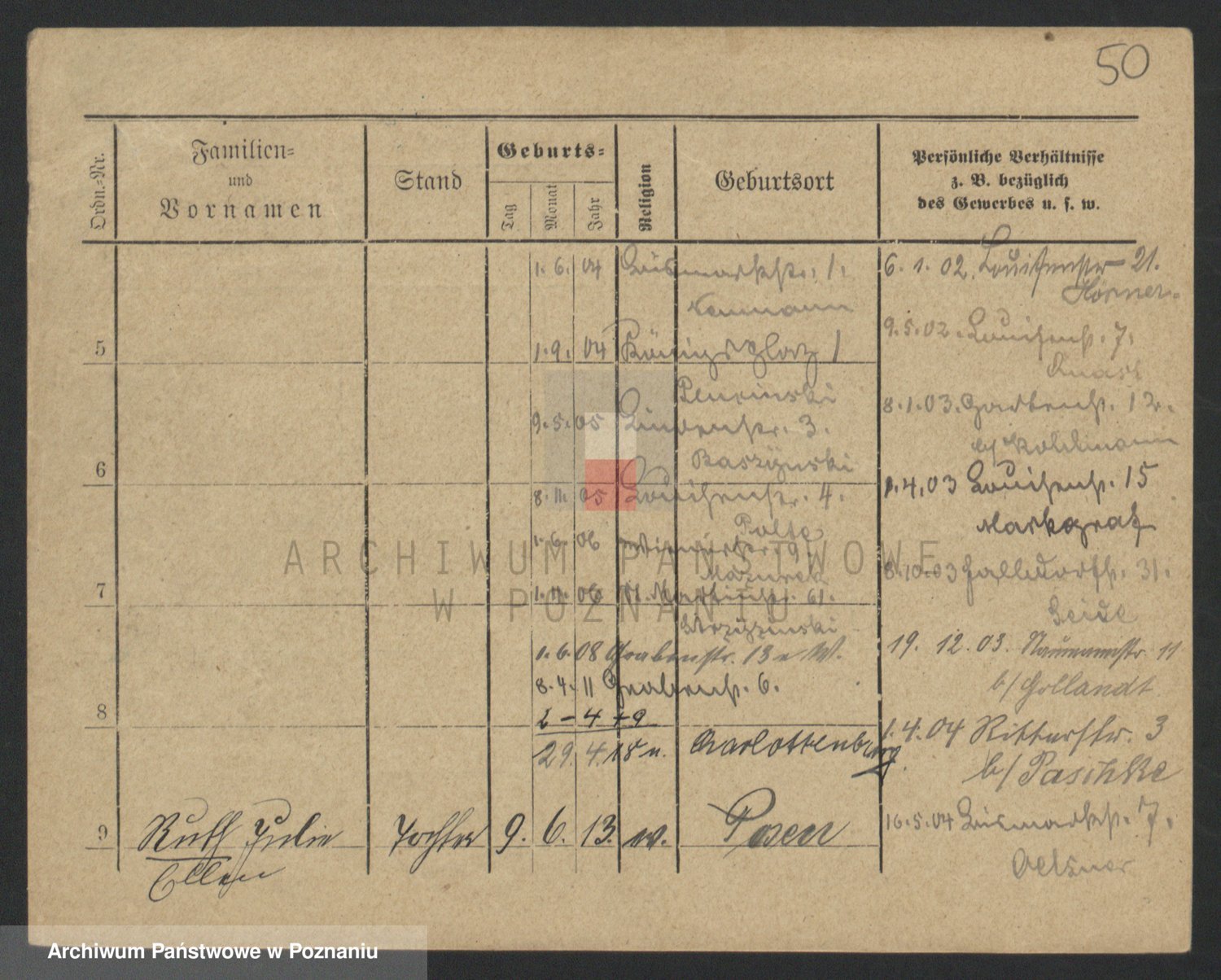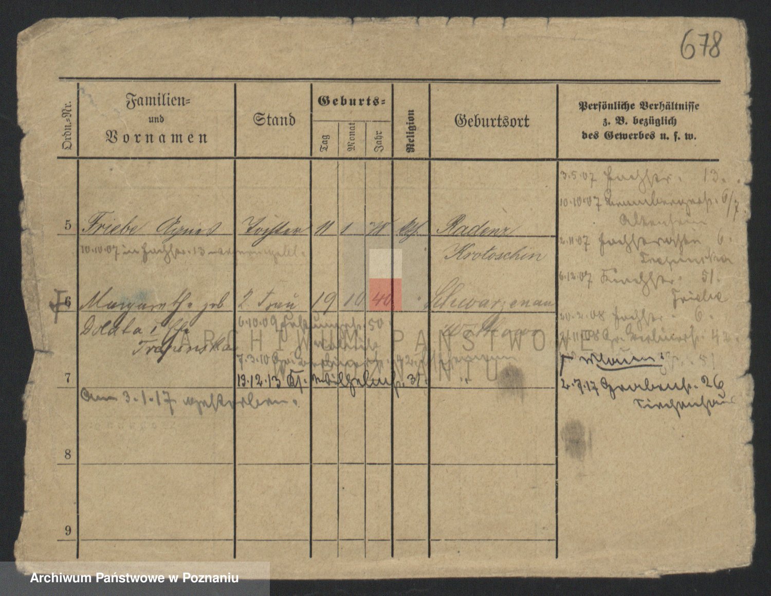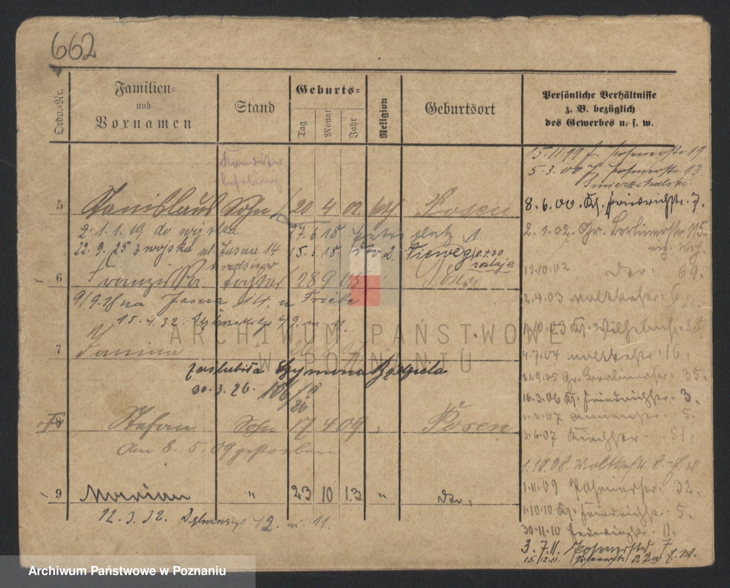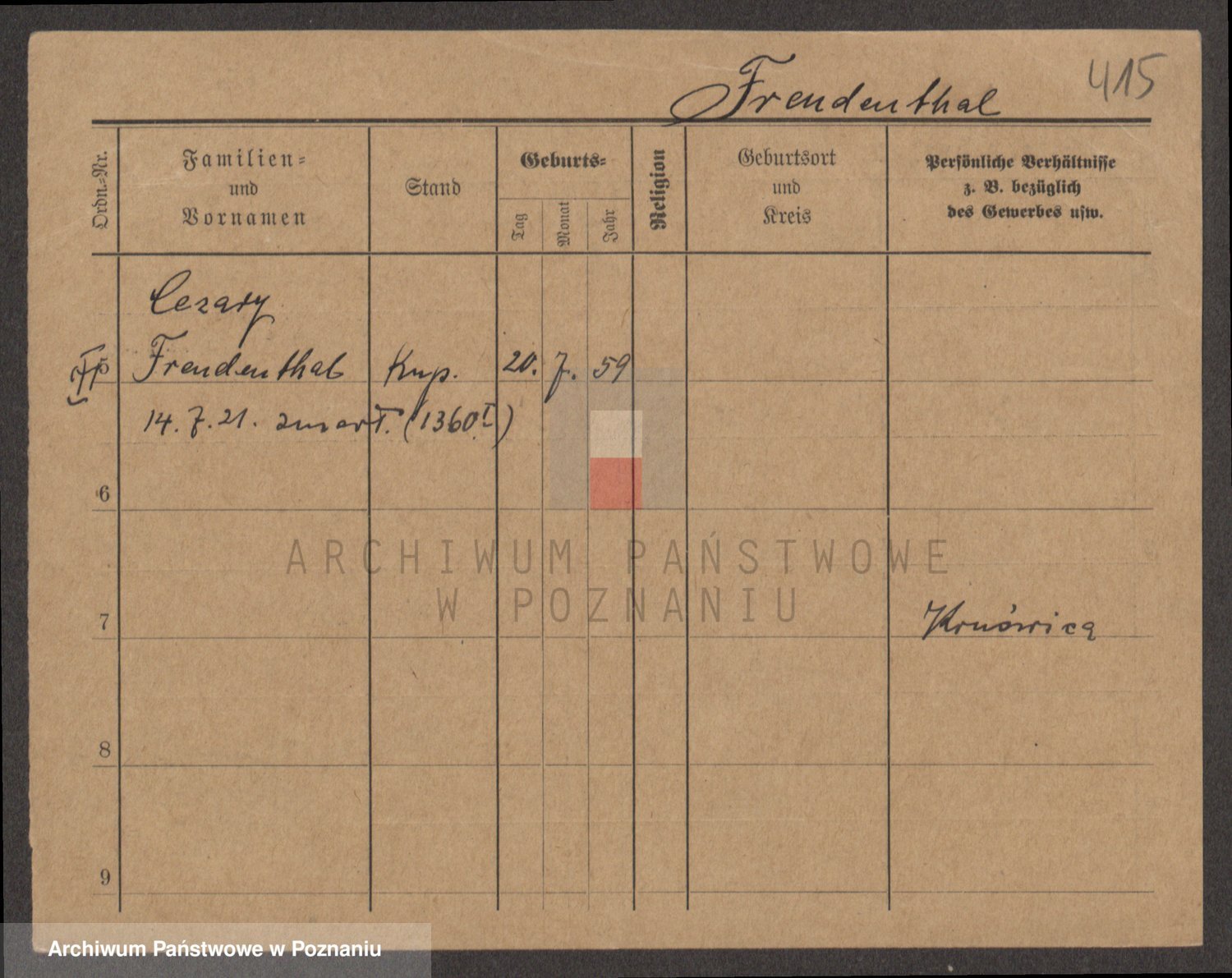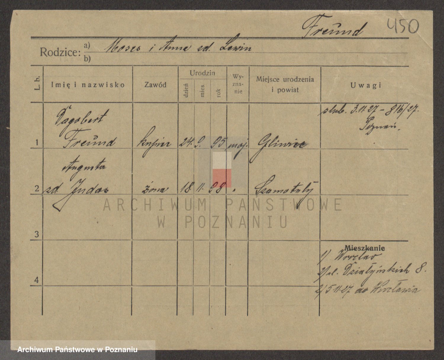 Podgląd karty osobowej dostępny jest po kliknięciu na nazwisko lub ikonkę karty. Można dokonywać powiększenia (ikony na górze) lub przechodzić między kolejnymi skanami (strzałki po bokach).