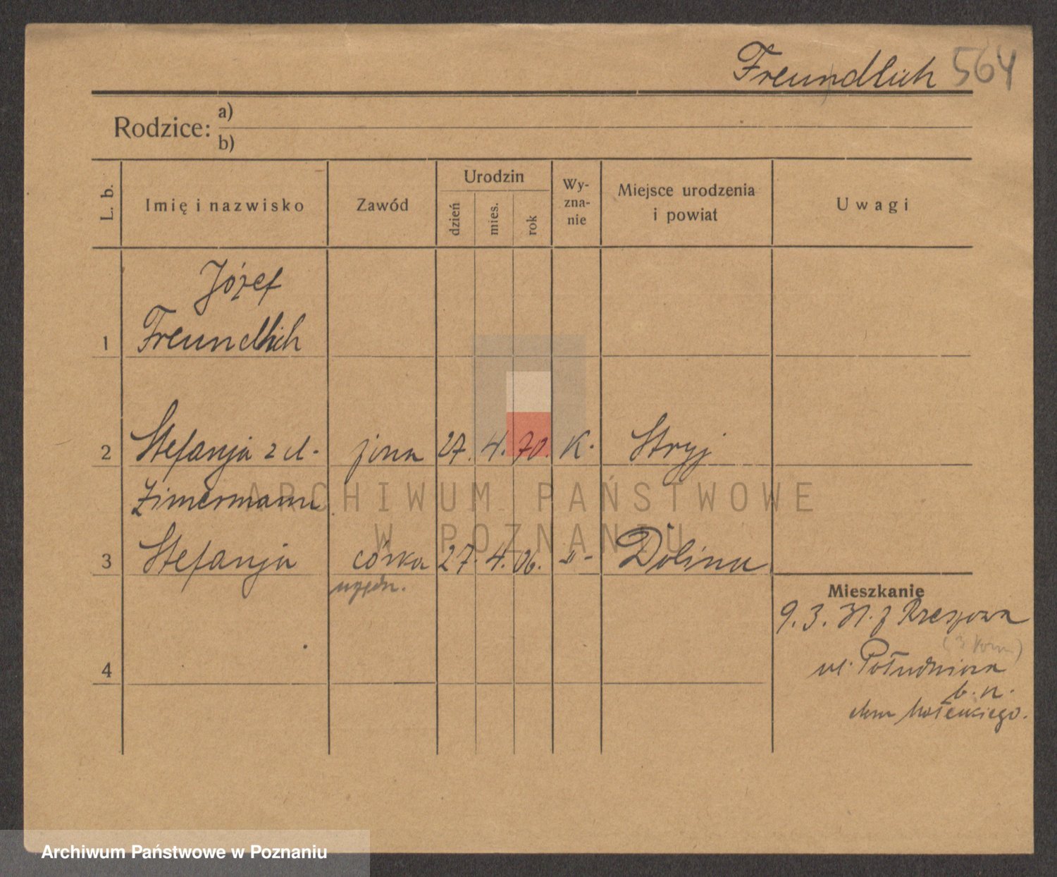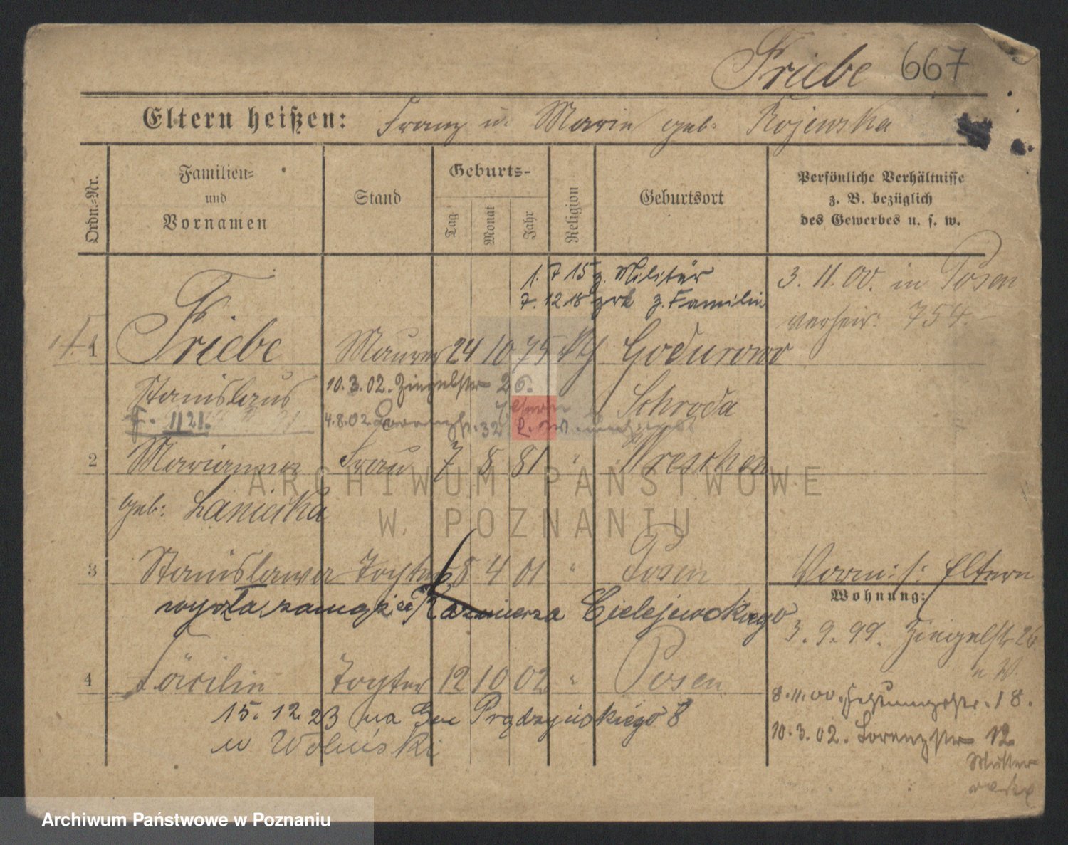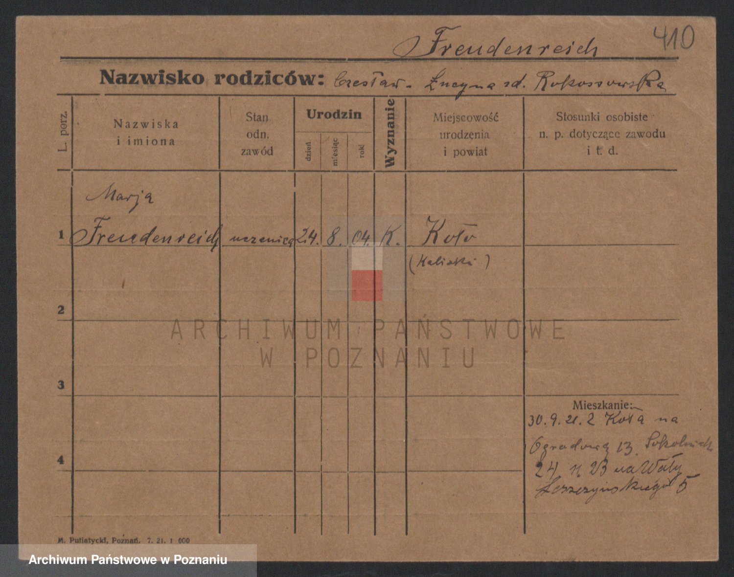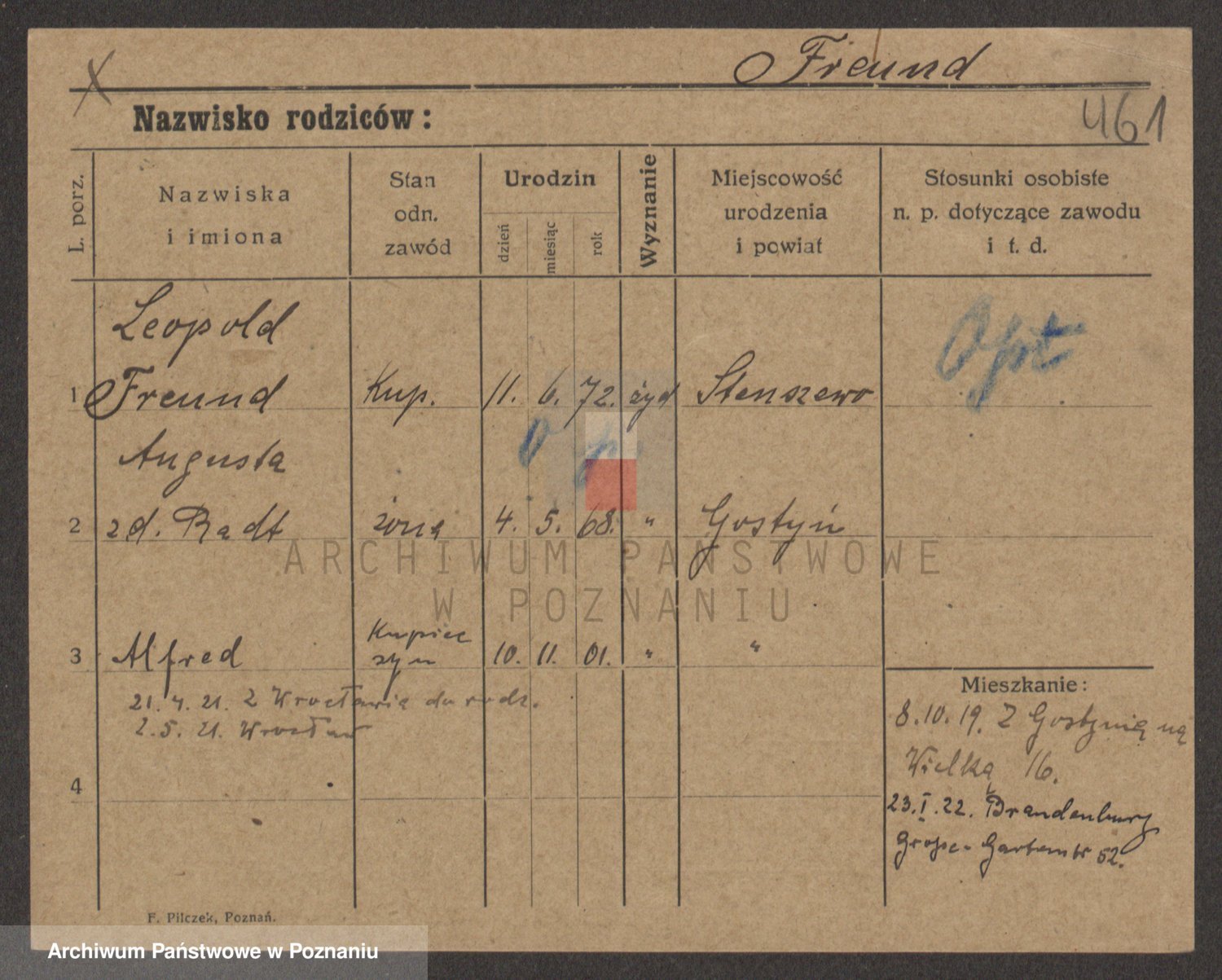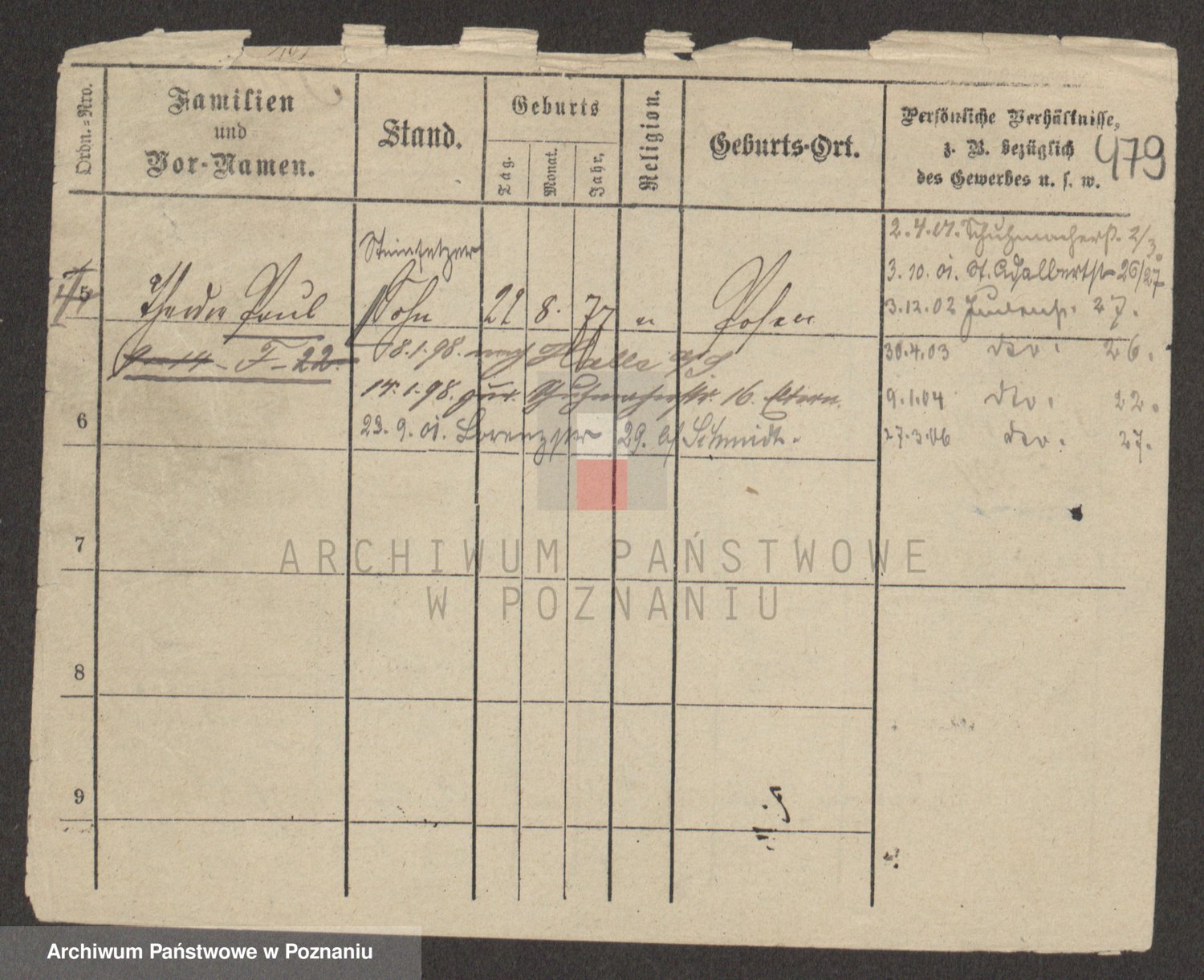 Podgląd karty osobowej dostępny jest po kliknięciu na nazwisko lub ikonkę karty. Można dokonywać powiększenia (ikony na górze) lub przechodzić między kolejnymi skanami (strzałki po bokach).