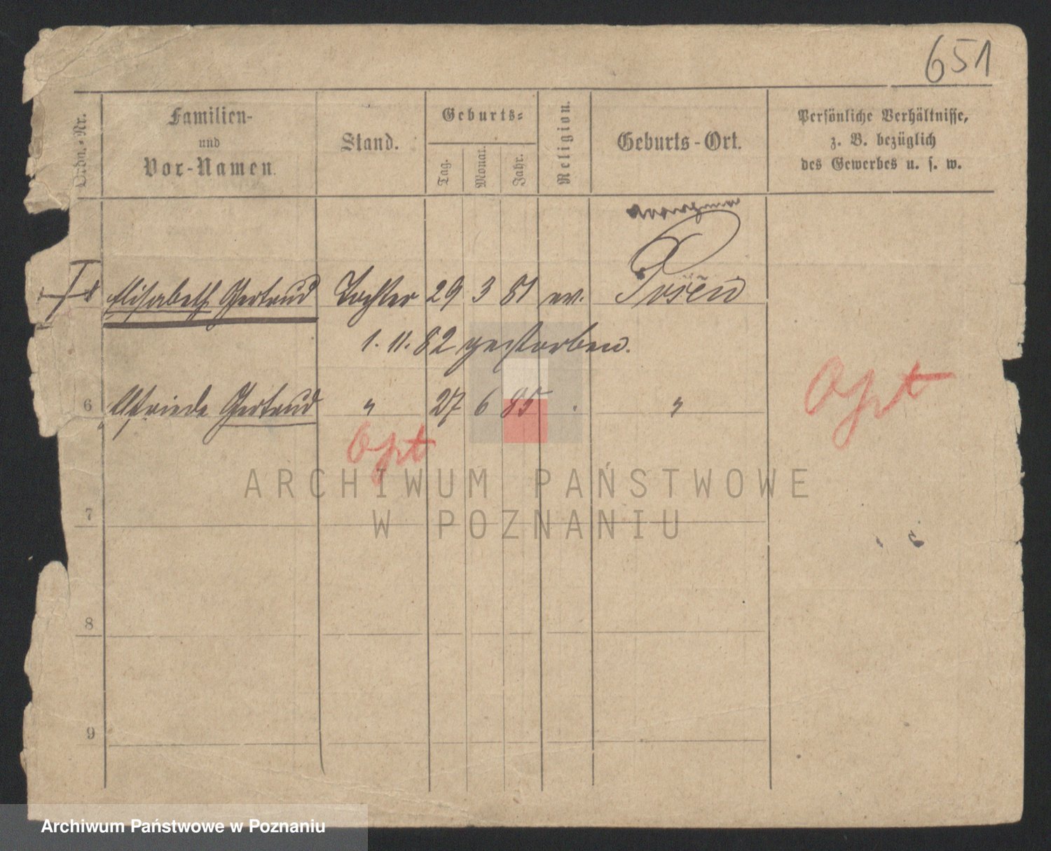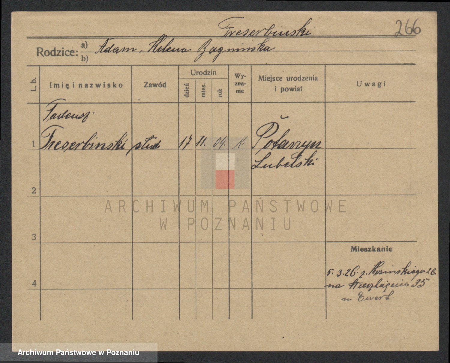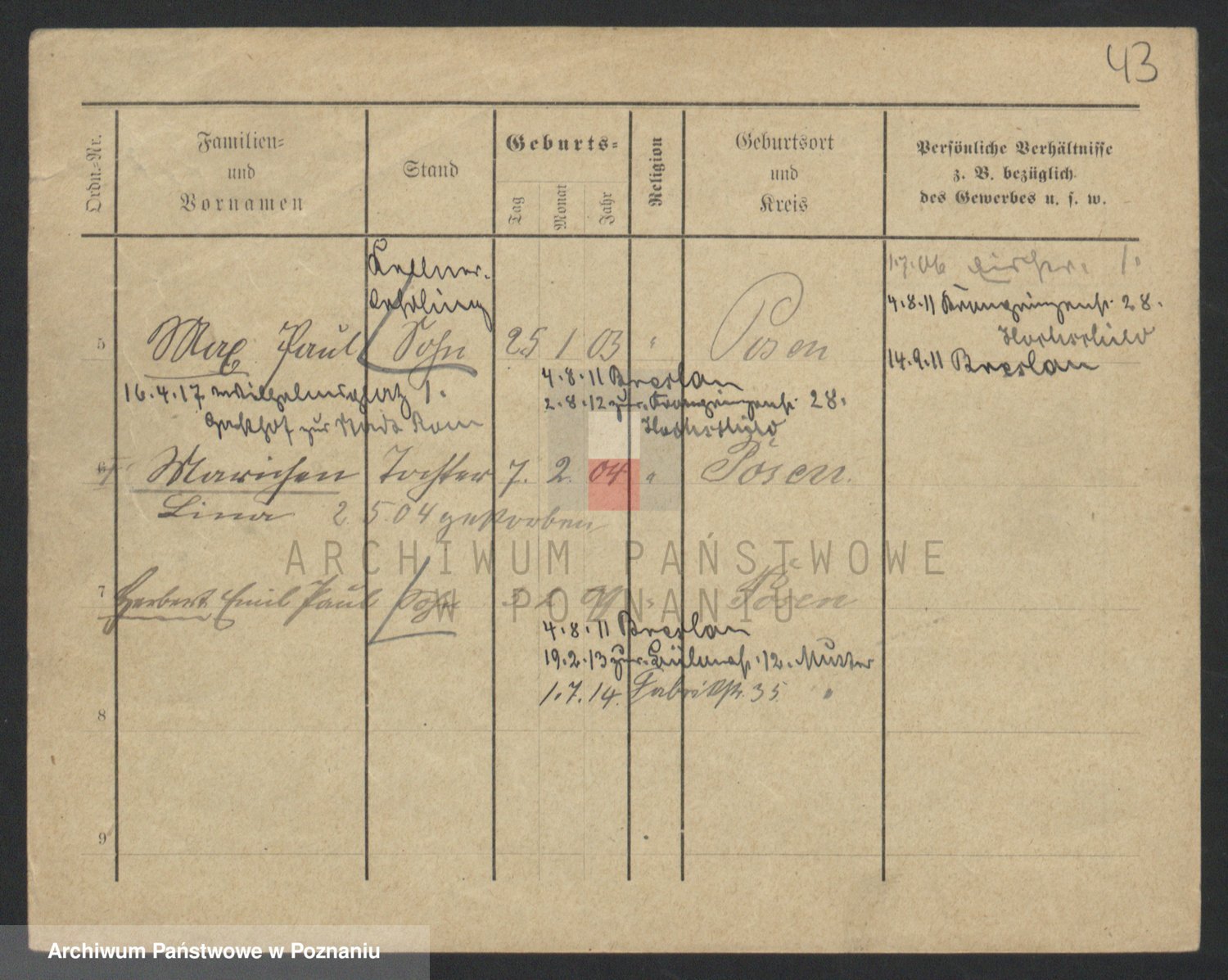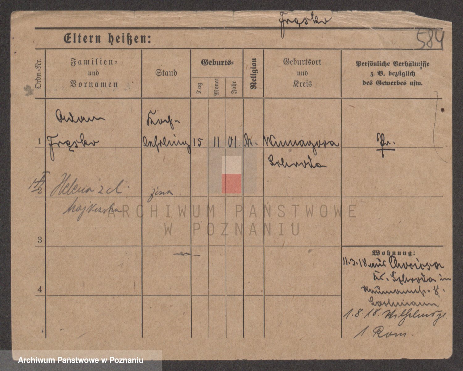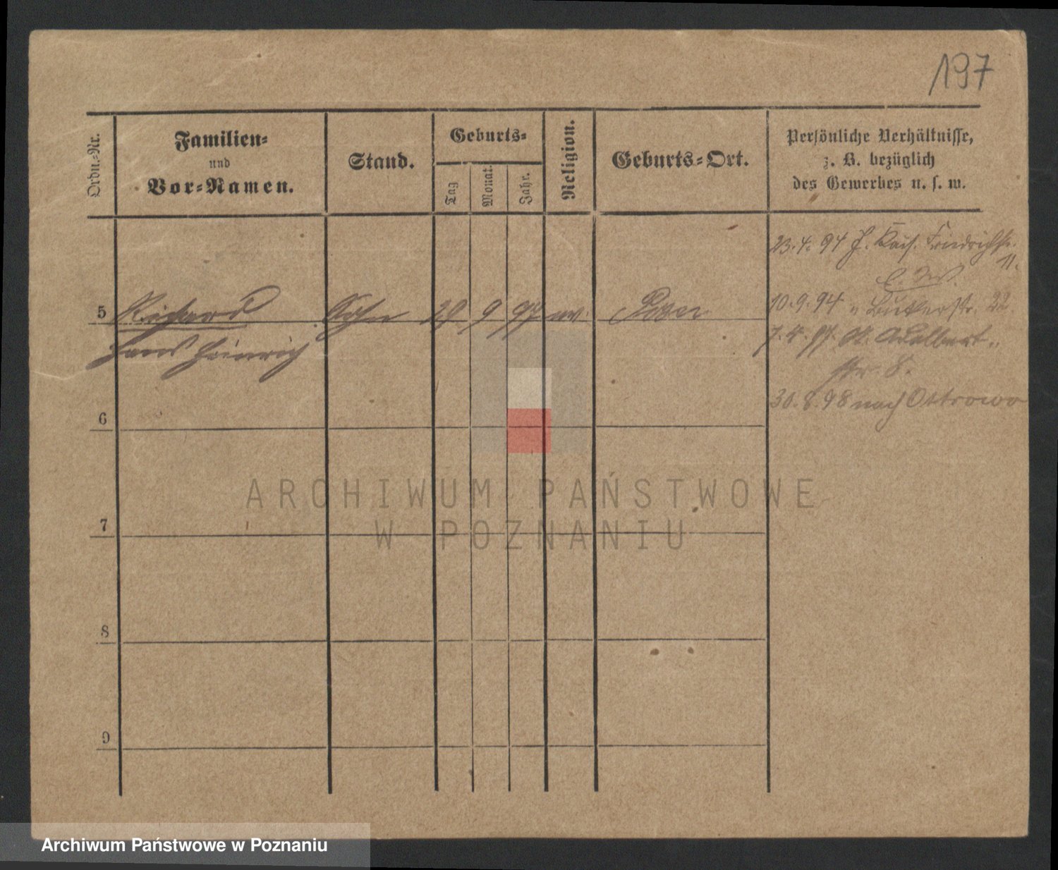 Podgląd karty osobowej dostępny jest po kliknięciu na nazwisko lub ikonkę karty. Można dokonywać powiększenia (ikony na górze) lub przechodzić między kolejnymi skanami (strzałki po bokach).