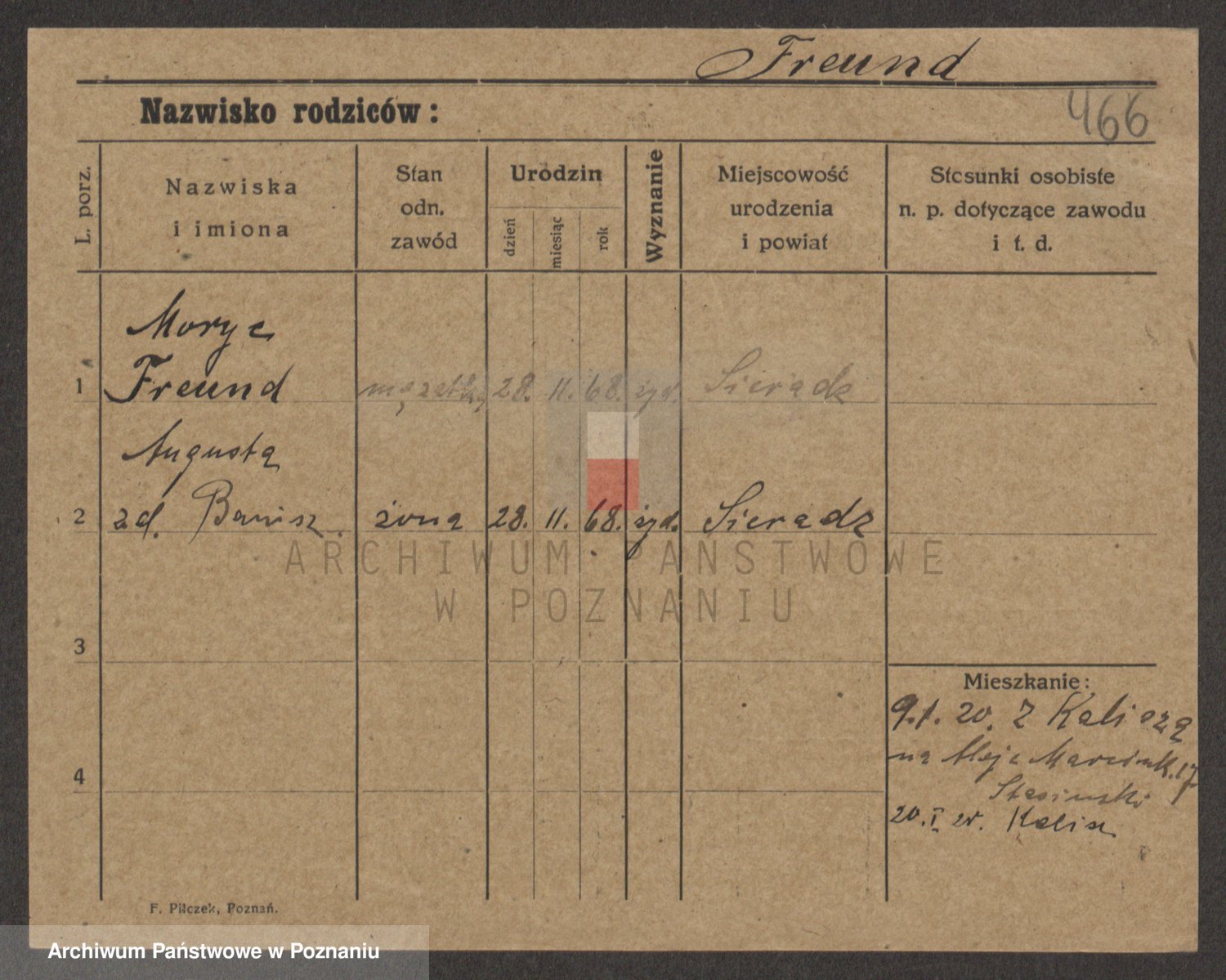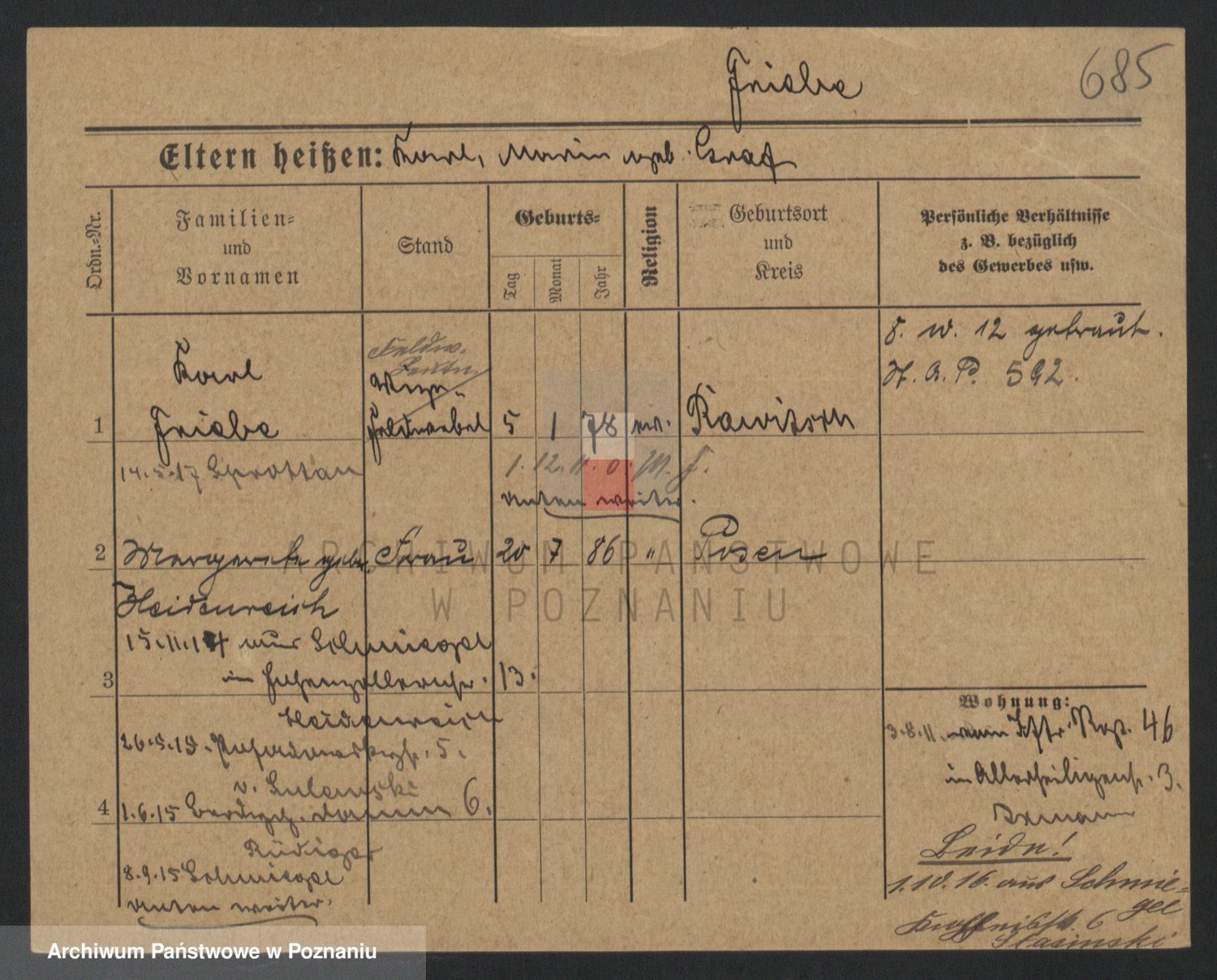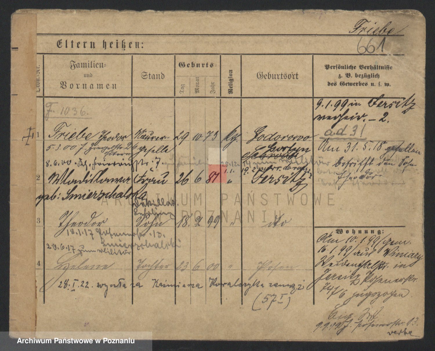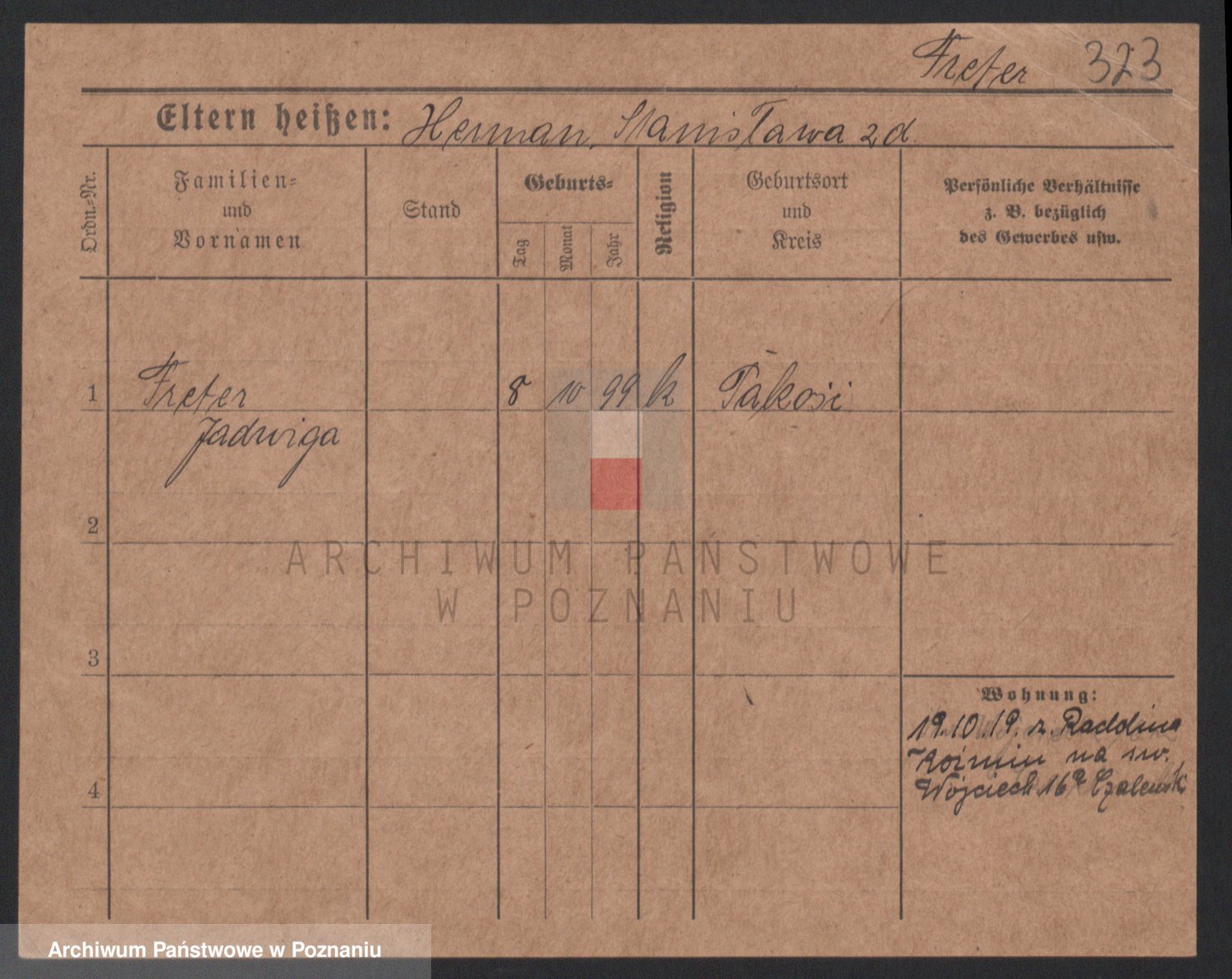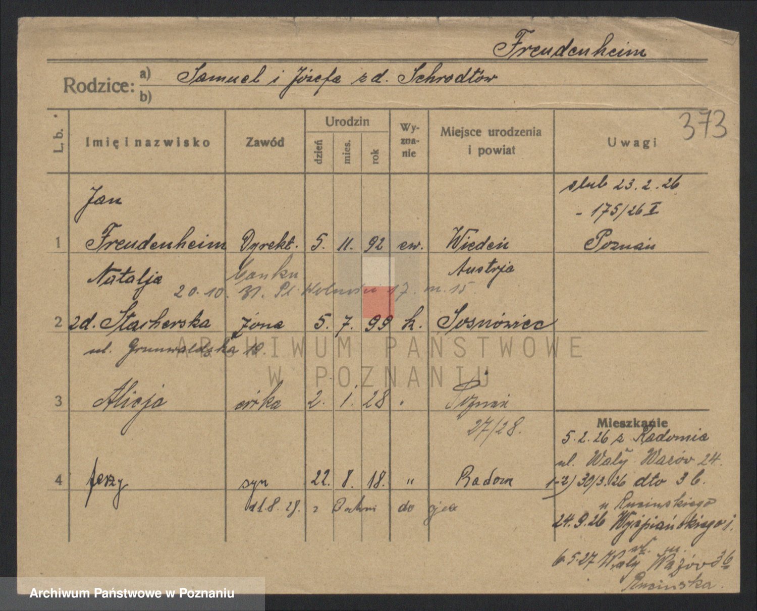 Podgląd karty osobowej dostępny jest po kliknięciu na nazwisko lub ikonkę karty. Można dokonywać powiększenia (ikony na górze) lub przechodzić między kolejnymi skanami (strzałki po bokach).