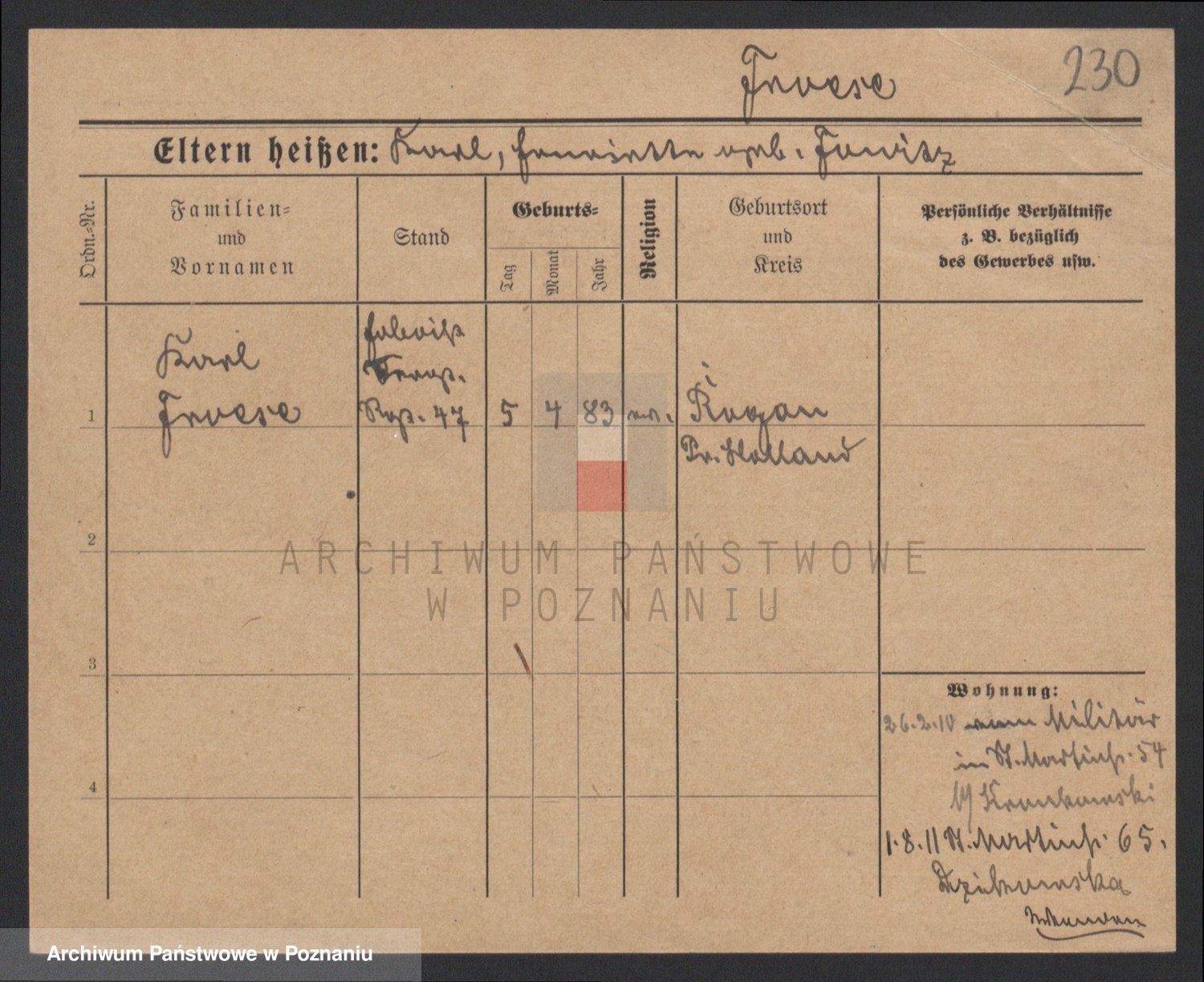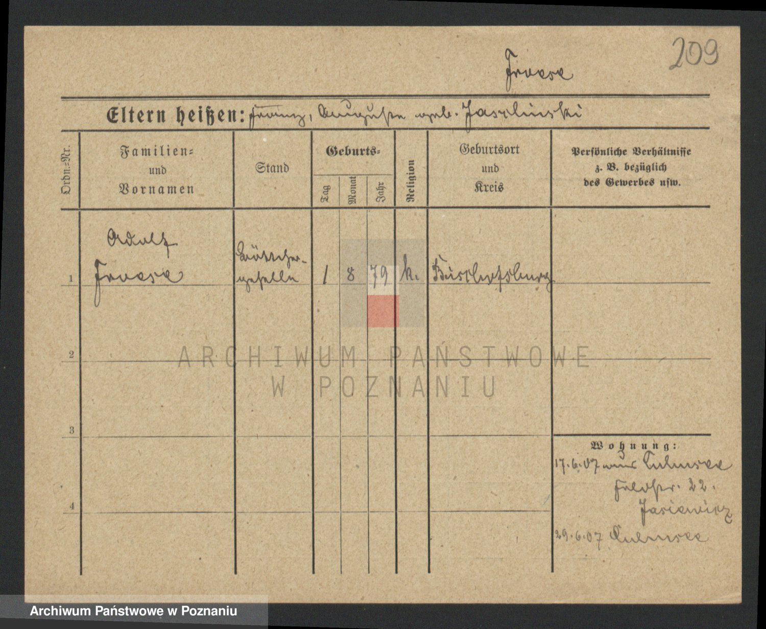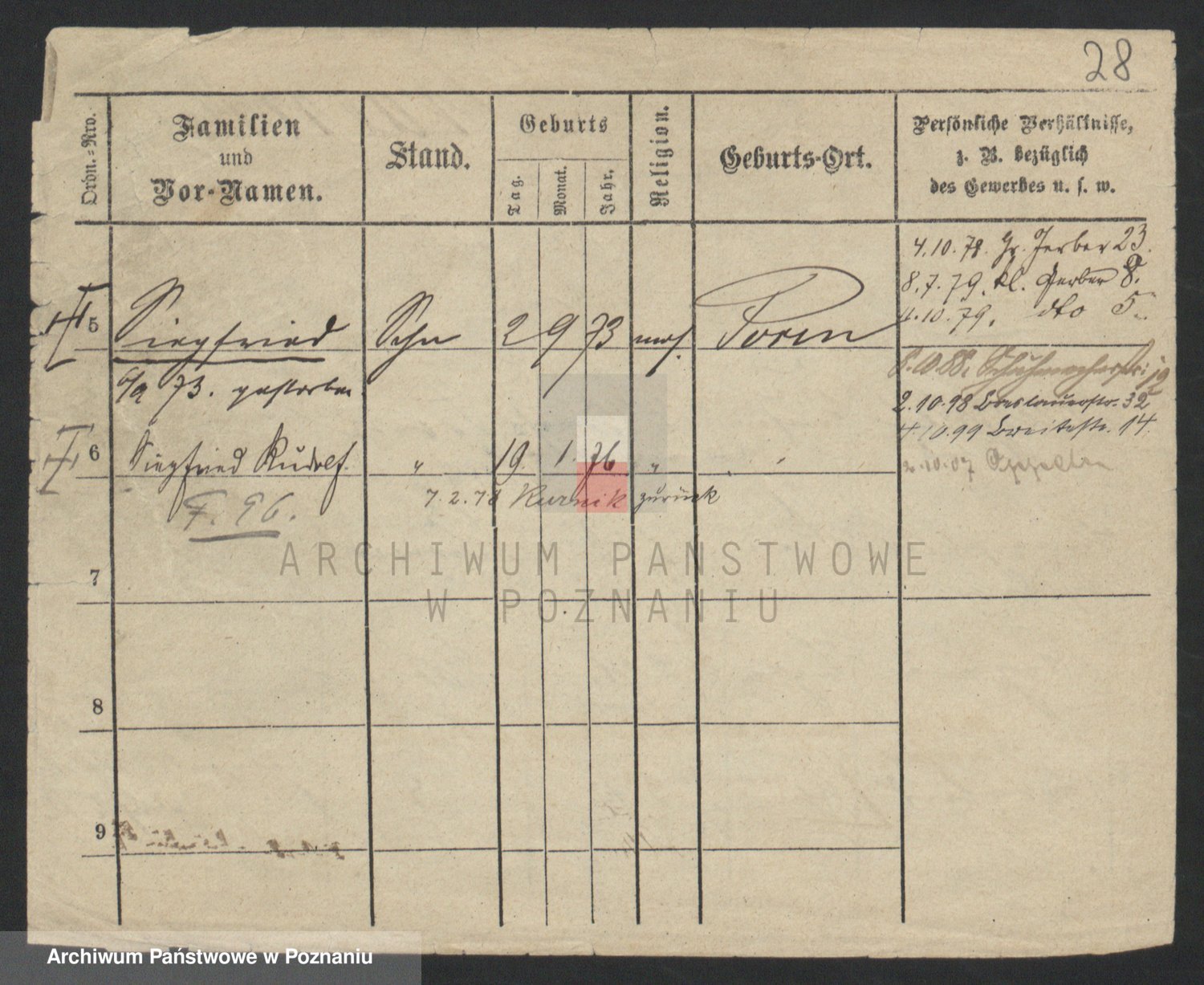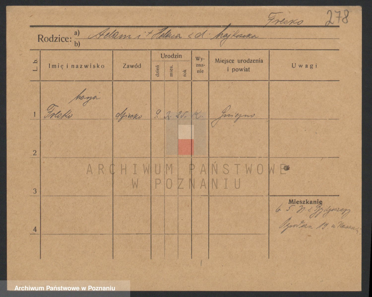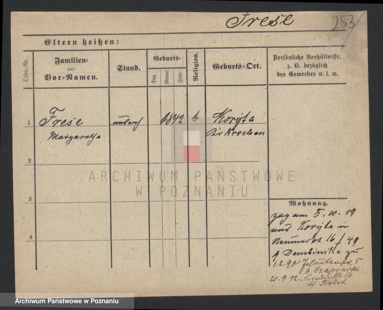 Podgląd karty osobowej dostępny jest po kliknięciu na nazwisko lub ikonkę karty. Można dokonywać powiększenia (ikony na górze) lub przechodzić między kolejnymi skanami (strzałki po bokach).