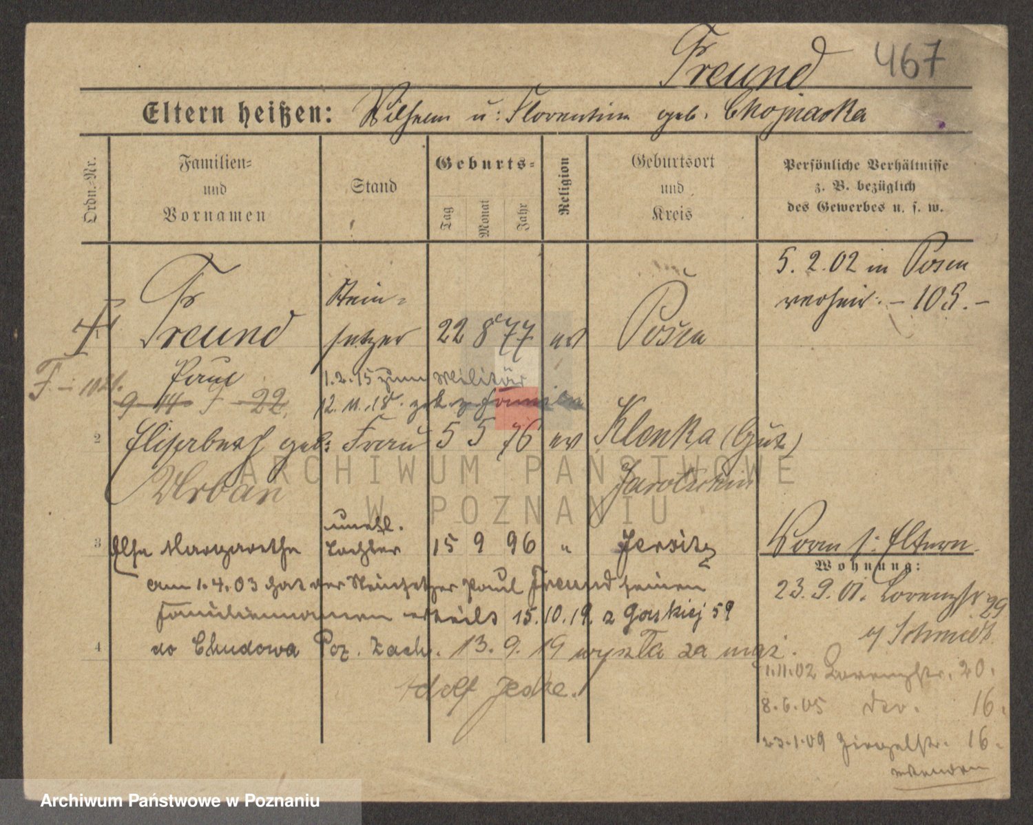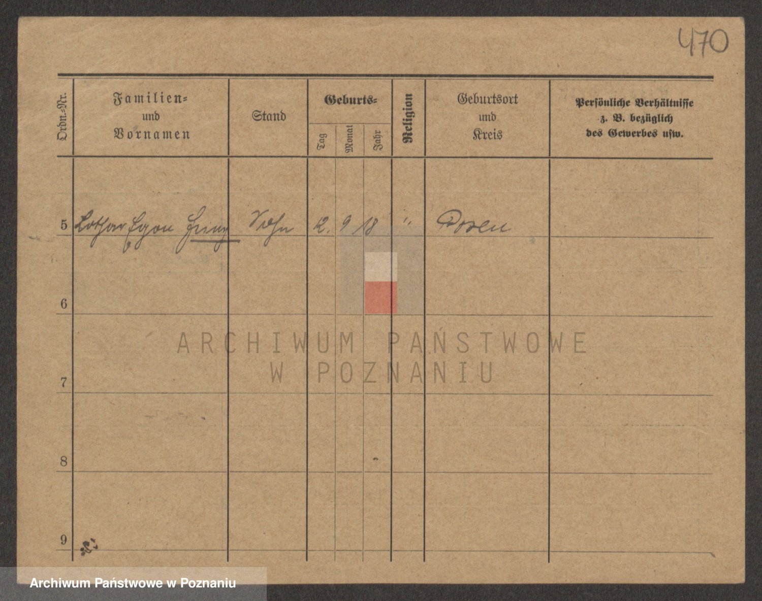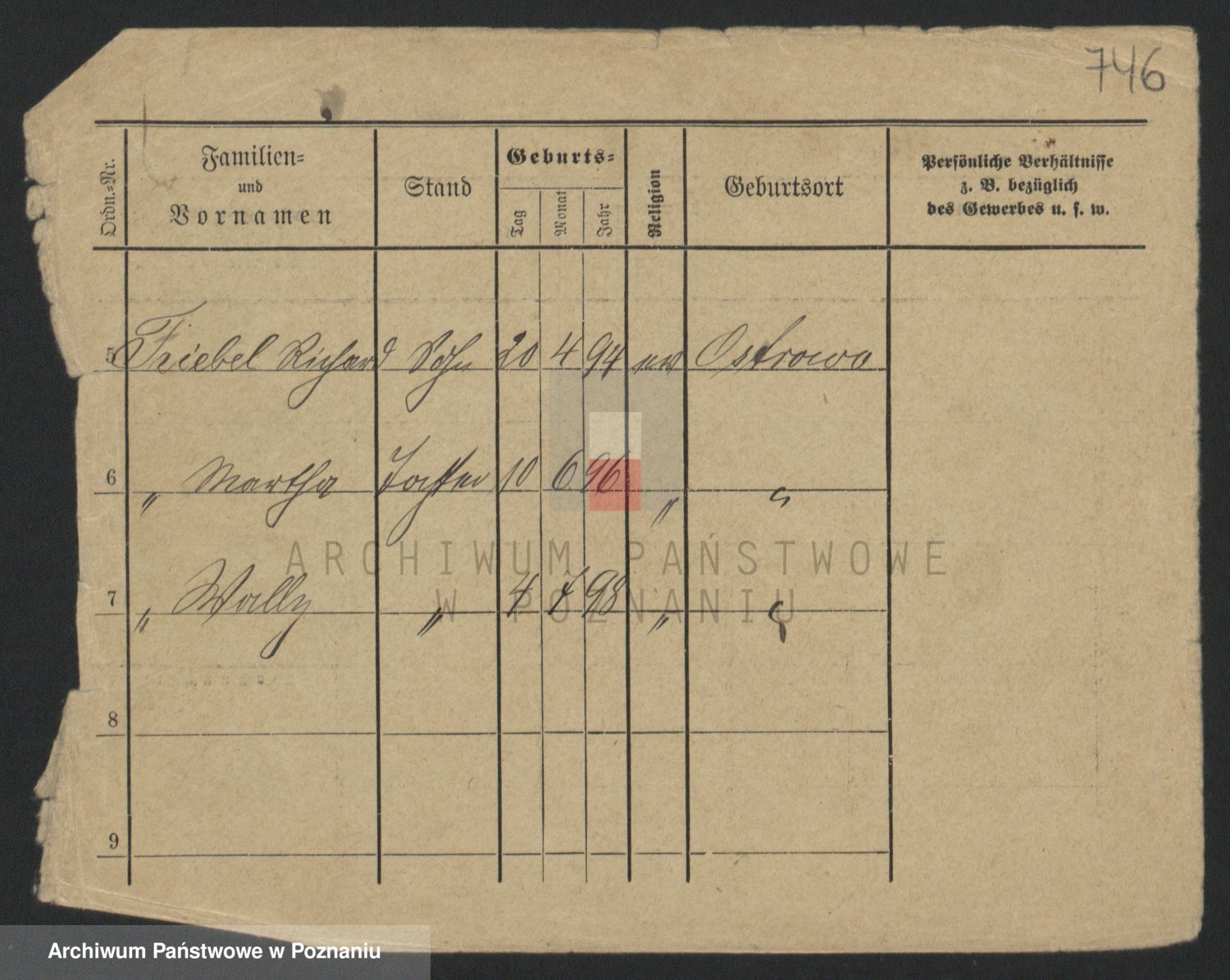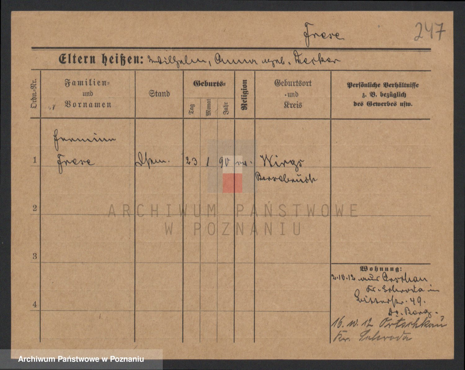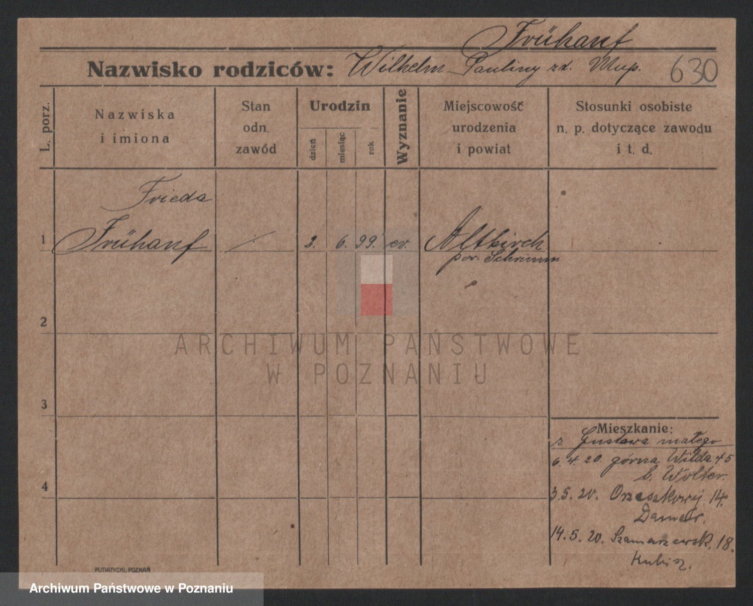 Podgląd karty osobowej dostępny jest po kliknięciu na nazwisko lub ikonkę karty. Można dokonywać powiększenia (ikony na górze) lub przechodzić między kolejnymi skanami (strzałki po bokach).