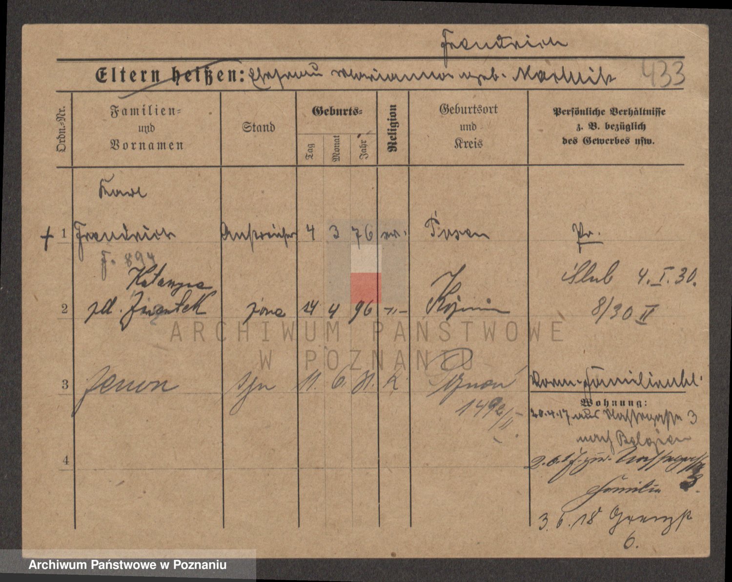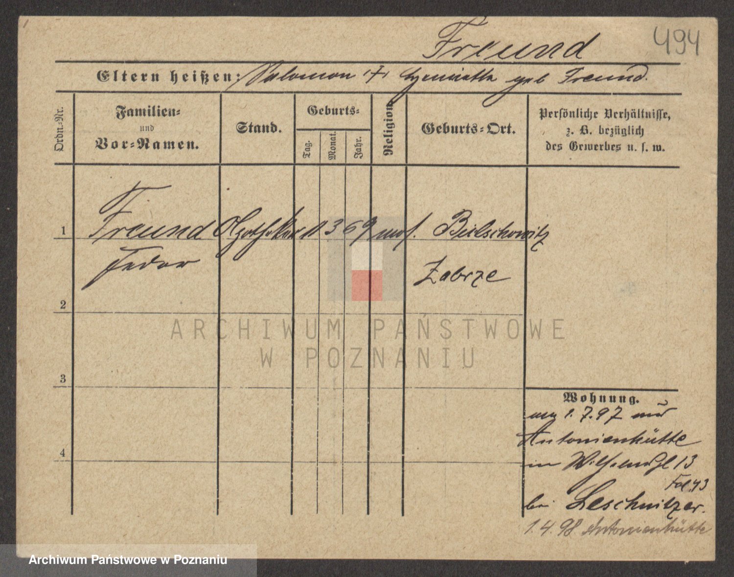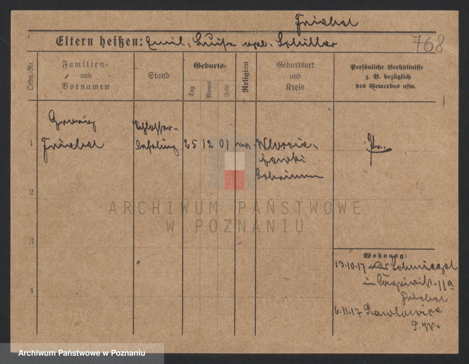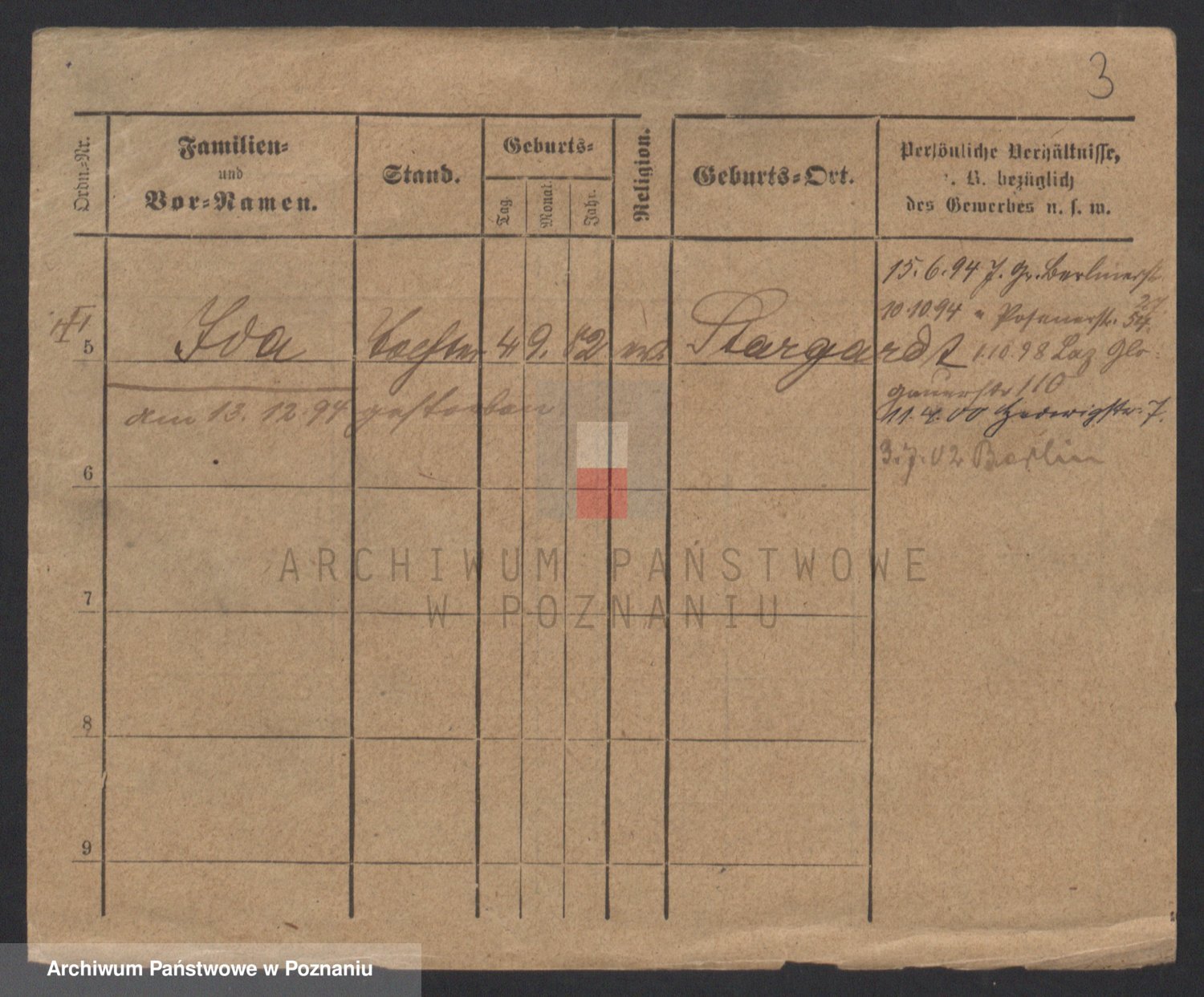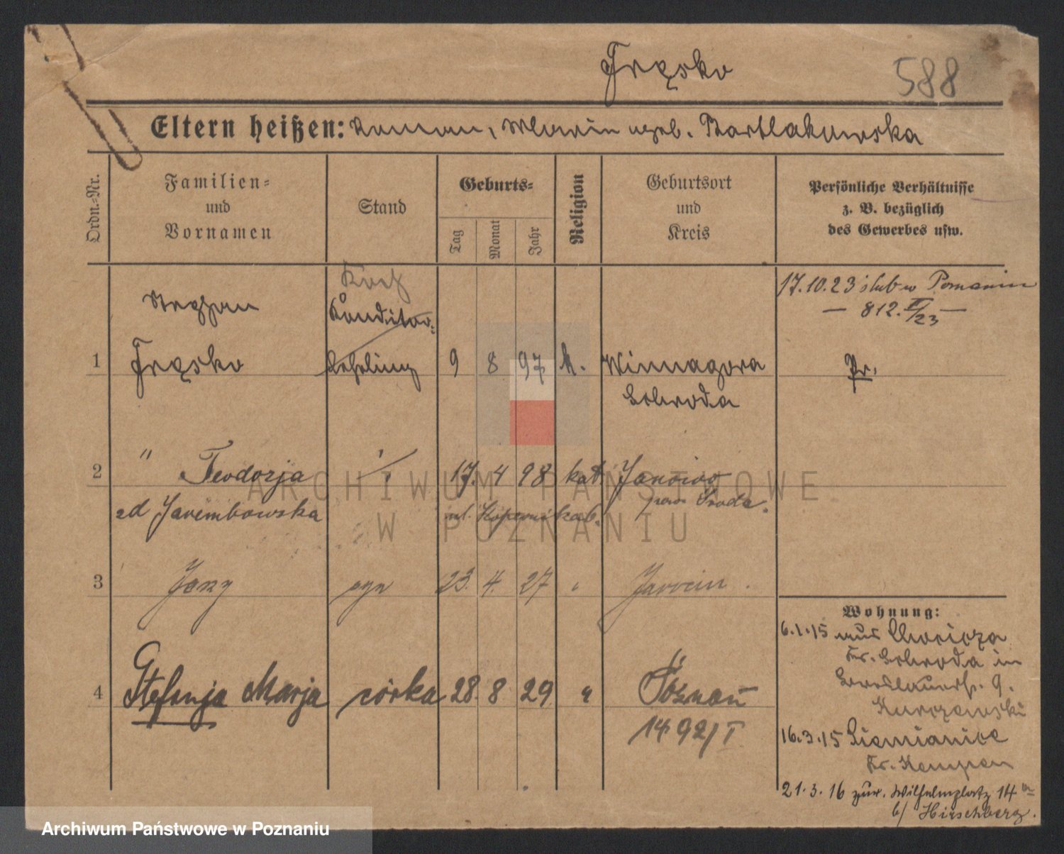 Podgląd karty osobowej dostępny jest po kliknięciu na nazwisko lub ikonkę karty. Można dokonywać powiększenia (ikony na górze) lub przechodzić między kolejnymi skanami (strzałki po bokach).