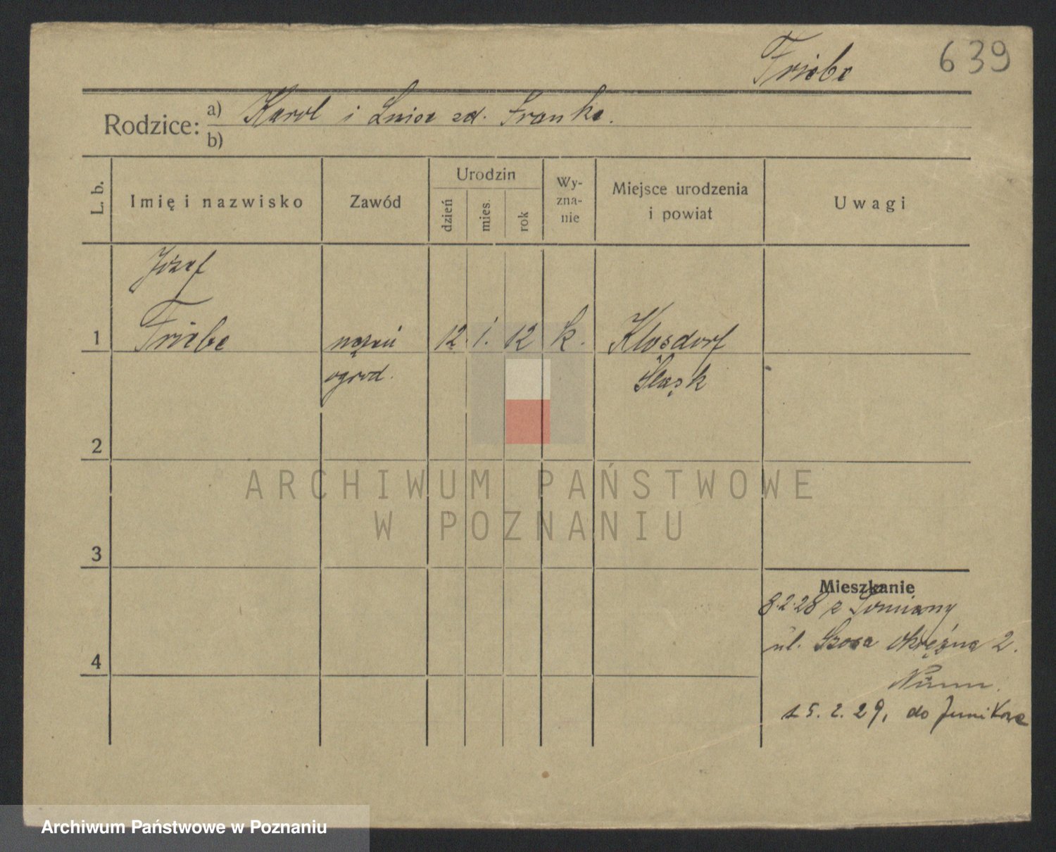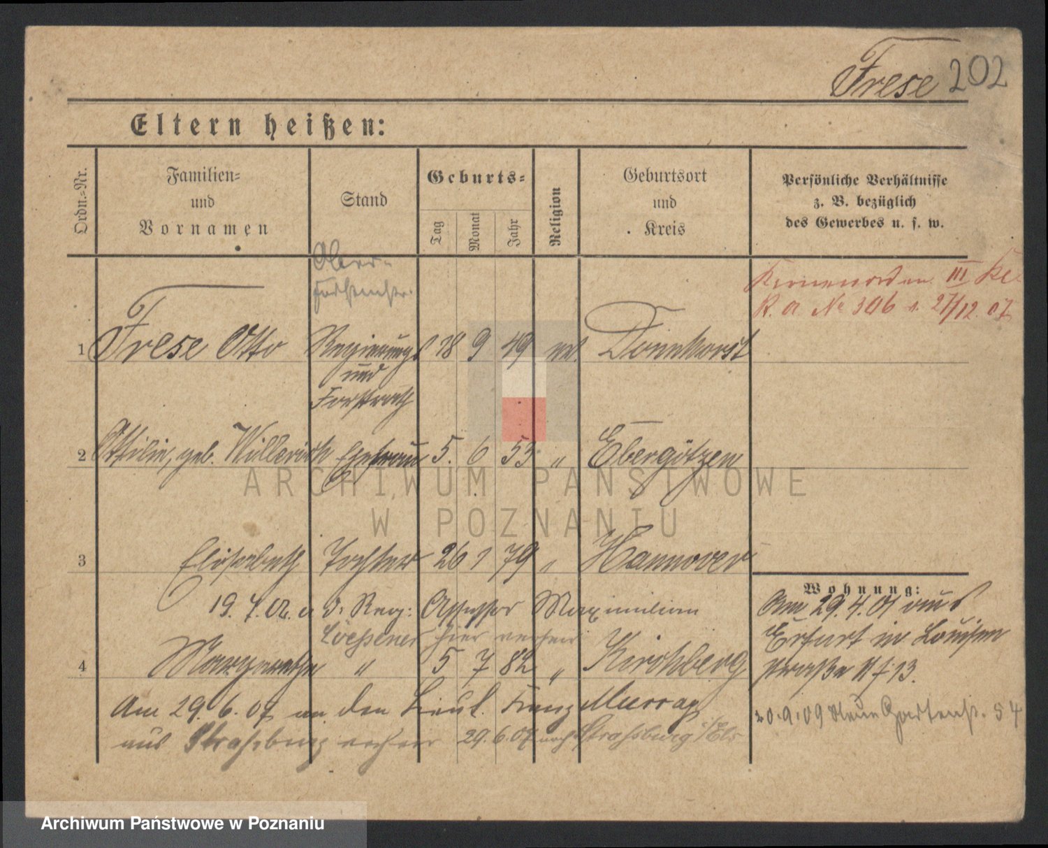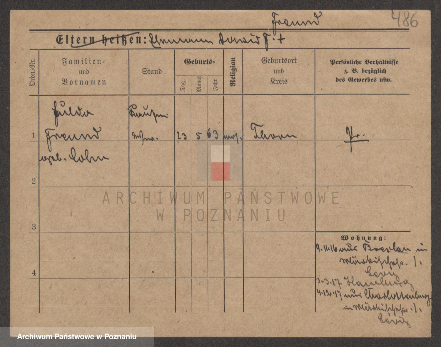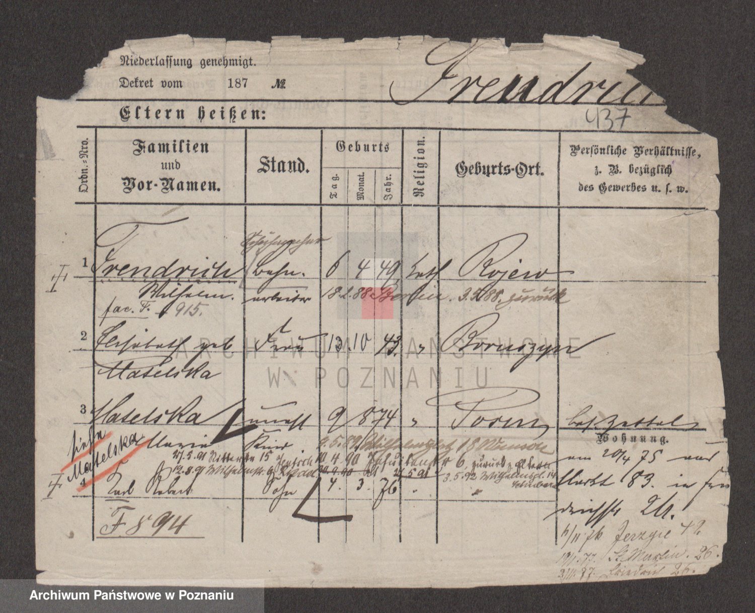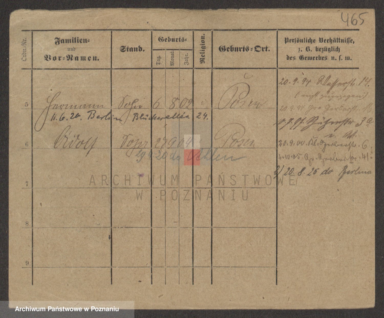 Podgląd karty osobowej dostępny jest po kliknięciu na nazwisko lub ikonkę karty. Można dokonywać powiększenia (ikony na górze) lub przechodzić między kolejnymi skanami (strzałki po bokach).