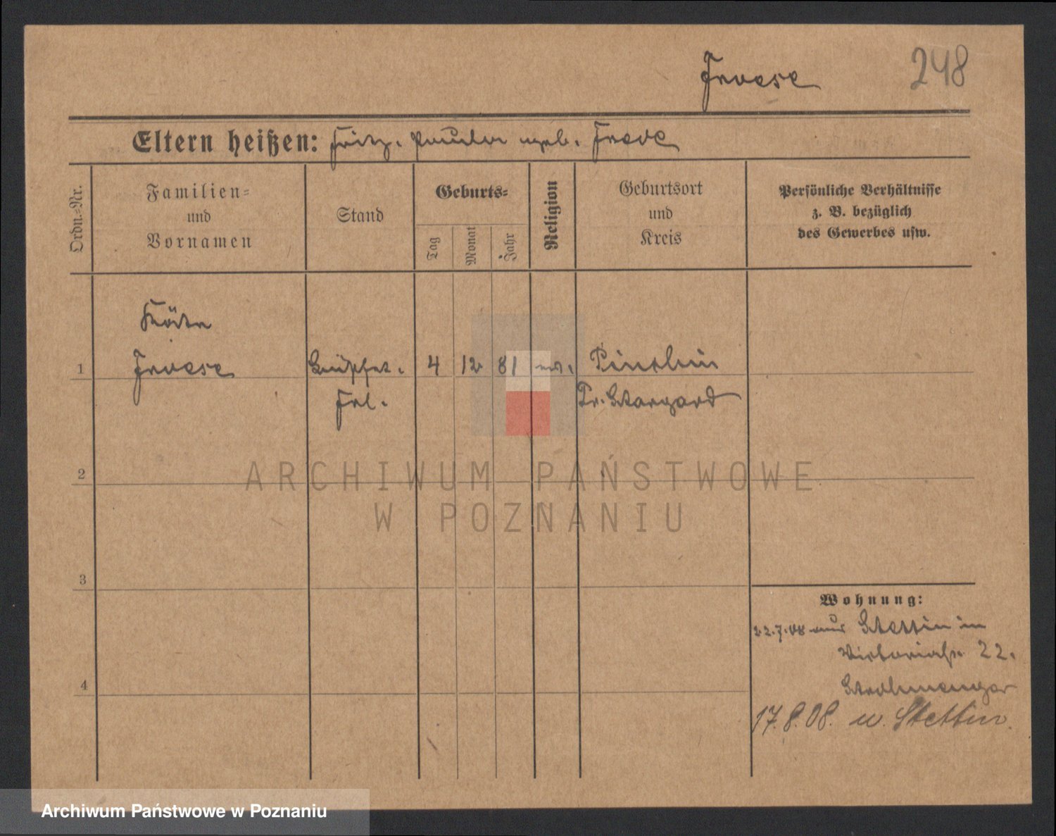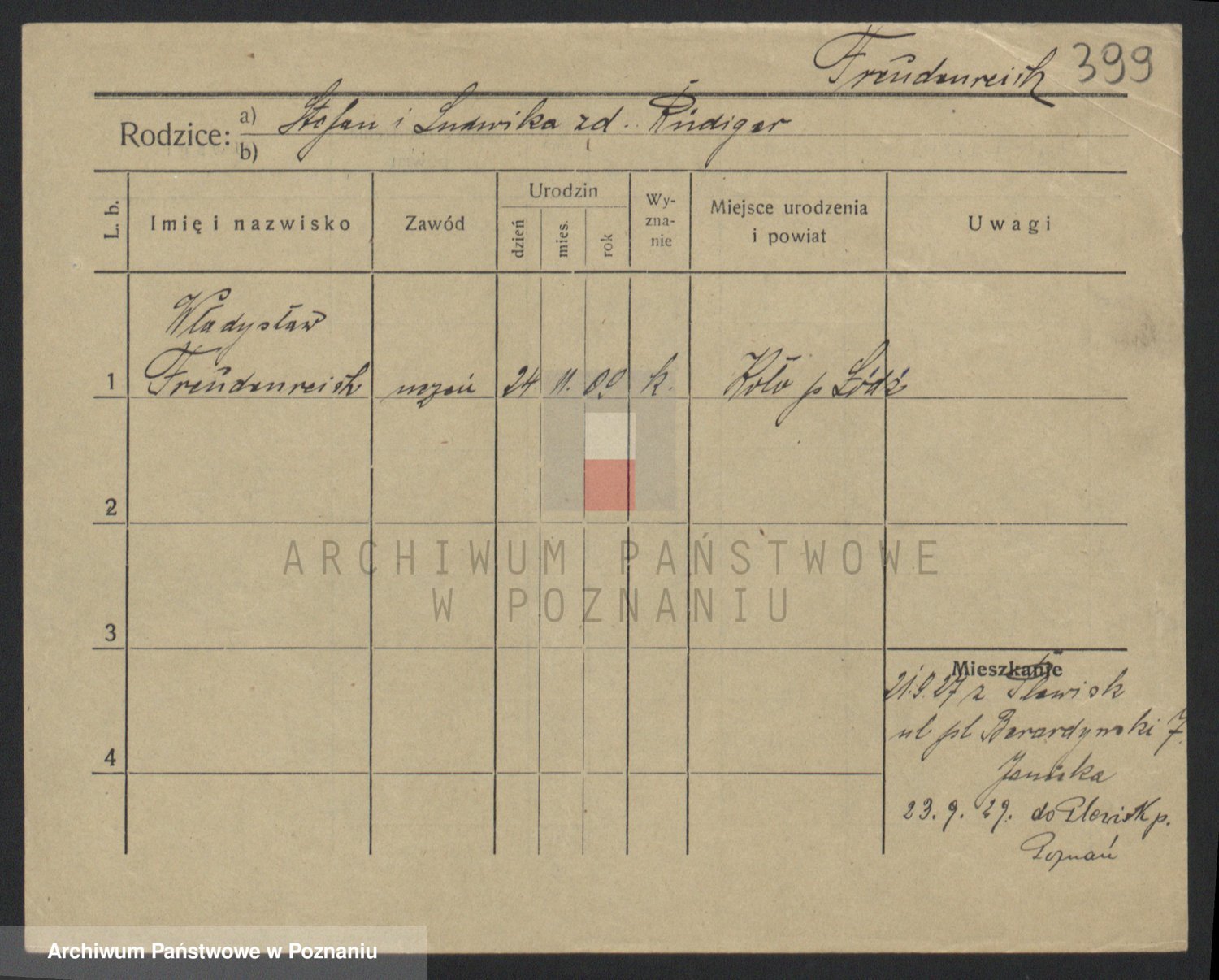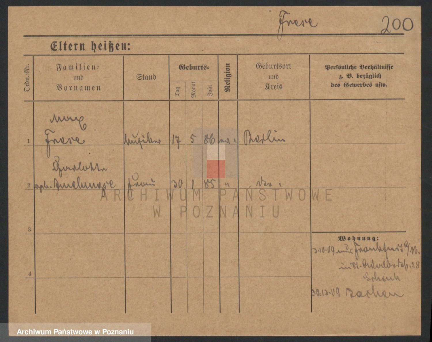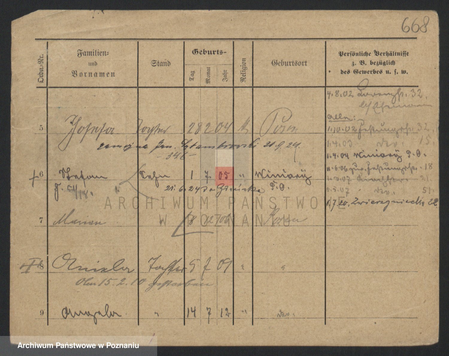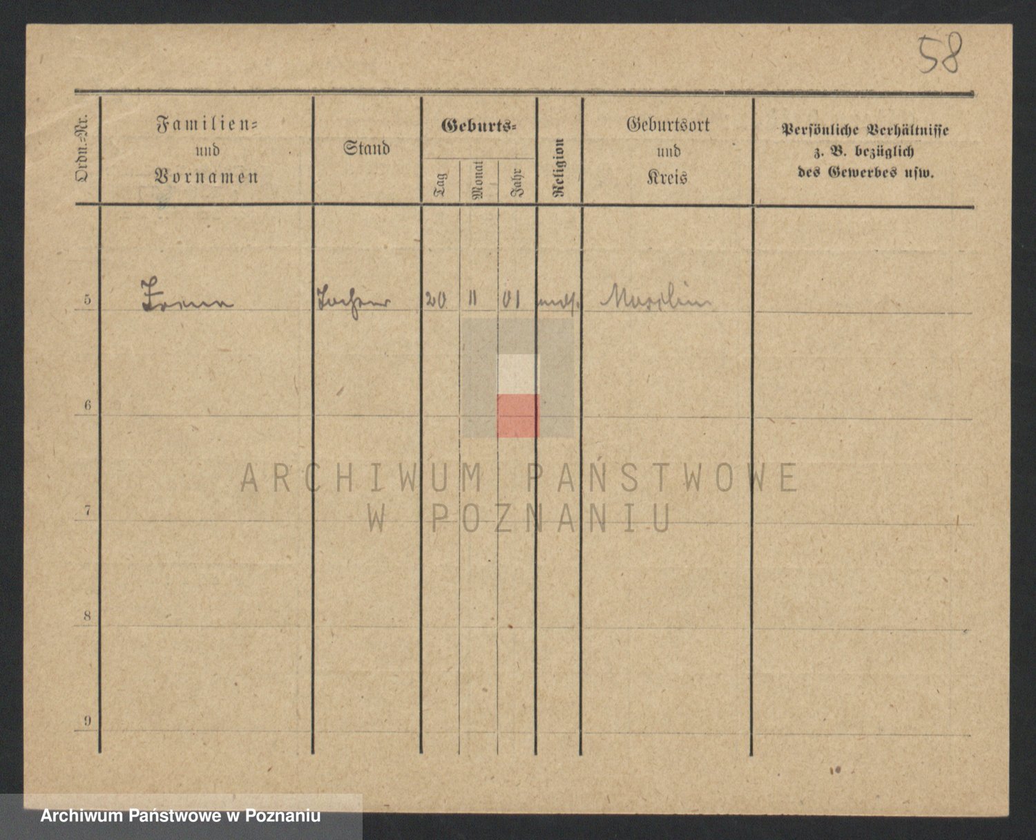 Podgląd karty osobowej dostępny jest po kliknięciu na nazwisko lub ikonkę karty. Można dokonywać powiększenia (ikony na górze) lub przechodzić między kolejnymi skanami (strzałki po bokach).